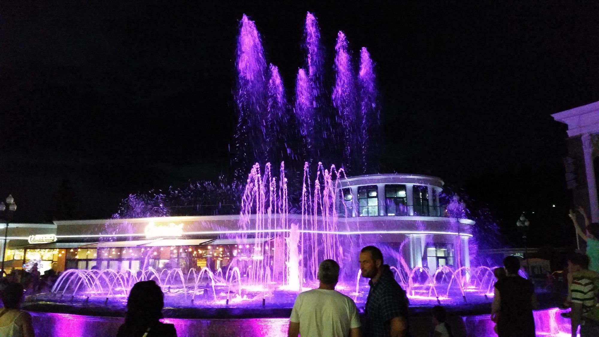 30 июля 2018 Ну и я просто не могу завершить рассказ об отпуске на такой не самой восторженной ноте. Потому что отпуск однозначно удался. И я готова снова и снова делиться впечатлениями, эмоциями, деталями, коих не вошло в рассказ немало, с желающими узнать больше. А на по сладкое я приготовила вам небольшой рассказ о... фонтане! Большой современный свето-музыкальный фонтан был открыт в Кисловодске прямо напротив Главных нарзанных ванн на курортном бульваре в 2016г. Он оснащен по последнему слову техники. Способен создавать разные водные фигуры и композиции, в секунду выбрасывать колоссальное количество воды на большую высоту, и даже оснащен огненными факелами, которые вспыхивают неожиданно и весьма эффектно. А еще к нему "прилагается" весьма талантливый художник? сценарист? - в общем очень экспрессивный, колоритный, а главное талантливый создатель-режиссер свето-музыкальных шоу. Во время представлений вечером (а они совершенно бесплатны: приходи и смотри) его часто можно увидеть возле чаши фонтана и в первый момент даже немного сомневаешься в его адекватности. Но он создает просто офигенные музыкально-свето-водно-огненные шоу! Каждый вечер около 9ти можно насладиться подборкой из 5-7 музыкальных композиций разных жанров: от народной песни(к примеру "Валенки") и классической музыки до известнейших зарубежных и наших поп- и блюз- композиций (например, однажды мы с удовольствием слушали Синатру) и, обязательно, классики рока. На нас одно из самых сильных впечатлений, к примеру, произвела легендарная "Кукушка" в одном из современных исполнений. При этом, фонтан буквально жил по музыку, рисунки, темп, высота и множественность - они были настолько к месту, настолько идеально вписаны в музыку, в свой музыкальный жанр, что теряешь дар речи и замираешь от восхищения. Мы ходили туда трижды. Дети просили еще и еще, даже если пять минут назад они буквально падали на землю от усталости и засыпали на ходу. К третьему дню мы уже научились даже предсказывать появление огненных элементов в кульминационные моменты музыки, но хотелось еще и еще. Знаете, многие любят фейерверки. Я и сама была не против полюбоваться разноцветными огнями в небе, хоть и без фанатизма. Так вот, этот фонтан во много раз круче и эффектнее. Здесь нет грохота, от которого Лешка все еще закрывает уши, но есть музыка, которая сама по себе уже перебирает одну за другой струны души. Я просто в восторге. И очень рекомендую хоть раз сходить туда, если будете в Кисловодске. Я, конечно, немного фото сделала для отчета. Но отчетливо понимаю, что я никогда не смогу ни на словах, ни на фотографиях предать этого ощущения экстаза, восторга...дальше можете сами поупражняться в подборе эпитетов. Ну а рядом помогает скрасить ожидание представления вот такой вот разноцветный минифонтан. Очень любопытные визуальные эффекты создаются при разном цвете струй. На оранжевом, например, полное ощущение того, что дети руки в огонь суют, тут главное не зазеваться и не испугаться за них Вот и все. Рассказ подошел к концу. Что запомнилось и впечатлило больше всего?... Гитара на вершине Малого Седла, Туевая аллея, вполне могущая быть порталом в другой мир, камерность Белой виллы и гостеприимный и вкусный уют Чайного домика. Кисловодский орел на Красных камнях и Кисловодский нарзан. Улочки. лесенки, горы, реки и ручьи... И в