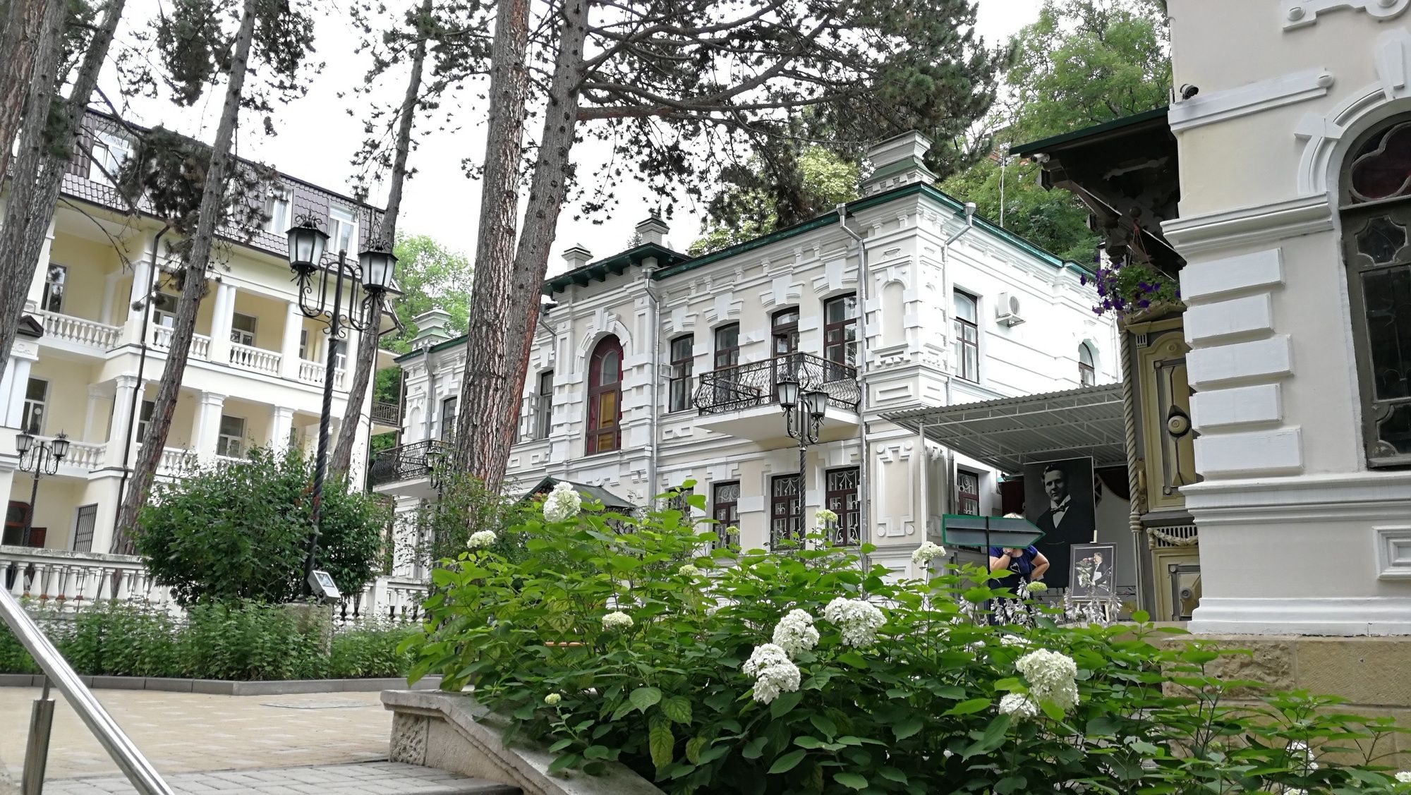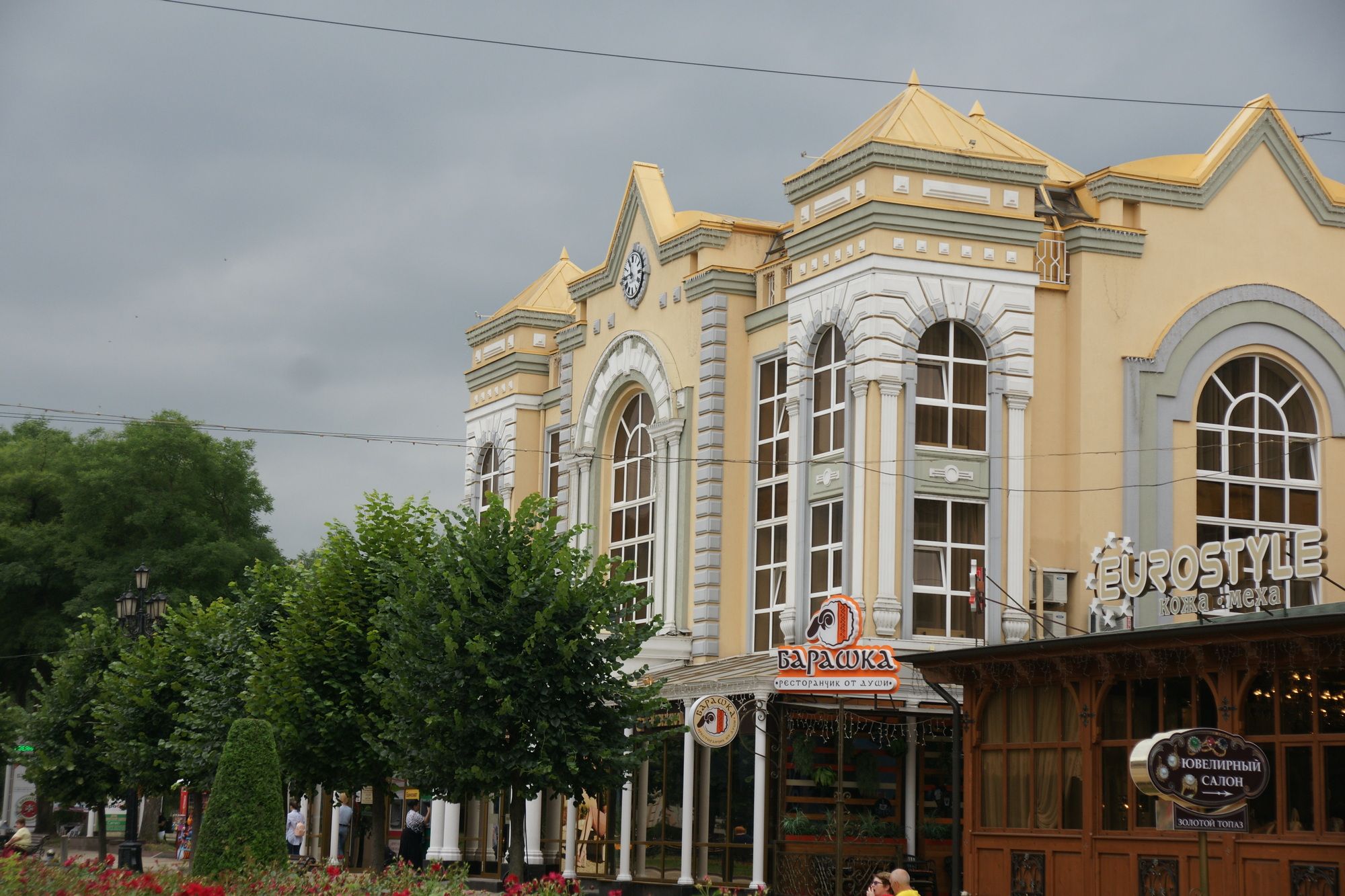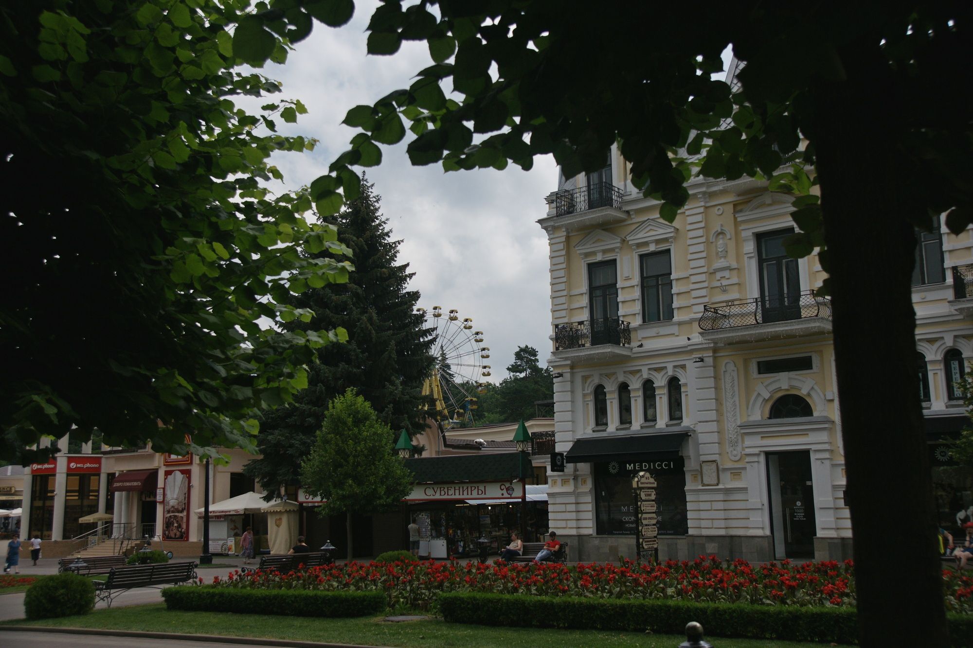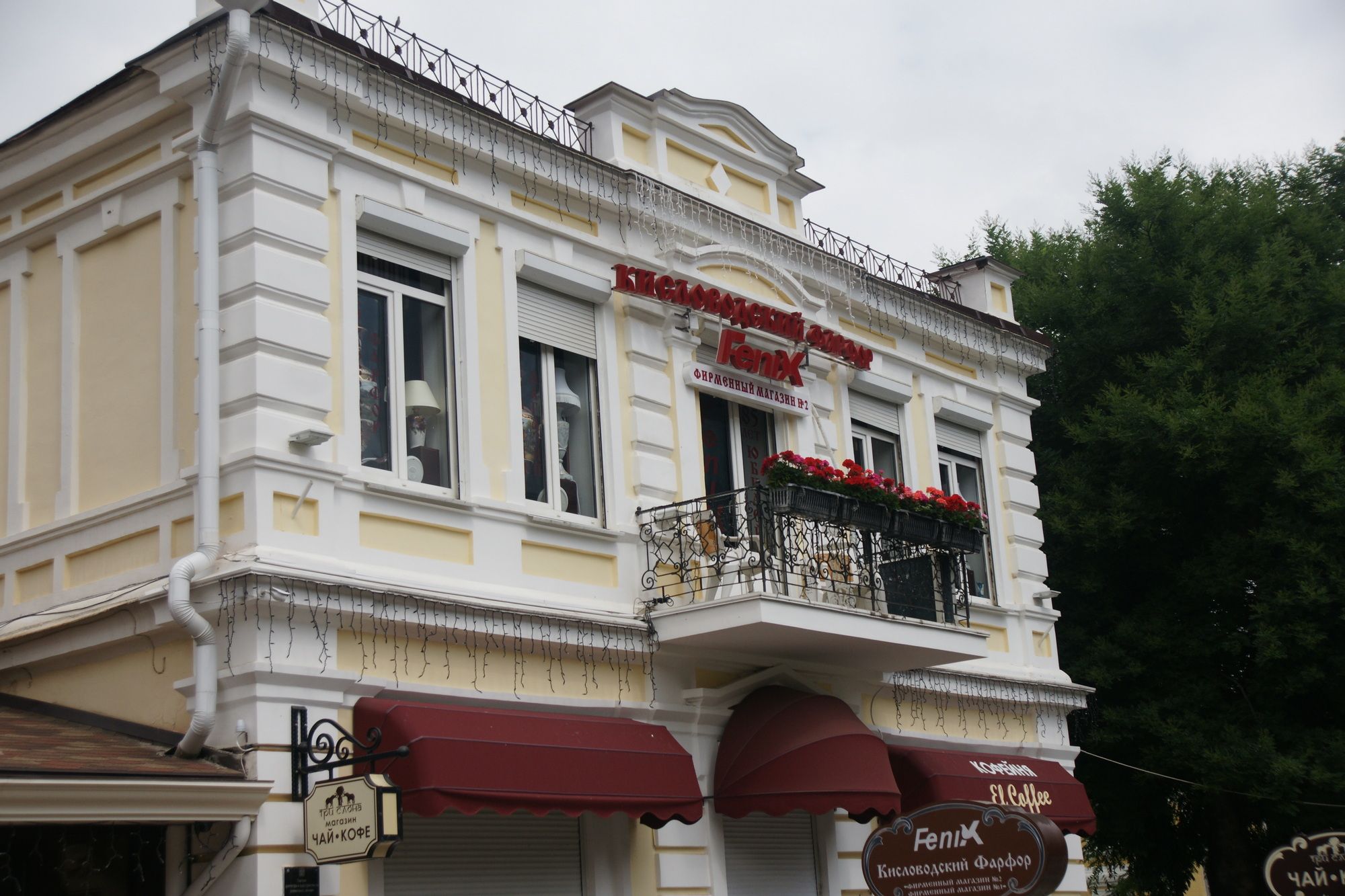 24 июля 2018 Прошу прощения за то, что немного пропала, обещав продолжение рассказа. У меня случился швейный запой: в смысле тот, что из ткани и за швейной машинкой. Это старший деть как-то неожиданно выросла из своих одежек: пришлось срочно обеспечивать новыми штанами, толстовкой и т.д. Ну а вообще-то давно пора отпускные рассказы завершать. А то уже и вышивальный отчет написать не терпится: я ж сегодня кораблики из багетки забрала!... Но фотосессия будет завтра, а сегодня я снова возвращаюсь в Кисловодск.... Конечно же, курортный парк и минеральная вода - это еще не весь Кисловодск, хотя и значительная его часть в плане нашего отпуска. Город очень интересный. И хотя относительно молодой (крепость на месте будущего города была основана только в 1803г), но у него есть свое лицо и своя история. Помимо повсеместного упоминания Лермонтова и "Героя нашего времени" (что здесь, кстати, не так нарочито подается, как в Пятигорске), город гордится многими известными жителями и гостями. Здесь сплелись культуры и судьбы горцев, терского казачества, России царской и России советской, здесь оставили след многие творческие и влиятельные люди своего времени. Здесь не преминула "расписаться" и революция, и война. Здесь почти каждый дом в исторической части готов рассказывать свою историю и историю своих хозяев заинтересованному слушателю. В этом смысле постоянно радуюсь, что под рукой у меня была такая книга, которая смогла помочь окунуться в атмосферу города-курорта-здравницы. А именно в этой ипостаси Кисловодск и развивался практически все 200 с лишним лет своей истории. Главной курортной улицей сейчас является Курортный бульвар. Когда-то давно он (а точнее его часть) носил название Тополевой аллеи, т.к. 1847-48гг здесь были высажены тополя по приказу графа Воронцова, тогдашнего наместника Кавказа. К концу XIXв. аллею замостили. А в 1918 тополя сильно пострадали - жители топили ими дома, чтобы не замерзнуть. Сейчас это пешеходная улица, где сосредоточены многие лечебные учреждения, архитектурные достопримечательности, кафе и туристические магазины. При этом нет ощущения хаоса и сильной суеты. Неон не бьет по глазам и мозгу отовсюду. И хотя часть вывесок все же слегка ярковата, но большинство из них единообразны и стилизованы в соответствии с общей стилистикой курортного города и променада. Вывески такого стиля мы встречали по всему городу, хотя и в меньшей концентрации. Мы этот факт оценили. Упирается бульвар как раз в Нарзанную галерею, про которую я уже упоминала. А рядом с ней фонтан "Лягушки", который просто нереально красив в обрамлении красных цветов, зелени и благодаря ярчайшему голубому дну чаши бассейна. С товарищем с последнего фото мы здоровались каждый день ровно на этом месте: в отверстии в стене здания Нарзанных ванн Не буду рассказывать подробно про каждое строение. Любознательных отсылаю к книге и гуглу. Прокомментирую только некоторые моменты. Здесь лечебное учреждение - это не мрачное безжизненное здание. Если вы видите белоснежный особняк с красивыми балкончиками, то он вполне может оказаться, к примеру, курортной поликлиникой. Причем старейшие учреждения не переехали в чей-то старинный особняк или доходный дом, а изначально строились такими. Многие дома на Курортном бульваре и примыкающей к ней пешеходной же улице Карла Маркса - это бывшие леч