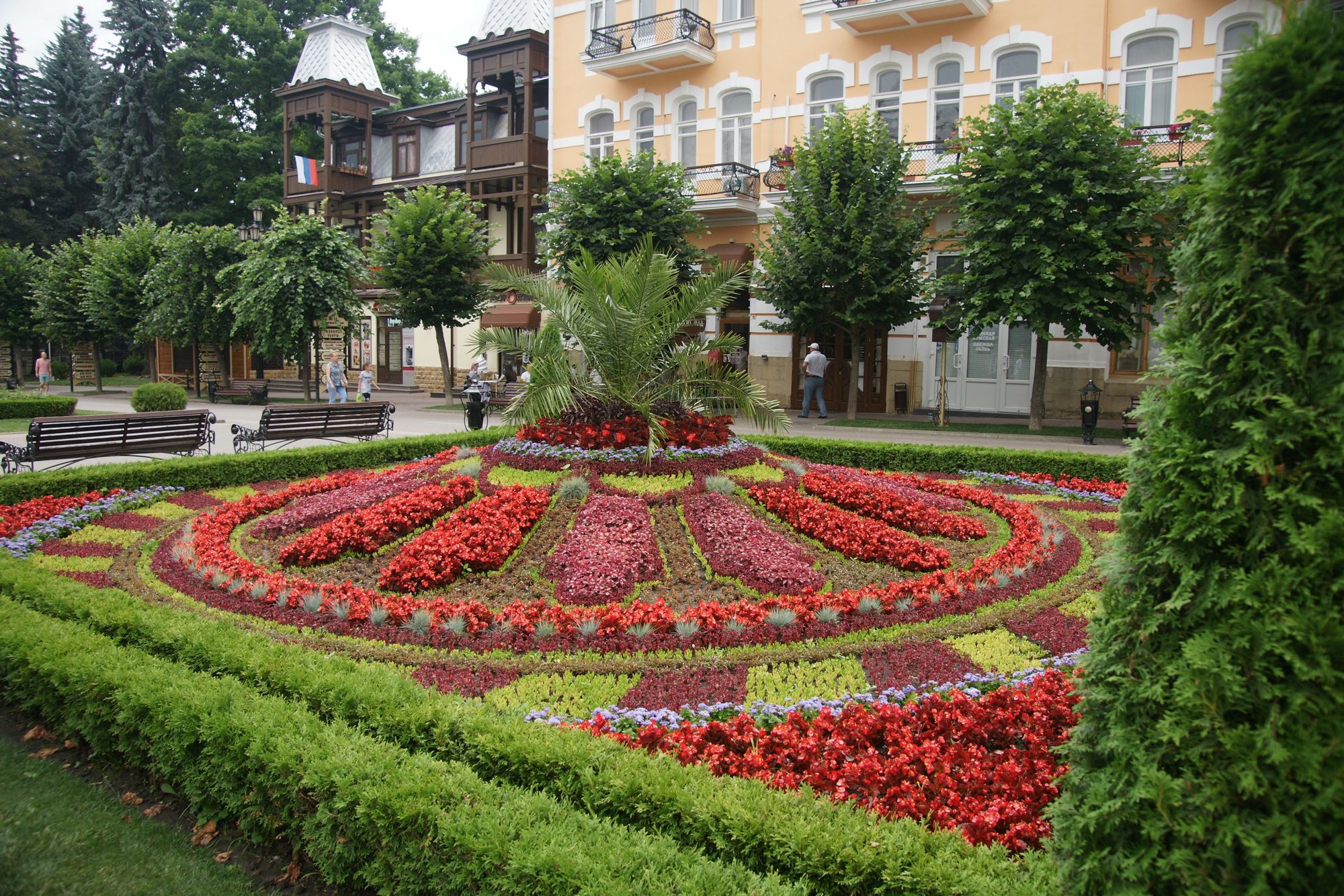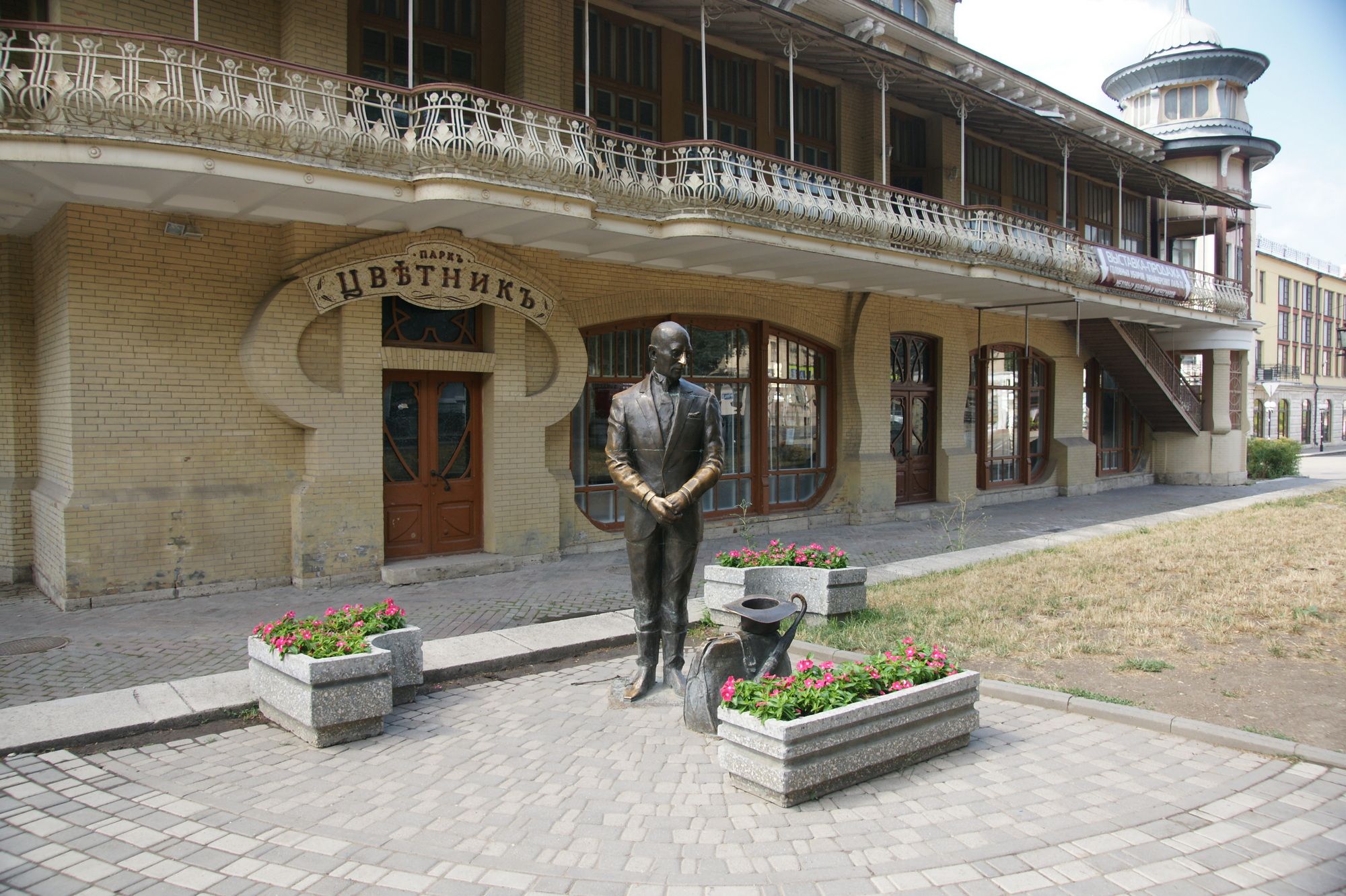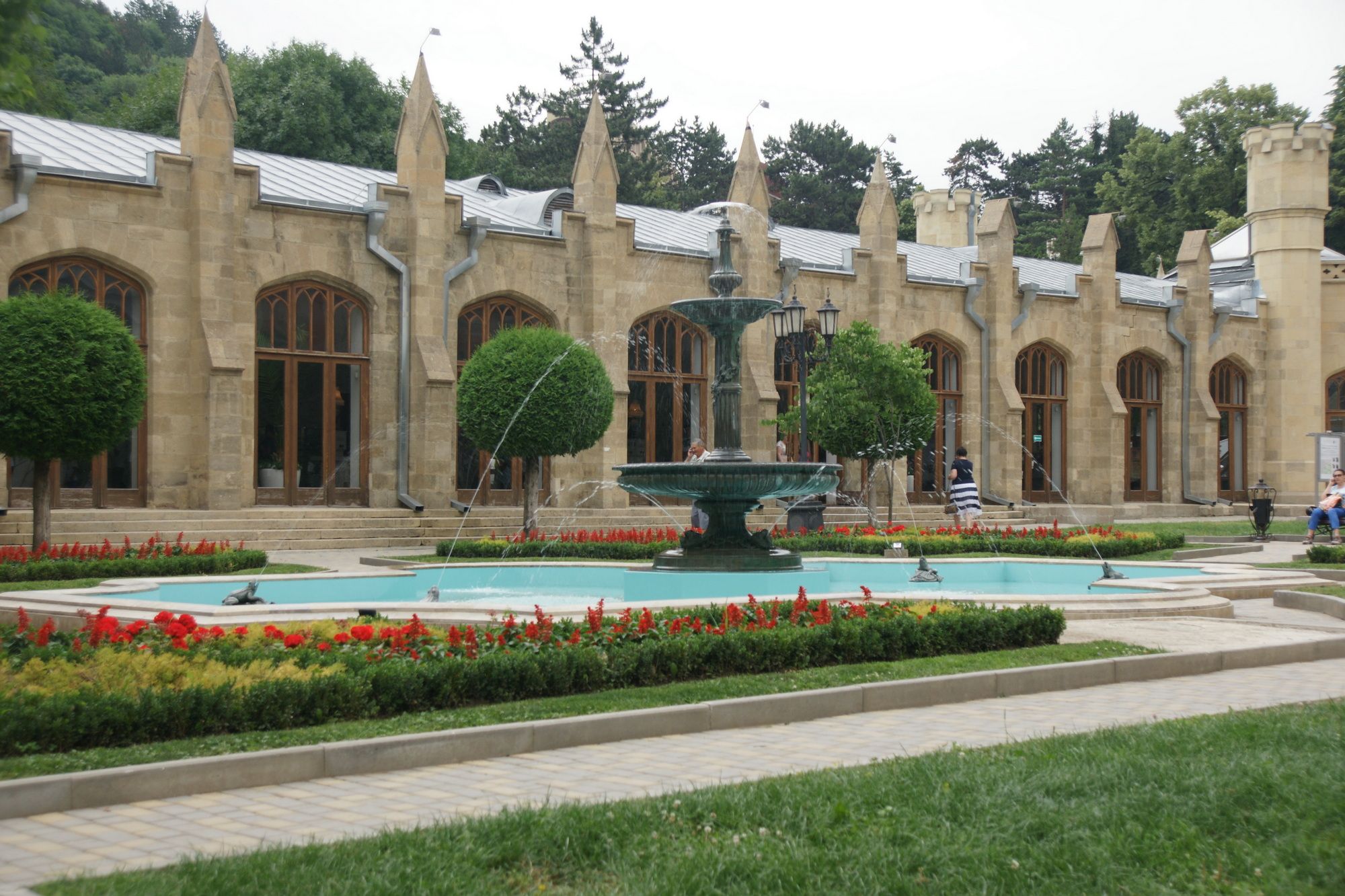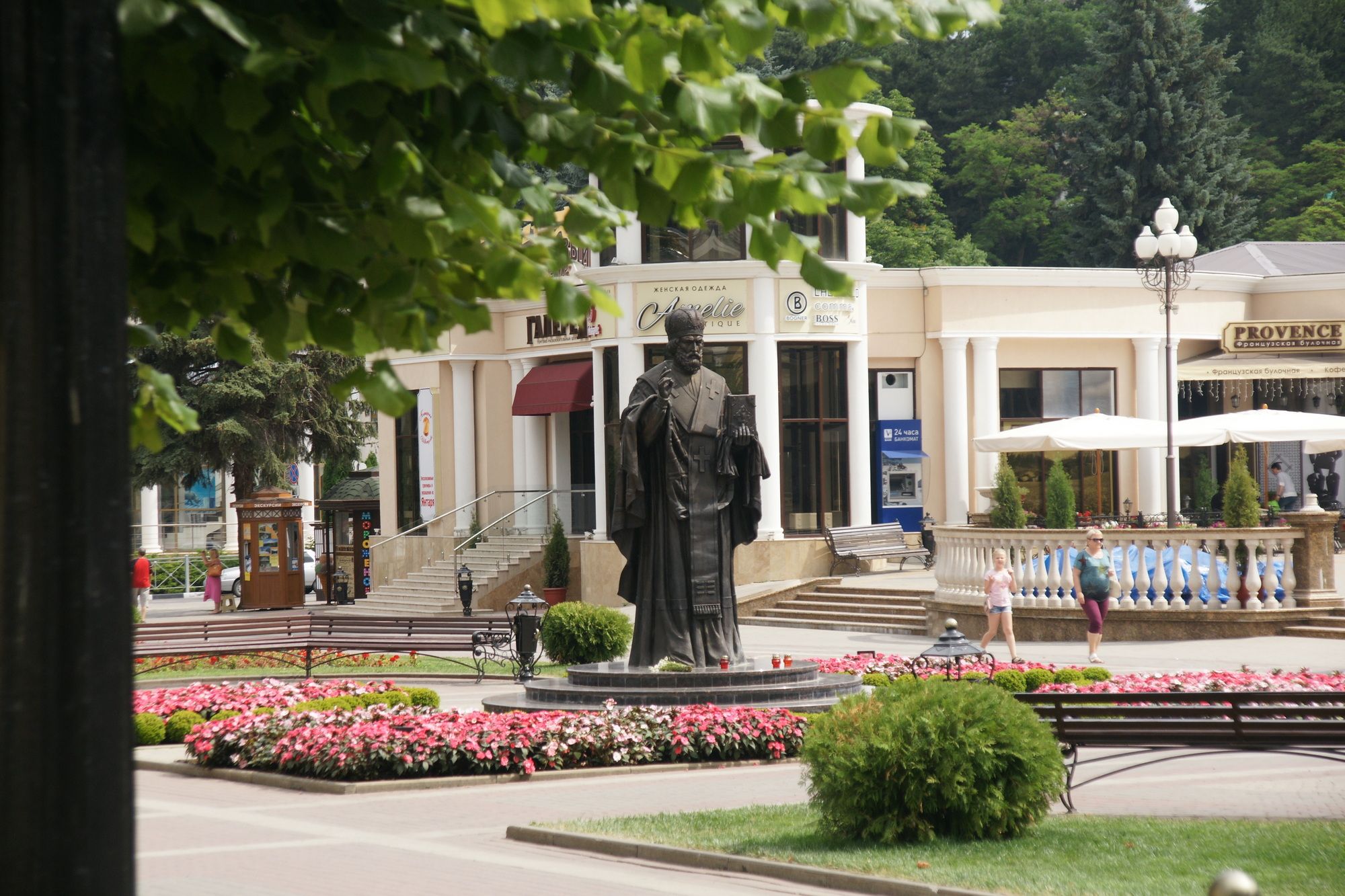 24 июля 2018 Прошу прощения за то, что немного пропала, обещав продолжение рассказа. У меня случился швейный запой: в смысле тот, что из ткани и за швейной машинкой. Это старший деть как-то неожиданно выросла из своих одежек: пришлось срочно обеспечивать новыми штанами, толстовкой и т.д. Ну а вообще-то давно пора отпускные рассказы завершать. А то уже и вышивальный отчет написать не терпится: я ж сегодня кораблики из багетки забрала!... Но фотосессия будет завтра, а сегодня я снова возвращаюсь в Кисловодск.... Конечно же, курортный парк и минеральная вода - это еще не весь Кисловодск, хотя и значительная его часть в плане нашего отпуска. Город очень интересный. И хотя относительно молодой (крепость на месте будущего города была основана только в 1803г), но у него есть свое лицо и своя история. Помимо повсеместного упоминания Лермонтова и "Героя нашего времени" (что здесь, кстати, не так нарочито подается, как в Пятигорске), город гордится многими известными жителями и гостями. Здесь сплелись культуры и судьбы горцев, терского казачества, России царской и России советской, здесь оставили след многие творческие и влиятельные люди своего времени. Здесь не преминула "расписаться" и революция, и война. Здесь почти каждый дом в исторической части готов рассказывать свою историю и историю своих хозяев заинтересованному слушателю. В этом смысле постоянно радуюсь, что под рукой у меня была такая книга, которая смогла помочь окунуться в атмосферу города-курорта-здравницы. А именно в этой ипостаси Кисловодск и развивался практически все 200 с лишним лет своей истории. Главной курортной улицей сейчас является Курортный бульвар. Когда-то давно он (а точнее его часть) носил название Тополевой аллеи, т.к. 1847-48гг здесь были высажены тополя по приказу графа Воронцова, тогдашнего наместника Кавказа. К концу XIXв. аллею замостили. А в 1918 тополя сильно пострадали - жители топили ими дома, чтобы не замерзнуть. Сейчас это пешеходная улица, где сосредоточены многие лечебные учреждения, архитектурные достопримечательности, кафе и туристические магазины. При этом нет ощущения хаоса и сильной суеты. Неон не бьет по глазам и мозгу отовсюду. И хотя часть вывесок все же слегка ярковата, но большинство из них единообразны и стилизованы в соответствии с общей стилистикой курортного города и променада. Вывески такого стиля мы встречали по всему городу, хотя и в меньшей концентрации. Мы этот факт оценили. Упирается бульвар как раз в Нарзанную галерею, про которую я уже упоминала. А рядом с ней фонтан "Лягушки", который просто нереально красив в обрамлении красных цветов, зелени и благодаря ярчайшему голубому дну чаши бассейна. С товарищем с последнего фото мы здоровались каждый день ровно на этом месте: в отверстии в стене здания Нарзанных ванн Не буду рассказывать подробно про каждое строение. Любознательных отсылаю к книге и гуглу. Прокомментирую только некоторые моменты. Здесь лечебное учреждение - это не мрачное безжизненное здание. Если вы видите белоснежный особняк с красивыми балкончиками, то он вполне может оказаться, к примеру, курортной поликлиникой. Причем старейшие учреждения не переехали в чей-то старинный особняк или доходный дом, а изначально строились такими. Многие дома на Курортном бульваре и примыкающей к ней пешеходной же улице Карла Маркса - это бывшие леч
