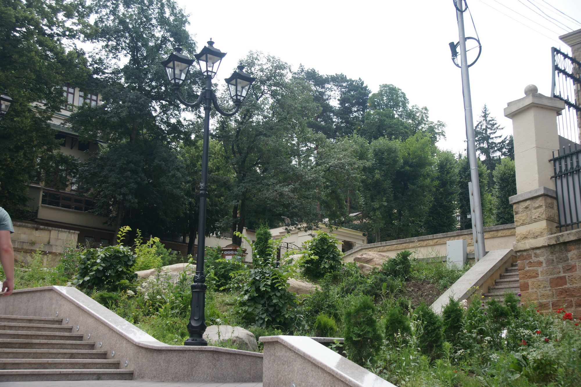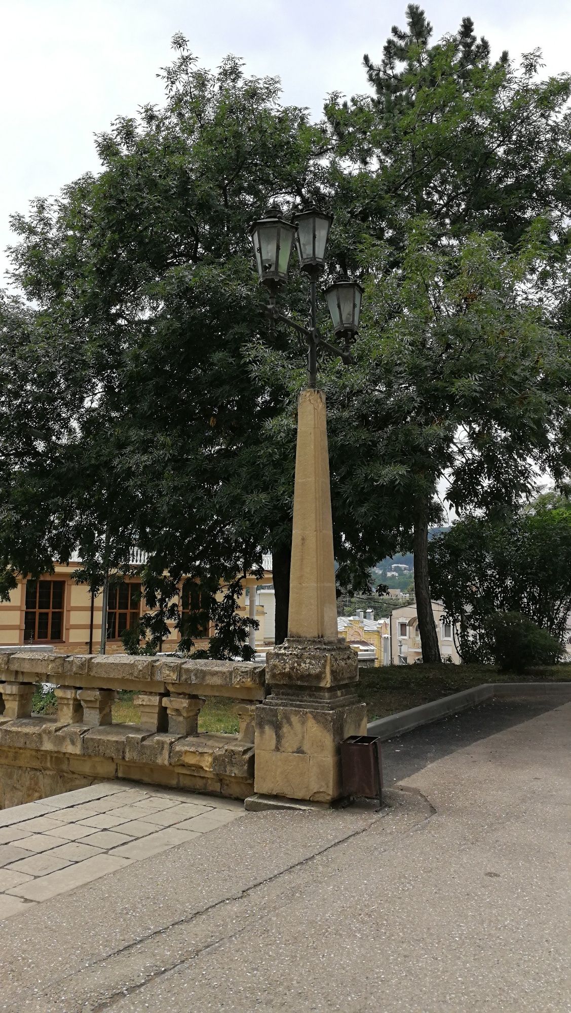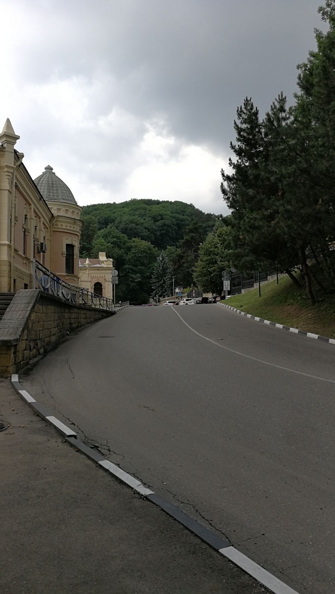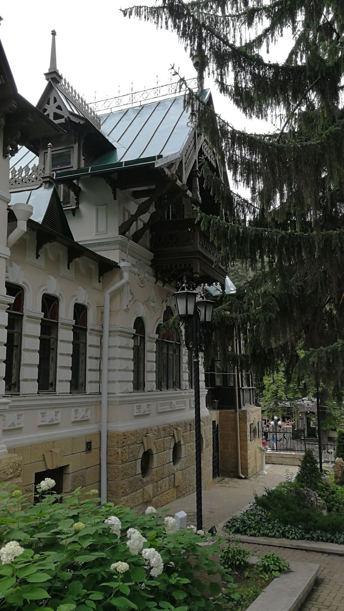 24 июля 2018 Дальше, мимо вокзала, по улицам Шаляпина, Герцена, Володарского и другим раскинулись самые разные "дачи" (в некоторых жили хозяева, их построившие, некоторые сдавались (причем зачастую одним и тем же семьям годами) и санатории. Практически каждое здание красиво и интересно. А учитывая рельеф местности, то все это еще и извивается между гор, забирается на них и ютится на обрывах или под скалами. Мы не обошли и половины этой части города, т.к. все же с детьми, а им интереснее парк, повзбираться и полазить. Но все же кое-что есть. Ну чтоб вы понимали, что простор для прогулок здесь тоже большой. Хоть и совсем не равнинный Сразу же у вокзала расположилась "Дача Шаляпина". Сейчас музей великого певца, а при его жизни дача, на которой он жил, будучи очень частым гостем Кисловодска. Здесь собирались его друзья, здесь он пел для них и жители часто могли слышать доносящийся из окон его голос. А однажды, говорят, он даже пел с балкона своей дачи для всех желающих и совершенно бесплатно. Мы в музей не пошли (попали уже в один из последних день и дети просто уже были не в состоянии ходить по музеям), но по отзывам, обстановка музея прекрасно иллюстрирует настроение и lifestyle тогдашнего отдыхающего бомонда. Но даже и снаружи посмотреть на этот живописный теремок весьма интересно. На пр-те Ленина возле санатория им.Семашко захватили кусочек вот такой вот стеночки. Выяснить что-то по поводу нее не удалось. Еще ул.Шаляпина, лестница, ведущая на Володарского и к Каскадной лестнице, ул.Володарского и далее неизведанными тонеллями и путями в направлении ул.Коминтерна, выходящнй к Нарзанной галерее - одной из старейших в плане курортной застройки. Именно здесь располагалась когда-то дача Реброва, "первопоселенца" Кисловодска. Сейчас от нее ничего не осталось, кроме металлического забора, огораживающего историческое место. Ну и просто пара фотографий. это ул.Вокзальная в районе Курзала (мостик ведет к детскому парку,. И что интересно, на этом месте детский парк находится уже много десятилетий. А дальше памятник местному писателю Андрею Терентьевичу Губину, воспевшему жизнь терского казачества в своей книге "Молоко волчицы" (не уступающей, по мнению очень и очень многих аналогу Шолохова, посвященному донскому казачеству) и "Грибок" - еще один бювет с минеральной водой, которая поступает здесь с глубины порядка 400м. В один из дней мы отправились в другую сторону от дома - по проспекту Мира, туда, где зарождался город и где были первые три его улицы. Здесь сохранилась совсем небольшая часть той самой крепости, что дала начало городу - в ней сейчас краеведческий музей. Застройка того времени был деревянной и не сохранилась. Но тем не менее, город здесь кардинально отличается от дачных и санаторных кварталов Ребровой балки, вокзала и т.д, которые я показывала выше. А учитывая, что первой целью мы выбрали Лермонтовский водопад (а что нам, по карте совсем недалеко!! Одна улица, другая и мы на месте. ну подумаешь, километра 3...наверное. Погуляем), то забрели мы вскоре совсем в частный сектор, где о туризме уже мало что напоминало (ну конечно, мы всегда и везде обязательно забредаем туда, куда нормальные люди не ходят!) Храм на фото выше - Свято-Никольский собор, один из крупнейших на Юге России. Он новый, 1993-2001гг постройки. Но построен на месте аналогичного собора, взорванного в 