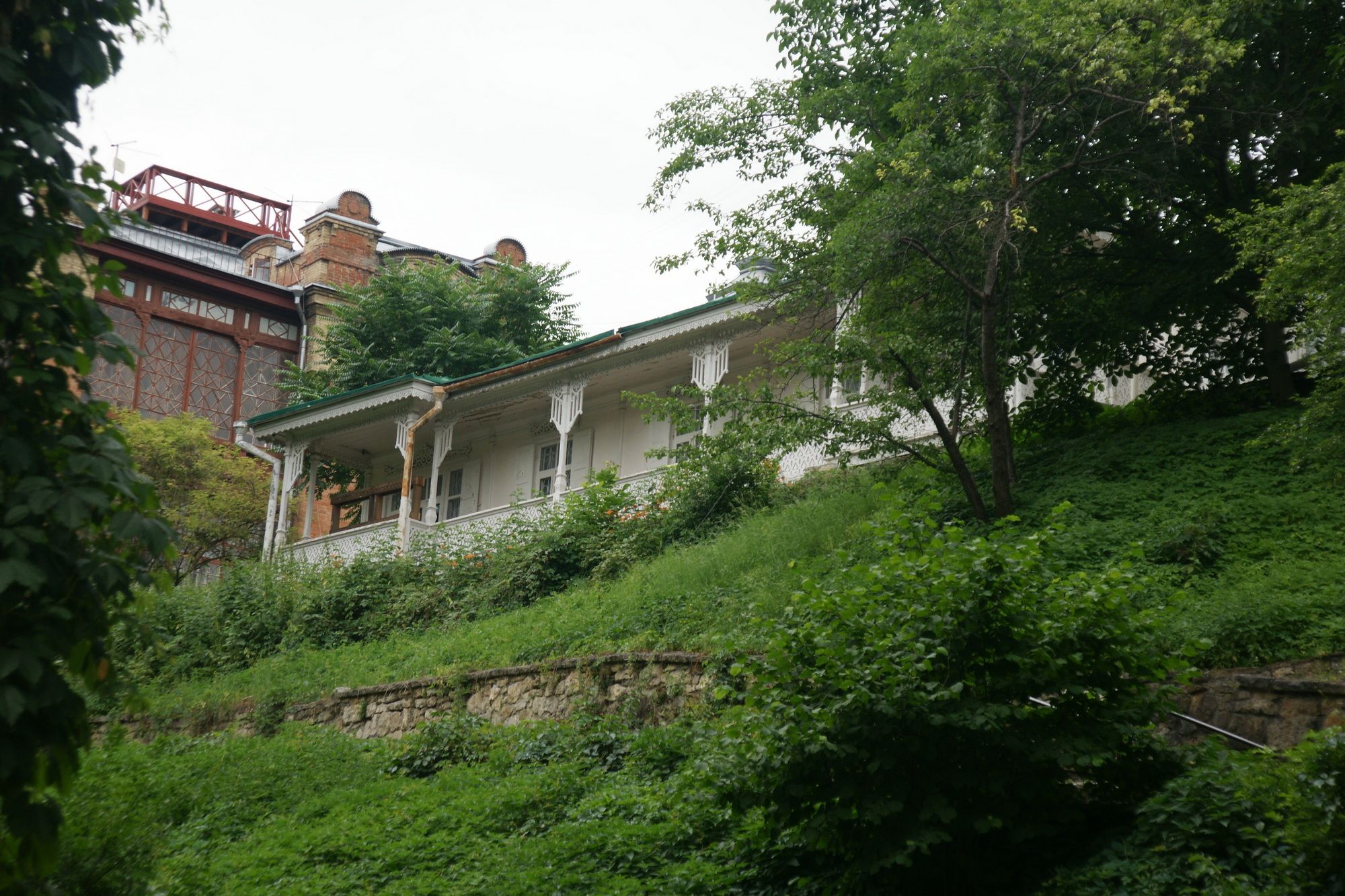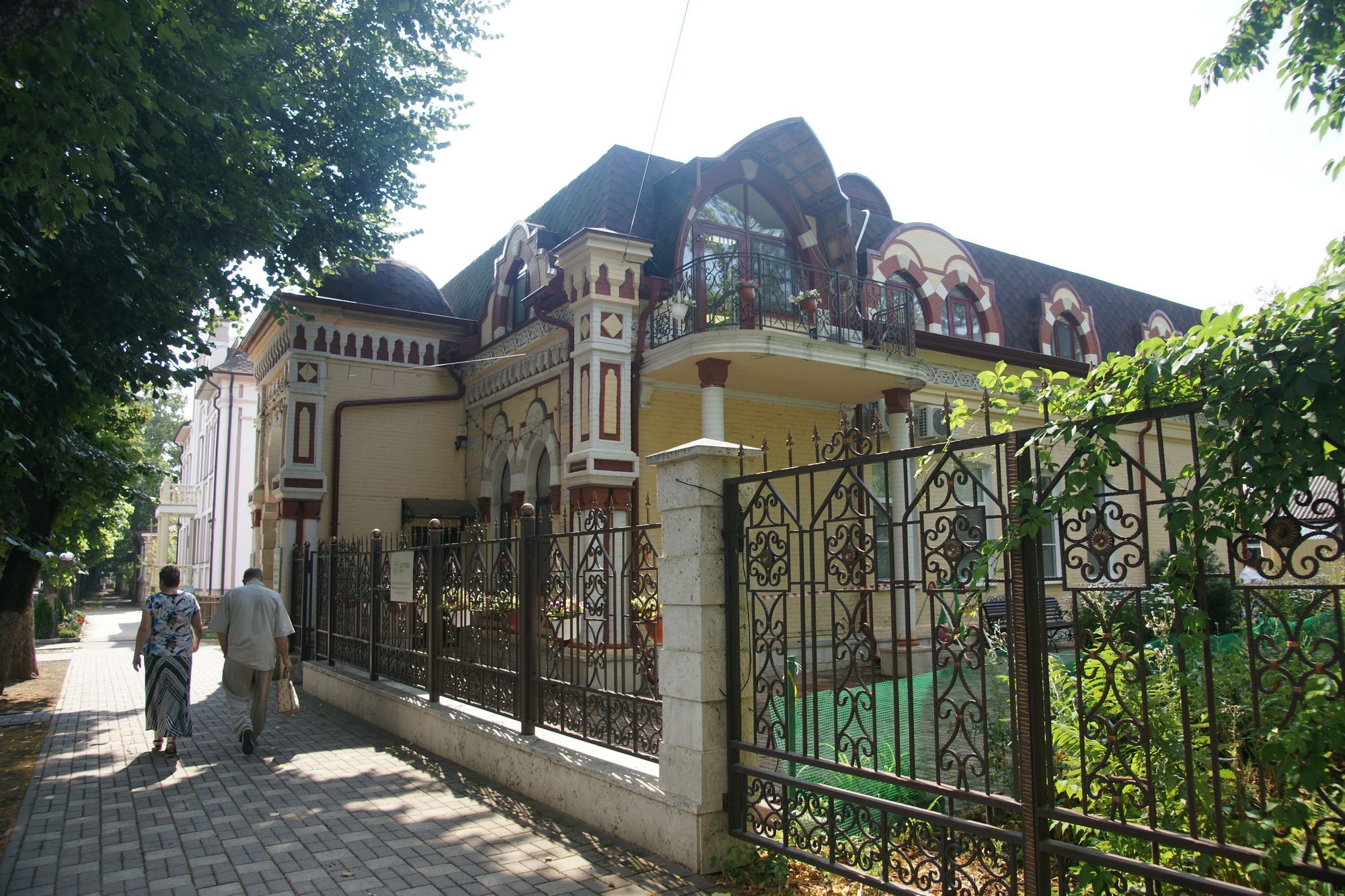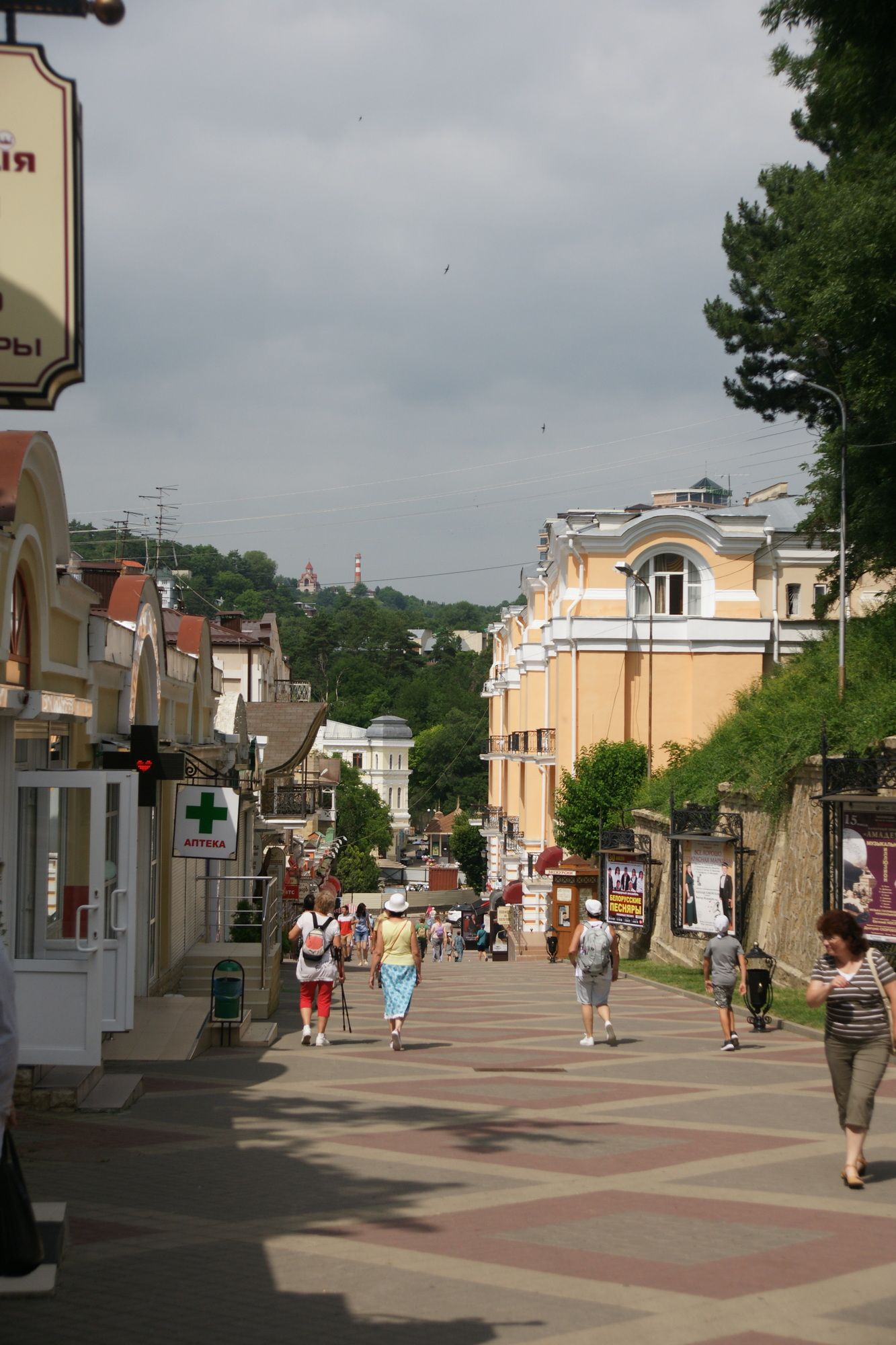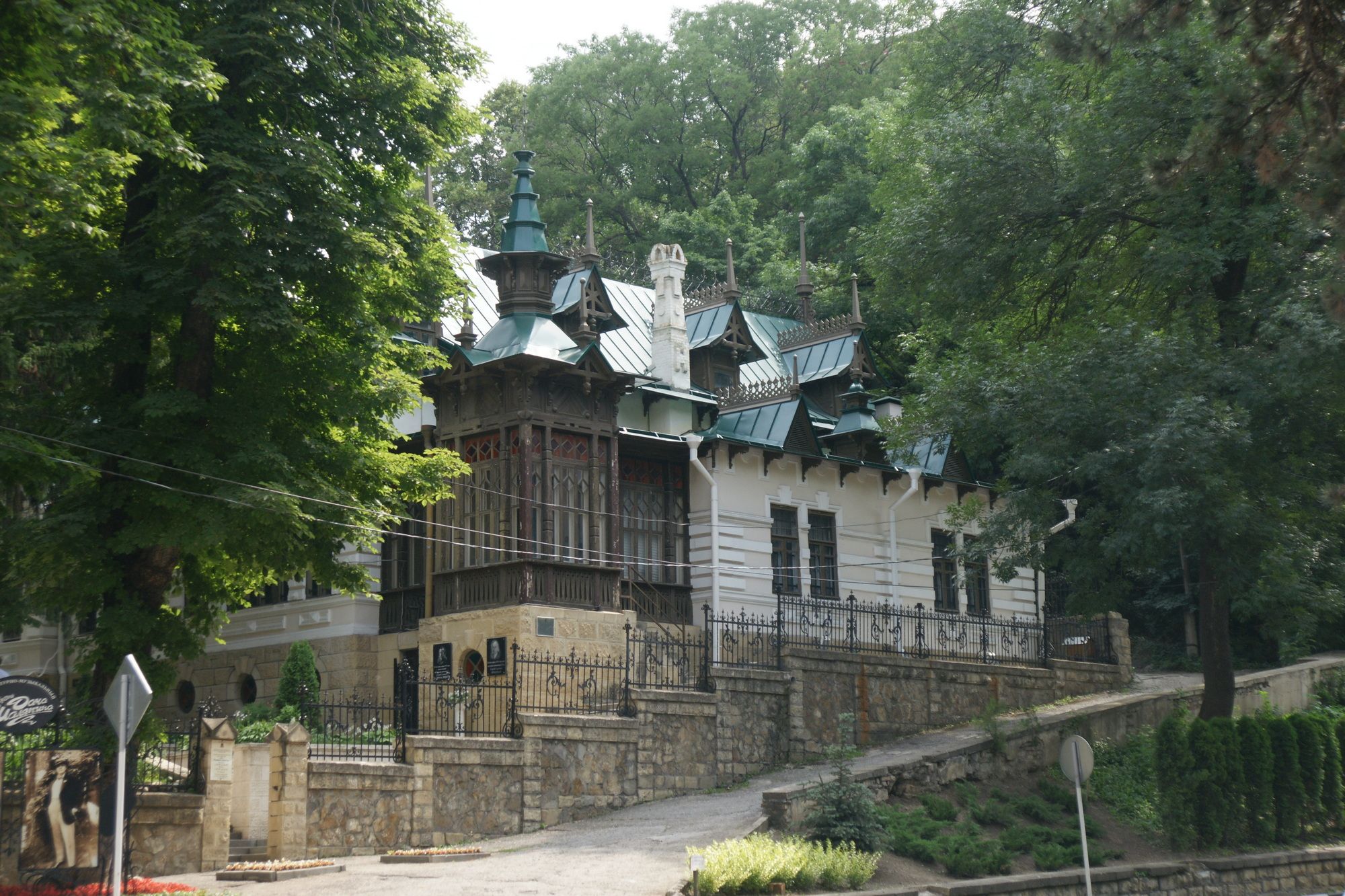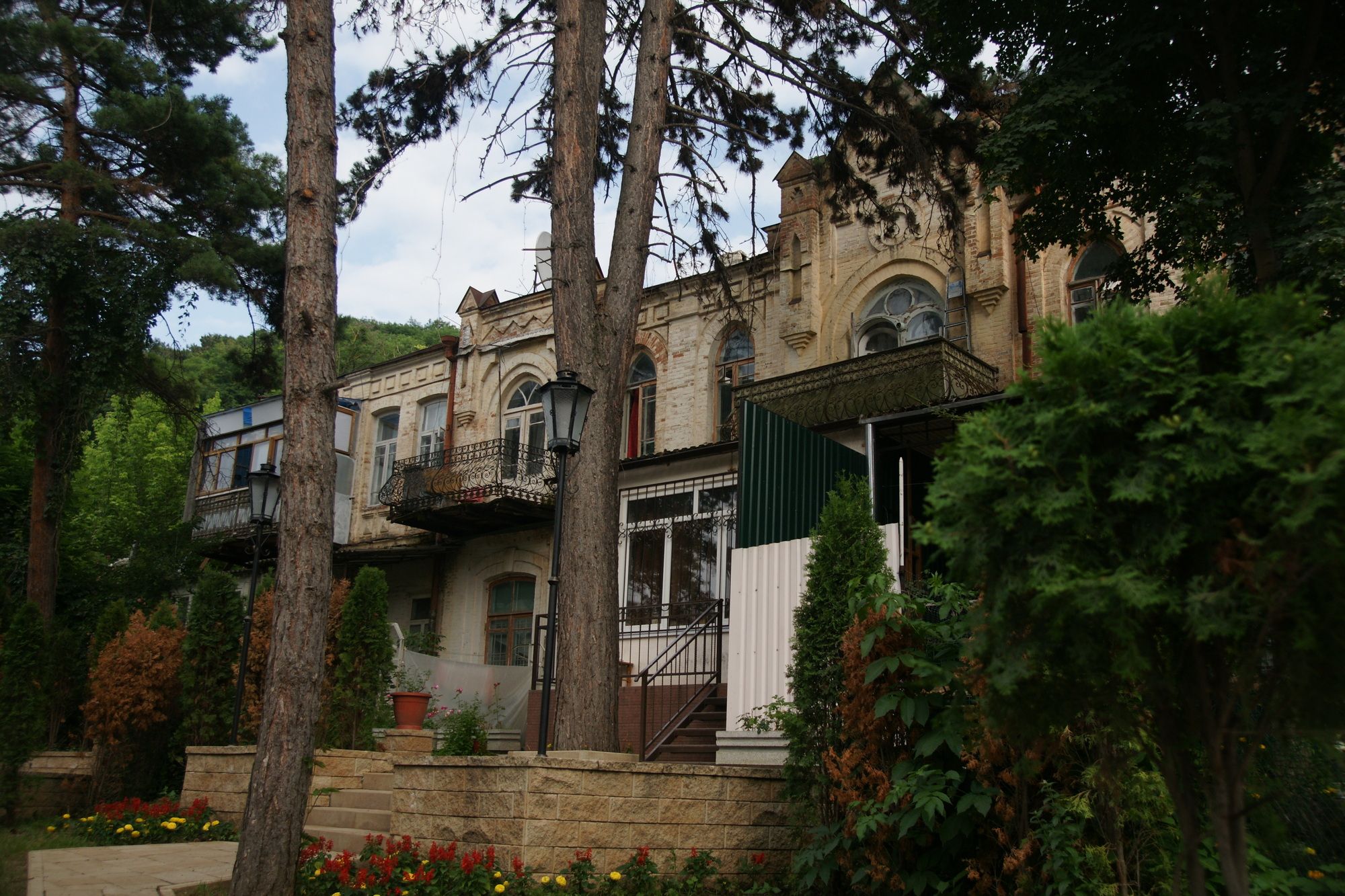24 июля 2018 Дальше, мимо вокзала, по улицам Шаляпина, Герцена, Володарского и другим раскинулись самые разные "дачи" (в некоторых жили хозяева, их построившие, некоторые сдавались (причем зачастую одним и тем же семьям годами) и санатории. Практически каждое здание красиво и интересно. А учитывая рельеф местности, то все это еще и извивается между гор, забирается на них и ютится на обрывах или под скалами. Мы не обошли и половины этой части города, т.к. все же с детьми, а им интереснее парк, повзбираться и полазить. Но все же кое-что есть. Ну чтоб вы понимали, что простор для прогулок здесь тоже большой. Хоть и совсем не равнинный Сразу же у вокзала расположилась "Дача Шаляпина". Сейчас музей великого певца, а при его жизни дача, на которой он жил, будучи очень частым гостем Кисловодска. Здесь собирались его друзья, здесь он пел для них и жители часто могли слышать доносящийся из окон его голос. А однажды, говорят, он даже пел с балкона своей дачи для всех желающих и совершенно бесплатно. Мы в музей не пошли (попали уже в один из последних день и дети просто уже были не в состоянии ходить по музеям), но по отзывам, обстановка музея прекрасно иллюстрирует настроение и lifestyle тогдашнего отдыхающего бомонда. Но даже и снаружи посмотреть на этот живописный теремок весьма интересно. На пр-те Ленина возле санатория им.Семашко захватили кусочек вот такой вот стеночки. Выяснить что-то по поводу нее не удалось. Еще ул.Шаляпина, лестница, ведущая на Володарского и к Каскадной лестнице, ул.Володарского и далее неизведанными тонеллями и путями в направлении ул.Коминтерна, выходящнй к Нарзанной галерее - одной из старейших в плане курортной застройки. Именно здесь располагалась когда-то дача Реброва, "первопоселенца" Кисловодска. Сейчас от нее ничего не осталось, кроме металлического забора, огораживающего историческое место. Ну и просто пара фотографий. это ул.Вокзальная в районе Курзала (мостик ведет к детскому парку,. И что интересно, на этом месте детский парк находится уже много десятилетий. А дальше памятник местному писателю Андрею Терентьевичу Губину, воспевшему жизнь терского казачества в своей книге "Молоко волчицы" (не уступающей, по мнению очень и очень многих аналогу Шолохова, посвященному донскому казачеству) и "Грибок" - еще один бювет с минеральной водой, которая поступает здесь с глубины порядка 400м. В один из дней мы отправились в другую сторону от дома - по проспекту Мира, туда, где зарождался город и где были первые три его улицы. Здесь сохранилась совсем небольшая часть той самой крепости, что дала начало городу - в ней сейчас краеведческий музей. Застройка того времени был деревянной и не сохранилась. Но тем не менее, город здесь кардинально отличается от дачных и санаторных кварталов Ребровой балки, вокзала и т.д, которые я показывала выше. А учитывая, что первой целью мы выбрали Лермонтовский водопад (а что нам, по карте совсем недалеко!! Одна улица, другая и мы на месте. ну подумаешь, километра 3...наверное. Погуляем), то забрели мы вскоре совсем в частный сектор, где о туризме уже мало что напоминало (ну конечно, мы всегда и везде обязательно забредаем туда, куда нормальные люди не ходят!) Храм на фото выше - Свято-Никольский собор, один из крупнейших на Юге России. Он новый, 1993-2001гг постройки. Но построен на месте аналогичного собора, взорванного в 