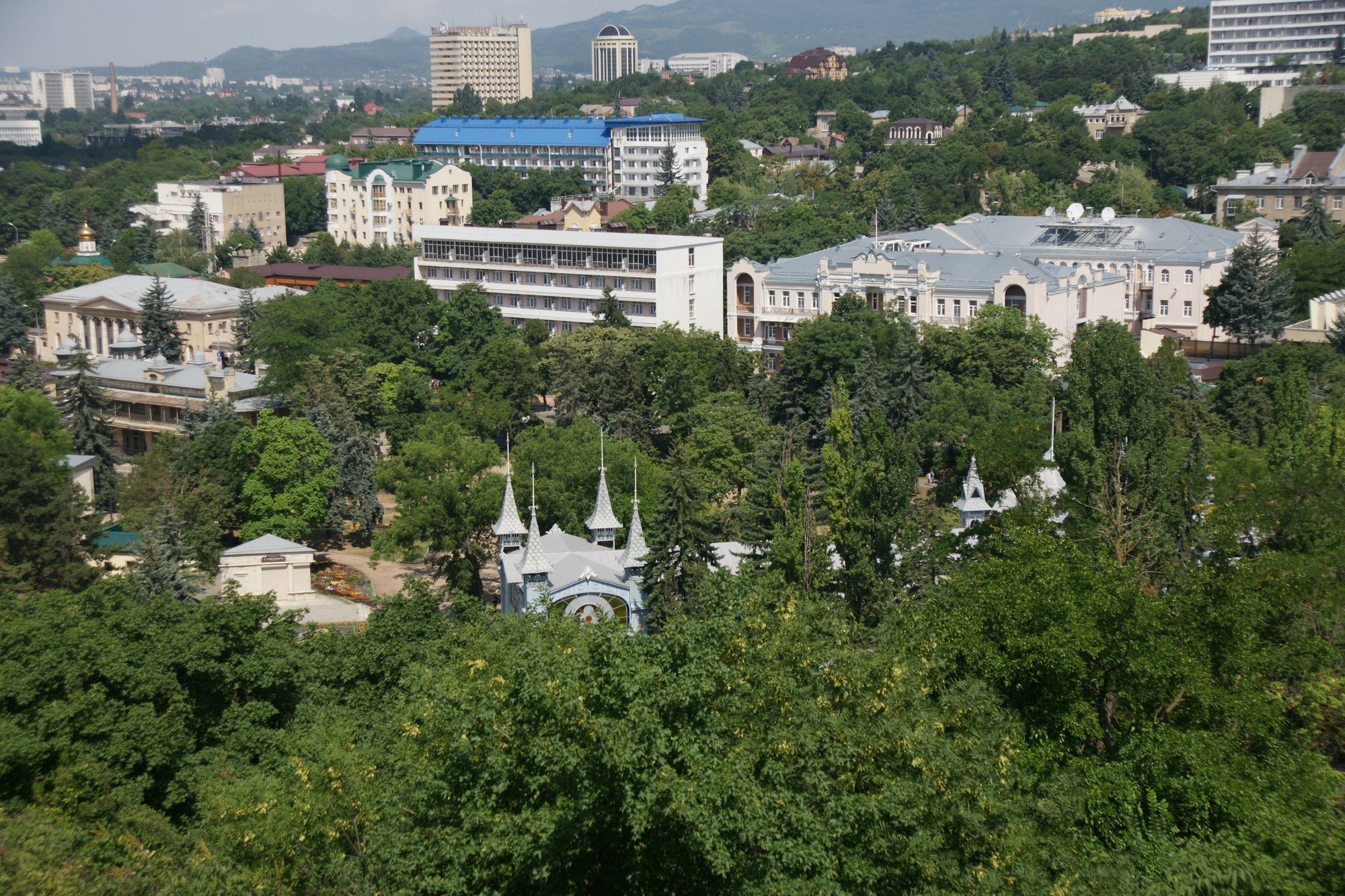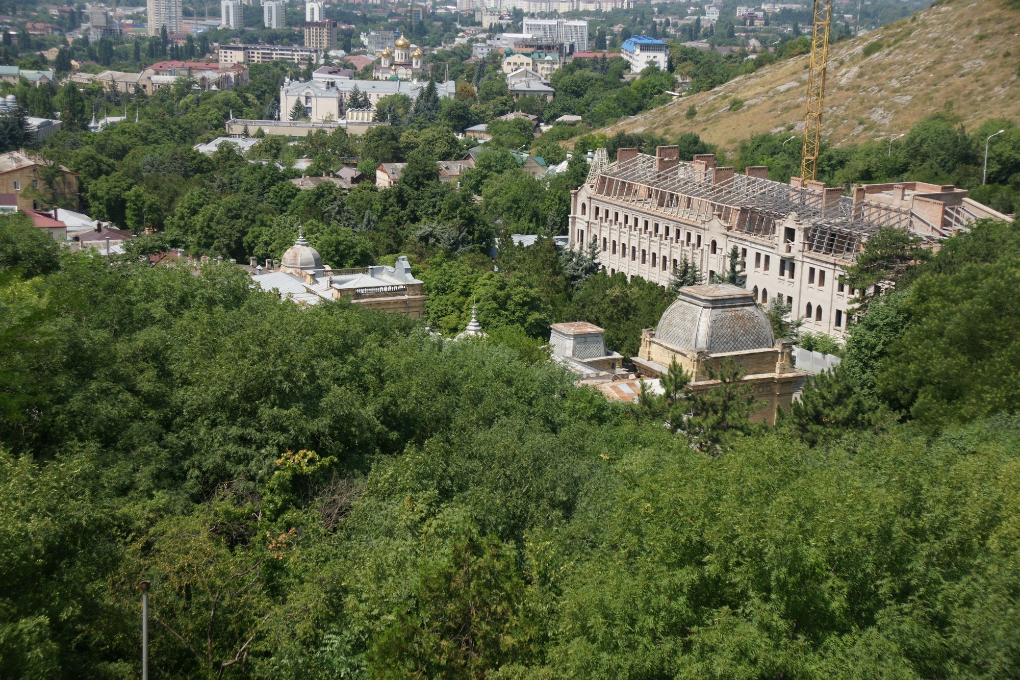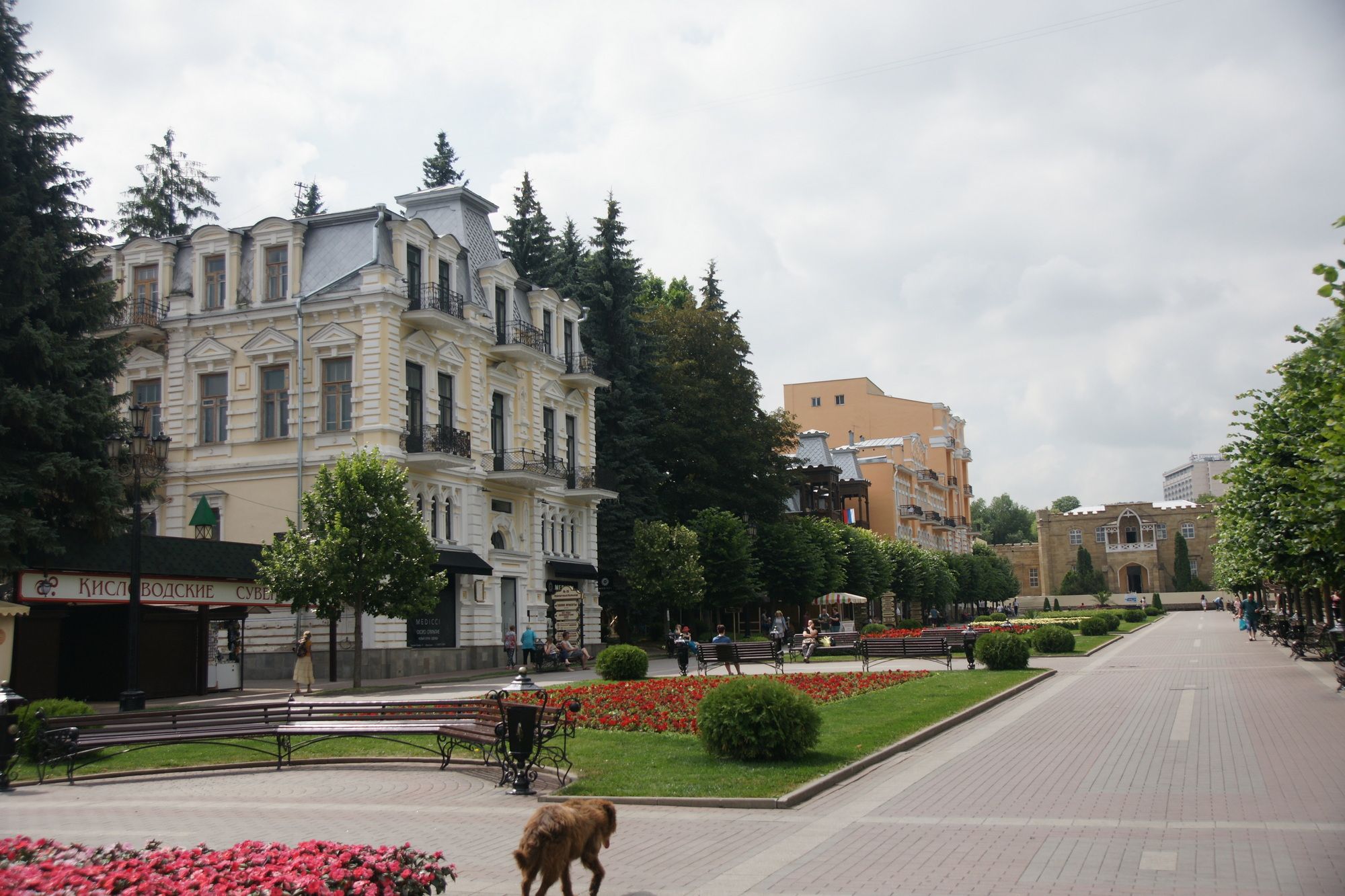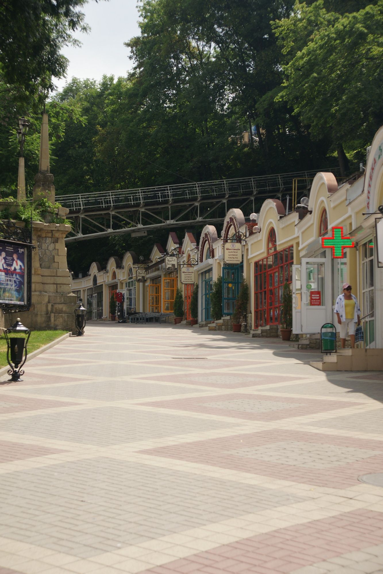 24 июля 2018 Дальше, мимо вокзала, по улицам Шаляпина, Герцена, Володарского и другим раскинулись самые разные "дачи" (в некоторых жили хозяева, их построившие, некоторые сдавались (причем зачастую одним и тем же семьям годами) и санатории. Практически каждое здание красиво и интересно. А учитывая рельеф местности, то все это еще и извивается между гор, забирается на них и ютится на обрывах или под скалами. Мы не обошли и половины этой части города, т.к. все же с детьми, а им интереснее парк, повзбираться и полазить. Но все же кое-что есть. Ну чтоб вы понимали, что простор для прогулок здесь тоже большой. Хоть и совсем не равнинный Сразу же у вокзала расположилась "Дача Шаляпина". Сейчас музей великого певца, а при его жизни дача, на которой он жил, будучи очень частым гостем Кисловодска. Здесь собирались его друзья, здесь он пел для них и жители часто могли слышать доносящийся из окон его голос. А однажды, говорят, он даже пел с балкона своей дачи для всех желающих и совершенно бесплатно. Мы в музей не пошли (попали уже в один из последних день и дети просто уже были не в состоянии ходить по музеям), но по отзывам, обстановка музея прекрасно иллюстрирует настроение и lifestyle тогдашнего отдыхающего бомонда. Но даже и снаружи посмотреть на этот живописный теремок весьма интересно. На пр-те Ленина возле санатория им.Семашко захватили кусочек вот такой вот стеночки. Выяснить что-то по поводу нее не удалось. Еще ул.Шаляпина, лестница, ведущая на Володарского и к Каскадной лестнице, ул.Володарского и далее неизведанными тонеллями и путями в направлении ул.Коминтерна, выходящнй к Нарзанной галерее - одной из старейших в плане курортной застройки. Именно здесь располагалась когда-то дача Реброва, "первопоселенца" Кисловодска. Сейчас от нее ничего не осталось, кроме металлического забора, огораживающего историческое место. Ну и просто пара фотографий. это ул.Вокзальная в районе Курзала (мостик ведет к детскому парку,. И что интересно, на этом месте детский парк находится уже много десятилетий. А дальше памятник местному писателю Андрею Терентьевичу Губину, воспевшему жизнь терского казачества в своей книге "Молоко волчицы" (не уступающей, по мнению очень и очень многих аналогу Шолохова, посвященному донскому казачеству) и "Грибок" - еще один бювет с минеральной водой, которая поступает здесь с глубины порядка 400м. В один из дней мы отправились в другую сторону от дома - по проспекту Мира, туда, где зарождался город и где были первые три его улицы. Здесь сохранилась совсем небольшая часть той самой крепости, что дала начало городу - в ней сейчас краеведческий музей. Застройка того времени был деревянной и не сохранилась. Но тем не менее, город здесь кардинально отличается от дачных и санаторных кварталов Ребровой балки, вокзала и т.д, которые я показывала выше. А учитывая, что первой целью мы выбрали Лермонтовский водопад (а что нам, по карте совсем недалеко!! Одна улица, другая и мы на месте. ну подумаешь, километра 3...наверное. Погуляем), то забрели мы вскоре совсем в частный сектор, где о туризме уже мало что напоминало (ну конечно, мы всегда и везде обязательно забредаем туда, куда нормальные люди не ходят!) Храм на фото выше - Свято-Никольский собор, один из крупнейших на Юге России. Он новый, 1993-2001гг постройки. Но построен на месте аналогичного собора, взорванного в 