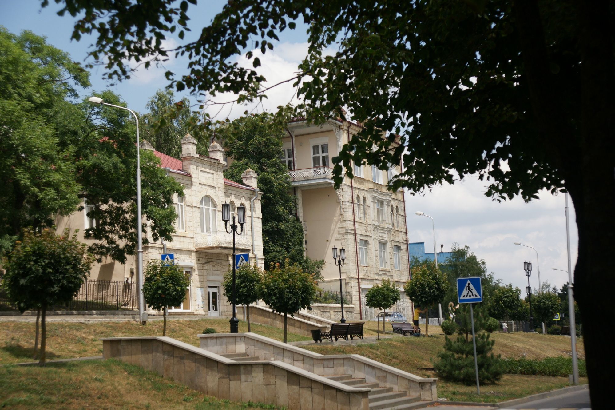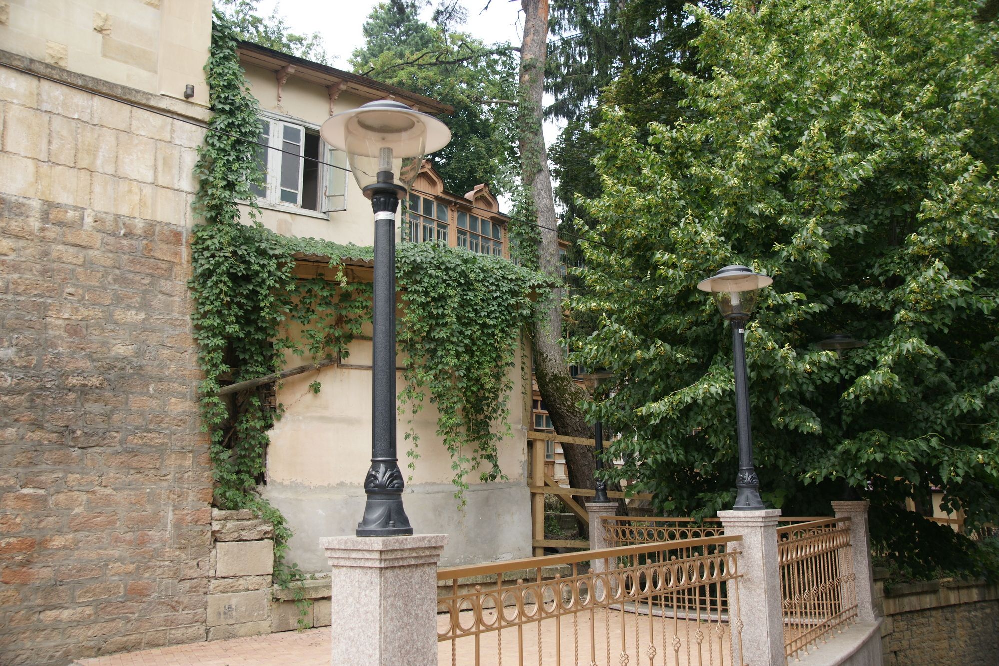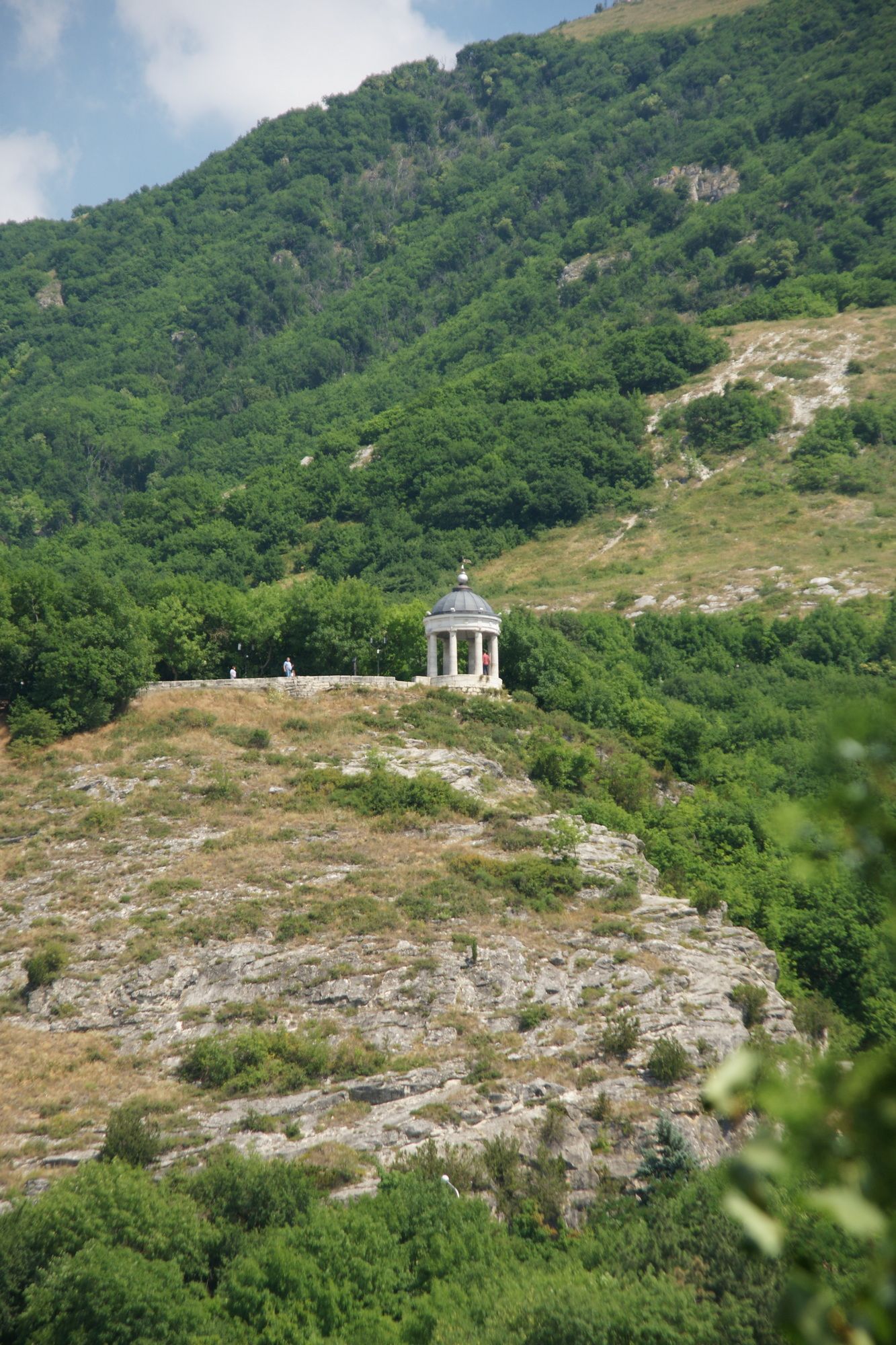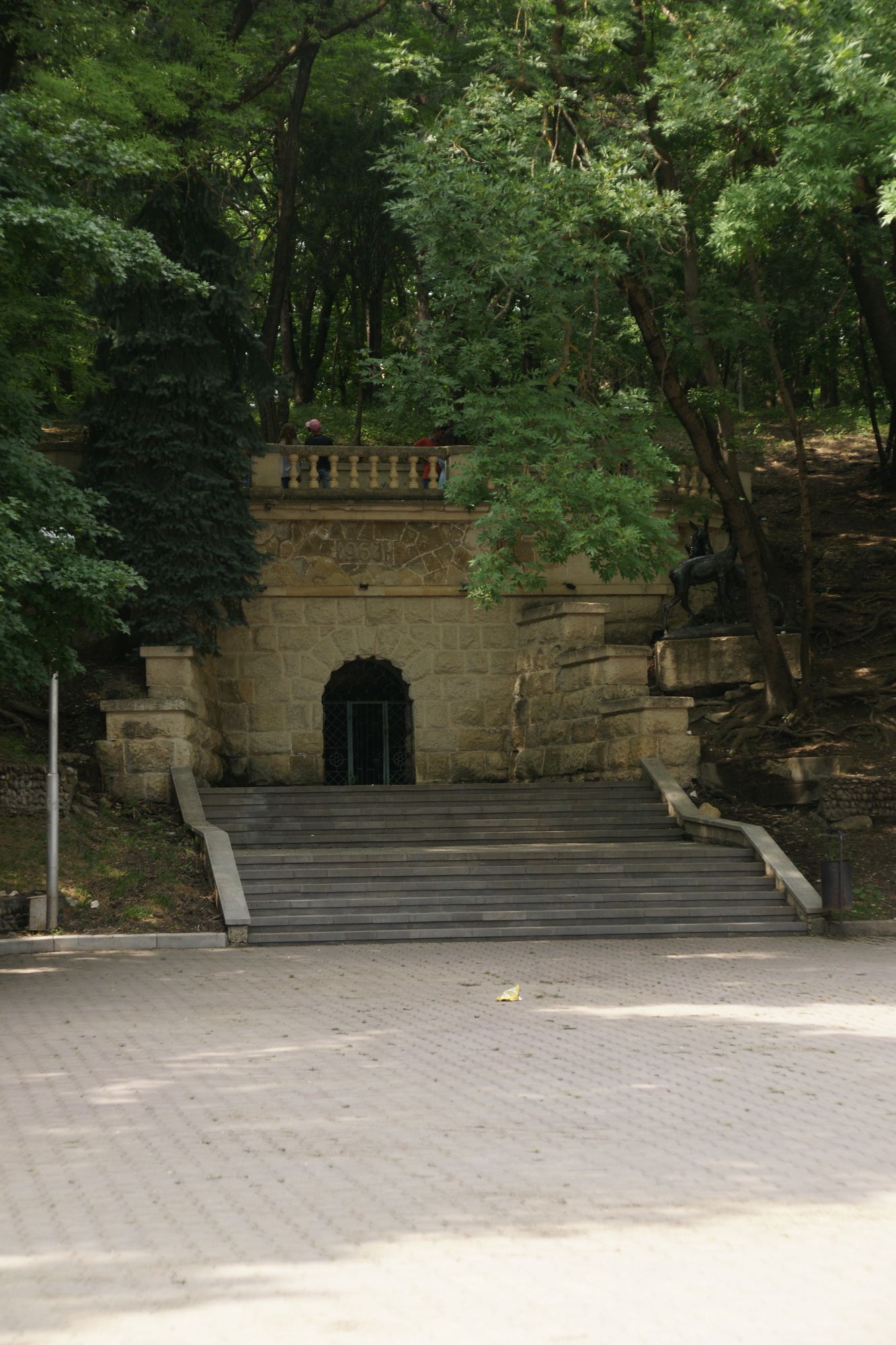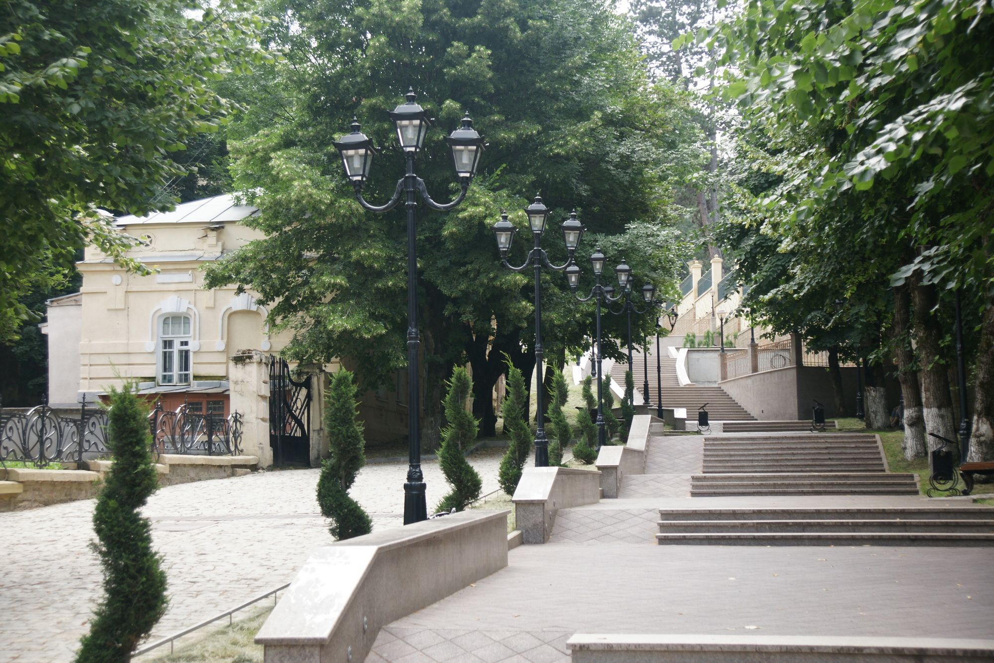24 июля 2018 Дальше, мимо вокзала, по улицам Шаляпина, Герцена, Володарского и другим раскинулись самые разные "дачи" (в некоторых жили хозяева, их построившие, некоторые сдавались (причем зачастую одним и тем же семьям годами) и санатории. Практически каждое здание красиво и интересно. А учитывая рельеф местности, то все это еще и извивается между гор, забирается на них и ютится на обрывах или под скалами. Мы не обошли и половины этой части города, т.к. все же с детьми, а им интереснее парк, повзбираться и полазить. Но все же кое-что есть. Ну чтоб вы понимали, что простор для прогулок здесь тоже большой. Хоть и совсем не равнинный Сразу же у вокзала расположилась "Дача Шаляпина". Сейчас музей великого певца, а при его жизни дача, на которой он жил, будучи очень частым гостем Кисловодска. Здесь собирались его друзья, здесь он пел для них и жители часто могли слышать доносящийся из окон его голос. А однажды, говорят, он даже пел с балкона своей дачи для всех желающих и совершенно бесплатно. Мы в музей не пошли (попали уже в один из последних день и дети просто уже были не в состоянии ходить по музеям), но по отзывам, обстановка музея прекрасно иллюстрирует настроение и lifestyle тогдашнего отдыхающего бомонда. Но даже и снаружи посмотреть на этот живописный теремок весьма интересно. На пр-те Ленина возле санатория им.Семашко захватили кусочек вот такой вот стеночки. Выяснить что-то по поводу нее не удалось. Еще ул.Шаляпина, лестница, ведущая на Володарского и к Каскадной лестнице, ул.Володарского и далее неизведанными тонеллями и путями в направлении ул.Коминтерна, выходящнй к Нарзанной галерее - одной из старейших в плане курортной застройки. Именно здесь располагалась когда-то дача Реброва, "первопоселенца" Кисловодска. Сейчас от нее ничего не осталось, кроме металлического забора, огораживающего историческое место. Ну и просто пара фотографий. это ул.Вокзальная в районе Курзала (мостик ведет к детскому парку,. И что интересно, на этом месте детский парк находится уже много десятилетий. А дальше памятник местному писателю Андрею Терентьевичу Губину, воспевшему жизнь терского казачества в своей книге "Молоко волчицы" (не уступающей, по мнению очень и очень многих аналогу Шолохова, посвященному донскому казачеству) и "Грибок" - еще один бювет с минеральной водой, которая поступает здесь с глубины порядка 400м. В один из дней мы отправились в другую сторону от дома - по проспекту Мира, туда, где зарождался город и где были первые три его улицы. Здесь сохранилась совсем небольшая часть той самой крепости, что дала начало городу - в ней сейчас краеведческий музей. Застройка того времени был деревянной и не сохранилась. Но тем не менее, город здесь кардинально отличается от дачных и санаторных кварталов Ребровой балки, вокзала и т.д, которые я показывала выше. А учитывая, что первой целью мы выбрали Лермонтовский водопад (а что нам, по карте совсем недалеко!! Одна улица, другая и мы на месте. ну подумаешь, километра 3...наверное. Погуляем), то забрели мы вскоре совсем в частный сектор, где о туризме уже мало что напоминало (ну конечно, мы всегда и везде обязательно забредаем туда, куда нормальные люди не ходят!) Храм на фото выше - Свято-Никольский собор, один из крупнейших на Юге России. Он новый, 1993-2001гг постройки. Но построен на месте аналогичного собора, взорванного в 