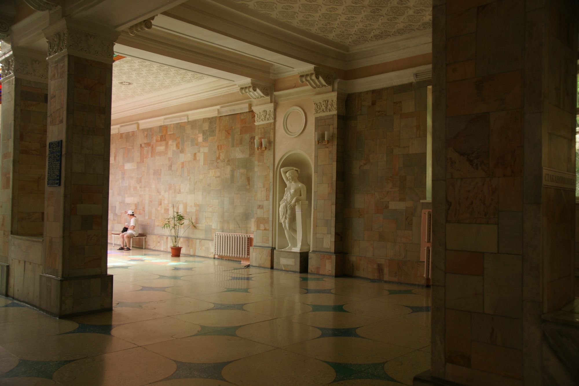 27 июля 2018 Пока есть минутка, напишу про Ессентуки. В Ессентуки мы поехали где-то в середине отпуска, когда наступил легкий передоз Кисловодским парком после сумасшедших прогулок и километражей первых дней. Хотели устроить себе отдых. И в общем-то задумка удалась. На электричке от Кисловодска до Ессентуков чуть меньше получаса, по ходу которых ты не только наблюдаешь, как горы превращаются в высокие холмы, но и спускаешься метров на 300. Вот перед тобой небольшой вокзал, напоминающий наши платформы электричек на не очень крупных станциях, только поспокойнее и красивее, и площадь перед ним. А на том конце площади уже виднеется вход в курортный парк. Но сразу в парк мы не пошли, а решили сначала немного погулять по городу. Что вам сказать? Уютно, зелено и спокойно. Т.к. город не зажат между гор, то здесь и тротуары шире, и зелени вдоль дорог побольше, и санатории и здания отодвинуты от тротуаров и спрятаны за деревьями. При этом здесь красивые старые здания периодически перемежаются с новостроями, а процент реставрированных зданий существенно ниже Кисловодска, некоторые корпуса части санаториев находятся в угрожающем состоянии (при этом на заборах сияют красивыми блестящими буквами длинные названия и лечебные аббревиатуры, что говорит о том, что путевки сюда активно продаются). Но все это совершенно не портит впечатления от города, просто скорее размышления на тему... Далее мы (совершенно случайно, если честно, я поразилась собственной неосведомленности) набрели на Грязелечебницу им.Семашко. Одна из крупнейших грязелечебниц КавМинВод и уж точно самая впечатляющая по архитектуре. Подражание Древнему Риму очевидно даже для полного профана в архитектурных стилях. 1915г постройки. На последних четырех фото - это вид сбоку, совершенно неочевидный спереди. Если б не любознательность детей, то может и не увидела бы я этого... И дальше парк. Получилось, что зашли мы в него с заднего входа. И пошли просто гулять. Парк здесь, конечно, совершенно крошечный, после кисловодского. Погулять неспешно часик или два от силы. И он скорее напоминает классические ЦПКиО советского образца с поправкой на то, что находится на курорте. Но все равно довольно приятный и полюбоваться здесь есть на что. Например, Николаевкие ванны 1898г постройки, где по-прежнему отпускаются бальнеологические процедуры (последние 4 фото) Беседки, скульптуры, архитектурные формы, целых 2 обязательных орла в разных уголках парка и колоритный Цандеровский институт механотерапии, где находятся (и действуют!) аппараты для лечения движением (тренажеры по-современному) многим из которых более 100 лет, со скамьей примирения перед ним. И, конечно же, источники минеральной воды. Ессентуки-17 отпускаются в очень красивом здании уже известного вам Самуила Уптона. Здесь не только офигенная по вкусу вода (совсем не то перегазированное "лекарство", что продается в бутылках и намного вкуснее сероводородных 17х ессентуков, что можно попробовать в Пятигорске, моя весьма и весьма разборчивая Настюша назвала местные ессентуки (17е и 4е) самой вкусной водой из всего попробованного), но и просто очень красивое место, как внутри так и снаружи. А уж как играет солнечный свет, проходя сквозь витражный потолок! А это павильон с 4ми Ессентуками. Совсем в другом стиле, но смотрится весьма гармонично в этом уголке парка. 