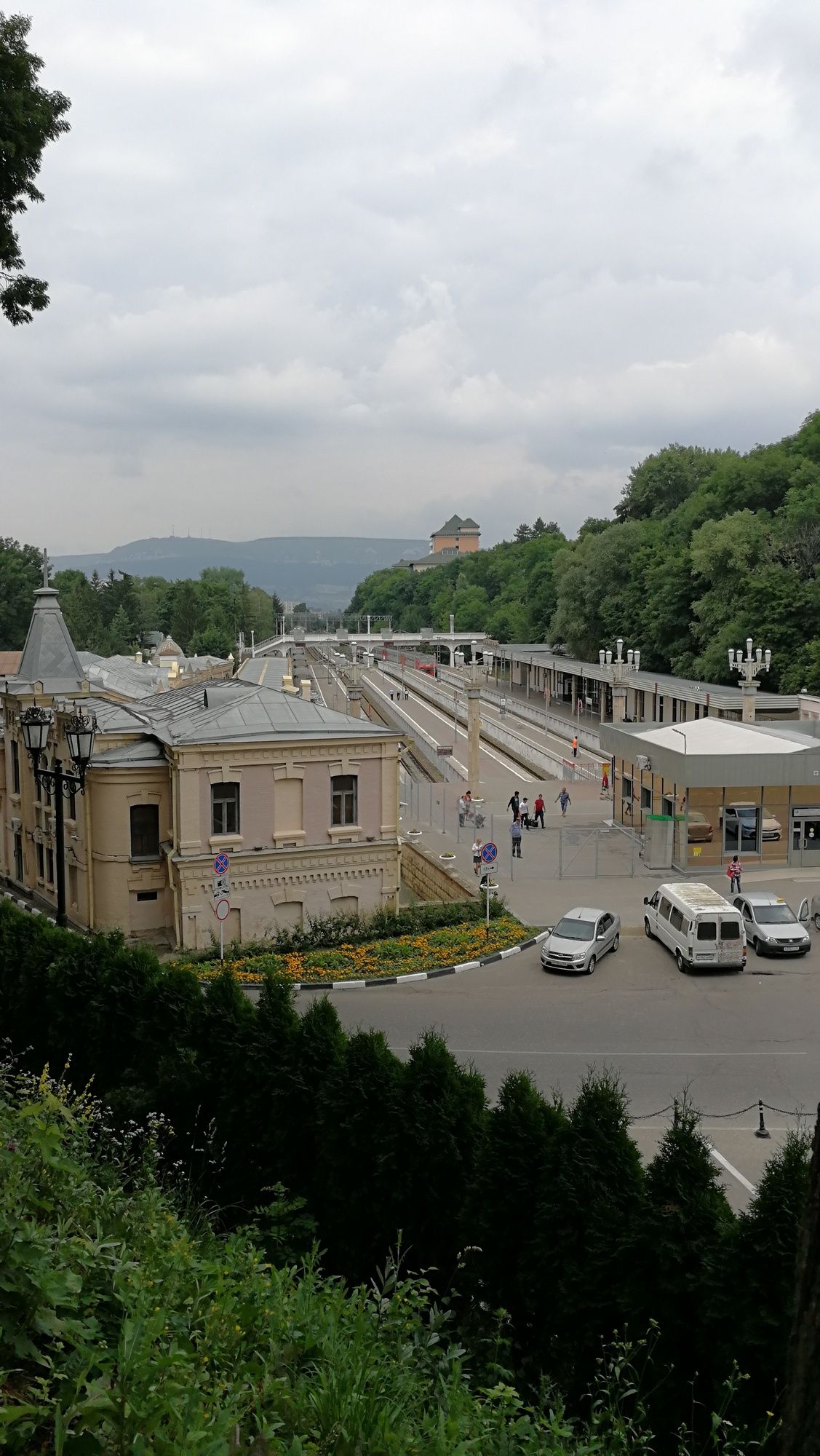 30 июля 2018 Пятигорск... На Пятигорск по плану мы отвели целый день. Мы поехали туда с утра пораньше, т.к. "галочек" на карте города наставили себе немало, и вернуться рассчитывали "хотя бы к 9ти вечера". Скажу сразу, восхитительных дифирамбов я городу петь не буду - он мне не понравился. Не понравился в целом, своей атмосферой и потребительским отношением ко всему: отдыхающим, природе, архитектурным памятникам и т.д. и т.п. Самое емкое, что мне приходит в голову - это "город-рынок". А самый яркий для меня пример, это иллюстрирующий, - это питьевые галереи Пятигорска. Помните я вам показывала Нарзанную галерею Кисловодска и Источник 17х Ессентуков в Ессентуках? Я их показывала не только снаружи, но и внутри! Потому что там красиво! И потому что там царит атмосфера, способствующая отдыху. Туда приятно зайти и действительно утолить жажду, отдохнуть. В Пятигорске мы заходили в несколько "пунктов отпуска минералки". Кругом одно и то же: краники с водой, плотно окруженные ларьками, палатками, витринами, где в хаотичном порядке навалена сувенирная продукция, идет бойкая торговля-навязывание, и, налив воды, тебе просто некуда даже отойти, чтобы не мешать следующему "пациенту". Именно пациенту, потому как это сумбур вызвал у меня стойкую ассоциацию с происходящим жутким бардаком в нашей городской поликлинике. Или взять старейшую улицу города, ныне проспект Кирова. Старинные красивые дома по обе стороны, деревья и пешеходная дорожка по середине. Но! На этой же середине стоят ларьки со всякой современной лабудой, от кафешек до связи и мигающих и вопящих игрушек, которые обязательно "надо впарить этим гуляющим кошелькам". Ларьки огромные, глухие, через них вторую сторону улицы не видно совершенно, не говоря уже о какой-то перспективе (а она там могла бы быть потрясающая!). А если идти по той стороне улицы, куда смотрят задние стенки этих ларьков, то там вообще мусор, бачки и курящие сотрудники на фоне однотонных охристых пластиковых стенок... Грустно и удручающе. Но! Я неисправимый оптимист (а скорее реалист, не желающий во что бы то ни стало портить себе и окружающим отдых и настроение), поэтому я нашла и много красивых кадров, и много интересного и обязательно сейчас все покажу! Итак, субботнее утро, нет и 9ти, улицы еще почти пустые, а вот солнышко уже припекает знатно. Мы вышли из электрички (50 минут езды от Кисловодска) и отправились по тому самому проспекту Кирова (а ранее Царская улица, чуть позже Романовский проспект и еще несколько более поздних вариантов). Почти в самом начале наткнулись на трамвайное депо, где через забор можно разглядеть старые вариации этого транспорта. Особенно интересен, конечно, открытый вагончик с подножками: история и книги тут же оживают в голове. Вообще, трамваи придают определенную живописность Пятигорским городским пейзажам. Хотя возможно, что все дело в моей давней любви к этому виду транспорта. В институтские годы я любила кататься на трамваях по Москве. Далее красивые домики (зачастую увешанные, правда, рекламой и отвратительными огромными разномастными вывесками) и исторические здания (по большей части в не очень хорошем состоянии), фонтан Гномы и парк Цветник, с которого мы и собирались начать "путь по достопримечательностям" Еще кусочек проспекта Кирова (от парка до Академической галереи) мы захватили немного позже. Здес
