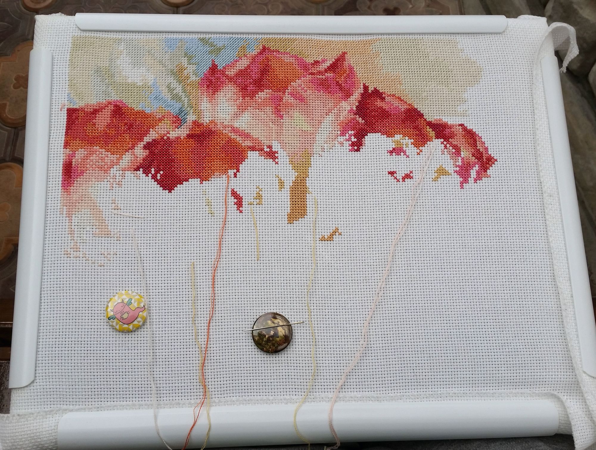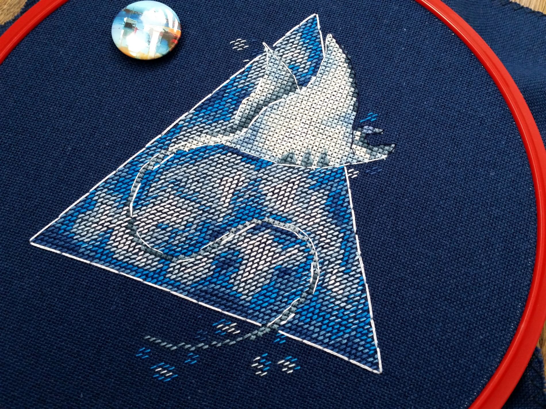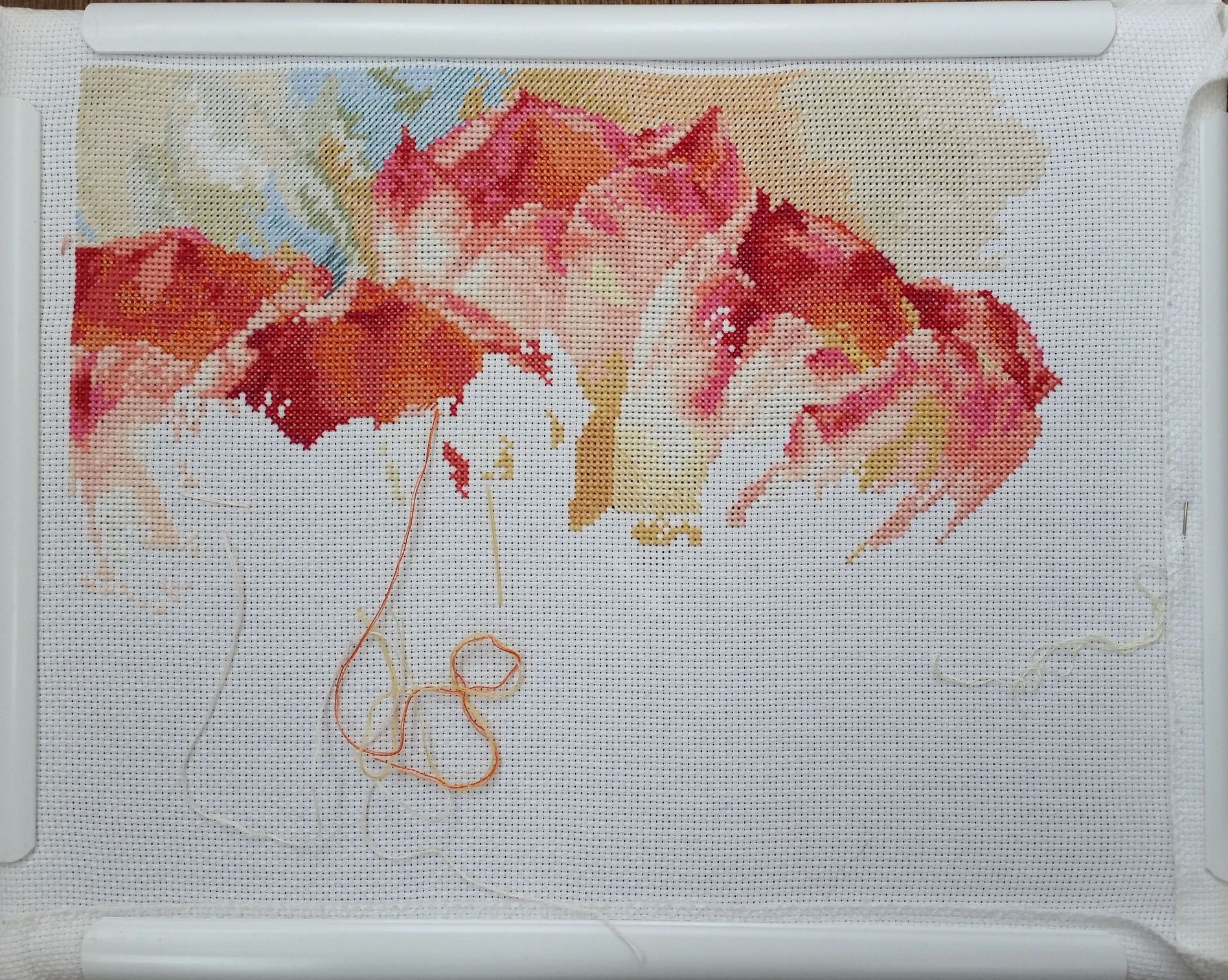 6 августа 2018 Воскресенье (было). Время вышивального отчета. Уже часа полтора как фотографии для него разбираю. Так что, готовьтесь. Будет все. Даже вытаскивание всех скелетов из шкафа хвостов на белый свет. Но сначала главное. Совершенство. Настроение. Лаконичность... Идеальность... Оформленные Корабли от Изабель Вотье, подаренные лучшими на свете подругами, вышитые мной и оформленные Ириной, лучшим мастером, без которого я уже и не мыслю свою вышивальную жизнь и которая умеет читать мои мысли... Теперь вернемся к отпуску. Поезд отправлялся с вокзала в 8 утра, из дома выходить в 6, вставать в 5, а ложиться... ну я ж вышивальщица.... И вот буквально накануне отъезда меня просто накрыло сумасшествие по поводу одного дизайна. Дизайна отчасти "мозголомательного", как многое из того, что рисует Даша Понедельникова (художница), но нереально мощного по энергетике... для тех, кому эта энергетика близка. И вот, последнюю ночь перед отъездом собрав все сумки и поставив будильник, чтоб не "провышивать" подъем, я буквально оторвалась от земли реальности, уйдя в нирвану, которую способны понять только такие же "больные" на всю голову вышивальщицы (т.е. вы! ). Первые полукрестики ложатся на основу, сливаясь с ней в цветовом танце, оттенки перетекают один в другой, игла летает туда и сюда.... Потом мы уехали. А по возвращении я с новыми силами, но немного успокоившись, первым делом взялась завершить то, что началось так стремительно... Анастасия Еремеева, "Скат" из серии "Изящный дуэт" 14 оттенков и 1 бленд, 67х80 крестиков и 11.5*14см на темно-синей Бритни. Скрин: Процесс: И красивые финальные фото после стирки-глажки: Результат...результат мне нравится. Хоть я и вижу некоторые вещи, которые могут вызвать вопросы и сомнения. Но, по большому счету, это совершенно неважно. Т.к. это был порыв и эмоциональная необходимость, а значит часть меня и моей жизни. Это было чистое удовольствие от процесса, от прихотливых цветовых переходов, от того, как оттенки взаимодействуют с основой, от того, как постепенно проявлялся силуэт центрального персонажа, от... это просто было здорово. И более того, история еще не завершена. Я обязательно рано или поздно вышью вторую половинку "Изящного дуэта"! Что я делала непосредственно перед отпуском, вы теперь знаете. Движемся дальше. И вот мы в поезде. И, конечно, со мной вышивка! Ехать сутки, поэтому я взяла с собой не самый маленький процесс. Но достаточно простой с технической точки зрения, чтобы свободно вышивать его в поезде. Поэтому продолжение одного из самых древних моих долгостороев: Тюльпаны от Алисы. было: и стало 1 и стало 2: Вот парадокс: мне очень нравится! и процесс, и то, что выходит. Но... процесс снова отодвинулся на второй план по возвращении... Про мои вышивальные покупки в Ессентуках вы уже в курсе. Равно как и про то, что Женя очень просил вышить индианку от Ланарте. Вот честно, сначала она вызвала у меня недоумение из-за выражения лица и я не соглашалась ее покупать и тем более вышивать. Но Женя спорил с моими "аргументами" столь воодушевленно, что я нехотя согласилась ее купить (он редко что тааак просит), мысленно аргументируя тем, что я ж давно Ланарт хотела попробовать. И чем больше я ее потом рассматривала, перебирала ниточки, тем больше во мне крепло желание ее поскорее начать. Это была почти мания. И вот в тот самый единственный дождливый день, 