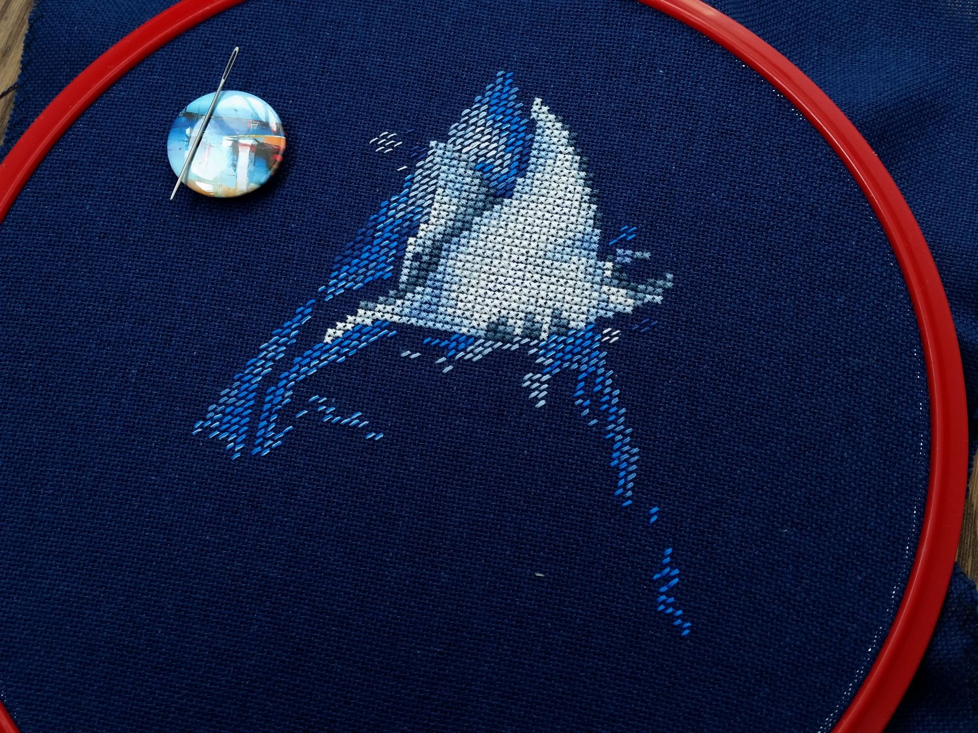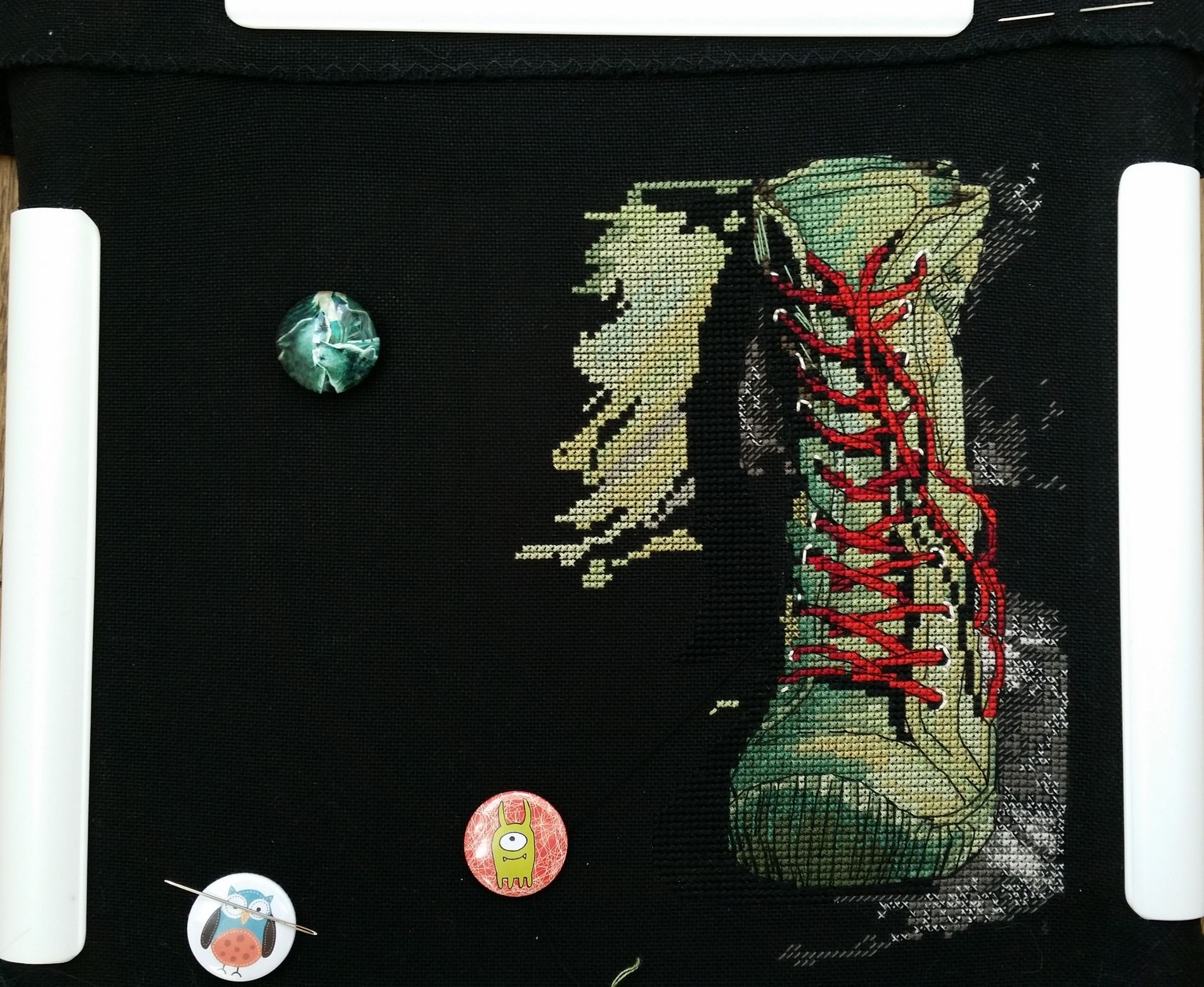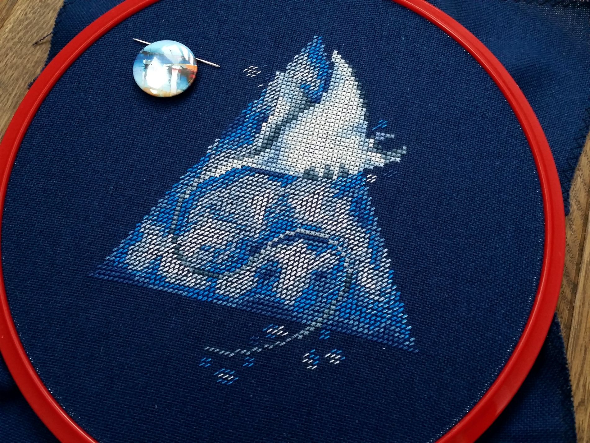 6 августа 2018 Воскресенье (было). Время вышивального отчета. Уже часа полтора как фотографии для него разбираю. Так что, готовьтесь. Будет все. Даже вытаскивание всех скелетов из шкафа хвостов на белый свет. Но сначала главное. Совершенство. Настроение. Лаконичность... Идеальность... Оформленные Корабли от Изабель Вотье, подаренные лучшими на свете подругами, вышитые мной и оформленные Ириной, лучшим мастером, без которого я уже и не мыслю свою вышивальную жизнь и которая умеет читать мои мысли... Теперь вернемся к отпуску. Поезд отправлялся с вокзала в 8 утра, из дома выходить в 6, вставать в 5, а ложиться... ну я ж вышивальщица.... И вот буквально накануне отъезда меня просто накрыло сумасшествие по поводу одного дизайна. Дизайна отчасти "мозголомательного", как многое из того, что рисует Даша Понедельникова (художница), но нереально мощного по энергетике... для тех, кому эта энергетика близка. И вот, последнюю ночь перед отъездом собрав все сумки и поставив будильник, чтоб не "провышивать" подъем, я буквально оторвалась от земли реальности, уйдя в нирвану, которую способны понять только такие же "больные" на всю голову вышивальщицы (т.е. вы! ). Первые полукрестики ложатся на основу, сливаясь с ней в цветовом танце, оттенки перетекают один в другой, игла летает туда и сюда.... Потом мы уехали. А по возвращении я с новыми силами, но немного успокоившись, первым делом взялась завершить то, что началось так стремительно... Анастасия Еремеева, "Скат" из серии "Изящный дуэт" 14 оттенков и 1 бленд, 67х80 крестиков и 11.5*14см на темно-синей Бритни. Скрин: Процесс: И красивые финальные фото после стирки-глажки: Результат...результат мне нравится. Хоть я и вижу некоторые вещи, которые могут вызвать вопросы и сомнения. Но, по большому счету, это совершенно неважно. Т.к. это был порыв и эмоциональная необходимость, а значит часть меня и моей жизни. Это было чистое удовольствие от процесса, от прихотливых цветовых переходов, от того, как оттенки взаимодействуют с основой, от того, как постепенно проявлялся силуэт центрального персонажа, от... это просто было здорово. И более того, история еще не завершена. Я обязательно рано или поздно вышью вторую половинку "Изящного дуэта"! Что я делала непосредственно перед отпуском, вы теперь знаете. Движемся дальше. И вот мы в поезде. И, конечно, со мной вышивка! Ехать сутки, поэтому я взяла с собой не самый маленький процесс. Но достаточно простой с технической точки зрения, чтобы свободно вышивать его в поезде. Поэтому продолжение одного из самых древних моих долгостороев: Тюльпаны от Алисы. было: и стало 1 и стало 2: Вот парадокс: мне очень нравится! и процесс, и то, что выходит. Но... процесс снова отодвинулся на второй план по возвращении... Про мои вышивальные покупки в Ессентуках вы уже в курсе. Равно как и про то, что Женя очень просил вышить индианку от Ланарте. Вот честно, сначала она вызвала у меня недоумение из-за выражения лица и я не соглашалась ее покупать и тем более вышивать. Но Женя спорил с моими "аргументами" столь воодушевленно, что я нехотя согласилась ее купить (он редко что тааак просит), мысленно аргументируя тем, что я ж давно Ланарт хотела попробовать. И чем больше я ее потом рассматривала, перебирала ниточки, тем больше во мне крепло желание ее поскорее начать. Это была почти мания. И вот в тот самый единственный дождливый день, 