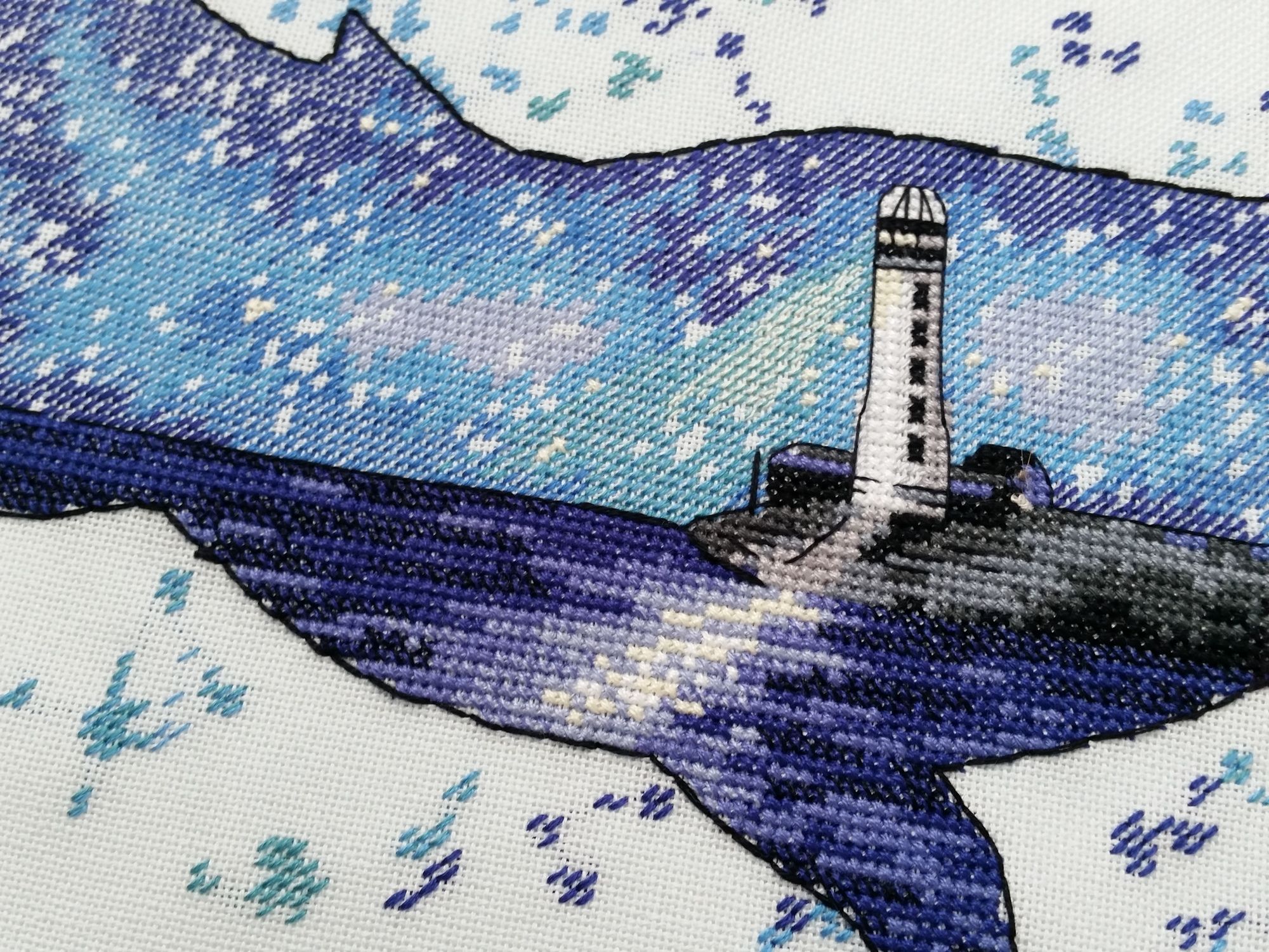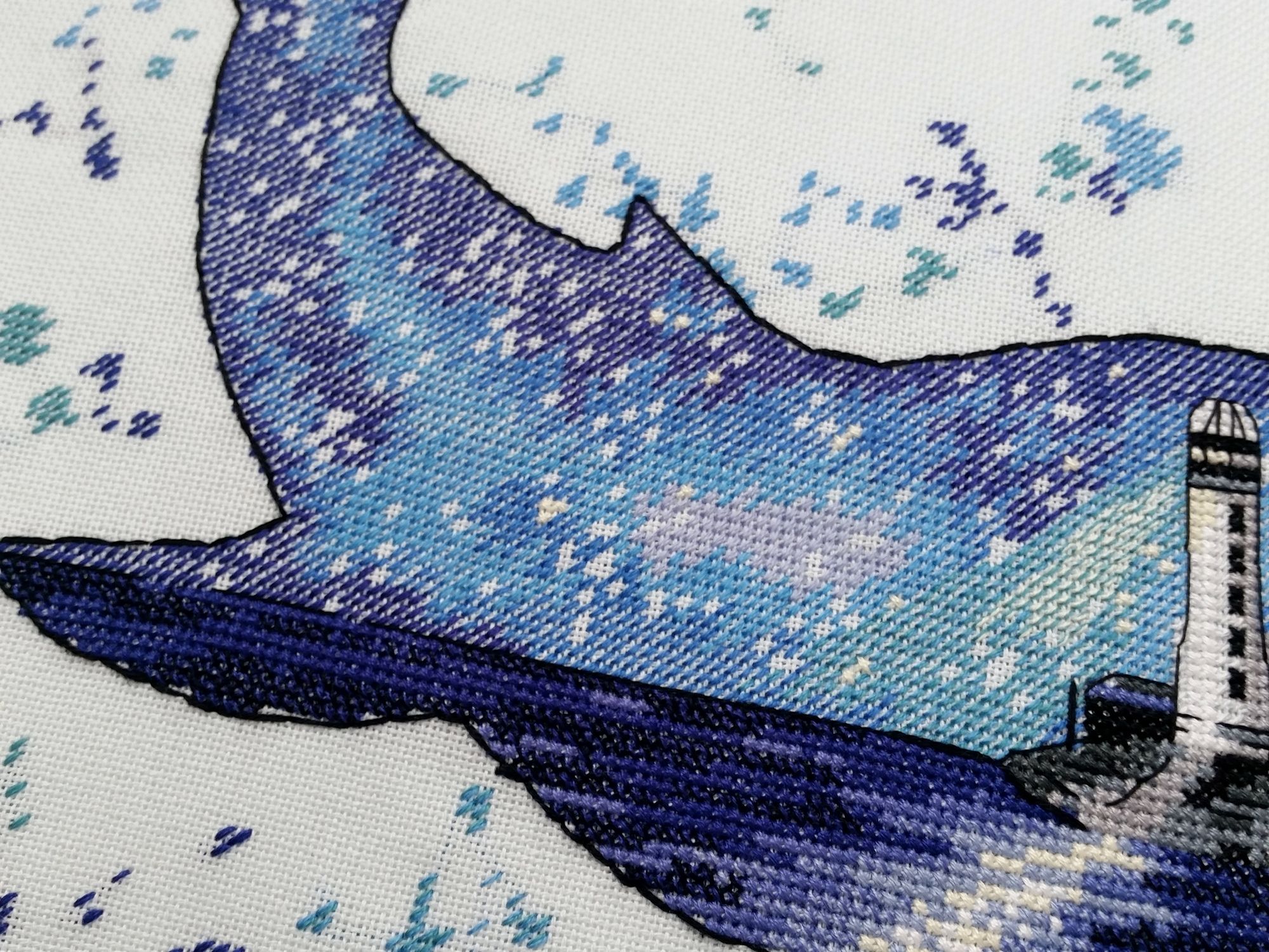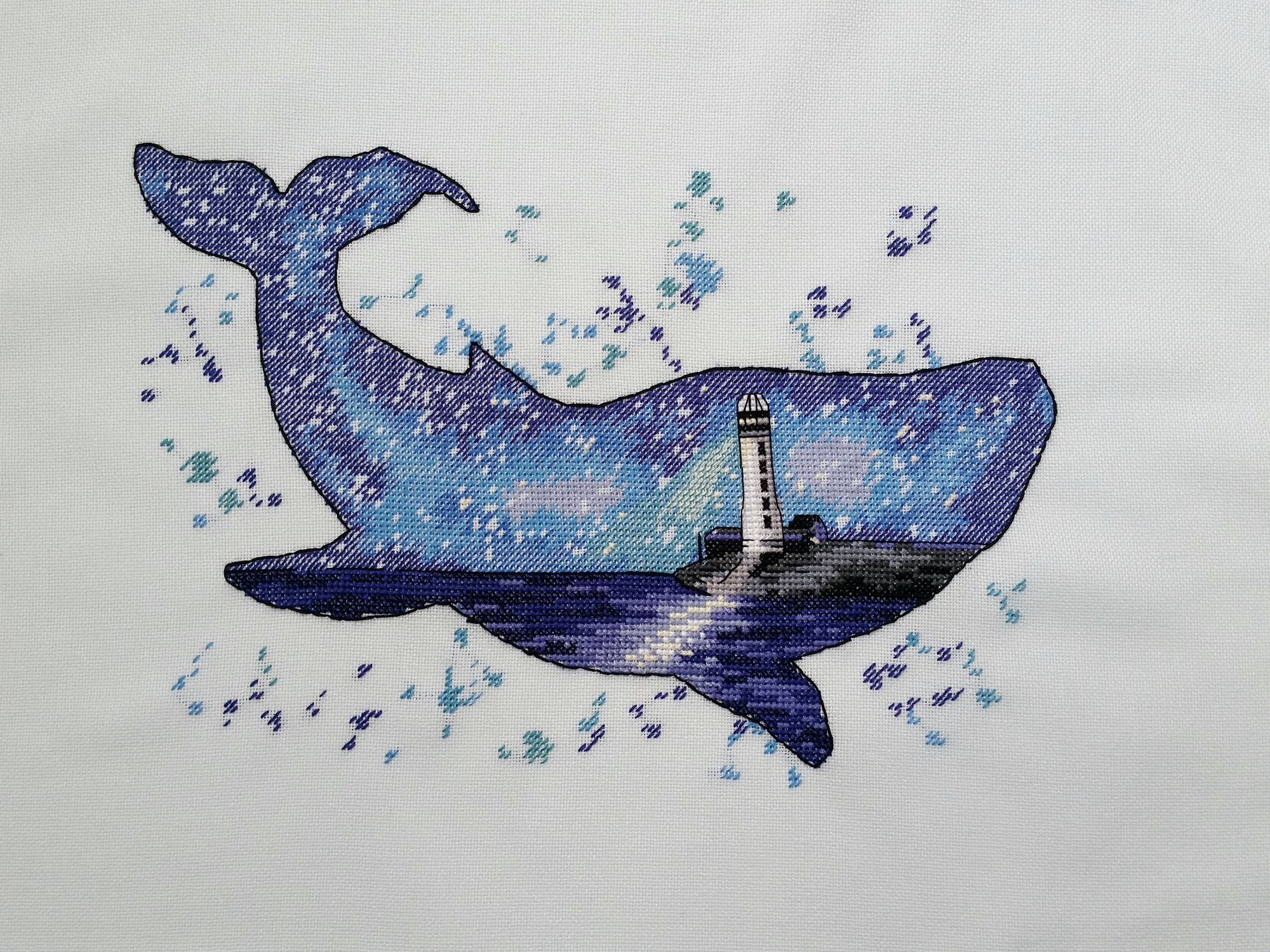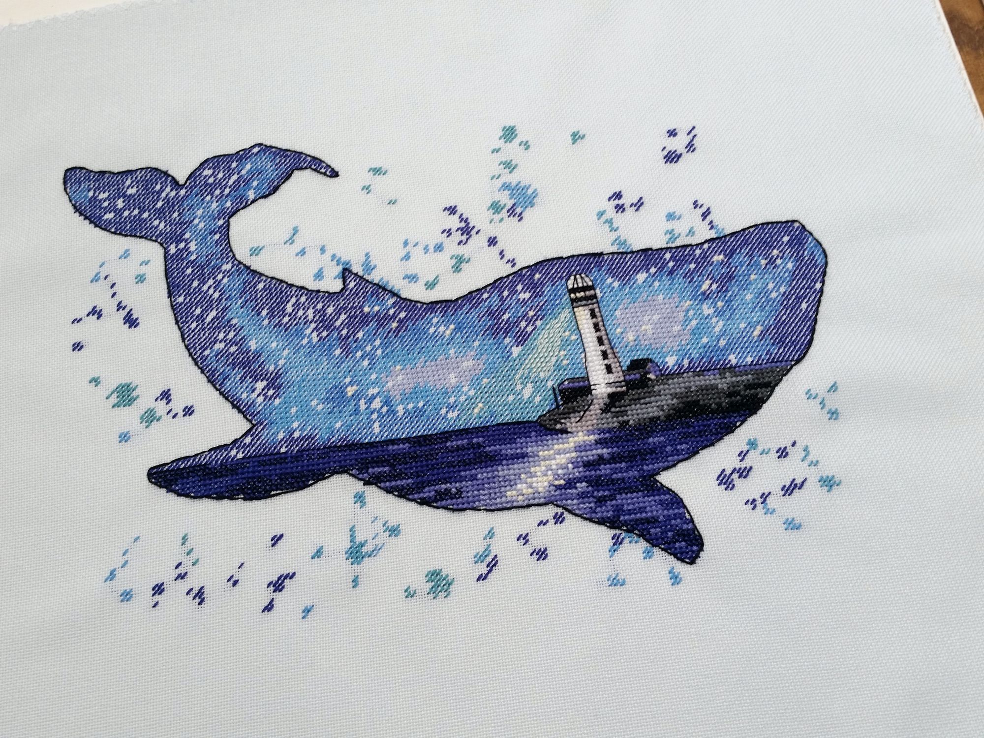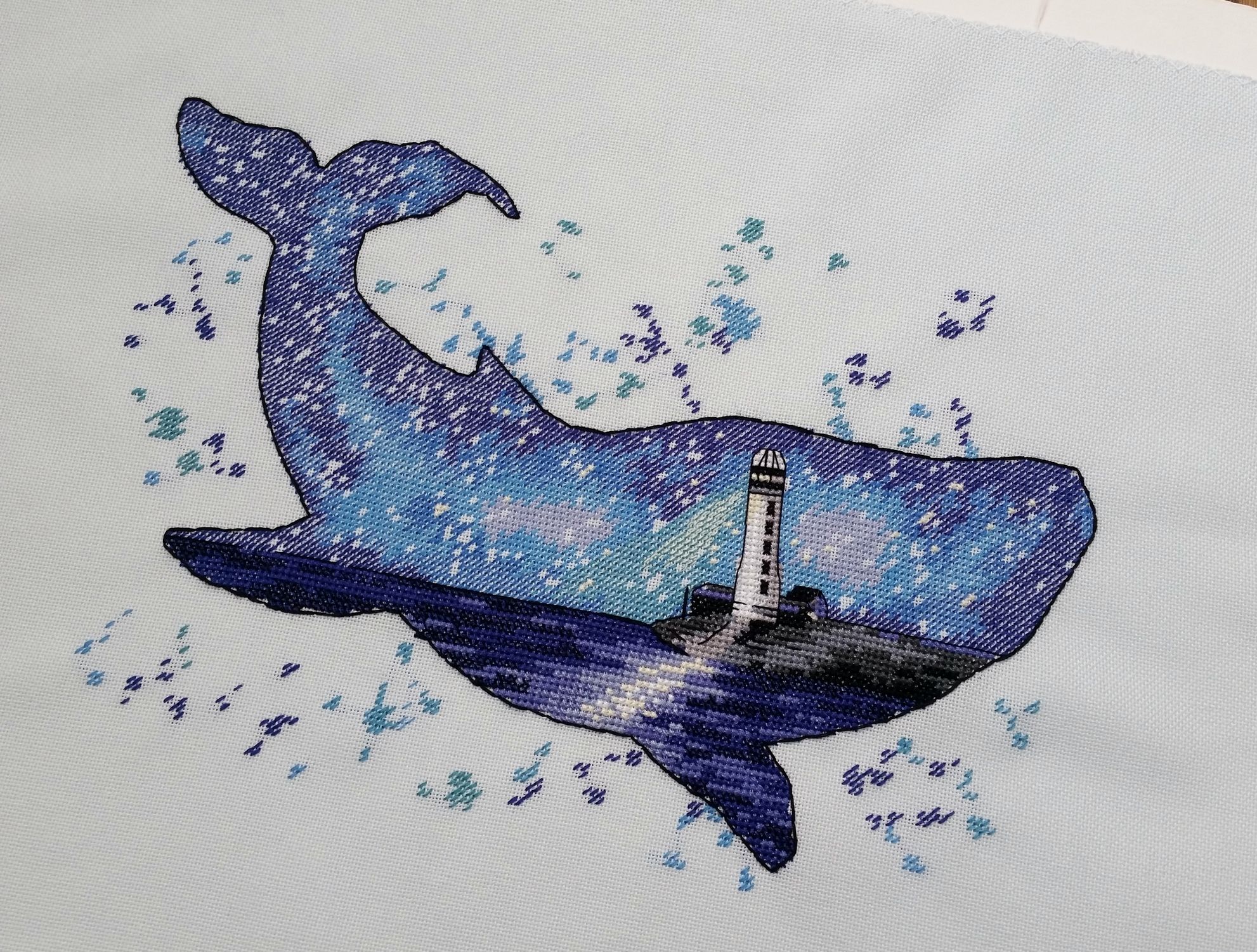 15 сентября 2018 Всем здравствуйте! Я сегодня очень долго фотографии разбирала. Причем вышивальные фотографии. И, если честно, разобрала не все. Так что сегодня будет первая часть марлезонского балета отчета. Про сроки второй ничего обещать не буду, но скажу, что в нее войдут результаты посещения багетки, так что забегайте на досуге. Итак, сначала я, пожалуй, немного объяснений. Ну чтоб вы на меня не обижались за молчание. И чтоб лучше понять состав нынешнего отчета. Кому только про вышивку, смело пропускайте этот текст. Скрытый текст Собственно все это время мы с Настей пропадали в больнице. Плановая операция. Очень непростая, но долгожданная: очередь по квоте ждали больше года. Так что, несмотря на все очевидные "бонусы" такого времяпрепровождения, событие скорее хорошее (и да, Маша, именно это я имела ввиду, когда про главное событие года говорила ). Просто порадуйтесь за нас, а грустить и сожалеть не будем. Впереди у нас очень долгий, сложный и полный серьезных ограничений период реабилитации, а позади 17 дней больничного плена. Выписали нас только 10го в понедельник, и день рождения я "праздновала" в больнице. Так что ваши поздравления собственно и были всем "отмечанием". А потому еще раз за них вам спасибо! Ну а вышивка.... еще раз убедилась, что вышивка - лучшее успокоительное средство. А еще отличный способ скоротать время в ограниченном пространстве при куче свободного времени и узком наборе "обязательных ежедневных событий". Поэтому да, вышивка сегодня будет в большом количестве. Только специфическая. Нервноуспокоительная. Единственный процесс из текущих, что удалось продвинуть до отъезда, это Кленовый лист. Успела закончить крестики и едва начать бэк. Бэка много, многоцветный и в разное число нитей. Но счетный. А значит просто надо найти время и спокойно его сделать. Правда после выписки со временем пока беда, но впереди же ФР и встреча, на которую хочется привезти его уже завершенным, а это отличный мотивирующий фактор, так что... А пока вот так. Очень красиво. Ну и поехали дальше. Процессы больничные Еще в первой половине лета Наташа @Nata_Struchkowa решила разыграть конфетку: набор от Овна с китом и маяком. Сначала я прошла мимо. А потом что-то щелкнуло в голове: именно его я хочу взять в больницу. Если выиграю, то так тому и быть. Кит, маяк...понятно, что в приметы я не особо верю, но в той ситуации, когда от тебя мало что зависит, это отличный способ сублимации. И я нажала "спасибо". И выиграла. И в первый же день пребывания взаперти сделала первые крестики. Точнее полукрестики. Ну а по приезду домой оставалось лишь постирать, погладить и сфотографировать готовую работу Овен. 1039. "Мир животных.Кит". Прежде фото одно лишь замечание: основу(в наборе была белая аида 16го каунта) я заменила на светло-голубую равномерку (Brittney ice blue 28 каунт). Ну потому что изначально не видела этого кита на белом фоне. Были опасения, что из-за увеличения каунта может не хватить ниток. Но ниток осталось очень много. Столько, что не удивилась, если бы еще на один отшив хватило. Нитки... ну однозначно не самые любимые, но приемлемые. Катышки были, но легко убирались. Теперь только фото... Очень нравится. Очень. Сначала немного напрягали темные цвета, которых тут большинство, но когда последние полукрестики были сделаны, паззл сложился. Свет маяка, луч света на воде и в ночном небе, силуэт мо