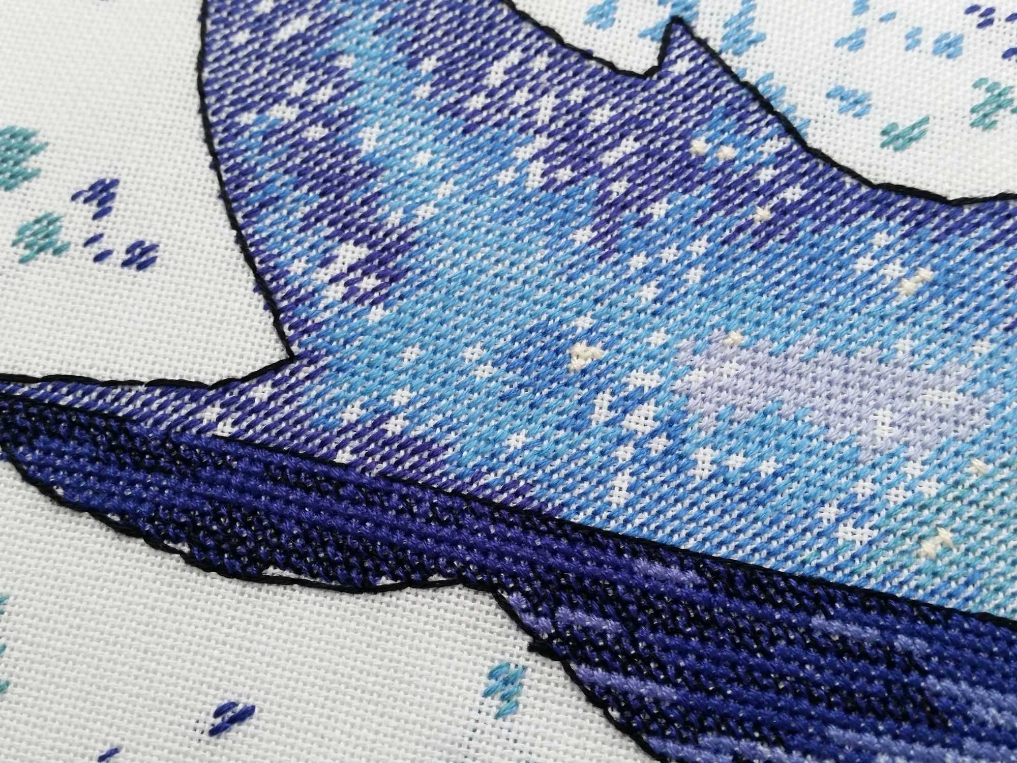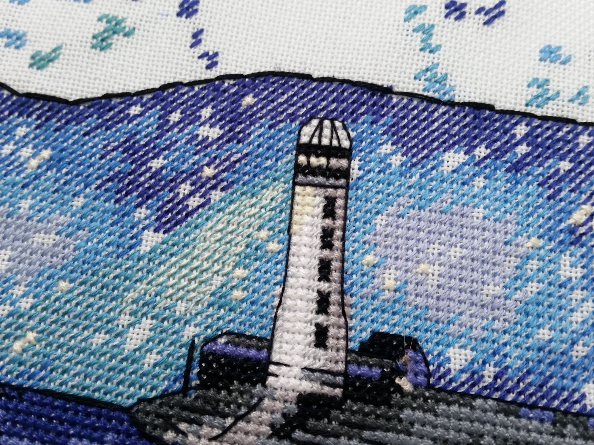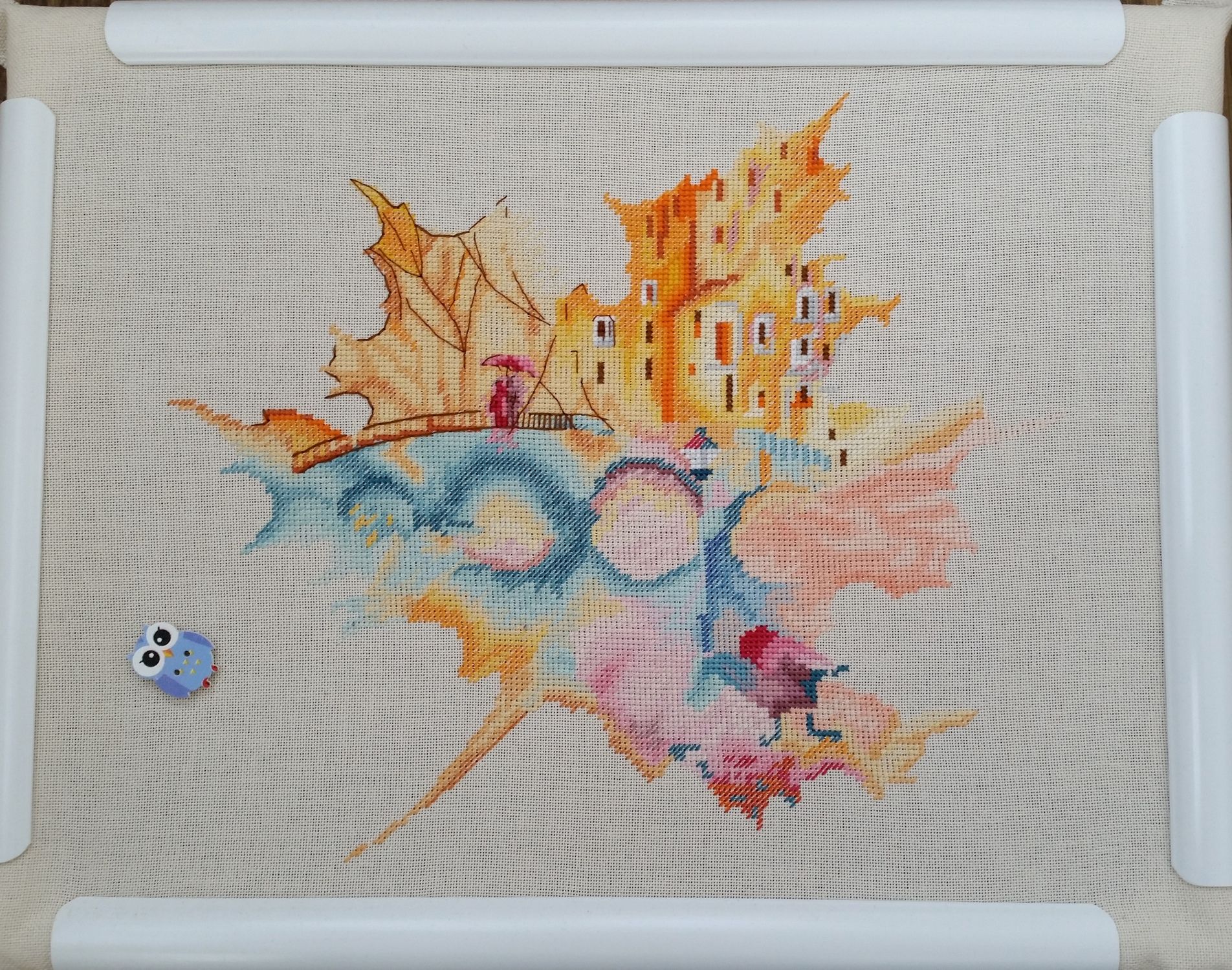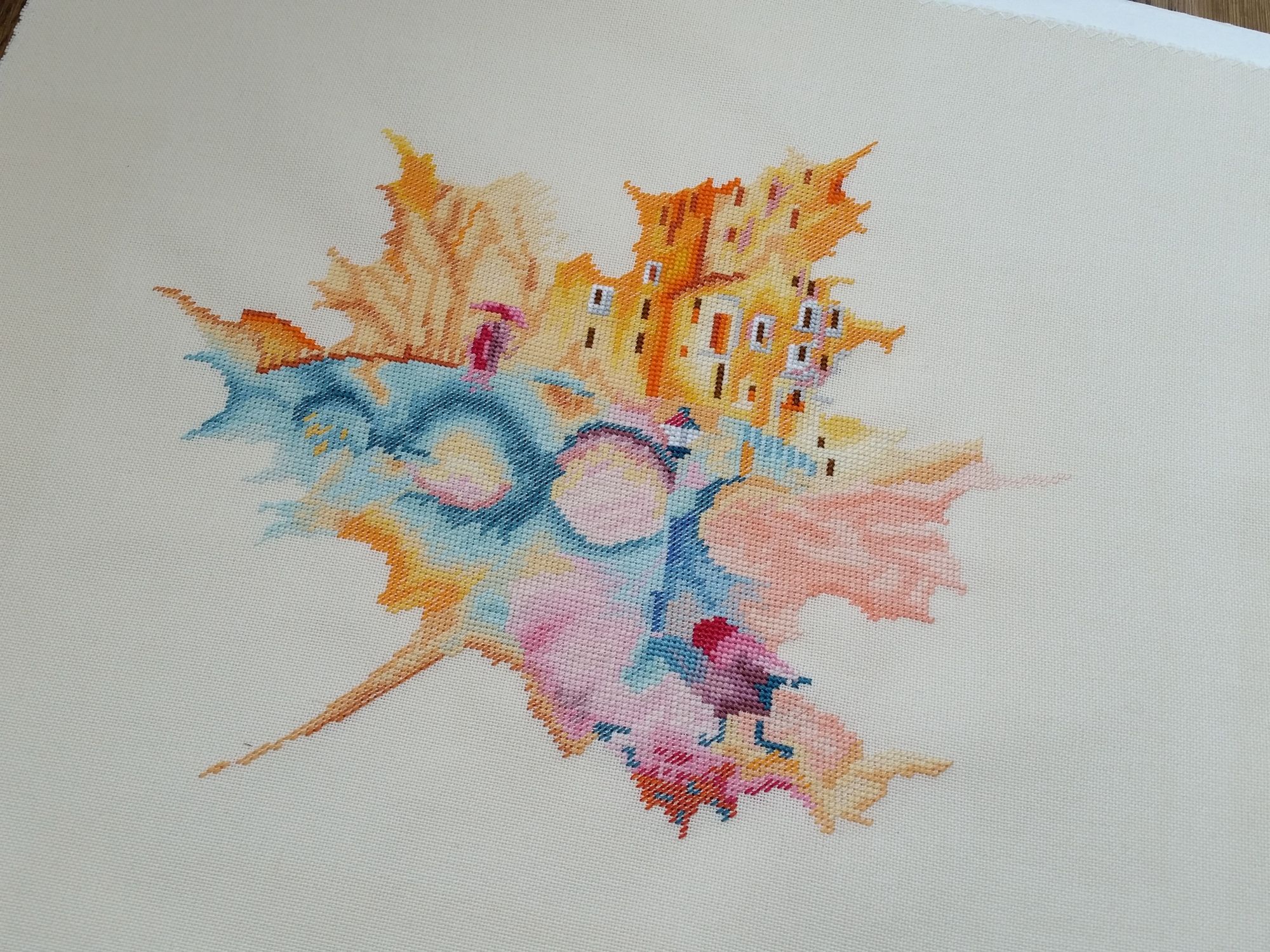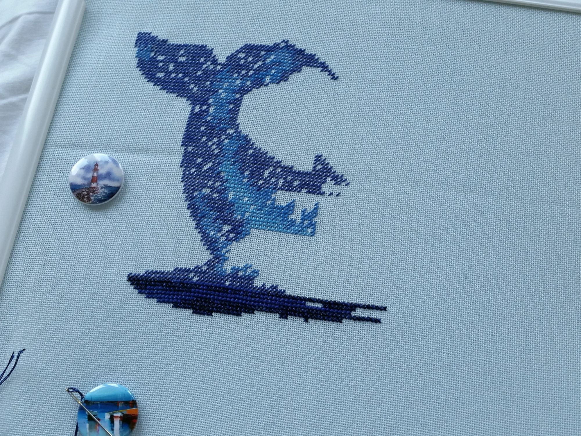 15 сентября 2018 Всем здравствуйте! Я сегодня очень долго фотографии разбирала. Причем вышивальные фотографии. И, если честно, разобрала не все. Так что сегодня будет первая часть марлезонского балета отчета. Про сроки второй ничего обещать не буду, но скажу, что в нее войдут результаты посещения багетки, так что забегайте на досуге. Итак, сначала я, пожалуй, немного объяснений. Ну чтоб вы на меня не обижались за молчание. И чтоб лучше понять состав нынешнего отчета. Кому только про вышивку, смело пропускайте этот текст. Скрытый текст Собственно все это время мы с Настей пропадали в больнице. Плановая операция. Очень непростая, но долгожданная: очередь по квоте ждали больше года. Так что, несмотря на все очевидные "бонусы" такого времяпрепровождения, событие скорее хорошее (и да, Маша, именно это я имела ввиду, когда про главное событие года говорила ). Просто порадуйтесь за нас, а грустить и сожалеть не будем. Впереди у нас очень долгий, сложный и полный серьезных ограничений период реабилитации, а позади 17 дней больничного плена. Выписали нас только 10го в понедельник, и день рождения я "праздновала" в больнице. Так что ваши поздравления собственно и были всем "отмечанием". А потому еще раз за них вам спасибо! Ну а вышивка.... еще раз убедилась, что вышивка - лучшее успокоительное средство. А еще отличный способ скоротать время в ограниченном пространстве при куче свободного времени и узком наборе "обязательных ежедневных событий". Поэтому да, вышивка сегодня будет в большом количестве. Только специфическая. Нервноуспокоительная. Единственный процесс из текущих, что удалось продвинуть до отъезда, это Кленовый лист. Успела закончить крестики и едва начать бэк. Бэка много, многоцветный и в разное число нитей. Но счетный. А значит просто надо найти время и спокойно его сделать. Правда после выписки со временем пока беда, но впереди же ФР и встреча, на которую хочется привезти его уже завершенным, а это отличный мотивирующий фактор, так что... А пока вот так. Очень красиво. Ну и поехали дальше. Процессы больничные Еще в первой половине лета Наташа @Nata_Struchkowa решила разыграть конфетку: набор от Овна с китом и маяком. Сначала я прошла мимо. А потом что-то щелкнуло в голове: именно его я хочу взять в больницу. Если выиграю, то так тому и быть. Кит, маяк...понятно, что в приметы я не особо верю, но в той ситуации, когда от тебя мало что зависит, это отличный способ сублимации. И я нажала "спасибо". И выиграла. И в первый же день пребывания взаперти сделала первые крестики. Точнее полукрестики. Ну а по приезду домой оставалось лишь постирать, погладить и сфотографировать готовую работу Овен. 1039. "Мир животных.Кит". Прежде фото одно лишь замечание: основу(в наборе была белая аида 16го каунта) я заменила на светло-голубую равномерку (Brittney ice blue 28 каунт). Ну потому что изначально не видела этого кита на белом фоне. Были опасения, что из-за увеличения каунта может не хватить ниток. Но ниток осталось очень много. Столько, что не удивилась, если бы еще на один отшив хватило. Нитки... ну однозначно не самые любимые, но приемлемые. Катышки были, но легко убирались. Теперь только фото... Очень нравится. Очень. Сначала немного напрягали темные цвета, которых тут большинство, но когда последние полукрестики были сделаны, паззл сложился. Свет маяка, луч света на воде и в ночном небе, силуэт мо