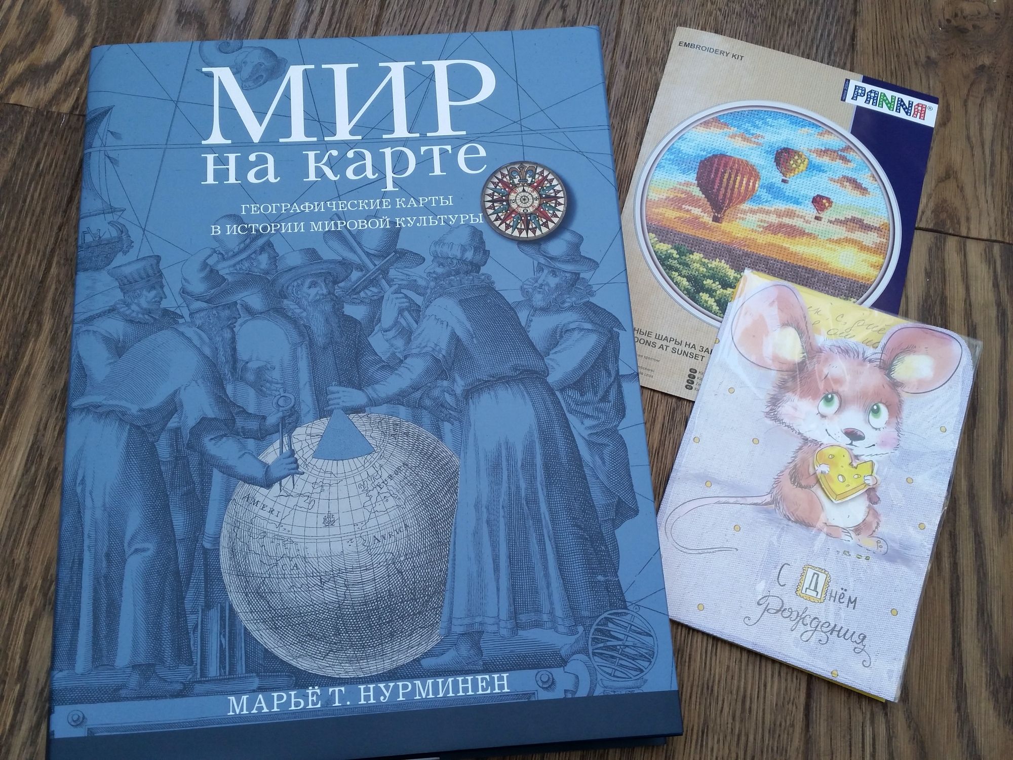 18 сентября 2018 И снова здравствуйте! Я продолжаю рассказывать вам о том, что случилось за это время. А случился, как вы, вероятно, заметили, мой день рождения Так вот с подарков, пожалуй, и начну. Или с гостей?... ну это в любом случае все так приятно! Татуся, Валя, процессов сегодня не будет. Т.к. сам др я провела в местах, где отмечания и гости не приветствуются, то гости и подарки догоняли меня всю последующую неделю. Так иногда приятно почувствовать себя чуточку звездой Подарок первый - знакомство с замечательным человеком! Ну в общем то, что в гости нагрянет Оля @Путешественница , сомнений у меня не было. А вот то, что у Оли в это время будет гостить Лена @Лена1973 и они приедут вместе - считаю это везением. Причем в первый раз они приехали неожиданно для самих себя. Ну и меня. Да, мы любим такие авантюры и из них получаются самые душевные посиделки, разговоры и знакомства. Лена, очень и очень рада была познакомиться! А в воскресенье они все той же компанией приехали уже с подарками от подруг по форуму (и уже давно и по жизни). И кто же как не они знают, чего просит душа. Собственно вот он, подарок, во всей красе: Книга! Как я мечтала об этой книге с самого ее выхода. И как негуманна была ее цена. И как прозорливы подруги, знающие, что не вышивкой единой ограничиваются мои интересы.... Карты, история, путешествия, обалденные иллюстрации, доступный и интересный текст.... ох, чувствую, не очень вышивальными будут мои ближайшие отчеты Я знаю, что тема близка совсем не многим, но не могу не показать ее внутри. Может кто-то Марью Искусницу вспомнит или Панну... ну параллели с вышивкой тоже можно провести Хотя, само собой, вышивальная часть в подарке все же была. И это снова воздушные шары! Почему снова? Потому что только что я вышивала их у ДВ. И даже надеялась, что "вишневые шары" перебьют мою симпатию к шарам панновским. Но нет, этого не произошло. И я невероятно счастлива держать в руках этот набор. Да что уж отнекиваться, конечно, не только в руках держать, но и вышивать... естественно, я его начала. Но это уж позвольте оставить на следующий плановый вышивальный отчет. А вдобавок к шарам была еще и "свободная часть" подарка, которую я уже успела материализовать во вполне конкретные вышивальные радости. Вот такие схемы едут ко мне из Стежка. Уже извесная мне Изабель Вотье все в том же неподражаемом стиле изящной простоты и новый для меня Ренато Паролин - пробовать новое я, видимо, никогда не устану Кроме подарков на ДР, Лена привезла и еще один вкусный и познавательный сувенир: воронежские конфеты! Правда не мне, а Лешке. Я как-то упоминала давно, что у него есть одна навязчивая идея, взявшаяся непонятно откуда - съездить в Воронеж. Так вот, на этих конфетах изображены разные достопримечательности Воронежа! Так что мы теперь не только вкусные (очень!) конфеты едим, но и фантики от них собираем - к поездке готовимся Что же дальше? Ну...я не стала изменять нашей женской форумской традиции: покупать не самые нужные, но очень классные штуки, оправдываясь фразой "ну это я себе подарок на др..." Так вот. Мой подарок себе на день рождения: Вверху пермин, ева и Моника, внизу цвейгарт: белфаст и мурано. Не поверите, но пермин держу в руках первый раз. Равно как и еву с моникой. Моника очень! понравилась тактильно, а ева своей фактурой. Среди цвейгарта отдельно хочу выделить новинку сезона - муран