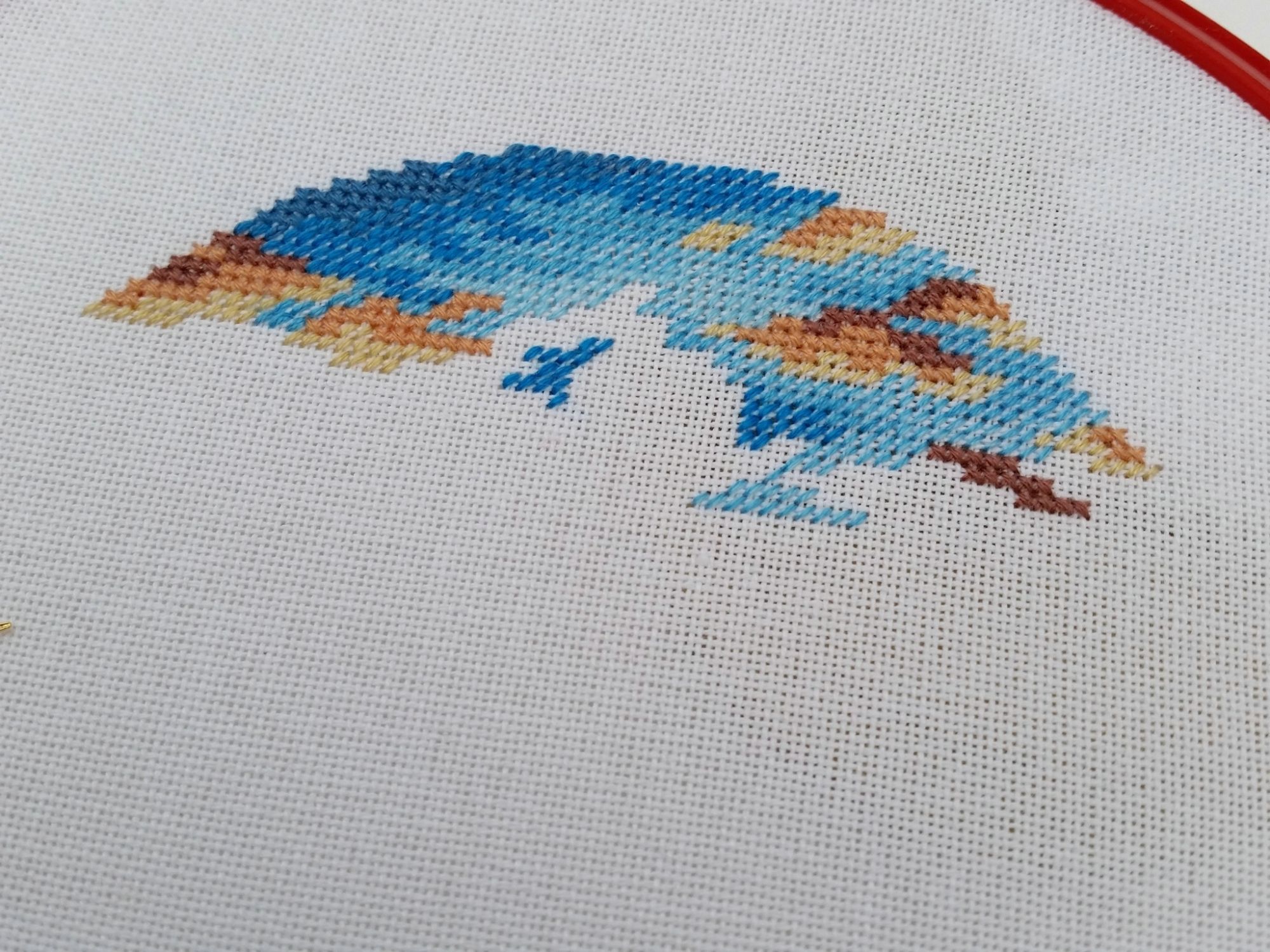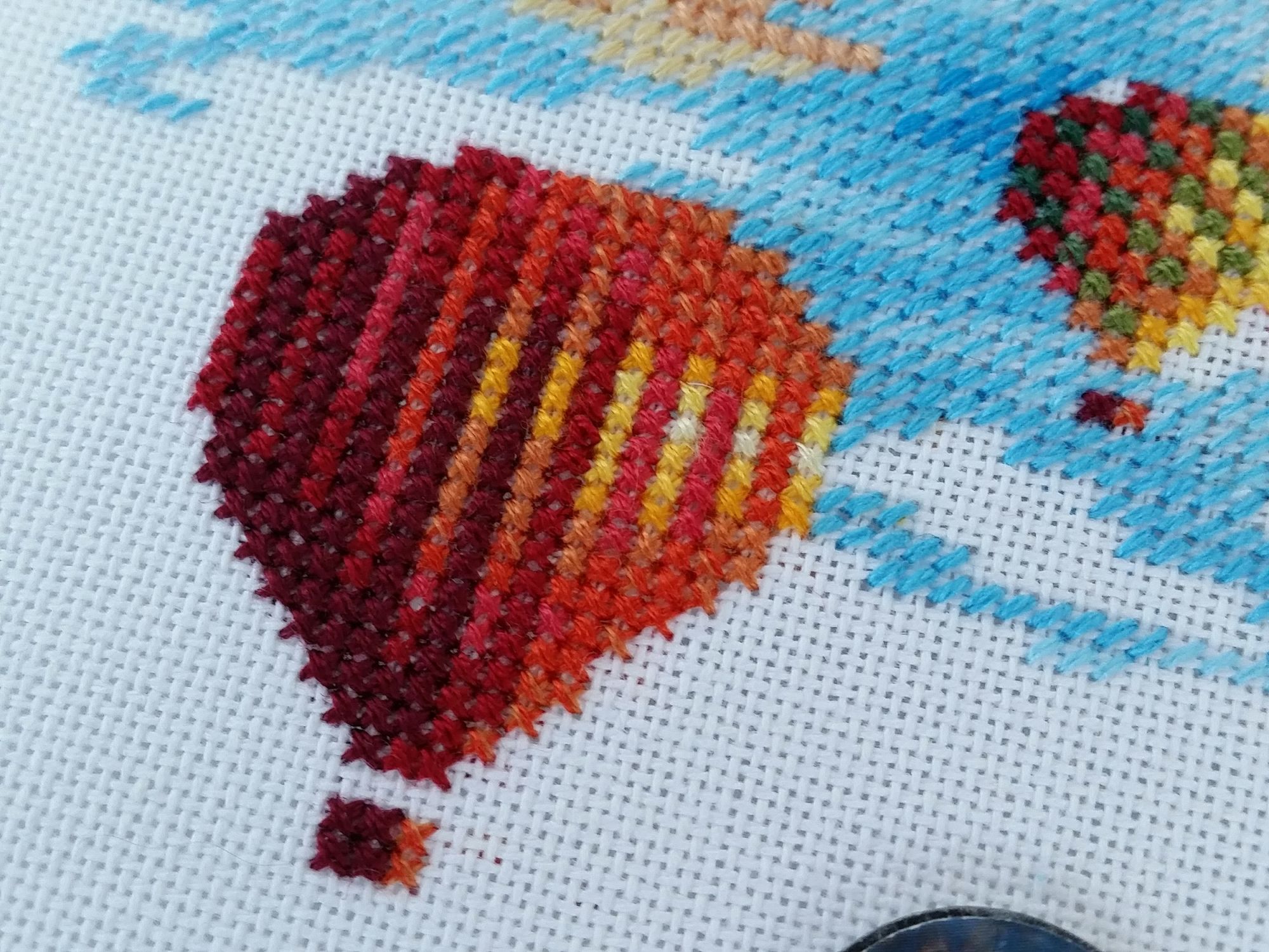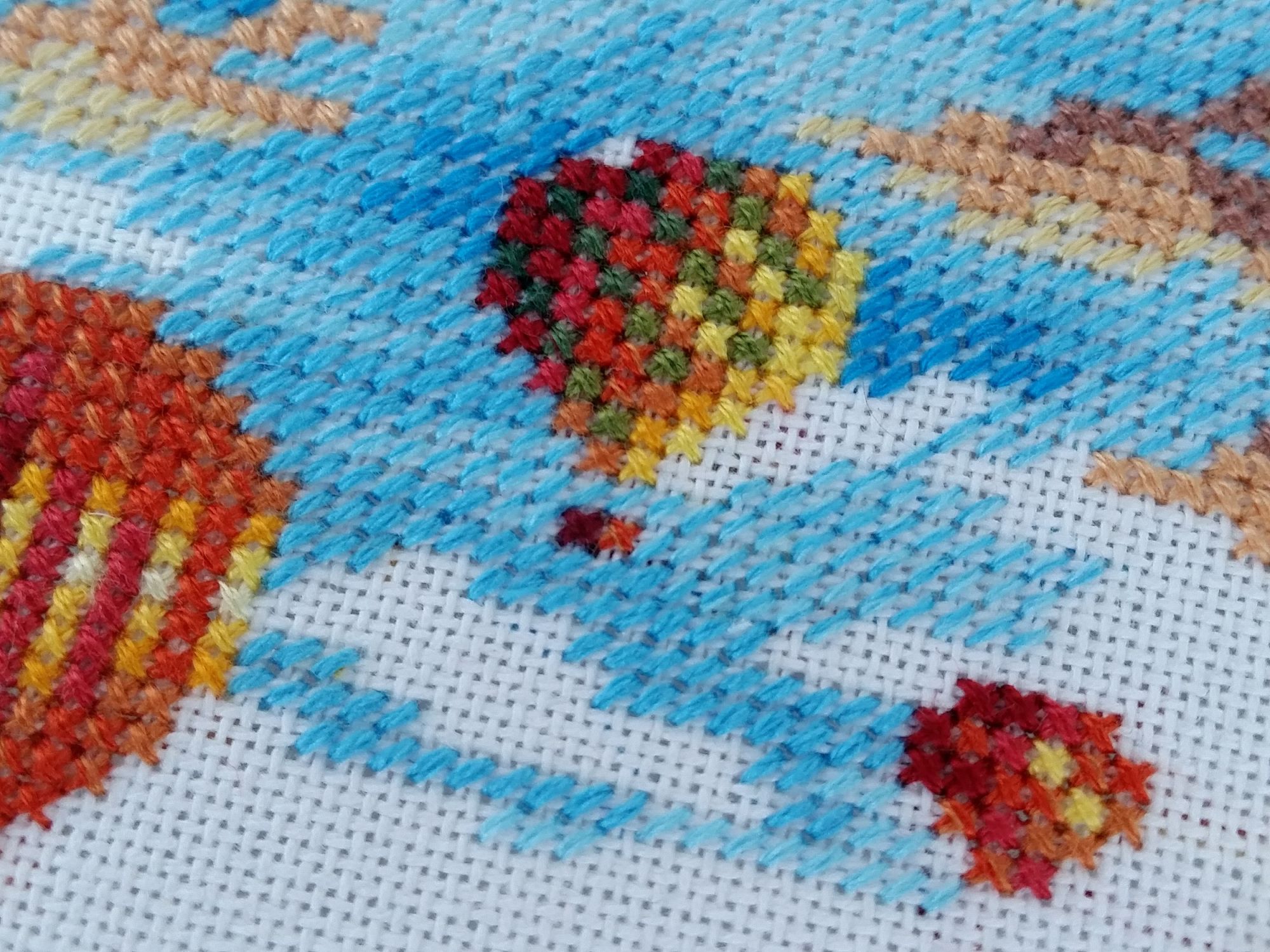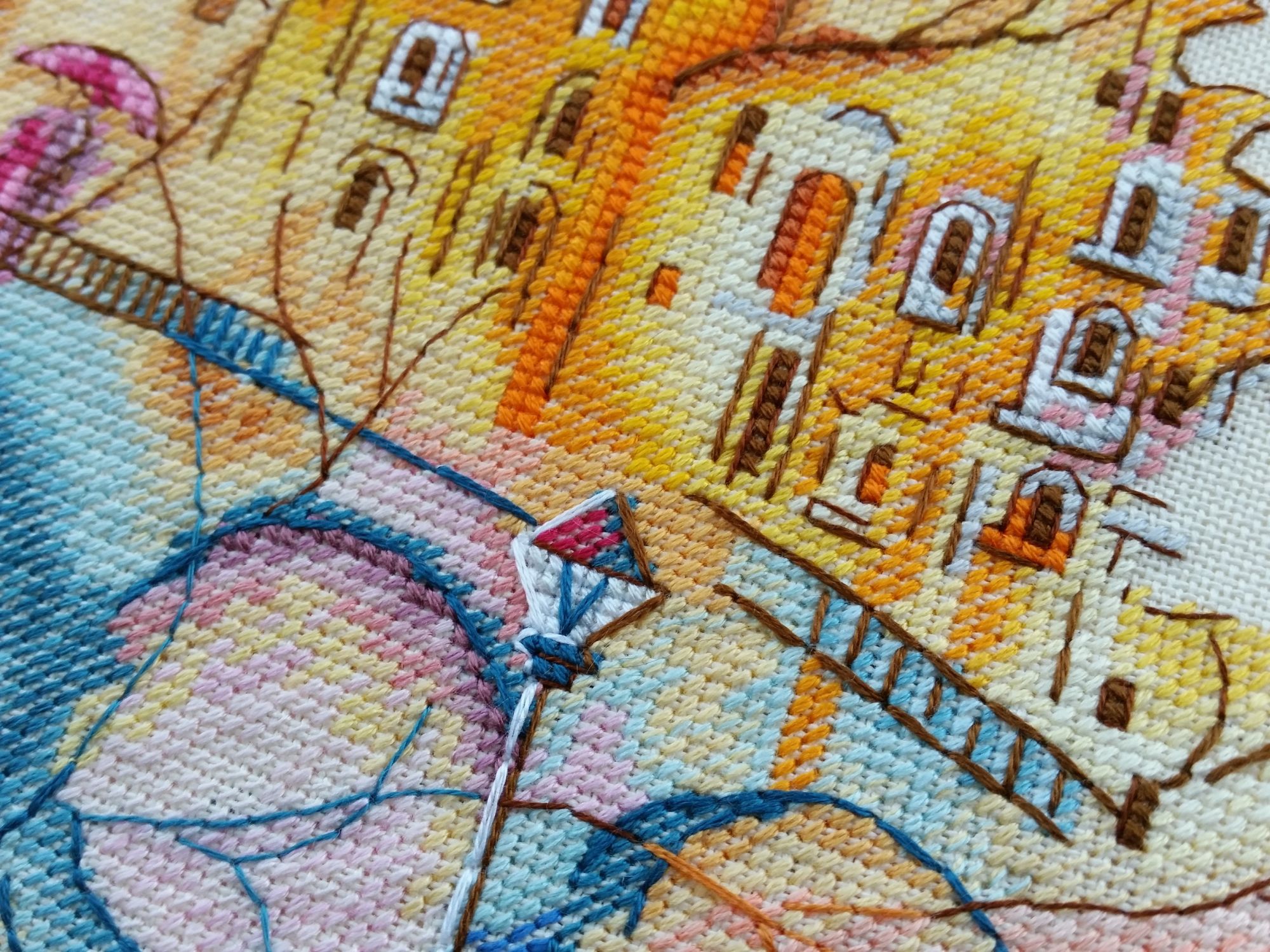 14 октября 2018 Всем здравствуйте! Вот и пришла пора вышивального отчета. Хотя уже давно осень и, казалось бы, самое время вышивать, укутавшись в плед, но погода диктует свои условия, восхищая нас изумительной синевой осеннего неба, богатым золотом листвы и теплым и ласковым ветерком, несущим такие сладостные осенние ароматы влажной опавшей листвы и травы... Осень, ты в этом году балуешь нас совершенно... Вот посмотрите, в начале недели утро было таким: А сегодня мы, наслаждаясь солнышком и осенним лесом, сняв шапки, с азартом запускали самолетики.... Вышивается сейчас мало и урывками. Но т.к. не отчитывалась я по вышивке давно, то показать есть что. Во-первых, давно уже пора позеленить гайку с Кленовым листом. Девочки, побывавшие на послеформульной встрече уже рассмотрели его в готовом виде, а сюда я все никак его не донесу. Яна Минасян, Кленовый лист - долгожданный финиш! Если вы помните, то последний раз я показывала его, когда только начала делать бэк. Бэка было немало, он был разноцветный, но при этом счетный и совсем несложный. Основной задачей было за него сесть, не думая о том, сколько же его осталось. В какой-то момент оказалось, что осталось его совсем немного и доделался он сам собой. Результат...он прекрасен! Прекрасен так же, как нынешняя осень. Не случайно я его все время солнышком называла - вот именно такое он для меня осеннее солнышко: теплое, ласковое и уютное. Больше всего меня в дизайне поразило сочетание цветов: желтый, оранжевый, синий, розовый, они все соприкасаются между собой, но так естественно перетекают один в другой, так гармонично взаимодействуют... магия, не иначе! А еще, когда в пятницу перед формулой мы гуляли с девочками по Москве, то на глаза попалась картина, живо напомнившая мне мой лист... Панна, Воздушные шары. Шары подрастают понемногу. Этим процессом я пытаюсь приманить вышиванца, ибо цвета там невероятные. Сначала к бездонной голубизне добавились закатные облака и небо заиграло жизнью, стало манить и притягивать. Чтобы этот эффект закрепить, я, отойдя от первоначального плана вышить сначала все небо, взялась за сами шары. Цветов в них немало и дело было веселое. Но при этом совсем не противное. Я в каком-то азарте добавляла цвет за цветом, желая поскорее завершить и посмотреть. Вот в самом деле, кайфовый процесс. Очень вдохновляющий и позитивный. А еще обратите внимание, как подаренный Иришкой @Дафна магнитик идеально подходит к процессу! Любуюсь каждый раз, как в руки беру! Дальше только Дивная вишня... Дивная вишня, Красное вино, ВВ-125 Этот набор я привезла с Формулы и как-то он сам прыгнул в руки, едва я оказалась дома. И хоть в принципе алкоголь, даже самый аристократичный, не моя тема в вышивке, но здесь привлекло две вещи исключительно эстетического свойства: невероятно сочные и какие-то магнетические цвета и удивительное совершенство силуэта и линий. И раз уж он так манил меня, то я решила поддаться страсти и поселить на своем холодильнике еще один рукодельный магнит. Процесс был молниеносным и очень приятным. Результат - он шикарный! Десяток крестиков и вот виноград, вот такая искусная винная этикетка, совершенно натуральное горлышко и такой настоящий бокал... Снимаю шляпу перед работой дизайнеров. Ну и "фото в интерьере" - цвета здесь немного теряются, зато размерчик хорошо виден (фото не для гаечки) Дивная вишня. П