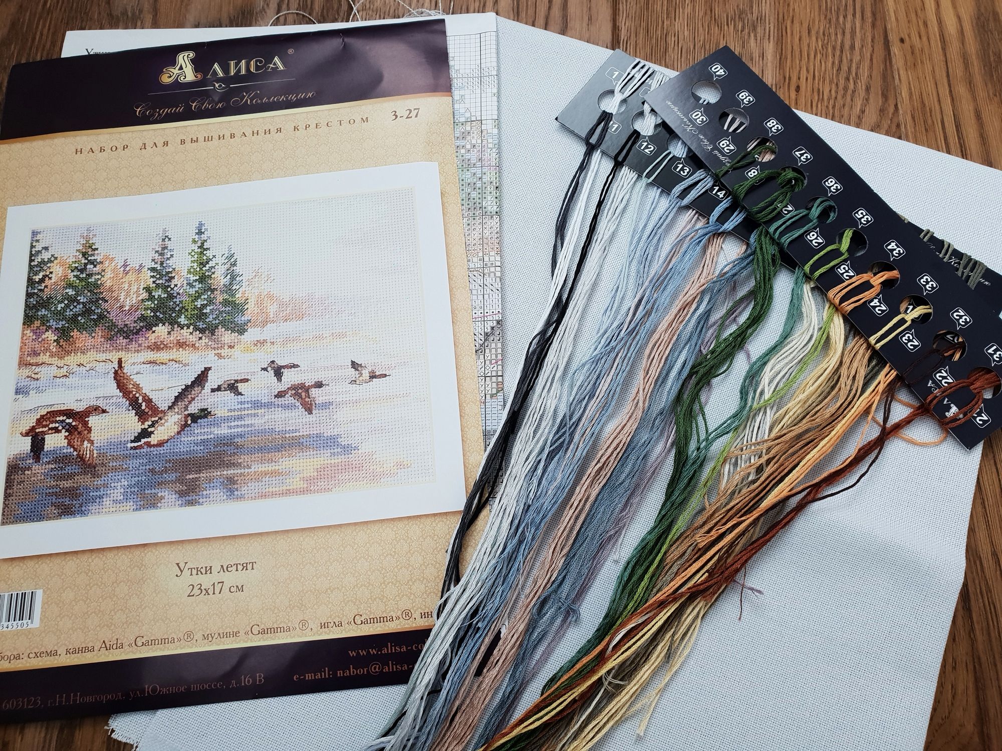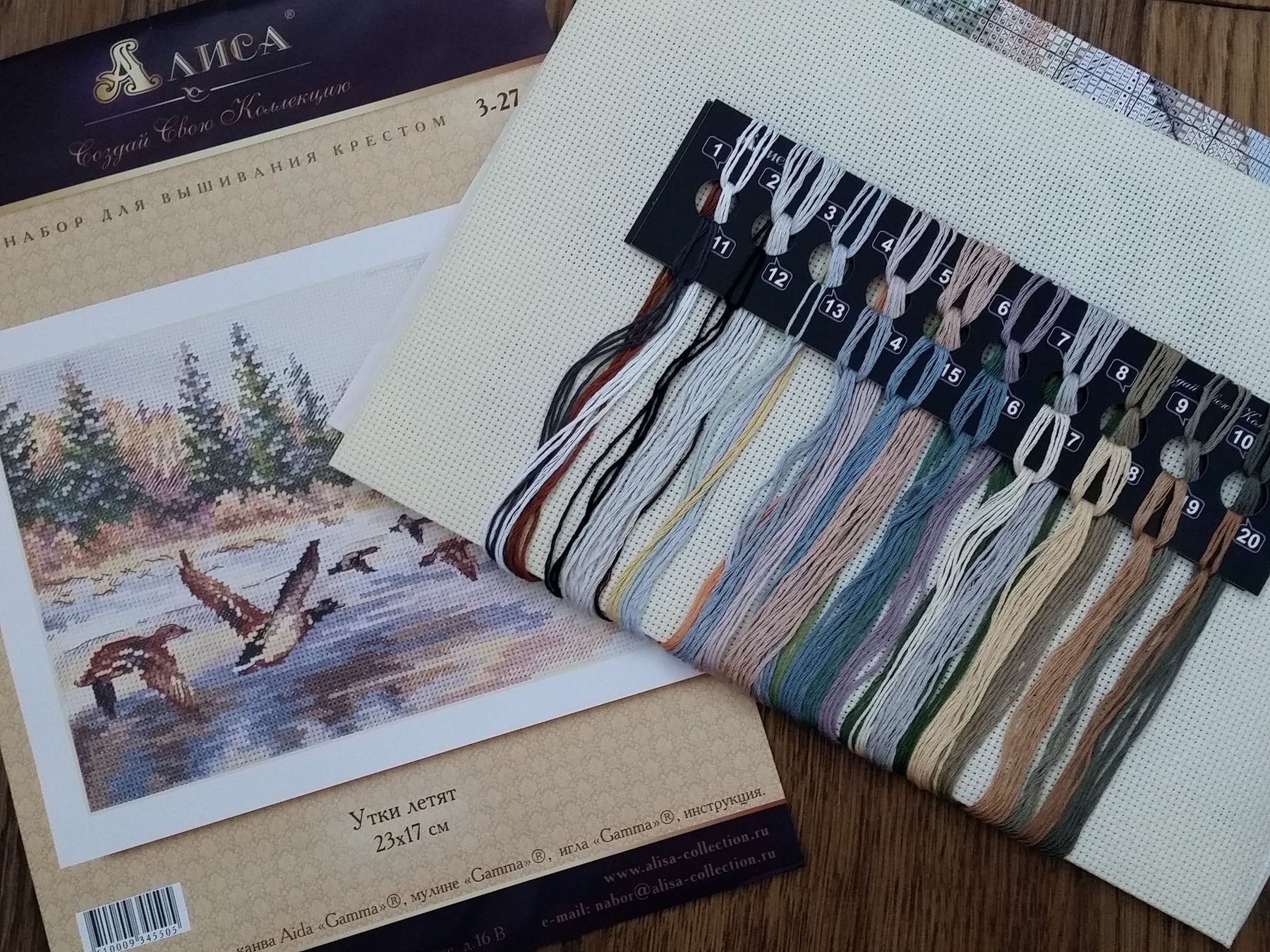 28 октября 2018 Всем добрый вечер! Отчет. Вышивальный. Я вообще-то пропала немного в швейном запое. Это тот, что из тряпочек и потом одевать можно и носить. А еще первая четверть к концу катится. Наша первая с Настей четверть с оценками. Результат обещает быть весьма неплох, но надо сделать определенные выводы. В первую очередь по тому, как достичь нужного уровня пофигизма без потери качества результата. Короче вышивка фоном. Но весьма важным, надо сказать, фоном. Как системообразующее мероприятие, являющее собой основу мироздания спокойствия в семье. Так что прошу не судить строго 1. Панна, Шары на закате. Я дошла до линии горизонта. И летят мои (отбеканные!) шары по пылающему в закатном пламени небу. Август. Вечер. Теплый, даже жаркий, но августовский. И летят в тех шарах люди.... со своими мыслями и жизненным опытом, со своими проблемами и надеждами. Но это не имеет никакого значения. Потому что небо. Потому что закат. Потому что никто уже не будет таким как прежде. Но долой философию, навеянную бокалом вина. Только фотоs. 2. Renato Parolin, Hiver (зима) Прибавилась сначала вторая рамочка, а за ней и третья. Весьма увлекательный процесс. Медитация. Затягивает. Особенно, когда ты осознал закономерность, и схема на какое-то время становится не нужна. А с чем сравнить ту магию, когда ключик подходит к замку завершается очередной элемент?... Женя на мою затею с этим дизайном смотрел весьма скептически. Но теперь и он признал, что смотрится хорошо. Ну а для меня геометрия, закономерности и их эстетика - это особое наслаждение. Все ж я видно технарь и логик, хоть и с налетом творчества и романтики. С большим интересом наблюдаю за своими впечатлениями. И уже изучила, что еще есть в этой серии у Ренато 3. Новый процесс. Алиса. 3-27. Утки летят. Помните мой отчет с ФР? "Утки очень ничего, а маяк, наверное, куплю". Однако ж все вышло по-другому. Маяк пока еще в списке желаний. Но судьба его сомнительна (касательно меня, конечно). А вот утки... утки украли мои мысли. Быть может, удачным образом сойдясь с изменением погоды за окном. А теперь позвольте мне большое отступление, дабы объясниться. Когда я открыла набор, то мгновенно поняла, почему этот дизайн вызвал у меня неоднозначное впечатление на выставке. Я достала из пакета канву... Желтую канву!!!! Суть именно в цвете, а не в споре "канва vs равномерка". Она... как бы вам сказать... она не кремовая (я сравнивала и с 224, и с 264 равномеркой), она светлая с уходом в желтизну. Что-то в духе 99го цвета от Цвейгарта. У меня произошел разрыв шаблона: мое представление об этом сюжете коренным образом разошлось с тем настроением, которое давала эта канва. Мы с Женей устроили очень жаркие дебаты с вытаскиванием всех мало-мальски возможных основ из закромов (а их, поверьте, немало). Он доказывал мне, что это раннее утро, встает солнце и небо окрашивается в желтоватые цвета. Да, я мозгом понимаю эти аргументы и представляю эту картинку. Но! В голове стучит: это другой сюжет! Мой такой: то же утро, рассвет, туман над озером, тишина и... серое небо. Ноябрьское серое небо. Не со свинцовыми тучами, но такое, что гасит блеск солнца, низводя его до идеального рассеянного света, поселяющего лично в моей душе светлую задумчивость, свойственную только осени. И я долго и упорно прикладывала нитки то к родной желтоватой, то к моей любимице "серебристой луне", и все думала... (не для га