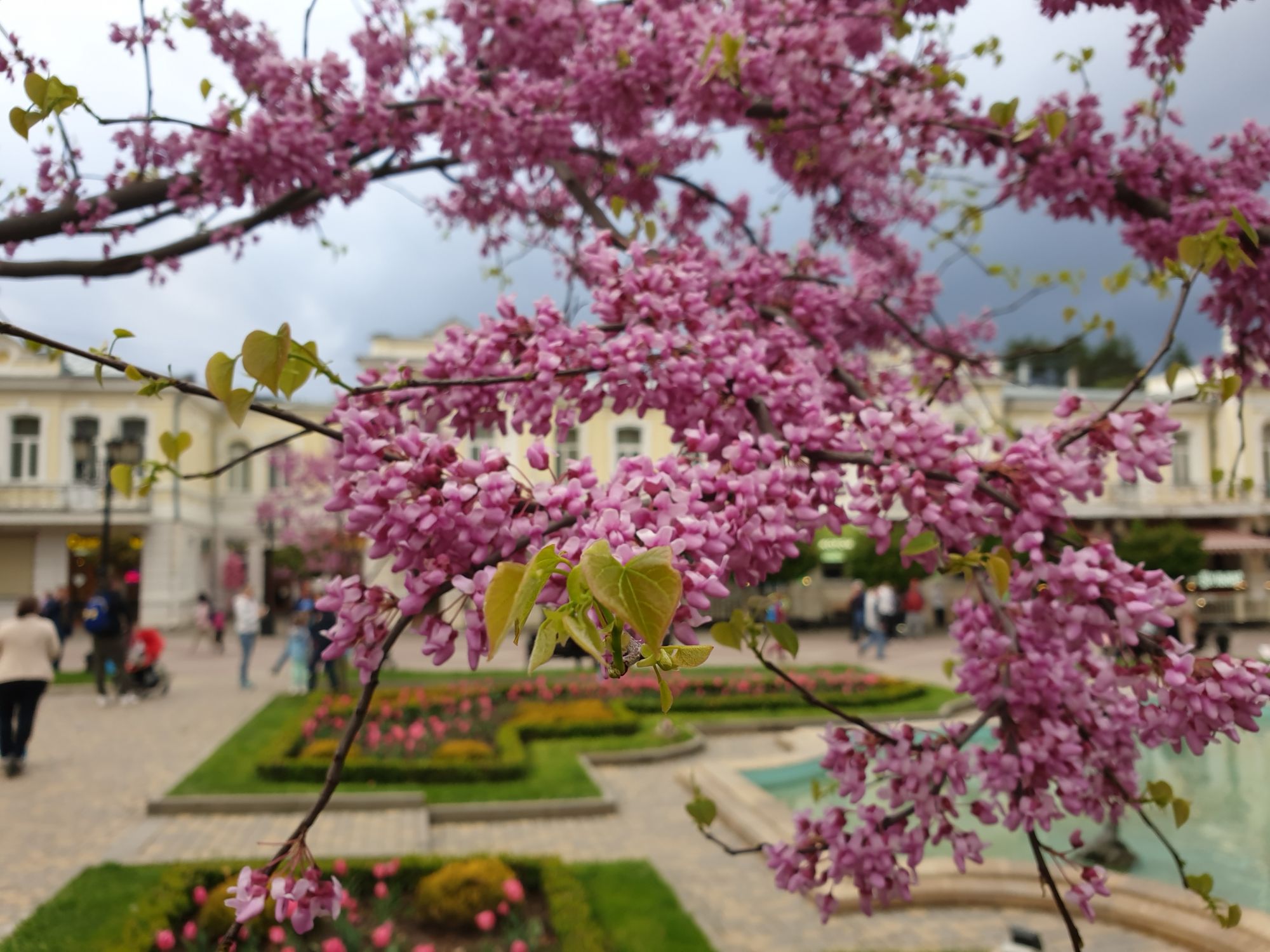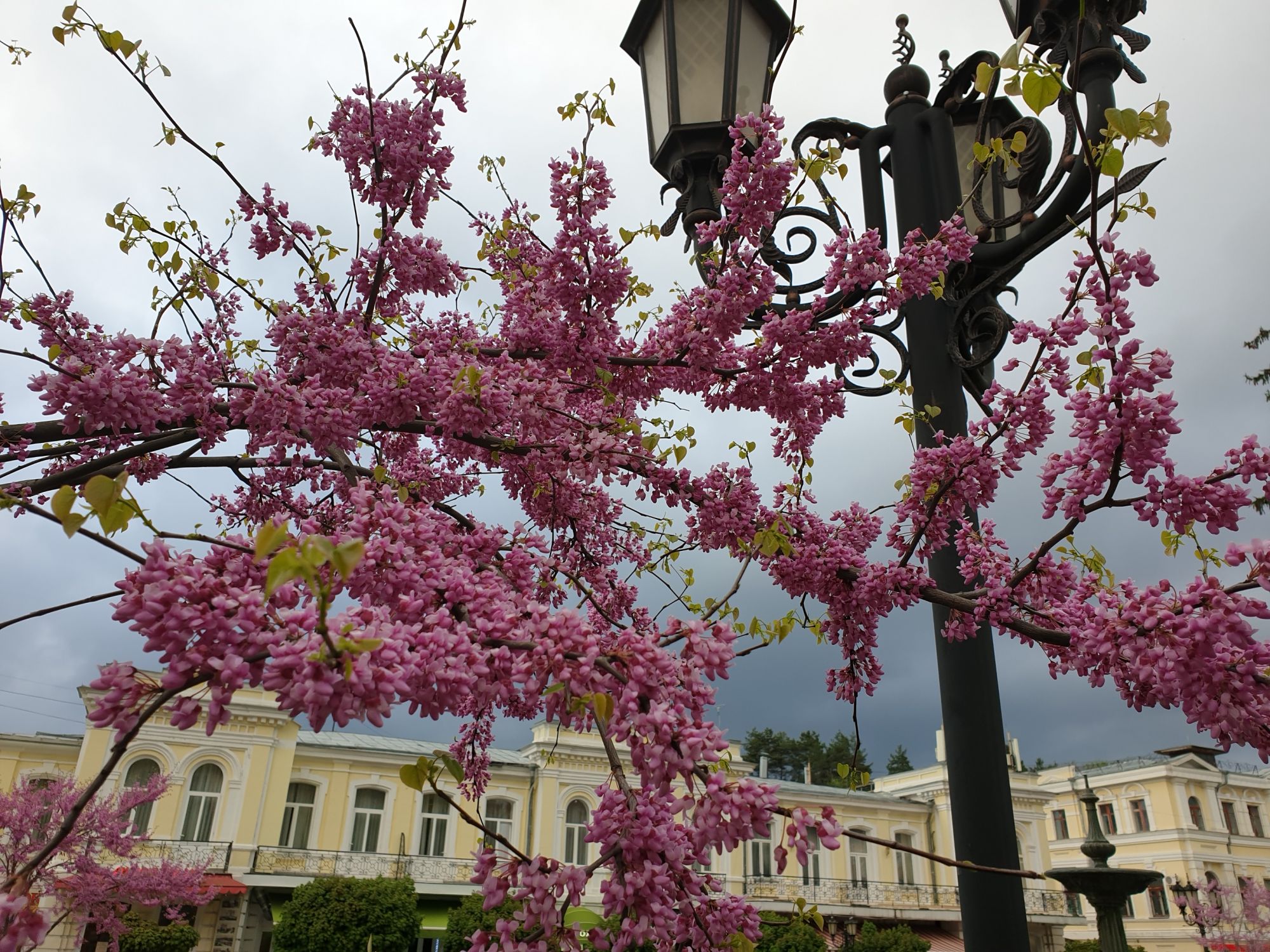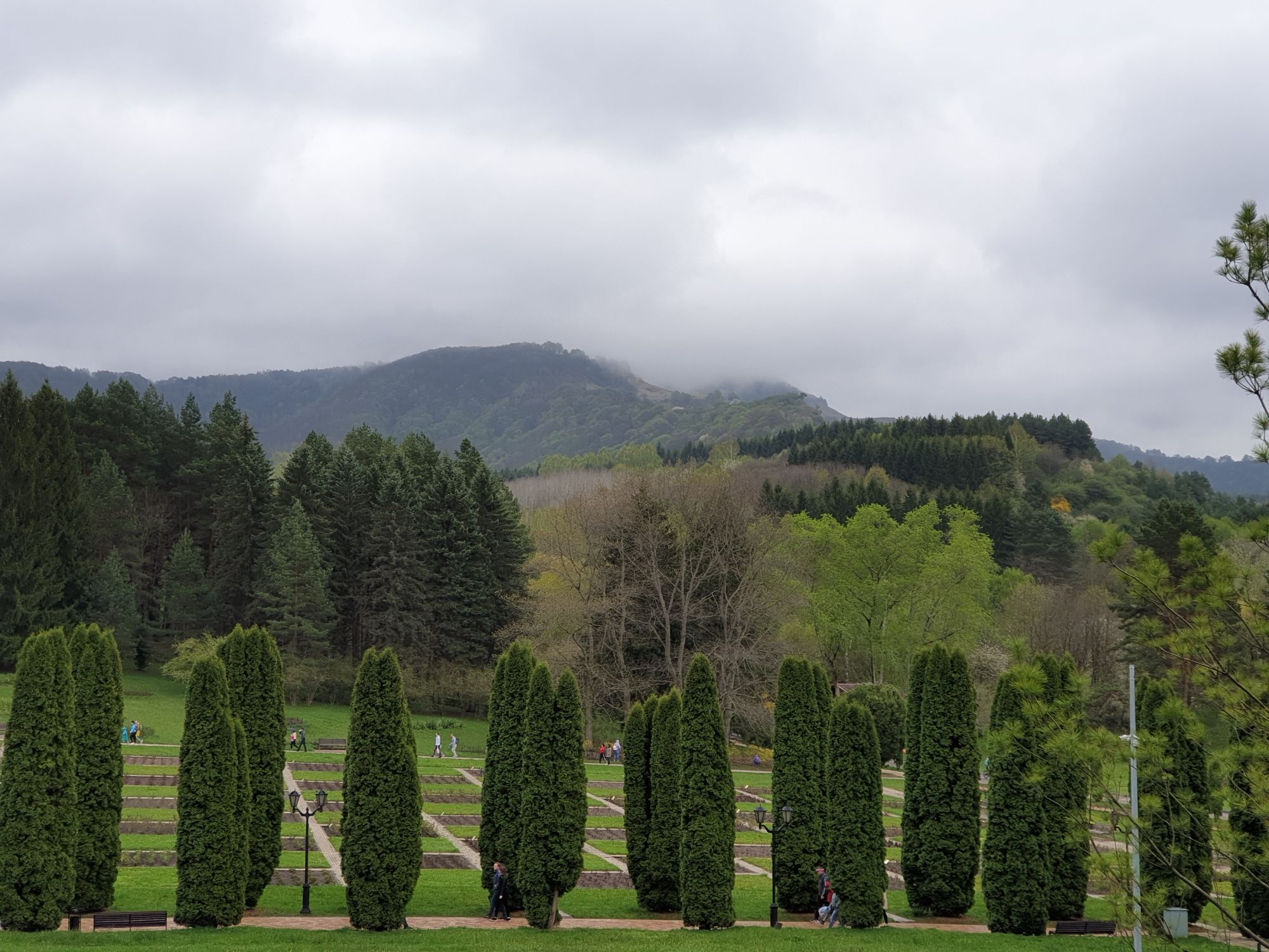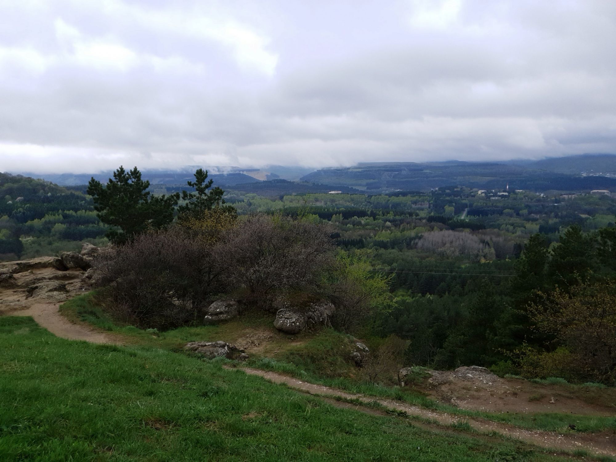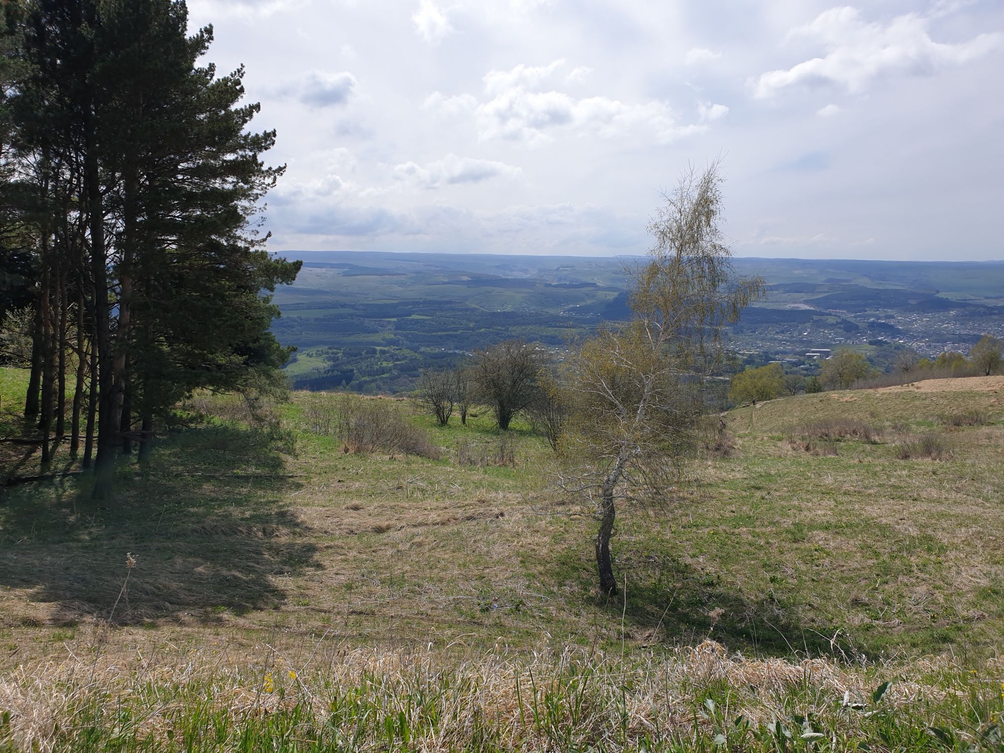 27 мая 2019 Вообще говоря, глядя на прогноз погоды перед поездкой, меня посещало некоторое смутное беспокойство. Большинство дней +9, +12, +14 градусов и дождь. Но во-первых, я помнила, что климат там намного мягче и температуры ощущаются совсем иначе, а во-вторых, это же долгожданный Кисловодск! Ну просто вместо крема от загара я положила в чемодан теплой одежды и зонты.. Второе моя печаль была связана с тем, что я была уверена, что пропущу большую часть цветения вишни, яблони, весенних цветов.... ведь там же юг, должно было все закончиться, а у нас только-только начинало и к возвращению пик был бы явно пройден. Каково же было мое удивление, когда я попала в настоящий сад из цветущих деревьев и трав. Оказалось, что там из-за особенностей высоты и климата все цветет примерно в те же сроки, что и у нас. Причем на разных склонах чуть сдвинуто по времени. Поэтому насладиться я смогла по полной программе. И если из прошлой поездки я привезла в качестве воспоминаний запах цветущей липы, то сейчас.... яблоня, вишня, черемуха и еще куча не особенно знакомых мне ароматов, но таких весенних и дарящих наслаждение. А под конец еще и сирень с каштанами зацвели. Цветочную подборку я показывала вот здесь, в отчете с места действия, так сказать Ну а что касается погоды... все действительно оказалось не так страшно. Благодаря тому, что город защищен со всех сторон горами и ветра почти нет, температуры воспринимаются по-другому. Гулять одно удовольствие. И даже плюсы есть: жарой не прибивает, народу меньше, тучи создают весьма причудливые картины (то будто горы дымятся, то неведомая облачная лапа протянулась к горе за чем-то явно принадлежащем ей, то вдруг посветлевшее вдали небо делит открывающиеся просторы на свет и тьму ), реки более полноводны и завораживающе бурлят средь камней, а плачущий водопад на туристической тропе очень даже плакал, в отличие от нашей летней поездки. В один из дней прогноз погоды был примерно тем же, но природа решила порадовать нас солнцем пораньше. И в итоге, начавшись как прогулка по городу к той самой Армянской церкви из предыдущего сообщения, день стал весьма запоминающимся, т.к. ноги вынесли нас прямиком к Березовскому ущелью. Ущелье это не совсем характерно для окрестностей Кисловодска. Большая часть их здесь относительно широки, а это узкое и с отвесными склонами. Если вам на фото ниже где-то покажется, что стена искусственная, то это не так. Всё самые настоящие горные породы и обрывы, над которыми поработали лишь ветер и вода. На пути к ущелью: И вот мы уже здесь. Броды, перекаты, отвесные стены гор, небольшие полянки, "горные коровы" (как выяснилось далее, самые обычные обитатели всех местных ущелий), а здесь еще и скалолазы (две или три скальных стены очищены и пробиты маршруты) и... внимание!.. канатоходцы! Да-да, здесь натянуты канаты в одной из боковых расщелин, где тренируется немало народу (есть на паре фоток ниже). А самые продвинутые пытаются перейти ущелье поперек у скалы, называемой Наковальня (вот та, огромная и похожая на замок). Высота огромная. Смотреть на это и страшно и крайне интересно одновременно Это было впечатляющая и незабываемая прогулка. Там бы еще идти и идти, но уж больно поздно мы туда забрели. Солнце стало клониться к горизонту и нам пришлось повернуть обратно. А на следующий день нас ждало весьма ожидаемое нами событие -