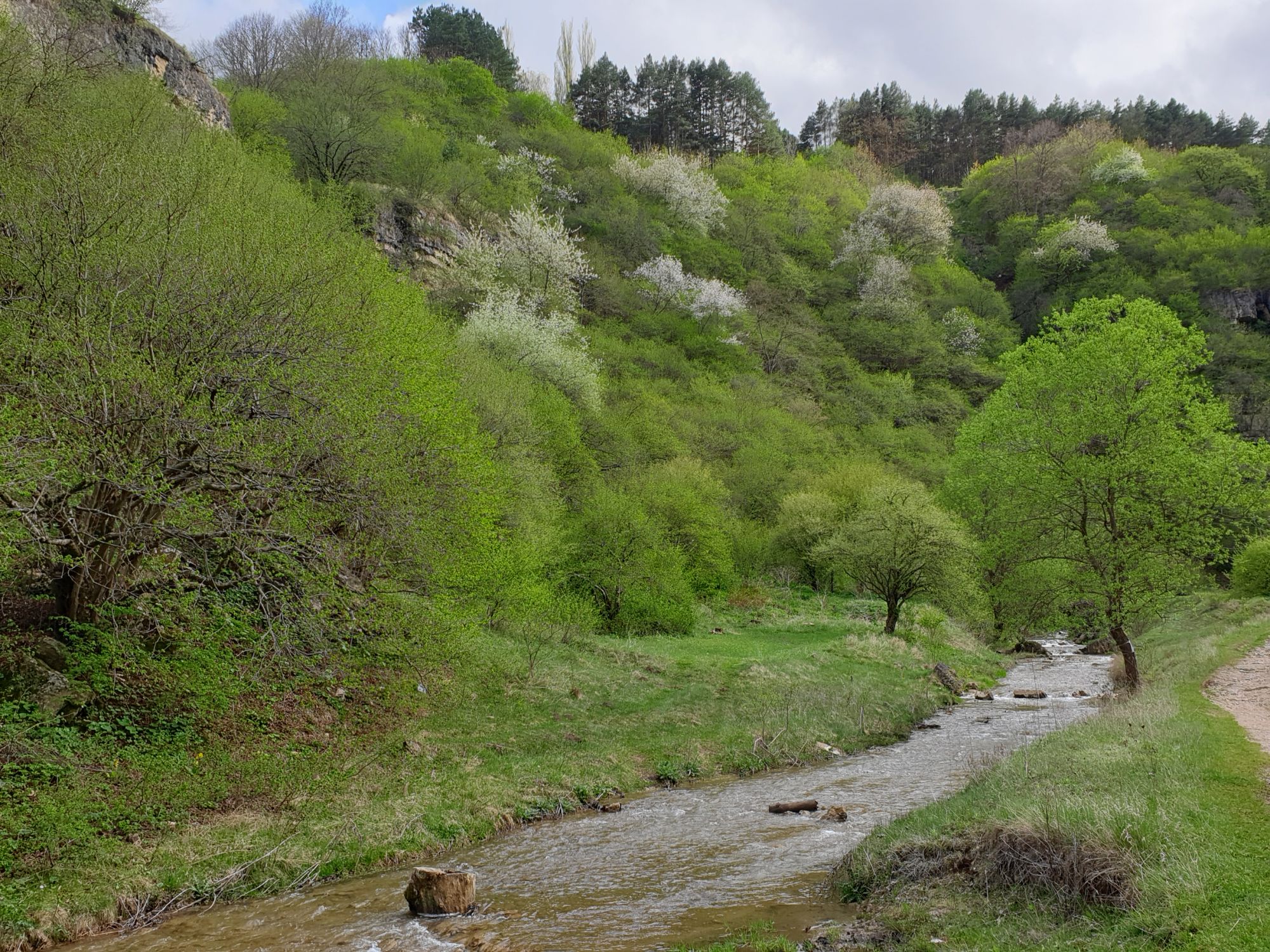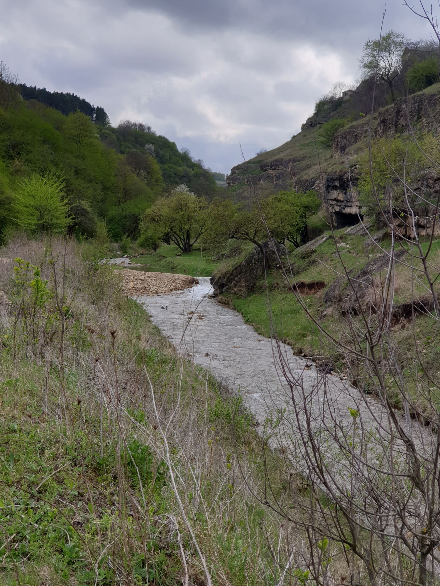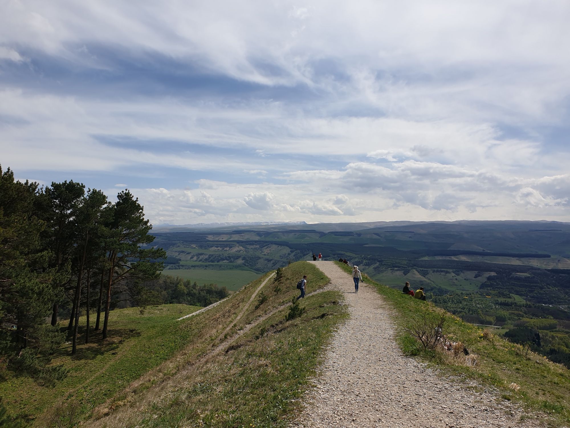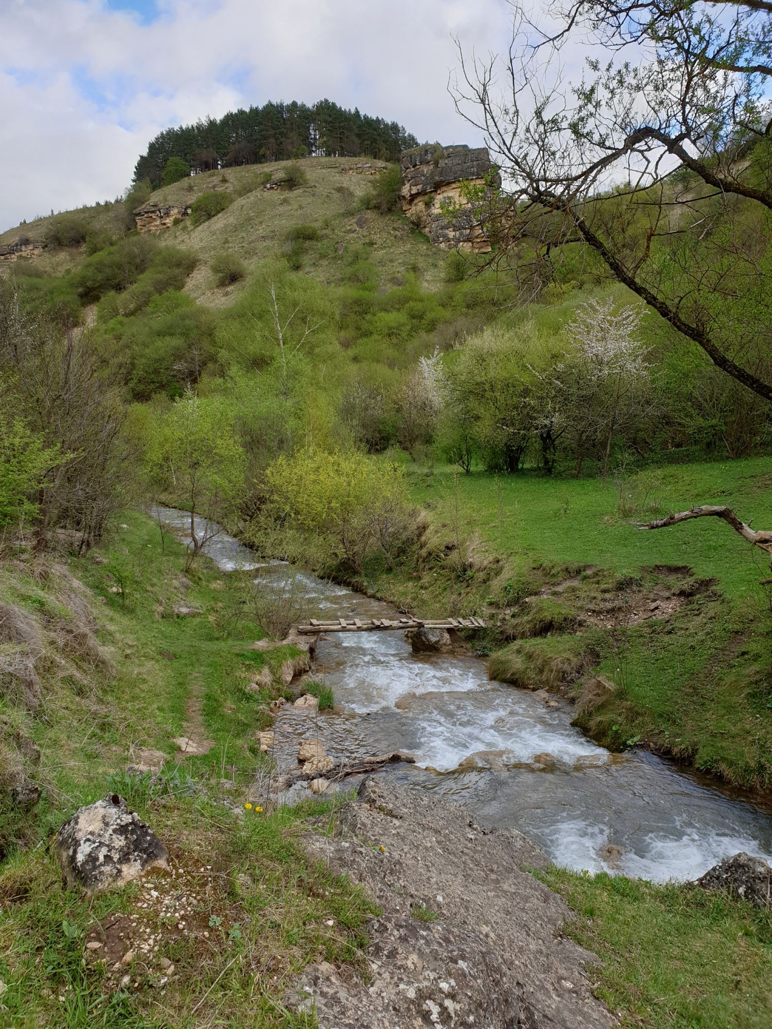 27 мая 2019 Вообще говоря, глядя на прогноз погоды перед поездкой, меня посещало некоторое смутное беспокойство. Большинство дней +9, +12, +14 градусов и дождь. Но во-первых, я помнила, что климат там намного мягче и температуры ощущаются совсем иначе, а во-вторых, это же долгожданный Кисловодск! Ну просто вместо крема от загара я положила в чемодан теплой одежды и зонты.. Второе моя печаль была связана с тем, что я была уверена, что пропущу большую часть цветения вишни, яблони, весенних цветов.... ведь там же юг, должно было все закончиться, а у нас только-только начинало и к возвращению пик был бы явно пройден. Каково же было мое удивление, когда я попала в настоящий сад из цветущих деревьев и трав. Оказалось, что там из-за особенностей высоты и климата все цветет примерно в те же сроки, что и у нас. Причем на разных склонах чуть сдвинуто по времени. Поэтому насладиться я смогла по полной программе. И если из прошлой поездки я привезла в качестве воспоминаний запах цветущей липы, то сейчас.... яблоня, вишня, черемуха и еще куча не особенно знакомых мне ароматов, но таких весенних и дарящих наслаждение. А под конец еще и сирень с каштанами зацвели. Цветочную подборку я показывала вот здесь, в отчете с места действия, так сказать Ну а что касается погоды... все действительно оказалось не так страшно. Благодаря тому, что город защищен со всех сторон горами и ветра почти нет, температуры воспринимаются по-другому. Гулять одно удовольствие. И даже плюсы есть: жарой не прибивает, народу меньше, тучи создают весьма причудливые картины (то будто горы дымятся, то неведомая облачная лапа протянулась к горе за чем-то явно принадлежащем ей, то вдруг посветлевшее вдали небо делит открывающиеся просторы на свет и тьму ), реки более полноводны и завораживающе бурлят средь камней, а плачущий водопад на туристической тропе очень даже плакал, в отличие от нашей летней поездки. В один из дней прогноз погоды был примерно тем же, но природа решила порадовать нас солнцем пораньше. И в итоге, начавшись как прогулка по городу к той самой Армянской церкви из предыдущего сообщения, день стал весьма запоминающимся, т.к. ноги вынесли нас прямиком к Березовскому ущелью. Ущелье это не совсем характерно для окрестностей Кисловодска. Большая часть их здесь относительно широки, а это узкое и с отвесными склонами. Если вам на фото ниже где-то покажется, что стена искусственная, то это не так. Всё самые настоящие горные породы и обрывы, над которыми поработали лишь ветер и вода. На пути к ущелью: И вот мы уже здесь. Броды, перекаты, отвесные стены гор, небольшие полянки, "горные коровы" (как выяснилось далее, самые обычные обитатели всех местных ущелий), а здесь еще и скалолазы (две или три скальных стены очищены и пробиты маршруты) и... внимание!.. канатоходцы! Да-да, здесь натянуты канаты в одной из боковых расщелин, где тренируется немало народу (есть на паре фоток ниже). А самые продвинутые пытаются перейти ущелье поперек у скалы, называемой Наковальня (вот та, огромная и похожая на замок). Высота огромная. Смотреть на это и страшно и крайне интересно одновременно Это было впечатляющая и незабываемая прогулка. Там бы еще идти и идти, но уж больно поздно мы туда забрели. Солнце стало клониться к горизонту и нам пришлось повернуть обратно. А на следующий день нас ждало весьма ожидаемое нами событие -