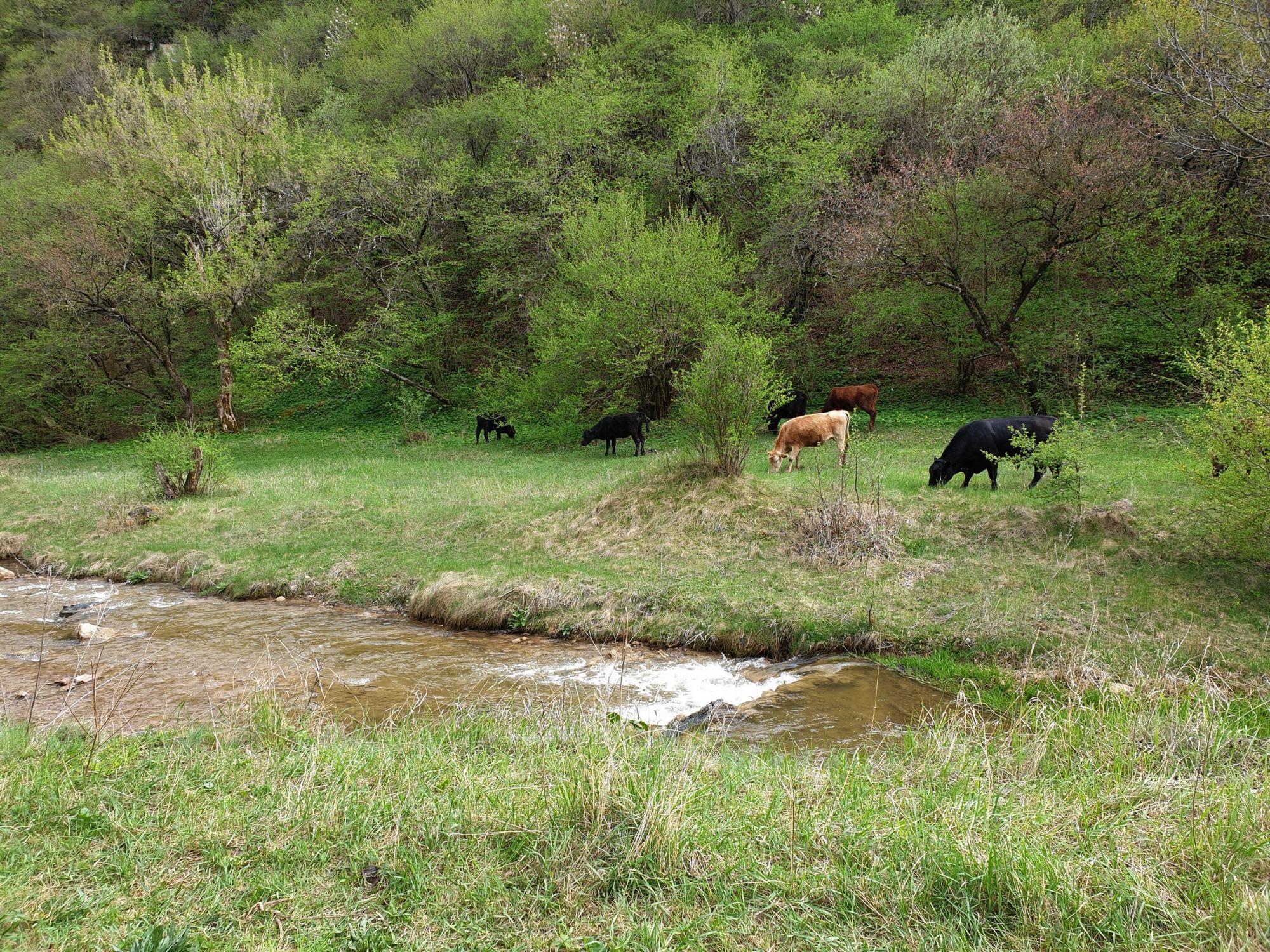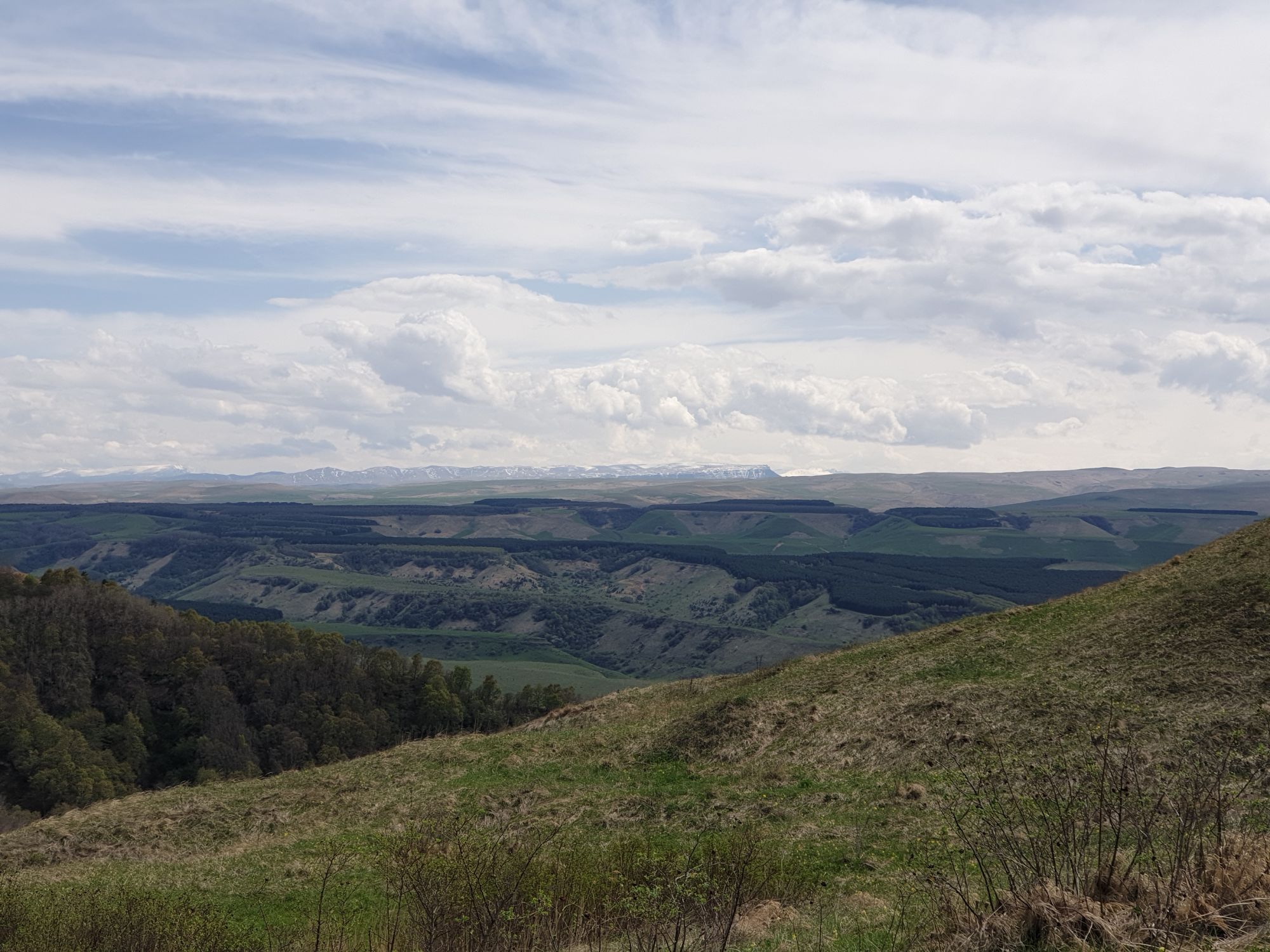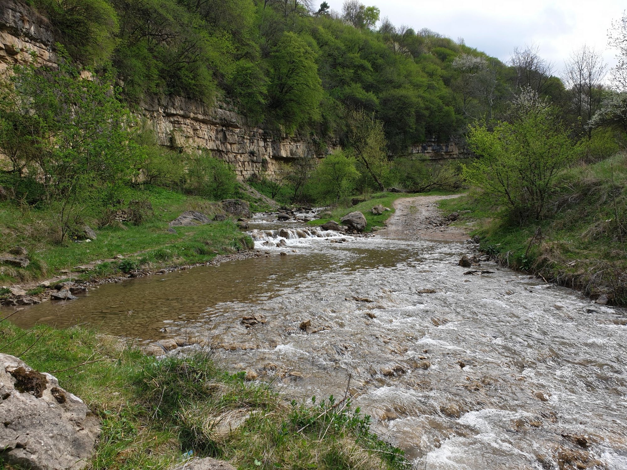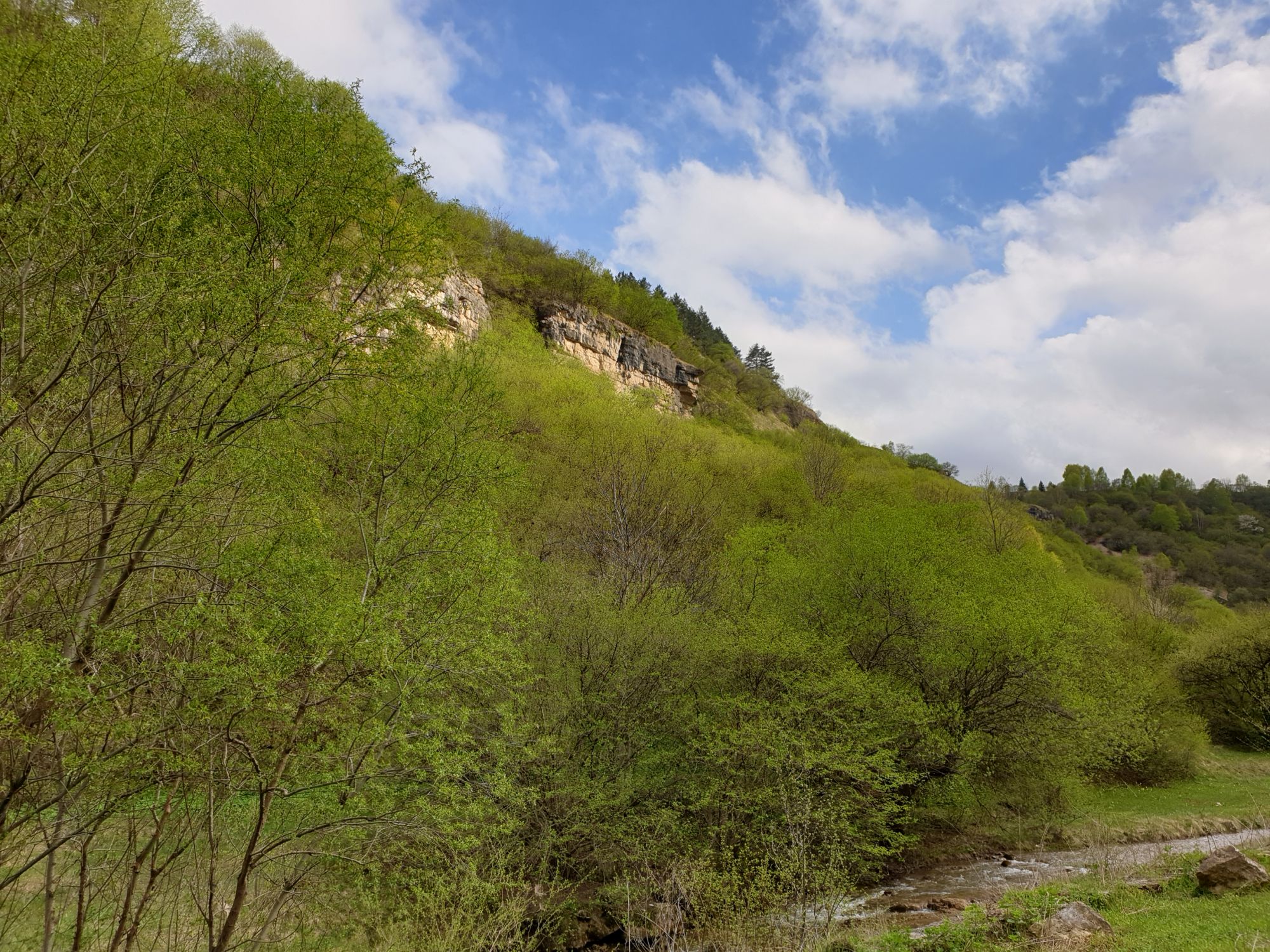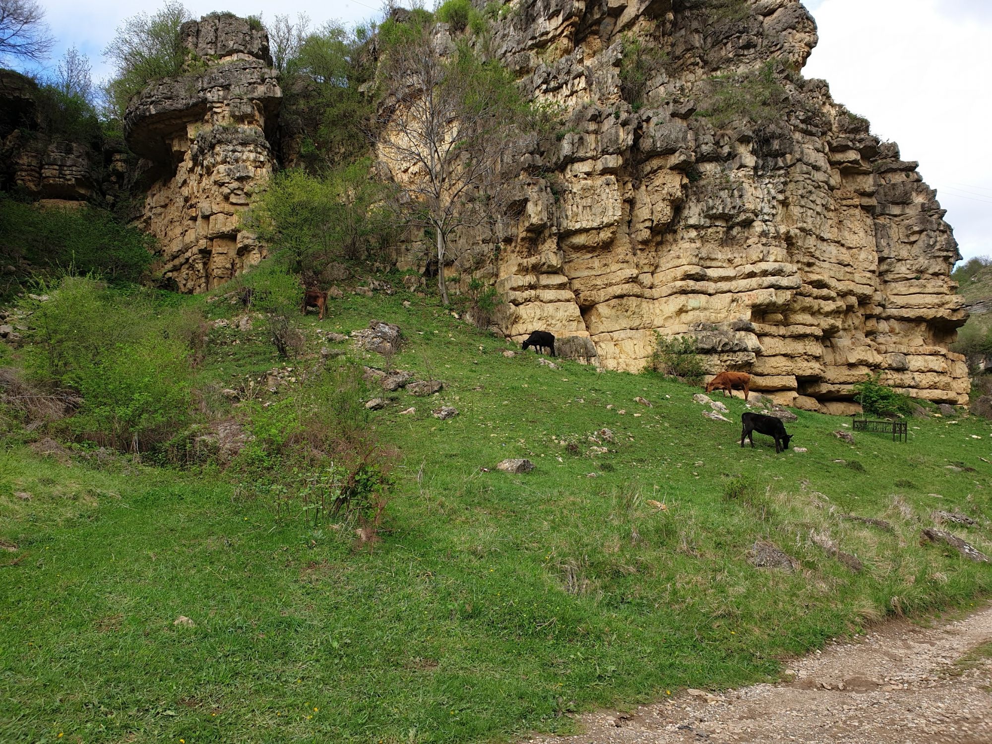 27 мая 2019 Вообще говоря, глядя на прогноз погоды перед поездкой, меня посещало некоторое смутное беспокойство. Большинство дней +9, +12, +14 градусов и дождь. Но во-первых, я помнила, что климат там намного мягче и температуры ощущаются совсем иначе, а во-вторых, это же долгожданный Кисловодск! Ну просто вместо крема от загара я положила в чемодан теплой одежды и зонты.. Второе моя печаль была связана с тем, что я была уверена, что пропущу большую часть цветения вишни, яблони, весенних цветов.... ведь там же юг, должно было все закончиться, а у нас только-только начинало и к возвращению пик был бы явно пройден. Каково же было мое удивление, когда я попала в настоящий сад из цветущих деревьев и трав. Оказалось, что там из-за особенностей высоты и климата все цветет примерно в те же сроки, что и у нас. Причем на разных склонах чуть сдвинуто по времени. Поэтому насладиться я смогла по полной программе. И если из прошлой поездки я привезла в качестве воспоминаний запах цветущей липы, то сейчас.... яблоня, вишня, черемуха и еще куча не особенно знакомых мне ароматов, но таких весенних и дарящих наслаждение. А под конец еще и сирень с каштанами зацвели. Цветочную подборку я показывала вот здесь, в отчете с места действия, так сказать Ну а что касается погоды... все действительно оказалось не так страшно. Благодаря тому, что город защищен со всех сторон горами и ветра почти нет, температуры воспринимаются по-другому. Гулять одно удовольствие. И даже плюсы есть: жарой не прибивает, народу меньше, тучи создают весьма причудливые картины (то будто горы дымятся, то неведомая облачная лапа протянулась к горе за чем-то явно принадлежащем ей, то вдруг посветлевшее вдали небо делит открывающиеся просторы на свет и тьму ), реки более полноводны и завораживающе бурлят средь камней, а плачущий водопад на туристической тропе очень даже плакал, в отличие от нашей летней поездки. В один из дней прогноз погоды был примерно тем же, но природа решила порадовать нас солнцем пораньше. И в итоге, начавшись как прогулка по городу к той самой Армянской церкви из предыдущего сообщения, день стал весьма запоминающимся, т.к. ноги вынесли нас прямиком к Березовскому ущелью. Ущелье это не совсем характерно для окрестностей Кисловодска. Большая часть их здесь относительно широки, а это узкое и с отвесными склонами. Если вам на фото ниже где-то покажется, что стена искусственная, то это не так. Всё самые настоящие горные породы и обрывы, над которыми поработали лишь ветер и вода. На пути к ущелью: И вот мы уже здесь. Броды, перекаты, отвесные стены гор, небольшие полянки, "горные коровы" (как выяснилось далее, самые обычные обитатели всех местных ущелий), а здесь еще и скалолазы (две или три скальных стены очищены и пробиты маршруты) и... внимание!.. канатоходцы! Да-да, здесь натянуты канаты в одной из боковых расщелин, где тренируется немало народу (есть на паре фоток ниже). А самые продвинутые пытаются перейти ущелье поперек у скалы, называемой Наковальня (вот та, огромная и похожая на замок). Высота огромная. Смотреть на это и страшно и крайне интересно одновременно Это было впечатляющая и незабываемая прогулка. Там бы еще идти и идти, но уж больно поздно мы туда забрели. Солнце стало клониться к горизонту и нам пришлось повернуть обратно. А на следующий день нас ждало весьма ожидаемое нами событие -