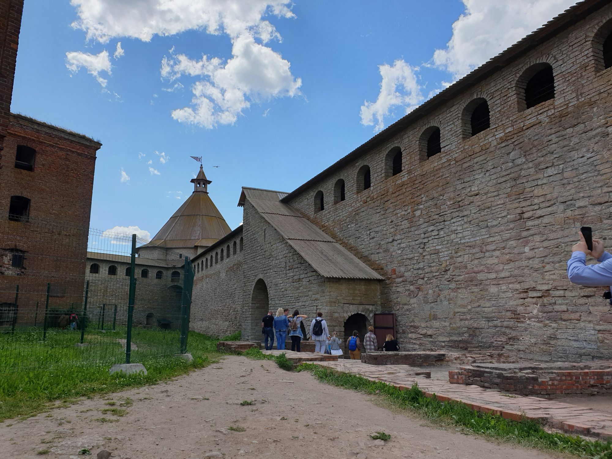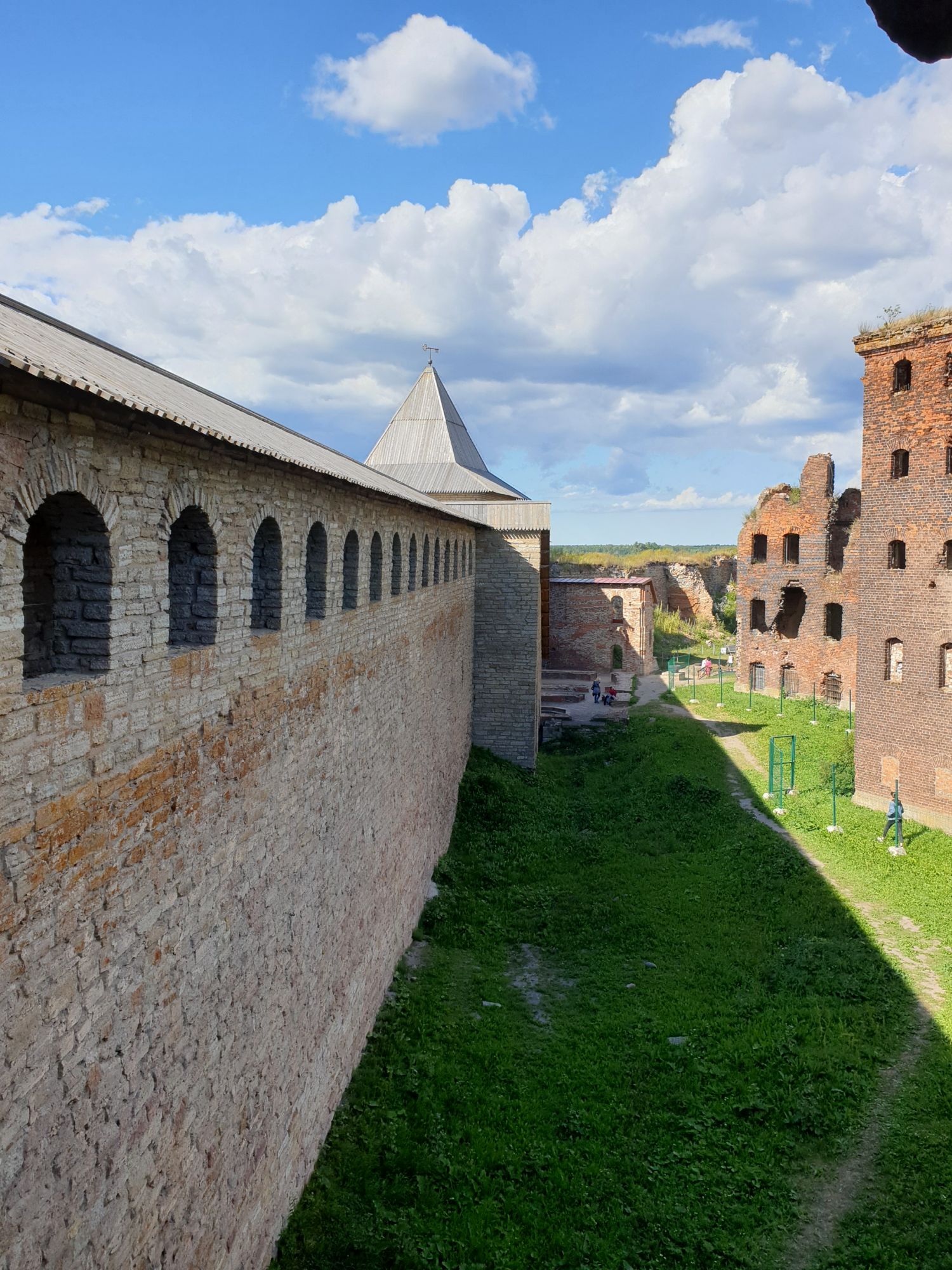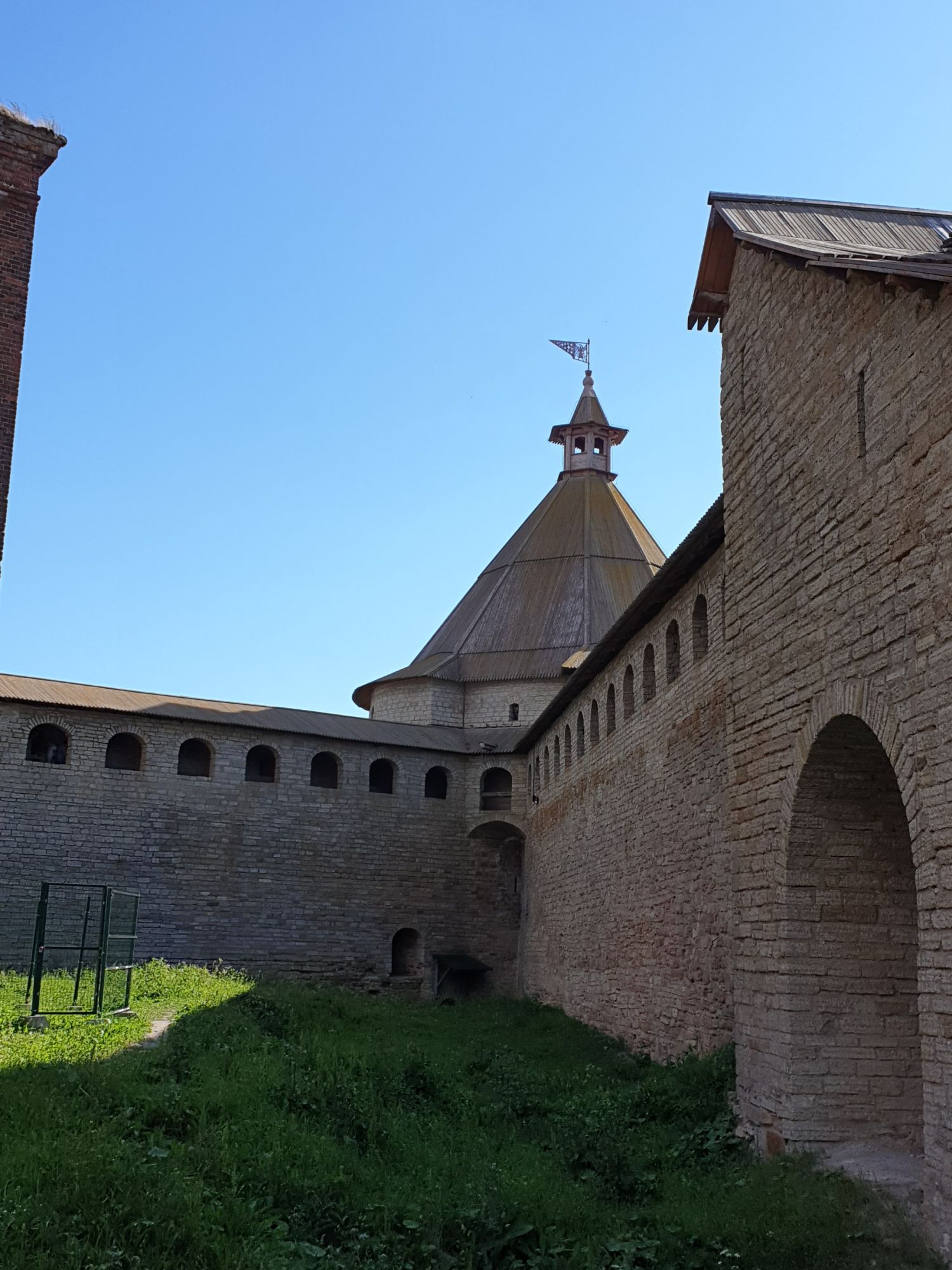 10 июля 2019 Итак, я продолжаю. Крепость Орешек. Мы отправлялись на пароме с пристани Шлиссельбурга. Если не ошибаюсь, то рейсы каждые 15 минут. Можно еще с противоположной стороны Невы добраться, там тоже много паромов. На самом острове сначала прогулялись вокруг крепости, детям дано было задание рассмотреть все шпили башен и найти что-то интересное (а именно ключ на верхушке Государевой башни, с чем они отлично справились). а потом поспешили к месту сбора экскурсии: она входит в стоимость билета и проводится каждый час. И хотя, повторюсь, я перед поездкой много читала (а так получилось, что почти накануне мы с детьми еще и книгу про древние крепости читали,, про их устройство и историю. Там как раз про Орешек было. Тогда-то и решено было окончательно сюда заехать), но из экскурсии узнала много для себя нового и интересного. Во-первых, нас ткнули носом в "новейшие технологии" (по времени XVIв, конечно), которые при самостоятельном осмотре мы бы приняли просто за живописные архитектурные элементы. Подъемный мост, "каменный мешок", поворот входа на 90 градусов внутри башни для предотвращения возможности действия тараном, крутые крытые лестницы, на которые не так просто забираться с оружием и с которых так просто сталкивать врагов, чтобы они увлекали за собой позади идущих...и это еще не полный список. В общем, познаний в устройстве средневековых крепостей у меня существенно прибавилось, все это безумно интересно. А еще в дошведский период в крепости были каналы, куда через специальные небольшие арки могли с Невы и Ладоги заходить лодки, убрав паруса, чтобы спрятаться от шведских набегов. Вот как-то так: Канал во времена шведов превратился в зловонную яму и впоследствии был засыпан. А после того, как Петром I были основаны Санкт-Петербург и Кронштадт, а спустя несколько лет и взят Выборг, Орешек потерял оборонительное значение и превратился в политическую тюрьму. Первыми узницами ее стали сестра царя Мария Алексеевна и его первая жена Евдокия Лопухина. Здесь же содержался и малолетний император Российской империи Иоанн IV Антонович, иногда называемый "русской железной маской", и умертвленный при попытке его освобождения. Здесь же многие декабристы ожидали приговора, а потом содержались и народовольцы. И с каким бы пиететом не рассказывали о них здесь экскурсоводы, не покидало ощущение... в общем, я никогда не буду восхищаться членами организации, открыто называющей себя террористической, какие бы они блестящие поэты или ученые ни были. Ну а потом здесь же построили и каторжный корпус. В общем. Тюрьма во всех своих проявлениях и ипостасях. Со всеми своими ужасами. в 1917 году революционеры пришли под стены Орешка с требованием освободить политических по списку. Их освободили. Но освобожденные потребовали, чтоб выпустили и всех остальных. Заключенных (в т.ч. и убийц, насильников, и прочее) собрали во дворе крепости и заставили поклясться, что они больше не будут совершать противозаконных действий, после чего отпустили. Ну и тюрьму тут же все дружно разгромили. Далее цитирую экскурсовода: нет достоверных сведений об их (отпущенных) дальнейшей судьбе, но сразу после этого в Шлиссельбурге и окрестностях был зафиксирован огромный всплеск преступности. Короче история абсурда и еще одна грань революции. Ну а потом была война. Немцы, придя в Шлиссельбург, не п