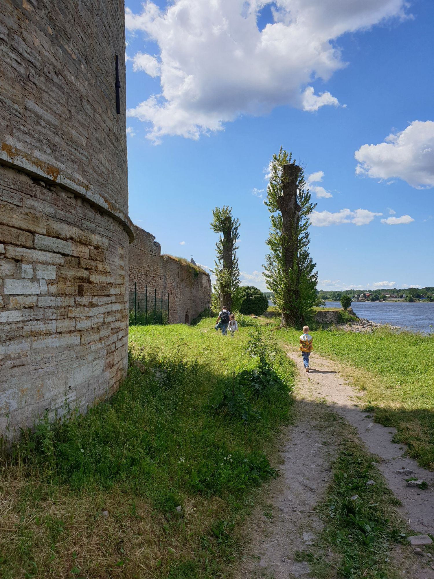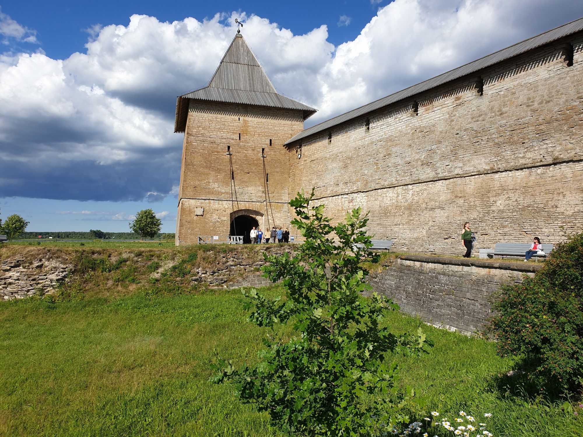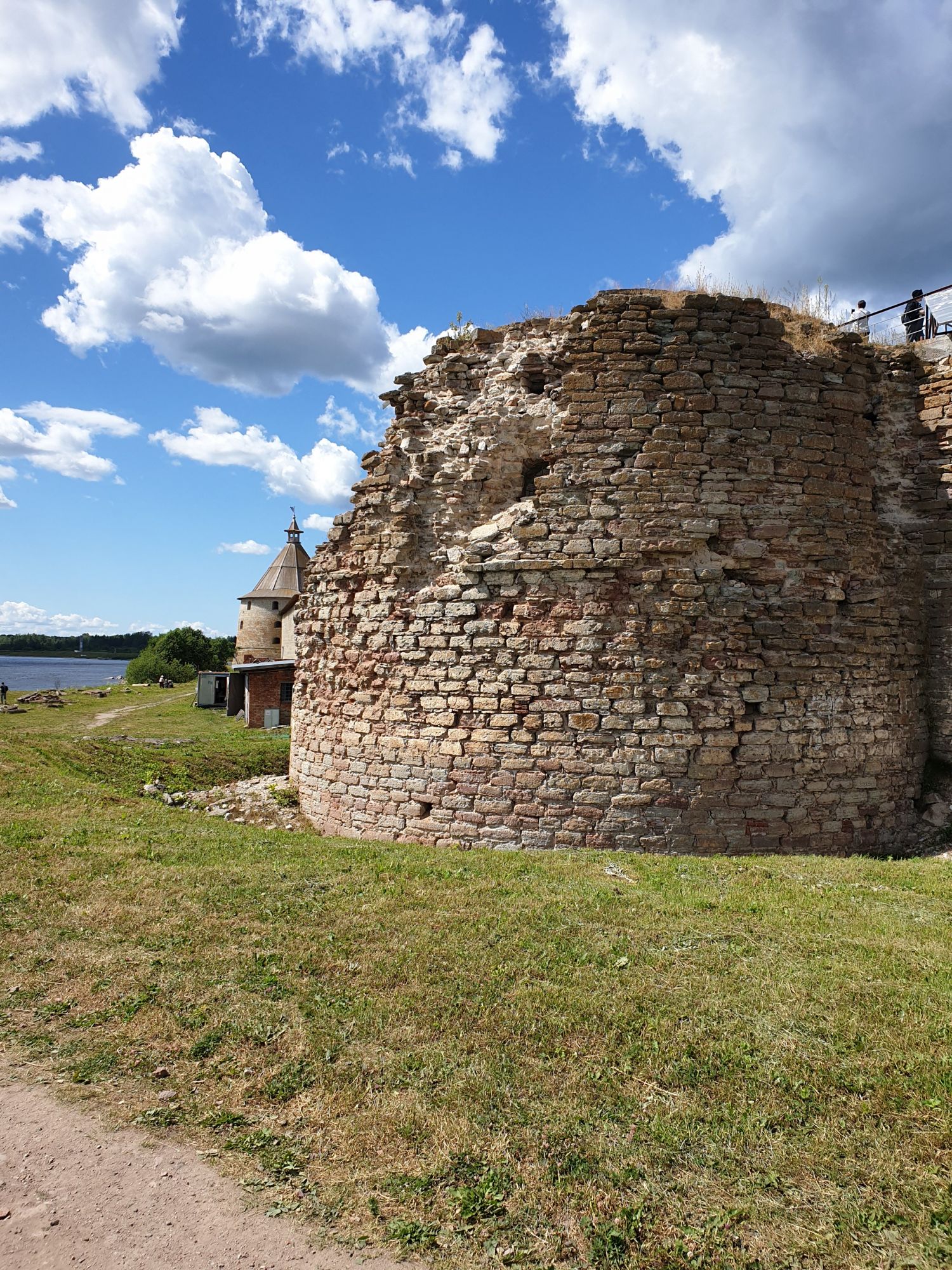 10 июля 2019 Итак, я продолжаю. Крепость Орешек. Мы отправлялись на пароме с пристани Шлиссельбурга. Если не ошибаюсь, то рейсы каждые 15 минут. Можно еще с противоположной стороны Невы добраться, там тоже много паромов. На самом острове сначала прогулялись вокруг крепости, детям дано было задание рассмотреть все шпили башен и найти что-то интересное (а именно ключ на верхушке Государевой башни, с чем они отлично справились). а потом поспешили к месту сбора экскурсии: она входит в стоимость билета и проводится каждый час. И хотя, повторюсь, я перед поездкой много читала (а так получилось, что почти накануне мы с детьми еще и книгу про древние крепости читали,, про их устройство и историю. Там как раз про Орешек было. Тогда-то и решено было окончательно сюда заехать), но из экскурсии узнала много для себя нового и интересного. Во-первых, нас ткнули носом в "новейшие технологии" (по времени XVIв, конечно), которые при самостоятельном осмотре мы бы приняли просто за живописные архитектурные элементы. Подъемный мост, "каменный мешок", поворот входа на 90 градусов внутри башни для предотвращения возможности действия тараном, крутые крытые лестницы, на которые не так просто забираться с оружием и с которых так просто сталкивать врагов, чтобы они увлекали за собой позади идущих...и это еще не полный список. В общем, познаний в устройстве средневековых крепостей у меня существенно прибавилось, все это безумно интересно. А еще в дошведский период в крепости были каналы, куда через специальные небольшие арки могли с Невы и Ладоги заходить лодки, убрав паруса, чтобы спрятаться от шведских набегов. Вот как-то так: Канал во времена шведов превратился в зловонную яму и впоследствии был засыпан. А после того, как Петром I были основаны Санкт-Петербург и Кронштадт, а спустя несколько лет и взят Выборг, Орешек потерял оборонительное значение и превратился в политическую тюрьму. Первыми узницами ее стали сестра царя Мария Алексеевна и его первая жена Евдокия Лопухина. Здесь же содержался и малолетний император Российской империи Иоанн IV Антонович, иногда называемый "русской железной маской", и умертвленный при попытке его освобождения. Здесь же многие декабристы ожидали приговора, а потом содержались и народовольцы. И с каким бы пиететом не рассказывали о них здесь экскурсоводы, не покидало ощущение... в общем, я никогда не буду восхищаться членами организации, открыто называющей себя террористической, какие бы они блестящие поэты или ученые ни были. Ну а потом здесь же построили и каторжный корпус. В общем. Тюрьма во всех своих проявлениях и ипостасях. Со всеми своими ужасами. в 1917 году революционеры пришли под стены Орешка с требованием освободить политических по списку. Их освободили. Но освобожденные потребовали, чтоб выпустили и всех остальных. Заключенных (в т.ч. и убийц, насильников, и прочее) собрали во дворе крепости и заставили поклясться, что они больше не будут совершать противозаконных действий, после чего отпустили. Ну и тюрьму тут же все дружно разгромили. Далее цитирую экскурсовода: нет достоверных сведений об их (отпущенных) дальнейшей судьбе, но сразу после этого в Шлиссельбурге и окрестностях был зафиксирован огромный всплеск преступности. Короче история абсурда и еще одна грань революции. Ну а потом была война. Немцы, придя в Шлиссельбург, не п