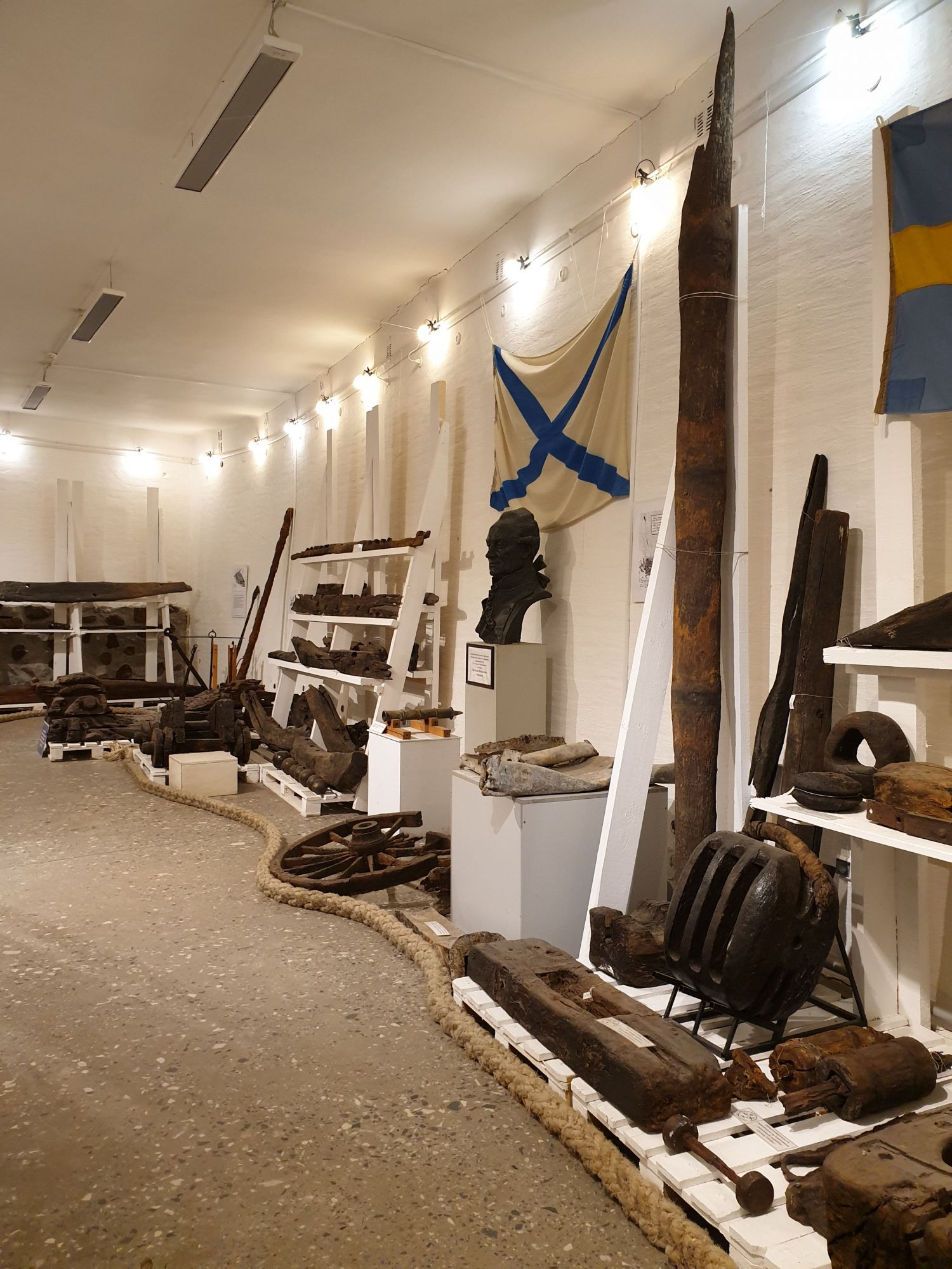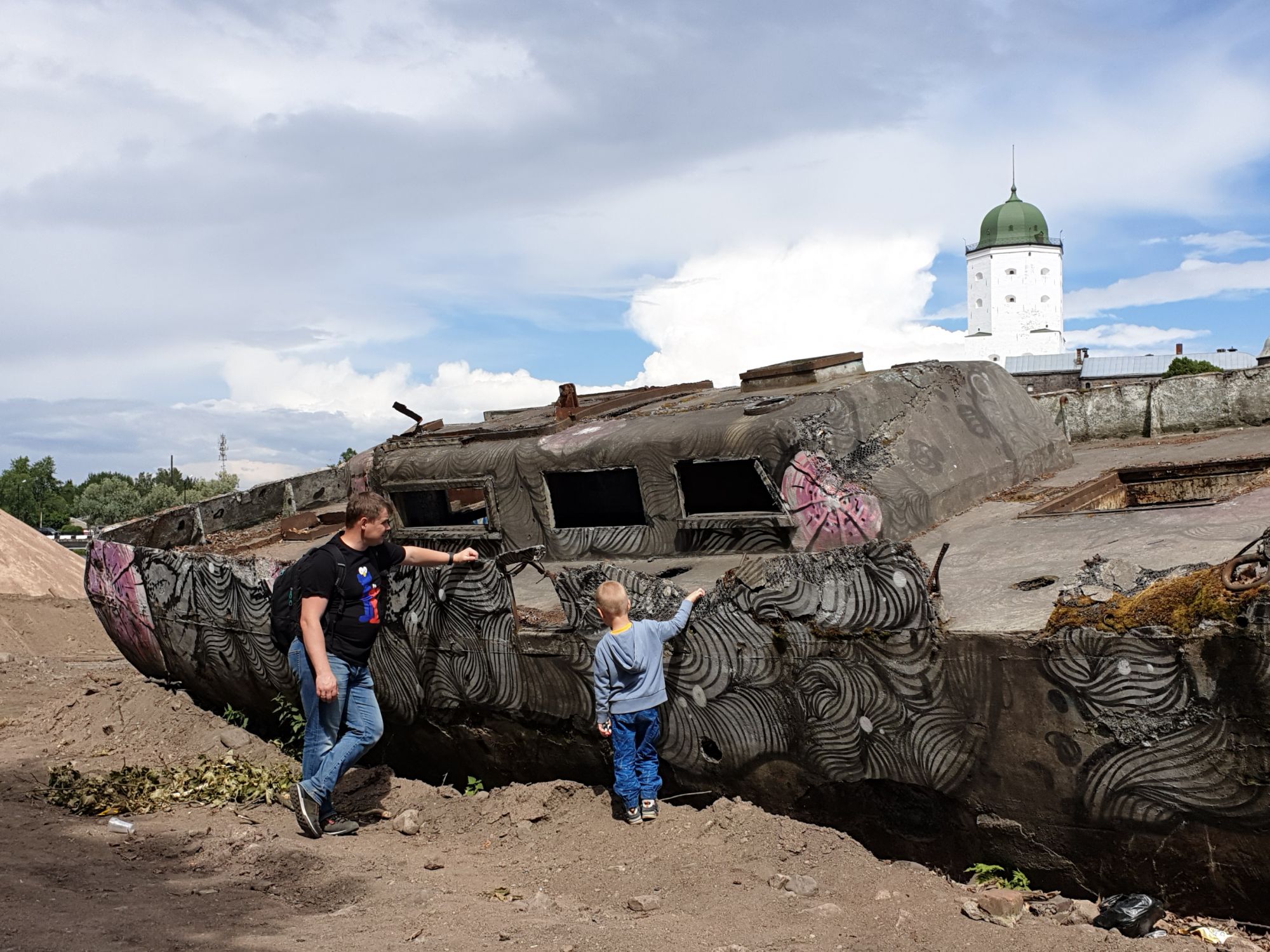 13 июля 2019 Ночью дождь все таки пошел и следующий день обещал быть дождливым. Мы отправились прямиком в крепость. Несмотря на то, что пришли к 12ти, билеты на подъем на башню были уже только на 14.00. К счастью, и мы, и дети любим музеи, поэтому с удовольствием провели это время, посетив основную экспозицию и музей затонувших кораблей. Ремарка1: смотрите внимательно расписание работы на сайте. Там не до конца все понятно, но указано, например, что подъем на башню осуществляется только со среды по воскресенье. Мы не стали проверять так ли это на самом деле и пошли в среду, посвятив вторник городу, что оказалось весьма удачным решением еще и с точки зрения погоды. Насколько я знаю, существует еще возможность подняться на башню в вечернее время, но на эти сеансы билеты надо бронировать недели за две на специальном сайте (вся инфа с оф.сайта) Ремарка2: башня Олафа открыта временно, между двумя этапами реставрации. Сейчас там техническая металлическая лестница вдоль стен и отсутствие перекрытий практически по всей высоте. В целом подъем несложный, но местами приходится пригибаться. И в декабре башню снова закрывают для посещений для финального этапа реставрации, в ходе которой будут сделаны в том числе межэтажные перекрытия. Итак, крепость. Здесь тоже большая часть на реставрации и закрыта для осмотра. Поэтому фотографий снаружи немного. Музей затонувших кораблей посвящен знаменитому морскому сражению Шведского и Русского флотов, когда шведы, запертые в бухте, пытались прорваться сквозь наши корабли. Считается, что русские одержали тога победу, т.к. не потеряли ни одного корабля, а у шведов были приличные потери. Собственно небольшая экспозиция представляет собой части затонувших тогда шведских кораблей. Примерно это выглядит вот так. В основном музее 1й этаж посвящен истории "дофинского" Выборга от археологических находок, свидетельствующих о пребывании здесь карел задолго до основания крепости, до макетов крепости разного периода и различных предметов, относящихся к эпохе средневековья. 2й этаж - это век XX. Как предметы и документы финского времени, так и огромное количество фотографий города разных годов. Нам было безумно интересно рассматривать эти фото и угадывать, что это за здания, прежде чем мы читали подписи. А еще мы тут увидели промышленный фотоувеличитель. С помощью него в 60х гг с негатива печатались большеформатные фотографии. 3й этаж представляет собой музей карельской природы. Спилы деревьев, макеты грибов, образцы почв, инсталляции с животными. А еще интерактивный уголок для детей, где можно позавязывать разные хитрые узлы (схемы тут же) и сравнить вес местной рыбы. Все части не очень большие, поэтому устать вряд ли успеешь. Тут пришло время подъема на башню. Я его ждала не только потому что, люблю подниматься везде, где только можно. И не только потому, что очень хотелось посмотреть на город и Финский залив сверху. А еще и потому, что Выборгская башня - это еще и...внимание... маяк!! Самый настоящий, задний створный знак одного из колен фарватера для захода в Сайменский канал (соединяет Сайменскую озерную систему в Финляндии и Финский залив, учитывая его извилистость в части морских подходов, здесь куча пар створных знаков: это те, что работают в паре и для верного курса капитану надо визуально совместить их огни на одной вертикаль