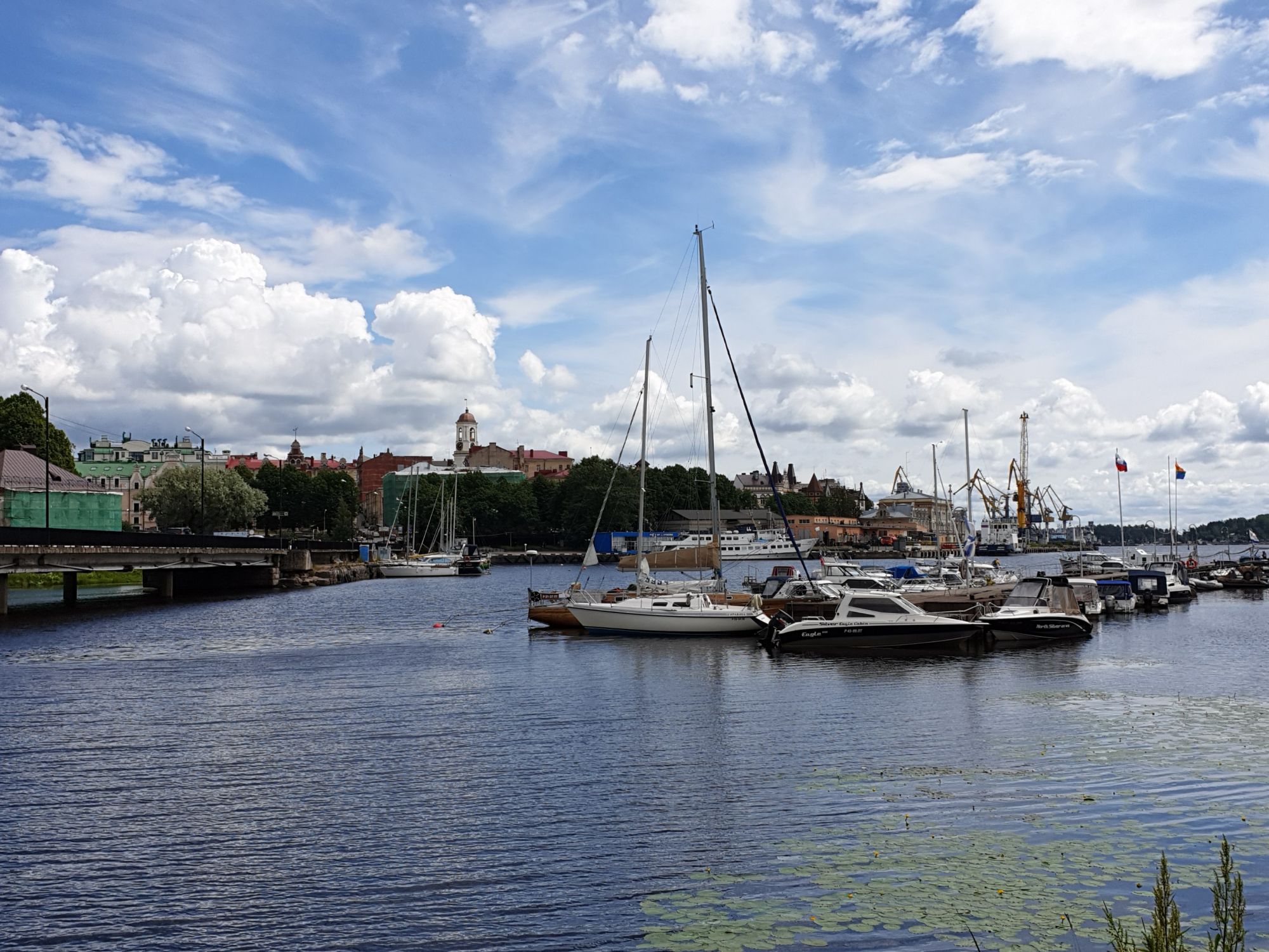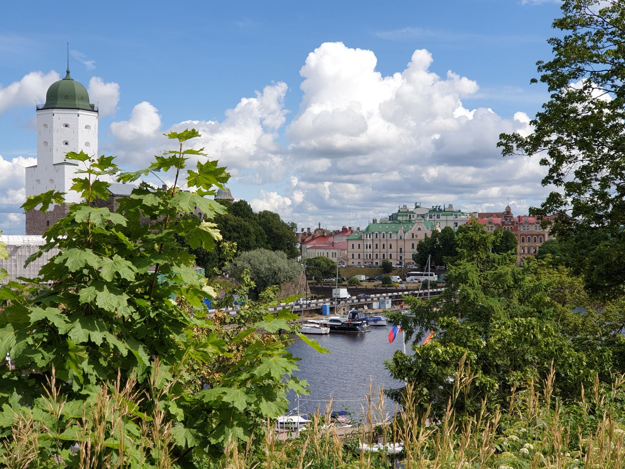 13 июля 2019 Итак, Выборг. Последние двое суток я сначала пыталась выбрать фотографии для рассказа о нашем пребывании в Выборге, а потом из трех сотен фото оставить хотя бы штук 70. Не вышло. Дальше полутора сотен дело не пошло. Так что придется в 2х частях... Выборгская крепость была основана шведами в 1293г для защиты от новгородцев. Те пытались взять ее несколько раз в течение следующих столетий, но безрезультатно. рядом с крепостью, на восточном берегу вырос город, который в XV-XVIвв обнесли стеной с воротами и башнями (Рогатая крепость). Сейчас о ней напоминают Башня Ратуши (предполагается, что она была проездной) и Круглая башня на Рыночной площади XVIв постройки, которая слегка выдавалась перед крепостной стеной и Скотопрогонными воротами (позже снесенными). И если сейчас подойти к башне со стороны Прогонной улицы, то отлично видно, где именно стены примыкали к башне. А нынешняя Рыночная площадь в то время была оживленным торгом, раскинувшимся перед крепостной стеной. В 1710г войска Петра I под командованием адмирала графа Апраксина со второй попытки (первая была за 4 года до этого) берут Выборг. При этом была применена рискованная хитрость. Войска из Кронштадта пришли к крепости в марте по льду Финского залива, т.е. с единственной незащищенной стороны. В русский период строится еще один оборонительный комплекс, теперь уже на западе: Анненские укрепления, имеющие в плане форму короны, неплохо сохранившиеся до наших дней. В XIXв город сильно перестраивают: сносят укрепления Рогатой крепости, появляется регулярная застройка и прямые улицы, а на востоке строят новые укрепления (совр.Батарейная гора). В 1918 в ходе Гражданской войны Княжество Финляндское объявляет независимость от Российской империи (входило в состав частично после Северной войны, полностью с начала XIXв) и начинается Финский этап истории города. В период 1939-1945 город трижды переходил из рук в руки, став в итоге частью Советского союза. Сейчас он представляет собой любопытное сплетение стилей и свидетелей разных эпох. И чтобы лучше его понять, очень рекомендую хоть немного почитать его историю, а потом на улицах представлять себя в роли разных персонажей. Вот купцы собираются у Гильдейского дома для заключения контрактов с иностранной делегацией, а вот русский солдат готовится отражать атаку шведов на бастионе у Фридрихсгамских ворот. А там по мощеной улице в горку из лавки идет хозяйка с покупками и т.д. и т.п. Ну и теперь о нашем путешествии. Жили мы в центре, вот в таком доме начала XXв (арх.Аллан Шульман, вероятно, второй по значимости после Уно Ульберга застройщик Выборга того времени). В подъезде классная удобная винтовая лестница с красивыми окнами. А внутри квартиры еще сюрприз: хозяин оказался творческим человеком с фантазией, любовью к дереву и умелыми руками. Все выглядело очень стильно и с настроением и сразу же напомнило мне ту страсть, с которой мы вышивальщицы, применяем вышивку ко всем возможным прикладным вещам в своем обиходе. Ну а на десерт был вид из окна. Вы уж простите, но он будет мелькать в моем отчете неоднократно, т.к. он в моих впечатлениях от поездки занимает далеко не последнее место. Вид на башню Ратуши. Ту самую, уцелевшую от Рогатой крепости. Время было уже около восьми вечера и нам очень хотелось есть после насыщенного дня в Старой ладоге и на Осиновце. Но т