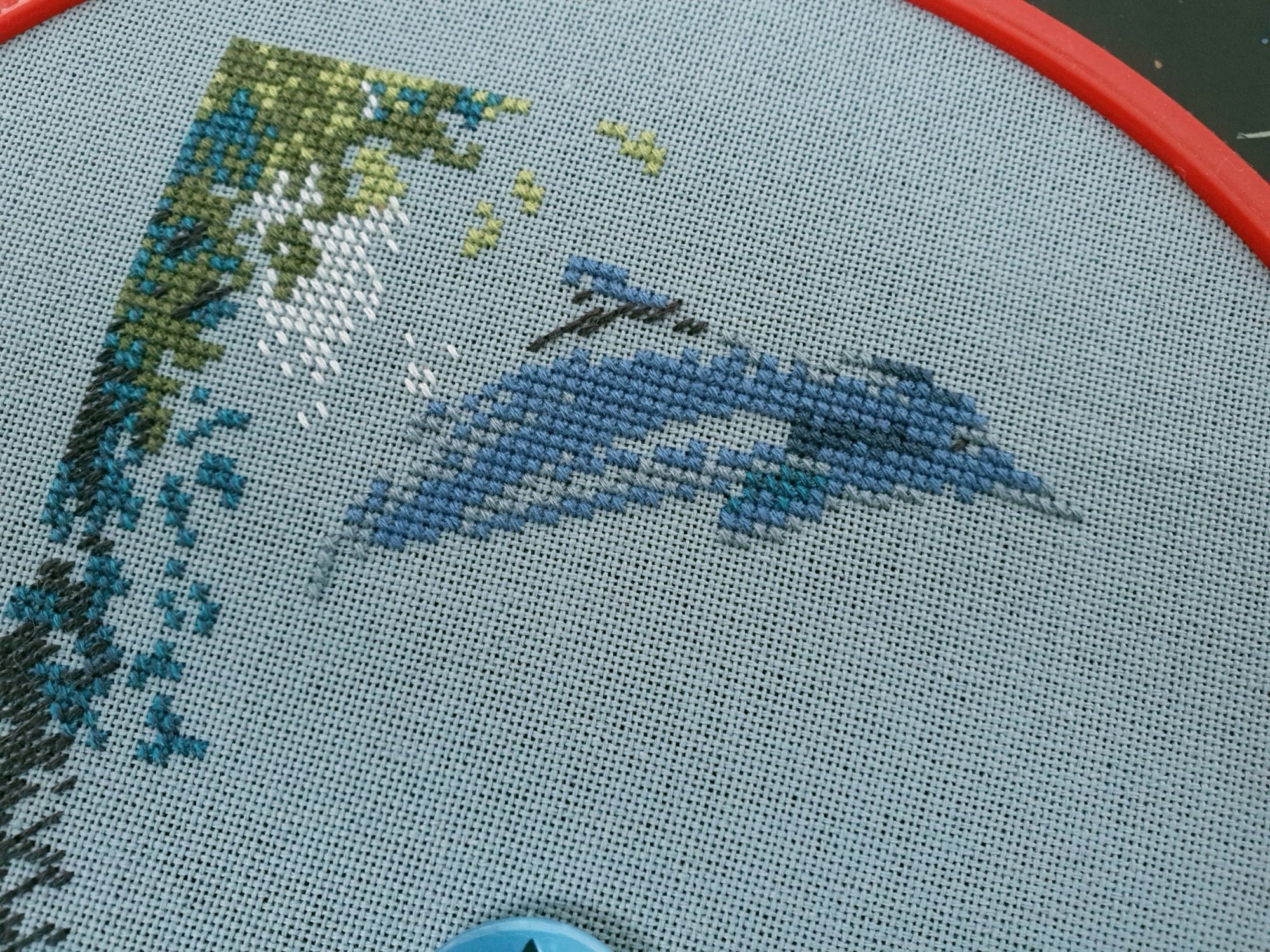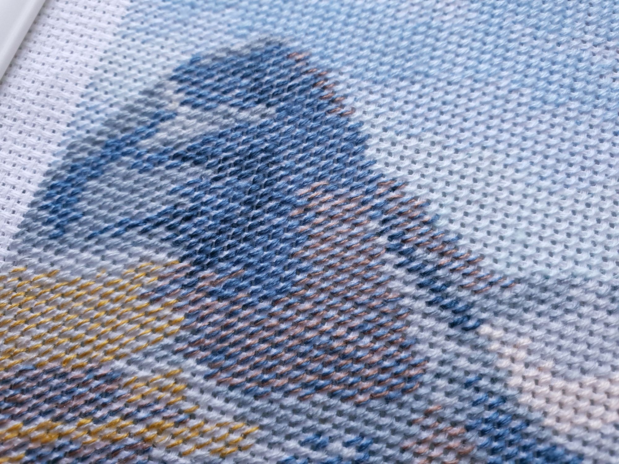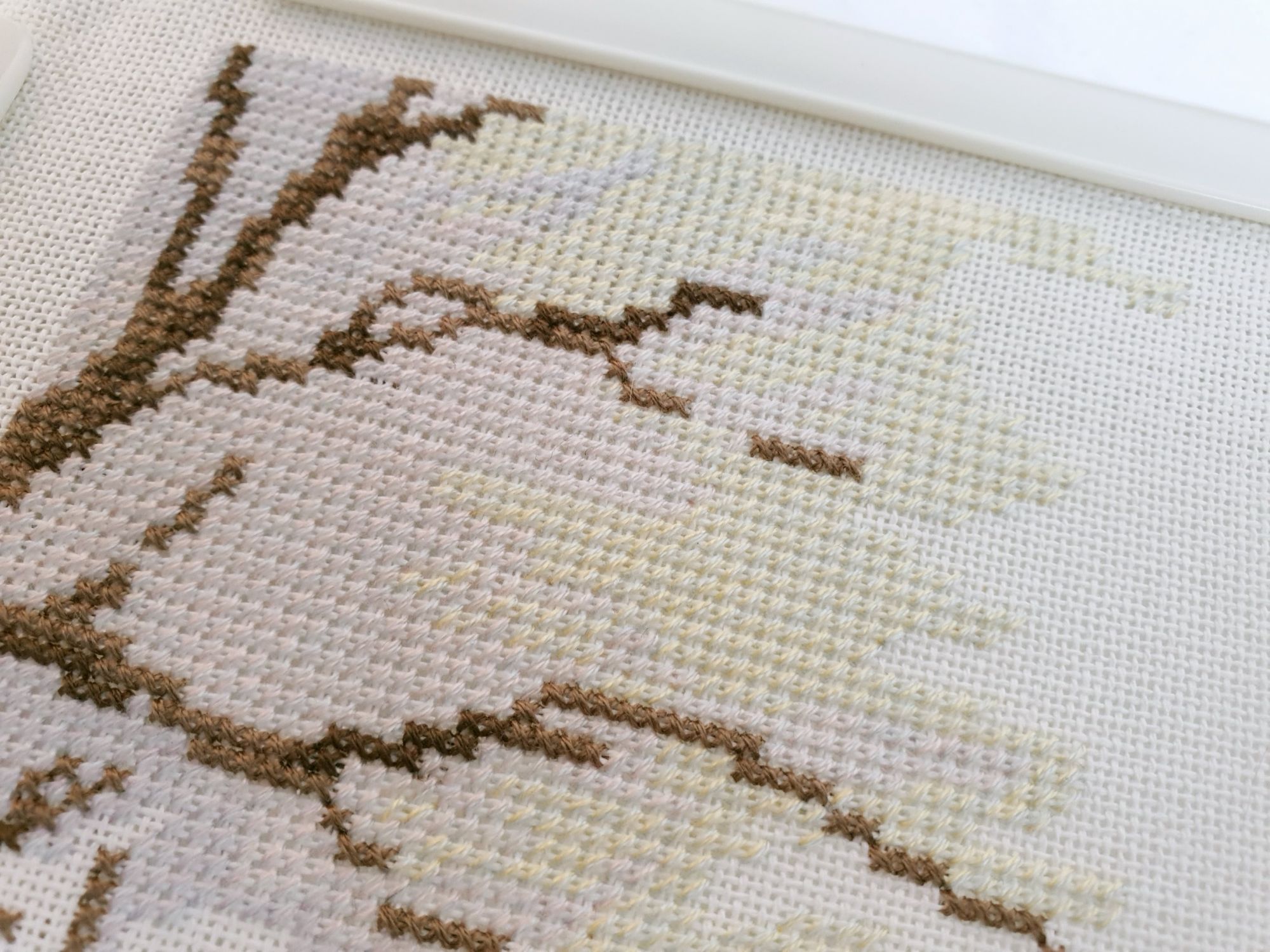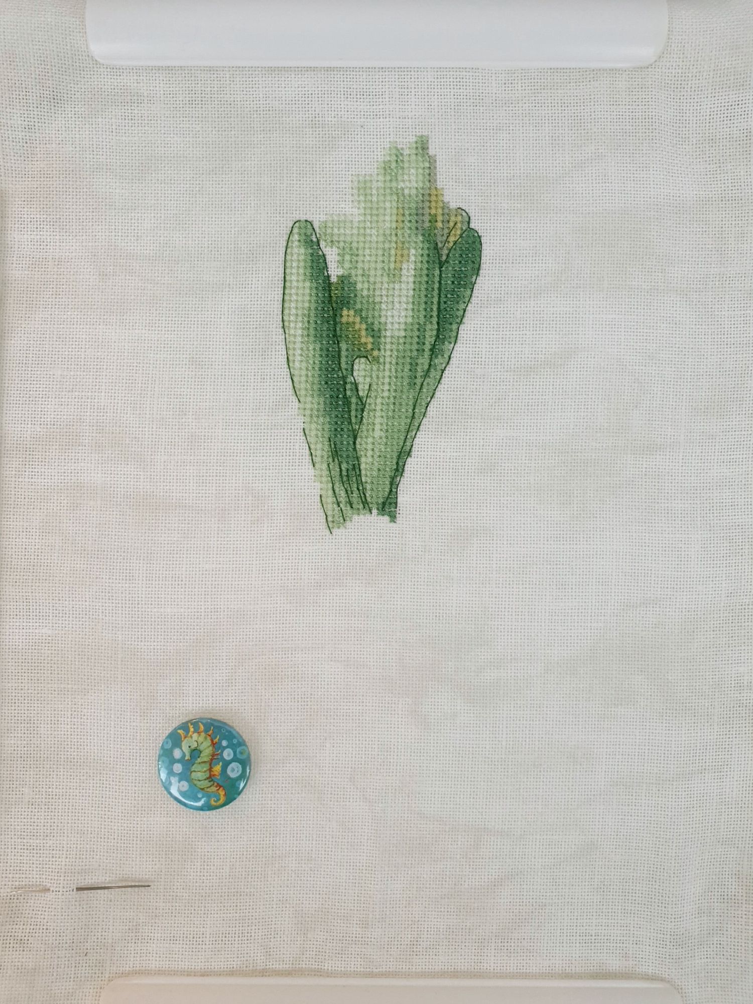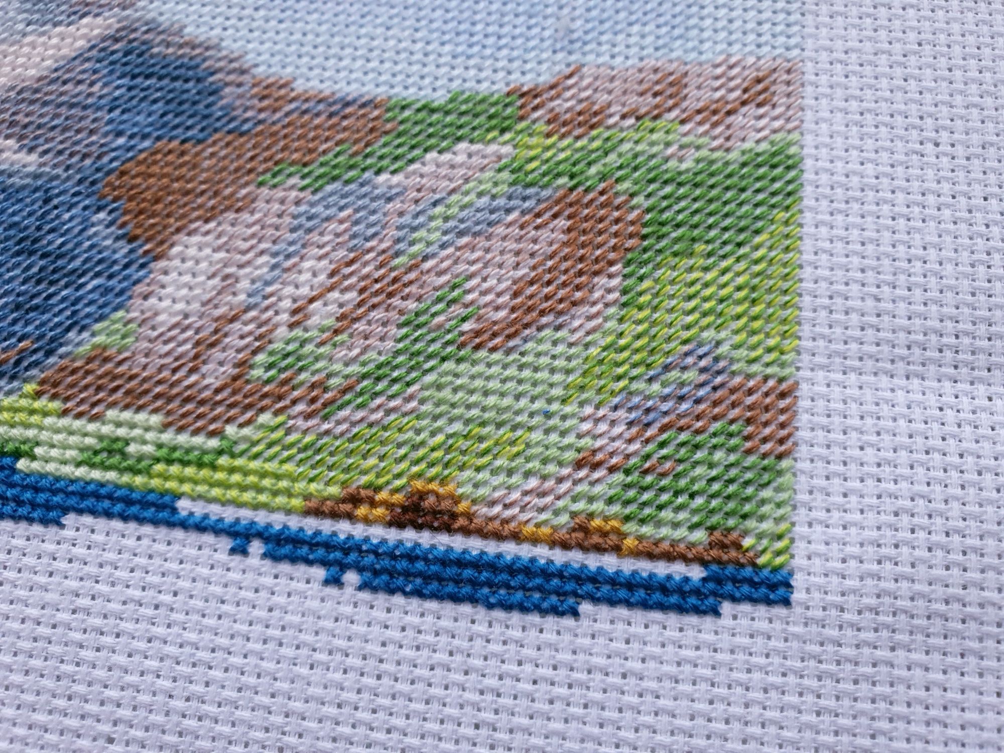 10 января 2020 Вот и пролетели каникулы как один миг. Кажется, что только вчера мы наряжали елку, а уже середина января. И отчет сегодня намечается длинным, потому как и про каникулы, и про обещания, и даже про продолжения.... Итак, здравствуйте! Первый отчет 2020го! Каникулы наши оказались немного ленивыми, т.к. Лешка с садовского утренника 27го числа принес какую-то не особо приятную заразу и так или иначе мы все это время были не очень здоровы. То по очереди, то вместе, то сильнее, то слабее, но все же две вылазки в поисках снега совершить смогли. Новый год же, как же без снега?! Вылазка первая. 30го декабря мы отправились на восток, целью нашей был Владимир. И если сначала снега не наблюдалось (зато наблюдалось большое количество красивых видов, ради которых я, собственно, и ехала), то потом и снег пошел. Набегались, накатались, новогоднего настроения поймали и 31го утром укатили с ним в обнимку домой Вторую вылазку мы предприняли уже ближе к концу каникул и сгоняли на пару дней к маме в гости, чуть больше 600 км на восток (или даже ю-в) и вот он, снеееег! Большинство фотографий сделано по пути до места назначения. А уж какую волшебную обратную дорогу подарила нам природа при участии яндекс-навигатора, что рекомендовал нам свернуть с основной трассы во избежании заторов! Чудный розовый закат, причудливо раскрасивший облака, волшебные все в хрустале деревья, белые поля и заснеженный лес. Вот оно, главное сокровище, привозимое из путешествий: эти волшебные картины, чудесные мгновения, которые никогда больше не повторятся, и второе,третье, .. седьмое дыхание и жажда жизни... и новых путешествий Жаль только, что чувствовала я себя неважно, а потому останавливаться для фотографирования не стали. Так что верьте на слово Про вышивку. Обещала я вам фееричный отчет с начинаниями. Но кто ж мог предположить, что случатся они, Лофотены овновские?! Они не только приковали к себе мое внимание, но и чудесным образом спровоцировали прибавления в нескольких других ранее начатых процессах. Поэтому сначала о них. Овен, Лофотенские острова - продолжение Они... они порой бесили, потому что кировские нитки, знаменитые своими катышками вкупе с грязноватыми оттенками гор создавали ощущение неопрятности вышитого полотна. К счастью, горы закончились вовремя, не успев отвратить меня от процесса. А дальше очень красивые и чистые оттенки воды, где эти самые катышки уже так не раздражают. А вчера я еще и горы отбэкала. Отбекала и закрыла схемой, чтоб дальше воду шить. А потом муж попросил показать, что получается. Я сняла схему, отодвинула от глаз и... прослезилась! Настолько сильное впечатление производит вот эта вот половинка работы! Она создана для меня, мне захотелось непременно и сейчас же оказаться там, на склонах вон тех гор, у кромки воды, постоять вон на тех камушках.... Муж же, немного помолчав, сказал: "Вот это точно надо будет оформить!" И через мгновение: "и поехать туда..." Не знаю уж туда или не туда, но в горы очень хочется. И пока не появился красный домик, по которому так легко узнаются норвежские фьорды, это вообще могут быть любые горы. Точнее я то знаю, куда я очень хочу в этом году, но пока буду молчать и мечтать планировать .... и с бэком: Инна Пешкова, Гиацинт - продолжение Почему-то подумалось мне, что совсем скоро у Марины @Маняша распустятся гиацинты. Ан нет, не угадала, у нее нар