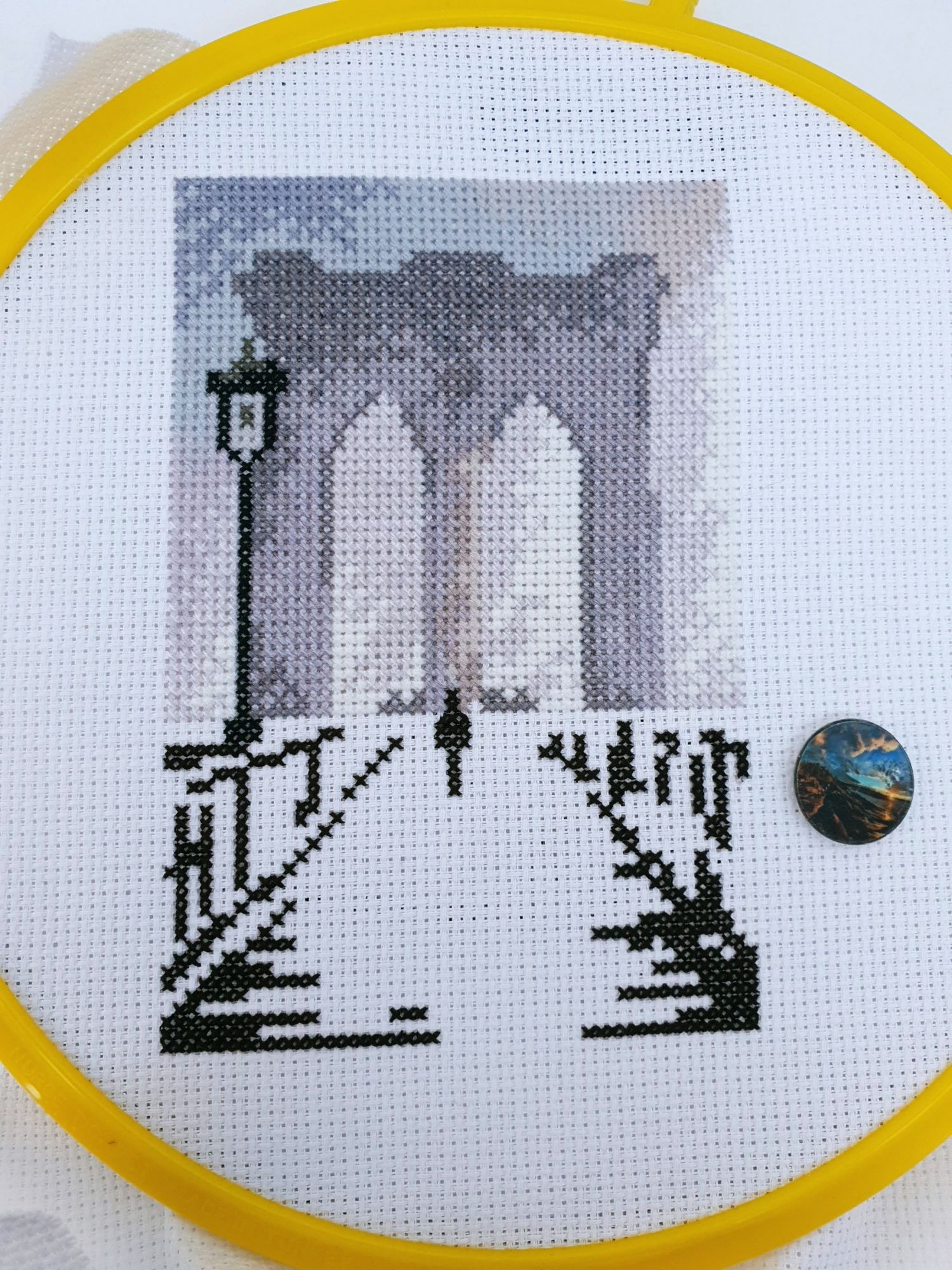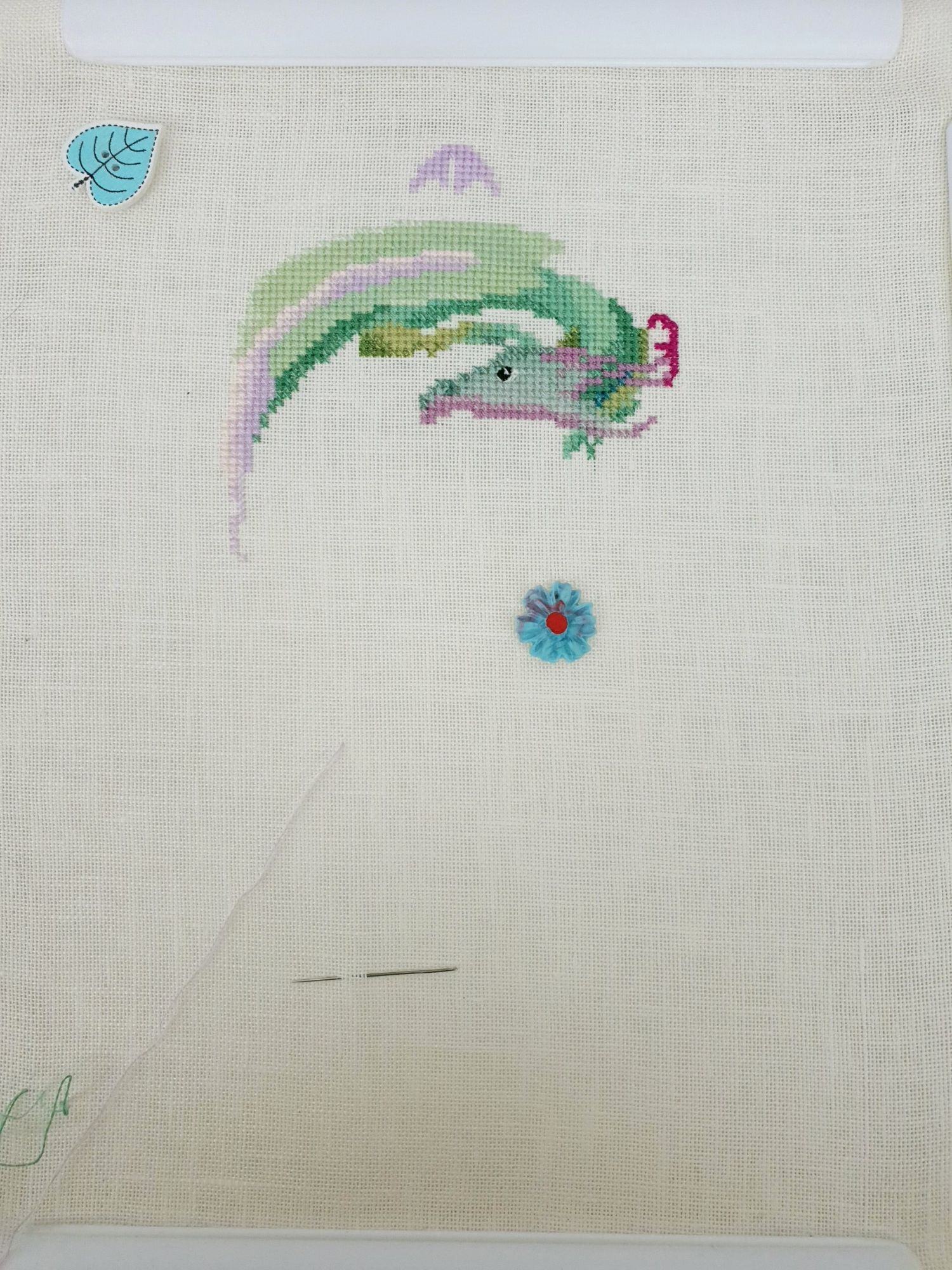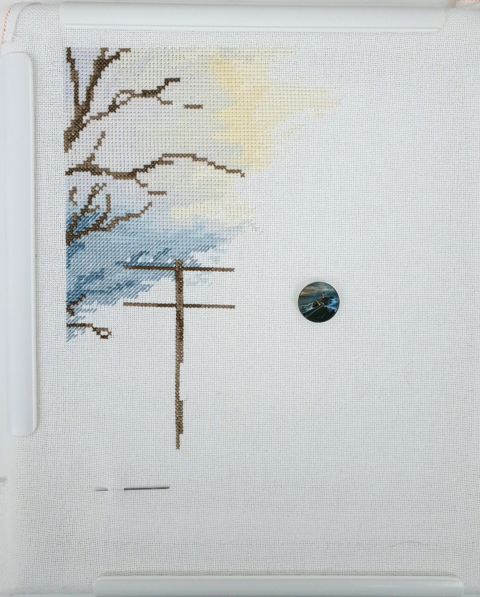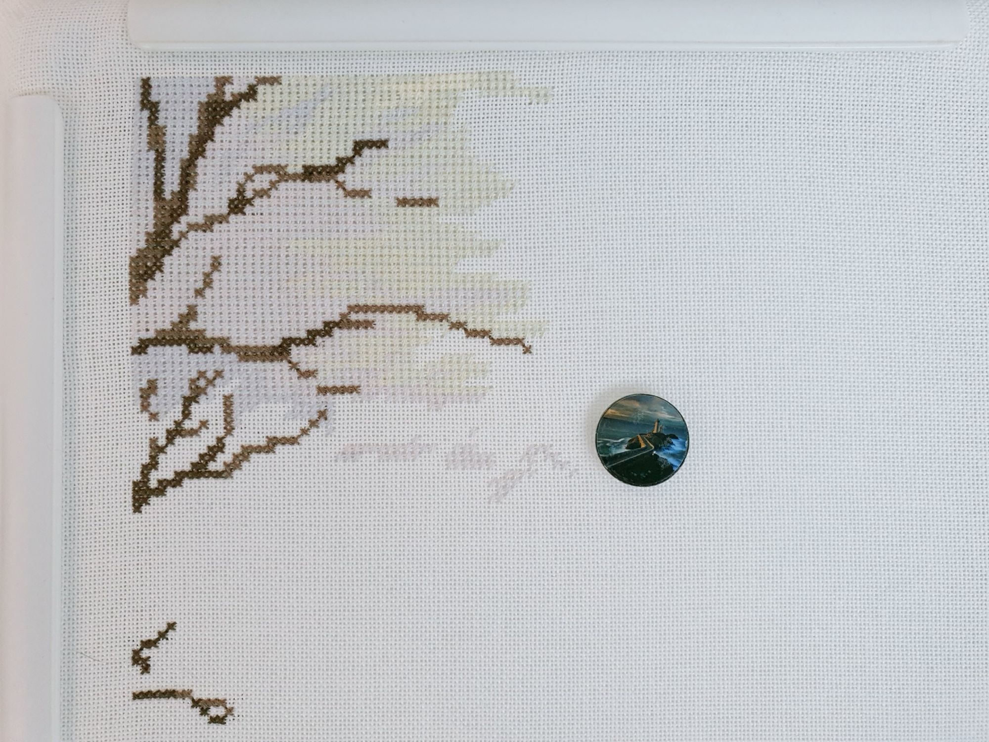 5 февраля 2020 То чувство, когда ненаписанный отчет не дает идти свободно дальше. И никакие технические работы вечером воскресенья не оправдание - они ж давно закончились! А потому здравствуйте! Отчет прошловоскресный Ольга Антропова, Домик-гномик - финиш! Потихоньку-полегоньку вышились все крестики, обрисовав очаровательную дверцу, будущих шедевральных "мух" и место под лампочку. И вот дело движется к бэку. Я смотрю в ключ, потом на картинку авторского отшива: бэк черный. Практически весь, за исключением нескольких травинок в нижней части. Мне не нравится. Смотрю еще десяток разных отшивов: везде черный. И если с черным контуром домика, двери и т.д. я может и готова смириться, то черный бэк на мухах и особенно на бутонах цветов приводит меня в ужас. Чем больше смотрю, тем больше отторжение. Решено: буду переделывать. Дверь, сам домик и крыша оказались простыми. Всего лишь самые-самые темные коричневый, синий и серый (в общем-то стандартные заменители черного в определенных ситуациях). Кое-где в 2 нити. Дальше мухи. Как ни боялась я к ним приступать (т.к. они мои любимцы в дизайне), а вышло все легко и просто. 3799(т.серый)+ниточка серебристого крейника. Учитывая, что сами мухи крейником и вышиты (по ключу), мягкий эффект свечения получен. А вот с бутонами цветов пришлось повозиться. Итоговый вариат (некий средне-синий) был седьмым или восьмым. Брала и темные, и светлые оттенки, с крейником (серебристым и голубоватым) и без.... Все, на этом варианте мое терпение закончилось, тем более, что он стал первым, который не вызвал полного отрицания. В итоге домик прелестен. А опыт по замене цветов бэка интересен и весьма полезен в перспективе. Н.Маштакова. Поезд - продолжение добавились суровые синие оттенки зимнего утреннего неба и столб. Небольшим сюрпризом стало то, что часть полукреста вышивается в 3 нити (я в 3 нити не очень люблю). Но оно оказалось вполне оправданно: появилась глубина и объем. По-прежнему очень нравится процесс. Он сам собой идет, я даже не замечаю, как прибавляется площадь вышитого. Надеюсь, на крестиках этот эффект не сойдет на ноль Было: и стало: Е.Чайковская, Чертополоховый дракон- продолжение Про этот процесс вы явно уже давно забыли. Это неудивительно, я его очень давно не показывала. Собственно только один показ и был, стартовый. Поэтому напоминаю, речь вот про что: . По рисунку Олеси Рагужиной (в прошлый раз я, кажется, ввела вас в заблуждение, приписав дракона Юлии Синициной, хотя сейчас искренне не понимаю, как могла это сделать, ведь стиль рисунка похож лишь ооочень отдаленно). Тогда, в стартовом показе было совсем немного и совсем непонятно что. Теперь вот, целая драконья морда Оттенки очень мягкие и красивые, но при этом сбалансированные. С мордой немного пришлось повозиться (из-за смены цветов), а вот остальное шьется вообще без напряга, приличными логическими кусками. Бэк пока оставляю на потом, хочу увидеть и ощутить картинку целиком, чтобы понять возможные замены или добавочки-украшения. РТО, Бруклинский мост- продолжение Хотела уже принести его в следующий раз целиком и готовый, но он настолько притягательный, столько вызывает мыслей, эмоций, что во-первых, мне не хочется дошивать его в спешке и для галочки, а во-вторых, очень хочется показать вам эту атмосферу, пока она вот такая, без бэка и финальных крестиков, с увеличенной порцией 