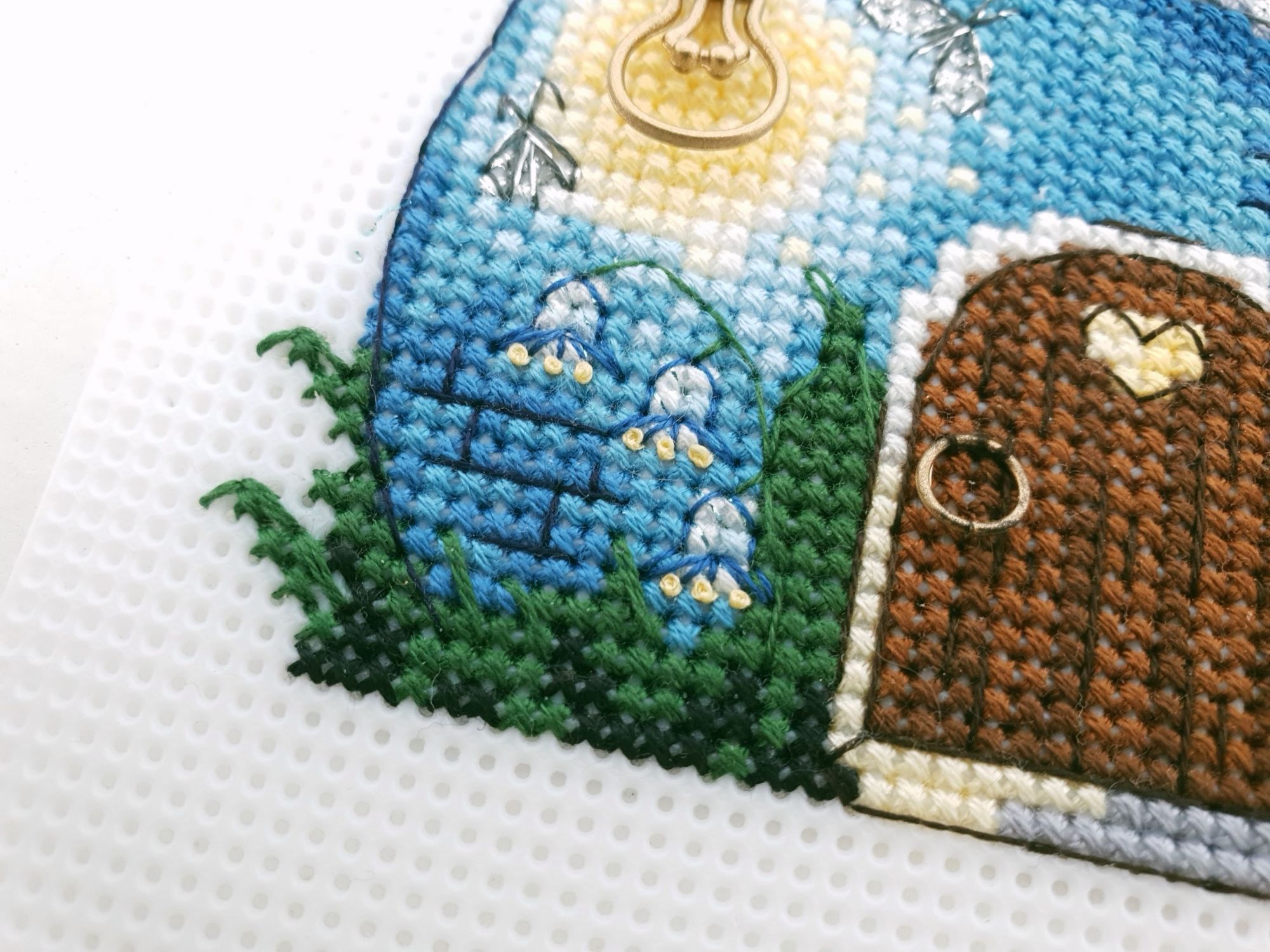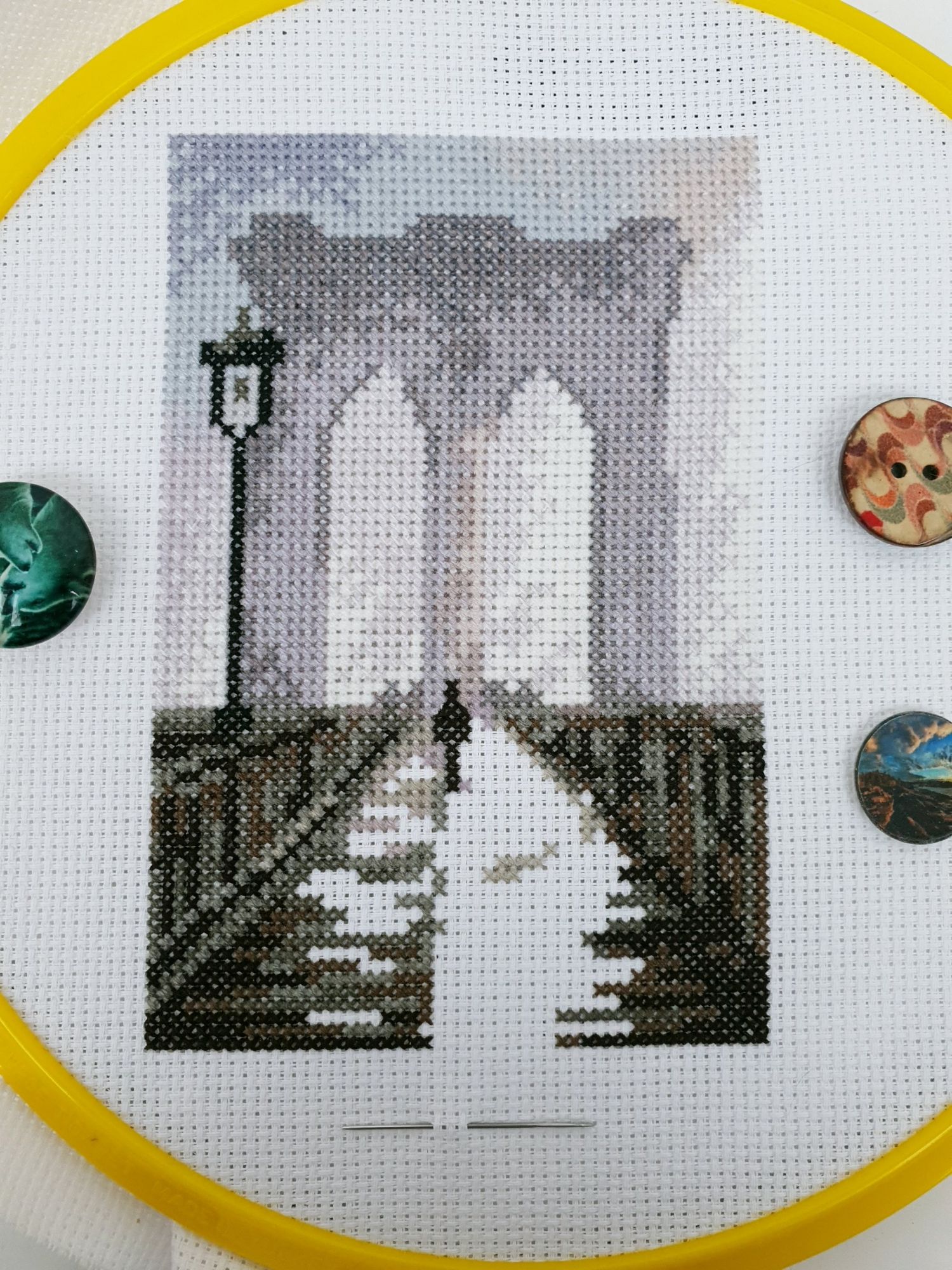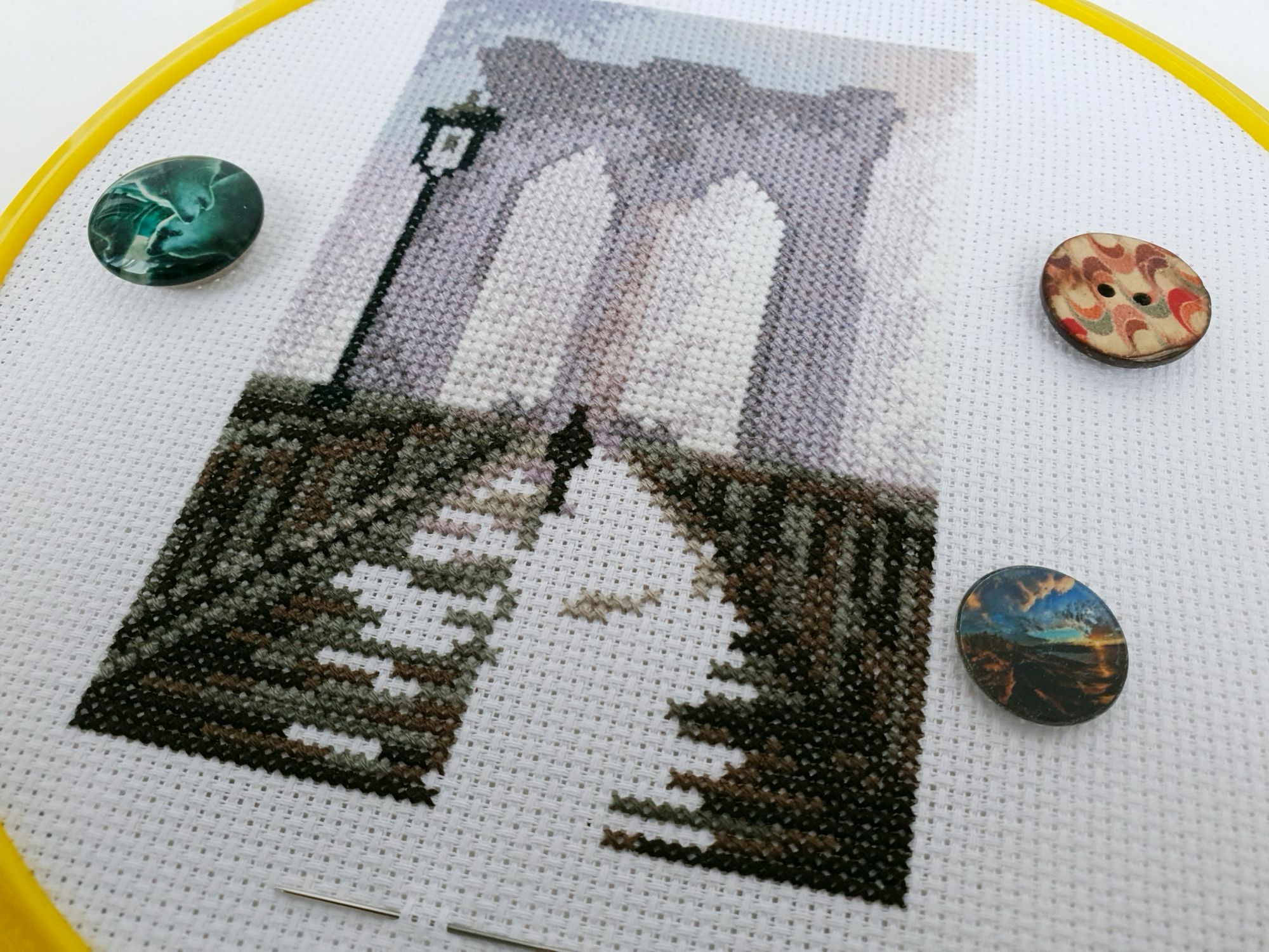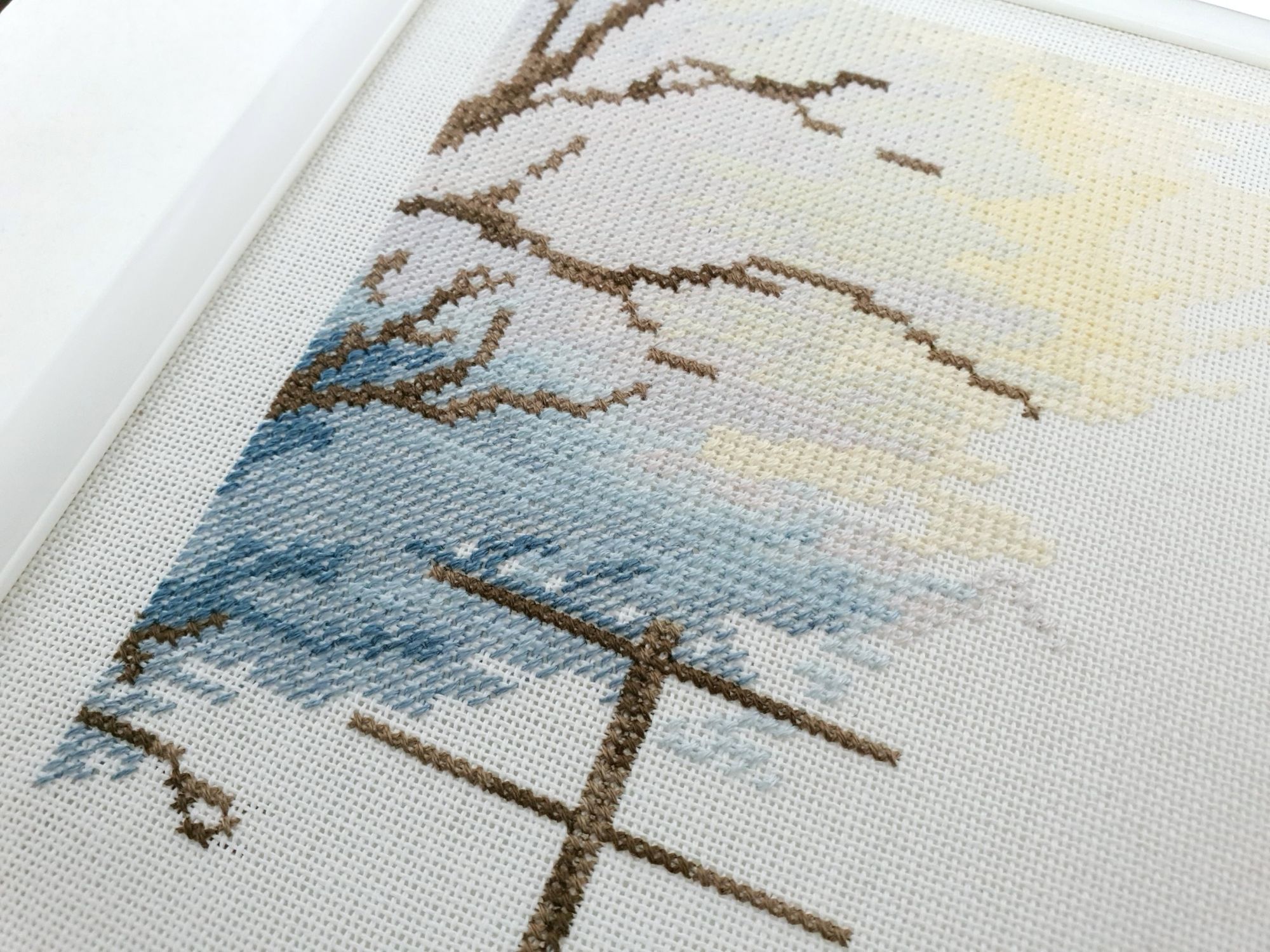5 февраля 2020 То чувство, когда ненаписанный отчет не дает идти свободно дальше. И никакие технические работы вечером воскресенья не оправдание - они ж давно закончились! А потому здравствуйте! Отчет прошловоскресный Ольга Антропова, Домик-гномик - финиш! Потихоньку-полегоньку вышились все крестики, обрисовав очаровательную дверцу, будущих шедевральных "мух" и место под лампочку. И вот дело движется к бэку. Я смотрю в ключ, потом на картинку авторского отшива: бэк черный. Практически весь, за исключением нескольких травинок в нижней части. Мне не нравится. Смотрю еще десяток разных отшивов: везде черный. И если с черным контуром домика, двери и т.д. я может и готова смириться, то черный бэк на мухах и особенно на бутонах цветов приводит меня в ужас. Чем больше смотрю, тем больше отторжение. Решено: буду переделывать. Дверь, сам домик и крыша оказались простыми. Всего лишь самые-самые темные коричневый, синий и серый (в общем-то стандартные заменители черного в определенных ситуациях). Кое-где в 2 нити. Дальше мухи. Как ни боялась я к ним приступать (т.к. они мои любимцы в дизайне), а вышло все легко и просто. 3799(т.серый)+ниточка серебристого крейника. Учитывая, что сами мухи крейником и вышиты (по ключу), мягкий эффект свечения получен. А вот с бутонами цветов пришлось повозиться. Итоговый вариат (некий средне-синий) был седьмым или восьмым. Брала и темные, и светлые оттенки, с крейником (серебристым и голубоватым) и без.... Все, на этом варианте мое терпение закончилось, тем более, что он стал первым, который не вызвал полного отрицания. В итоге домик прелестен. А опыт по замене цветов бэка интересен и весьма полезен в перспективе. Н.Маштакова. Поезд - продолжение добавились суровые синие оттенки зимнего утреннего неба и столб. Небольшим сюрпризом стало то, что часть полукреста вышивается в 3 нити (я в 3 нити не очень люблю). Но оно оказалось вполне оправданно: появилась глубина и объем. По-прежнему очень нравится процесс. Он сам собой идет, я даже не замечаю, как прибавляется площадь вышитого. Надеюсь, на крестиках этот эффект не сойдет на ноль Было: и стало: Е.Чайковская, Чертополоховый дракон- продолжение Про этот процесс вы явно уже давно забыли. Это неудивительно, я его очень давно не показывала. Собственно только один показ и был, стартовый. Поэтому напоминаю, речь вот про что: . По рисунку Олеси Рагужиной (в прошлый раз я, кажется, ввела вас в заблуждение, приписав дракона Юлии Синициной, хотя сейчас искренне не понимаю, как могла это сделать, ведь стиль рисунка похож лишь ооочень отдаленно). Тогда, в стартовом показе было совсем немного и совсем непонятно что. Теперь вот, целая драконья морда Оттенки очень мягкие и красивые, но при этом сбалансированные. С мордой немного пришлось повозиться (из-за смены цветов), а вот остальное шьется вообще без напряга, приличными логическими кусками. Бэк пока оставляю на потом, хочу увидеть и ощутить картинку целиком, чтобы понять возможные замены или добавочки-украшения. РТО, Бруклинский мост- продолжение Хотела уже принести его в следующий раз целиком и готовый, но он настолько притягательный, столько вызывает мыслей, эмоций, что во-первых, мне не хочется дошивать его в спешке и для галочки, а во-вторых, очень хочется показать вам эту атмосферу, пока она вот такая, без бэка и финальных крестиков, с увеличенной порцией 
