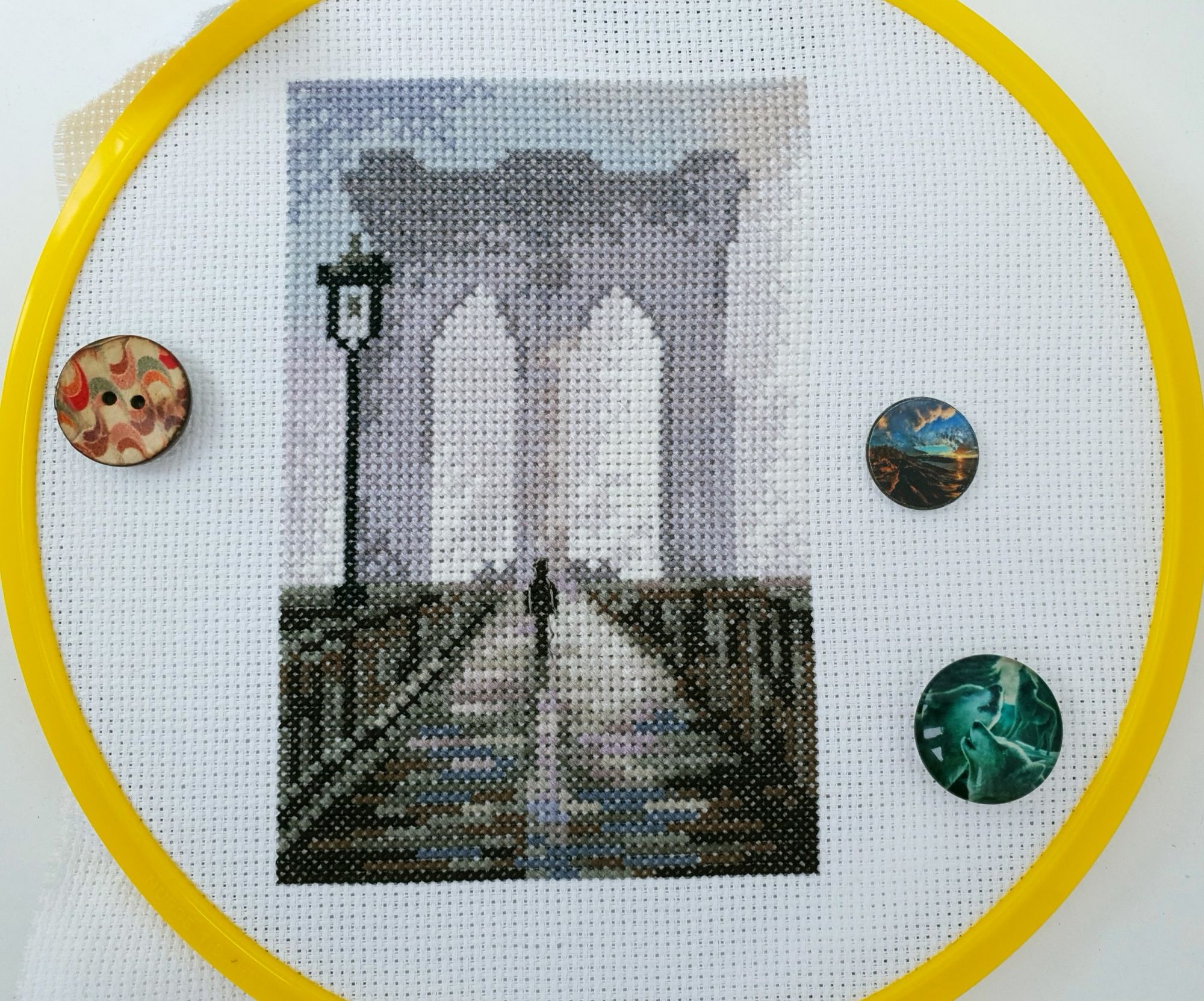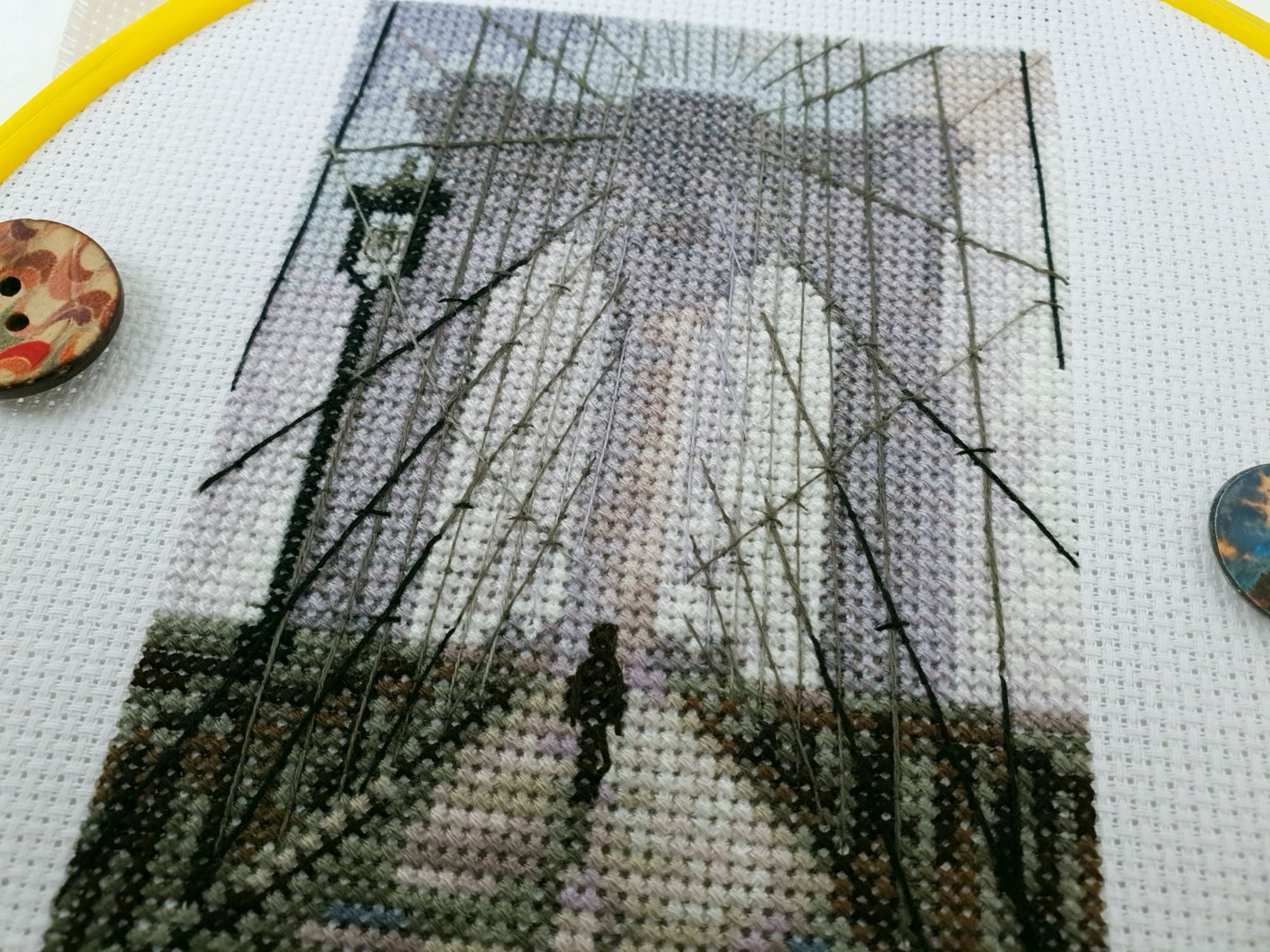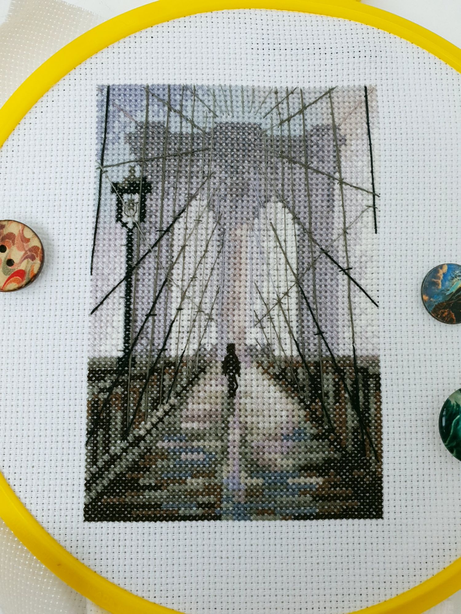 9 февраля 2020 Всем добрый вечер! Что-то я зачастила с отчетами)) Сегодня коротко: один финиш и один старт. Финиш: РТО, Бруклинский мост Крестики закончила быстро и ожидаемо. А дальше бэк. Точнее в моем случае выкладная нить. Нескольких цветов. С предварительным пересмотром кучи фотографий оригинала, чтобы понять, в каком порядке лучше эти многочисленные линии класть. Что вам сказать? Точного соответствия со схемой у меня не вышло, есть несколько весьма приличных косяков (переделывать сил не хватило), а остальное сделано "почти по схеме". Ну т.е. старалась соблюдать точки входа и выхода длинных линий и не давать излома на составных линиях, а дальше бисерная иголочка и плевать мне на дырки канвы. В целом, вышло, как мне кажется, вполне прилично. А еще на этом процессе у меня произошел какой-то "апгрейд", психологический переход на новый уровень отношения к бэку, я перестала бояться делать его по-мотивам и немного отходить от схемы. Раньше я просто спокойно к нему относилась, то теперь мы с ним "побратались" что ли Ну и про ассоциации. Изначально этот дизайн ассоциировался у меня именно с этой книгой. Нью-Йорк Эдварда Резерфорда. Сага, история города сквозь века, сплетенная с судьбами его жителей, один из эпизодов которой связан с Бруклинским мостом и бураном (разве что не туманом)... В общем, когда я сегодня собралась делать фотографию для Галереи и не обнаружила на полке книгу, то ощущение было примерно "И нафига я тогда его вышивала?!"... Благо, книга просто оказалась на другой полке Старт: Надежда Маштакова, На берегу реки (эта) Размер 103х93 крестика, 101я Линда в качестве основы, ДМС по ключу. Итак, про нее, схему, которая смогла отвлечь меня от ярких и манящих новинок Овна. Это она. Горы, река, осень, рюкзак, уютный свитер и молчаливое созерцание. Думаю, большего объяснять не нужно: вы меня уже достаточно изучили. Более того, я никогда не участвую в предзаказах по типу "кота в мешке", но тут с первых штрихов отрисовки бэка я знала, что это мне точно надо! Так что удалось еще и сэкономить существенно, что приятно. Старт случился почти сразу после получения схемы. Шью по саге. Кайф от самой схемы и от цветов просто зашкаливает. Кажется, у меня появляется новый любимый дизайнер На этом на сегодня все. Девушка манит, пойду вышью ей рюкзак что ли До новых встреч! И неиссякаемого вам вдохновения! Sayvi, Nata_Struchkowa, Каори и 40 других сказали спасибо Поделиться сообщением Ссылка на сообщение