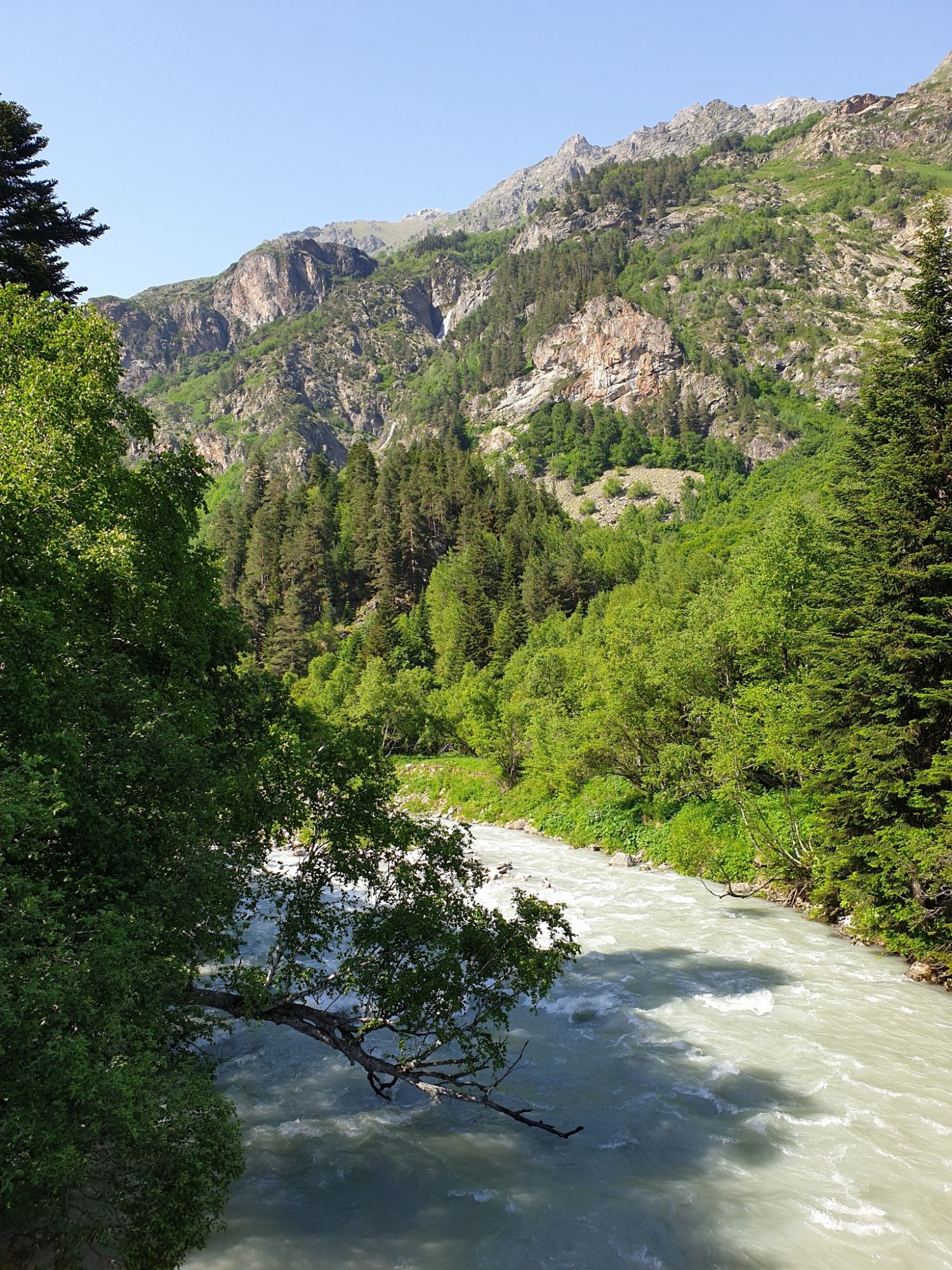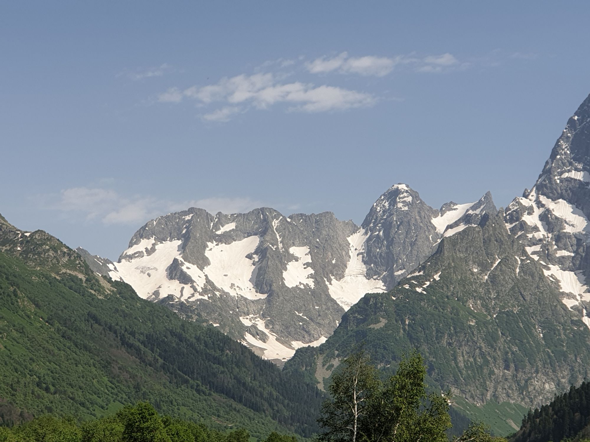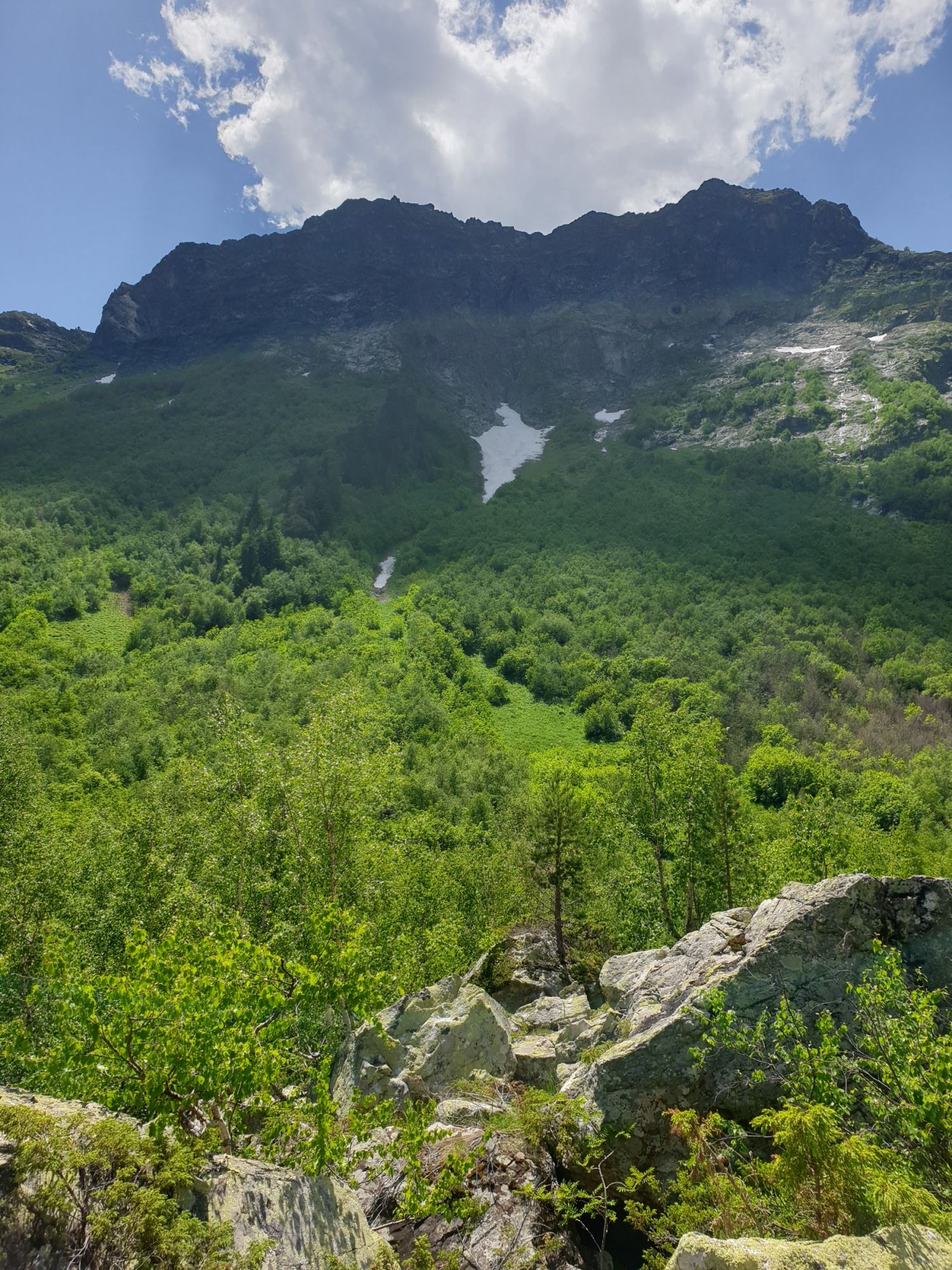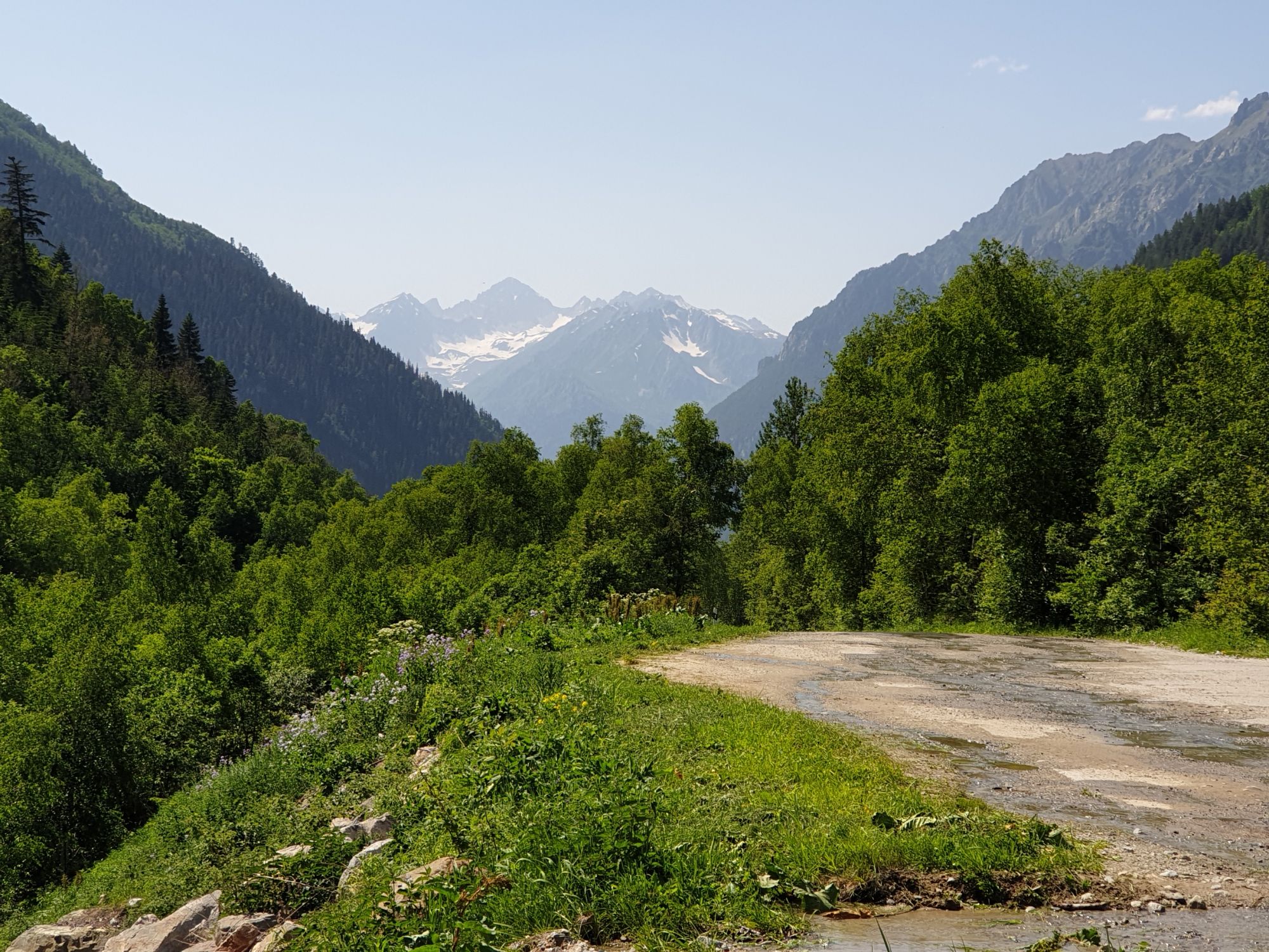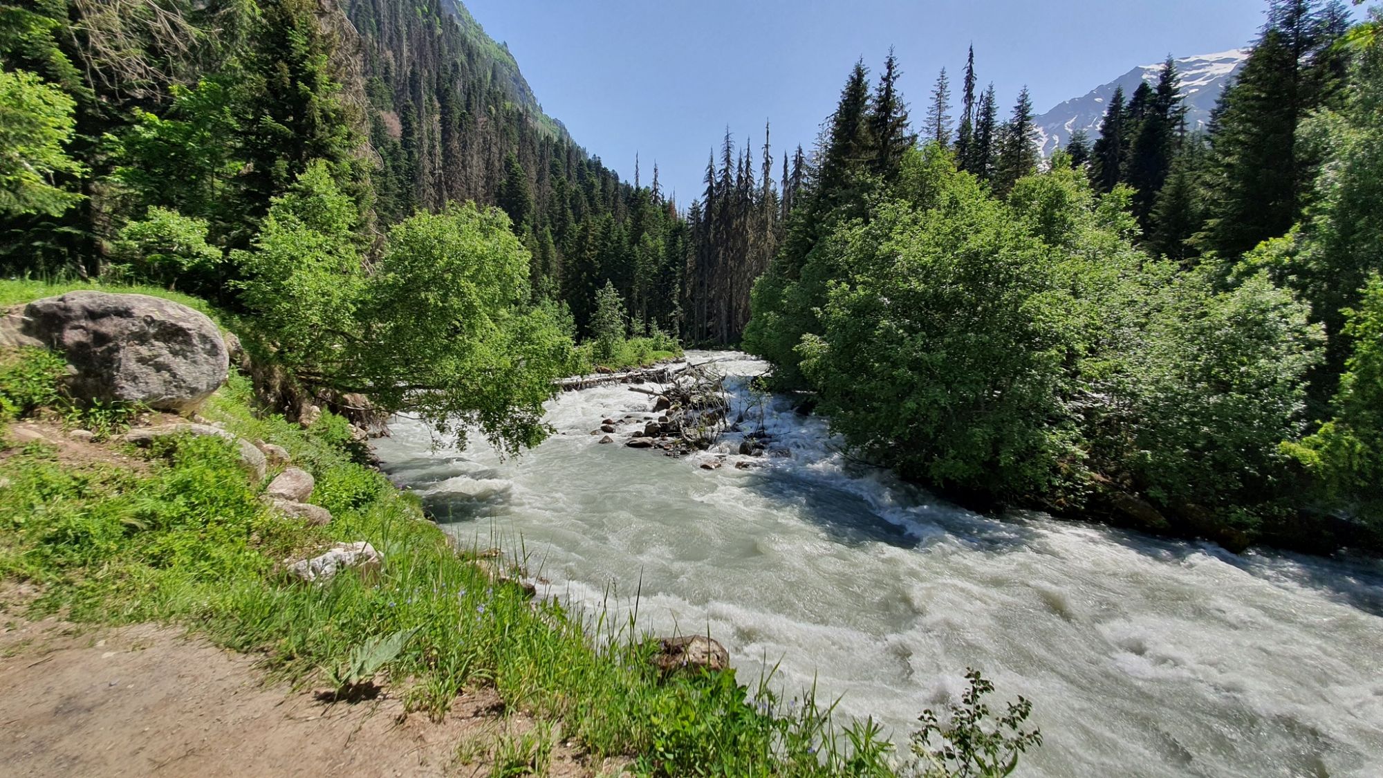 2 июля 2021 А я приступаю к завершающим рассказам о нашем отпуске. Во вторую неделю отпуска в Кисловодск тоже пришла жара и мы дружно решили сбежать в горы. А именно в Домбай. У меня было отмечено много точек и маршрутов, а уж чему из этого было суждено реализоваться, определять решили на месте. Оба раза в Домбай мы ездили через перевал Гум-баши (высшая точка 2075м нум), очень и очень живописная дорога со всеми прелестями больших перепадов высоты в виде серпантинов, спусков, подъемов и красивых видов, включая вид на Эльбрус при хорошей погоде, а также еще двумя особенностями. 1.Весьма и весьма дырявый асфальт на большей части пути от Учкекена до Карачаевска. и 2) Му-пробки и беее-пробки, как мы их про себя прозвали: тут постоянно гоняют скот. И если небольшой затор из коров обходится нормально, то вот в последний раз мы попали на перегон отары овец. Огромной такой отары, которая шла вдоль дороги плотным потоком в попутном направлении. О, мой водитель этой пробки долго не забудет Жаль только я, балда, это дело не сфотографировала Гум-баши, серия первая. С видами на невероятные зеленые склоны и шапки Эльбруса) Гум-баши, серия вторая. В тот же день вечером. Под кодовым названием "конец света". На высоте выше 1700 м примерно все было укутано плотным облаком. Видимость минимальная. Осторожно добрались до широкой смотровой, отъехали подальше, не выключая всех возможных огней, и вдоволь нарезвились в тумане. Кстати вот там, за нашими спинами, обрыва нет. Хотя это можно понять только подойдя вплотную и посмотрев вниз. Мои очень сильно надо мной смеялись, когда я задержавшись у машины, начала им кричать в испуге, чтоб отошли от обрыва Гум-баши, серия третья. Снова солнечное утро и немного видов на серпантин и горный аул Верхняя Мара Гум-баши, серия четвертая. Видимость нормальная, но облако очень живописное и изменчивое. И оочень холодное! Брр...))) А потом мы выехали на дорогу, ведущую в Теберду и Домбай и попали в другой мир. Заснеженные вершины гор вдалеке, р.Теберда то справа, то слева, а по бокам лес, реки, невероятные карачаевские лошади... Она особенная, эта дорога. Но до поселка Домбай мы так и не доехали. Ни в первый раз, ни во второй. История с Терсколом повторилась))) В Джилы-су мои мальчики сгорели, под открытое солнце им было нежелательно. А у меня в запасе был один атомобильный маршрут. Я такое не очень, больше люблю пешие треки, но идти по асфальтовой дороге не самое приятное, а побывать мне там хотелось. Поэтому именно он был выбран первым в сегодняшнем дне. Туристический маршрут по Гоначхирскому ущелью до озера Туманлы-кель. Это продолжение Военно-сухумской дороги. На повороте с шоссе КПП, по дороге за озером пограничники, за перевалом Абхазия. А вот 12 км между КПП и озером открыты для посещения с 9.00 до 17.00. И вот мы въезжаем под шлагбаум заповедника!... Это невероятный мир. Очень красивый и совершенно другой. Река шумит на дне ущелья, то тут, то там видны следы сходивших в разные годы лавин и камнепадов, невероятный воздух, которым хочется надышаться впрок. На какой склон ни посмотри, обязательно увидишь большой или маленький водопадик: в приходом тепла в последние дни снег в горах стал особенно активно таять.... В одном месте увидели остатки старого моста. А дальше по дороге нашли и место, где можно было немного прогуляться. Лес, горы, елки... нет, постой, говорит мне 