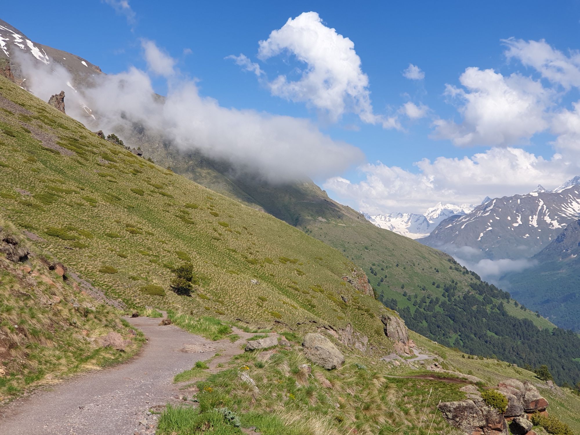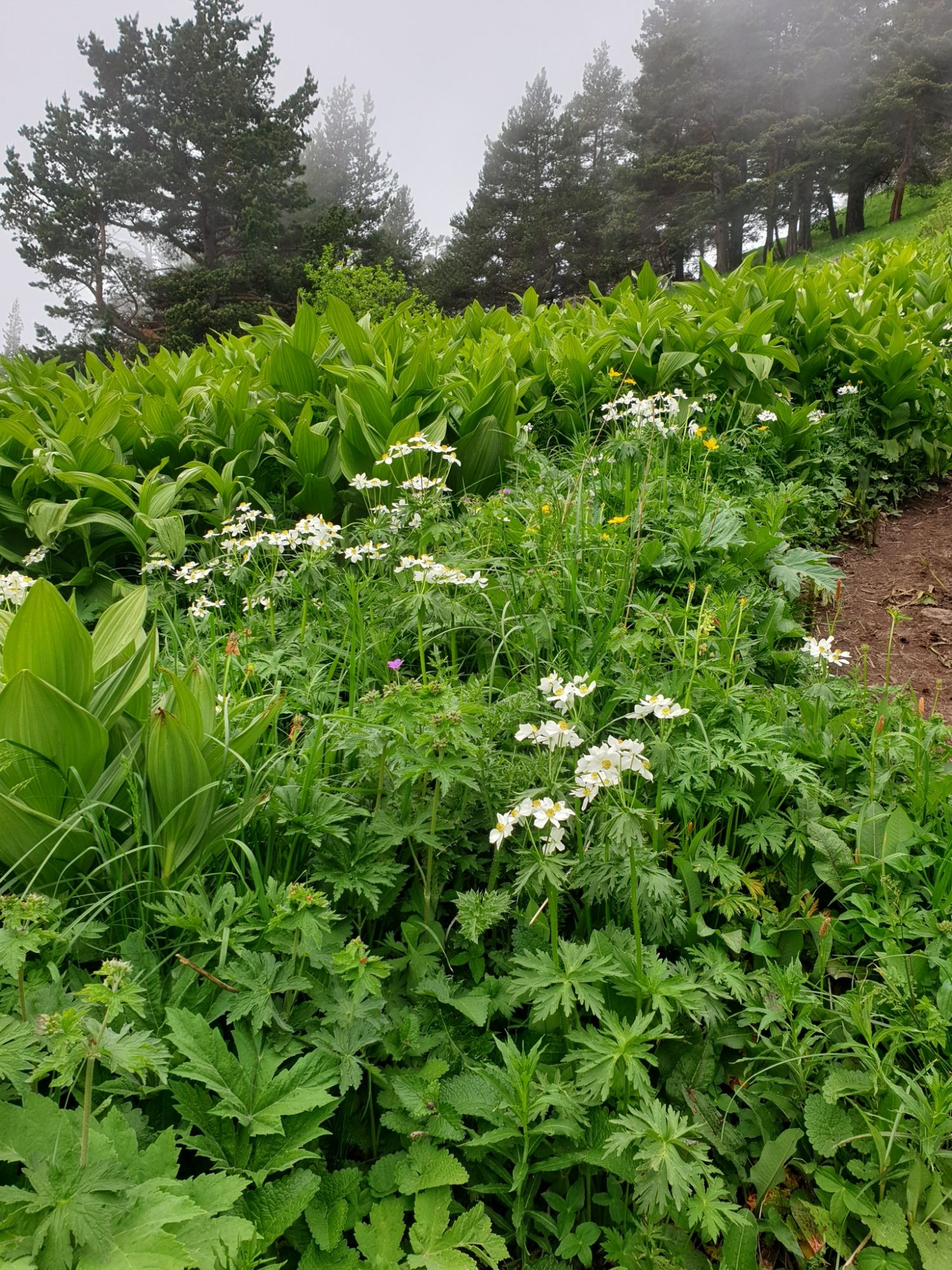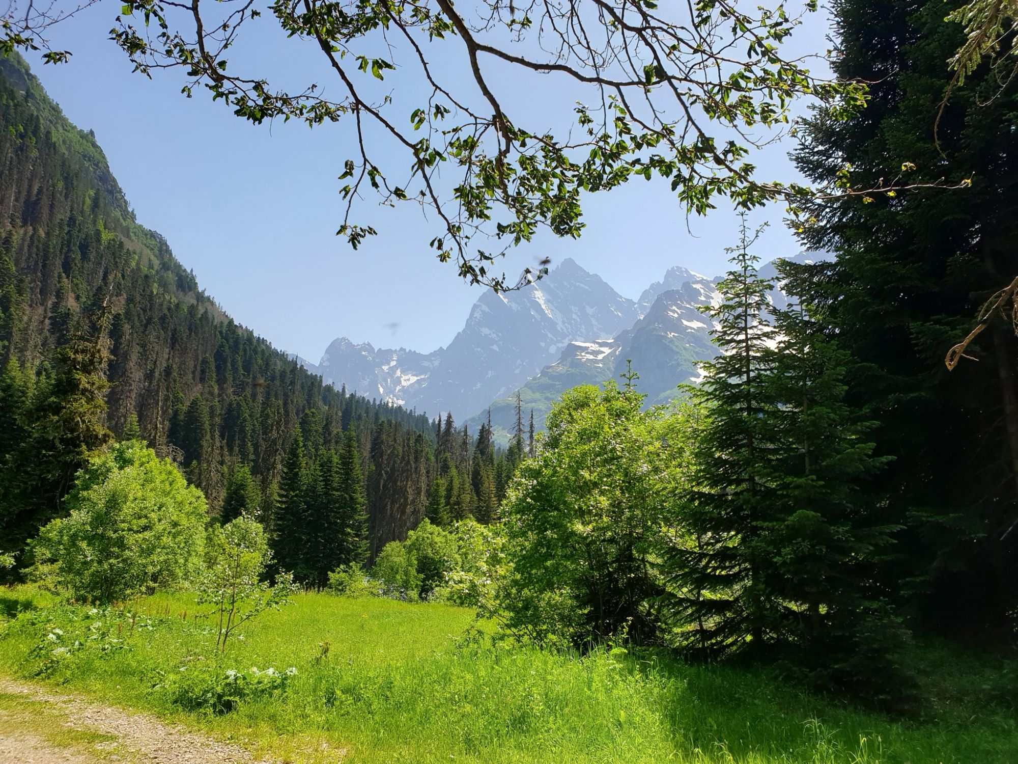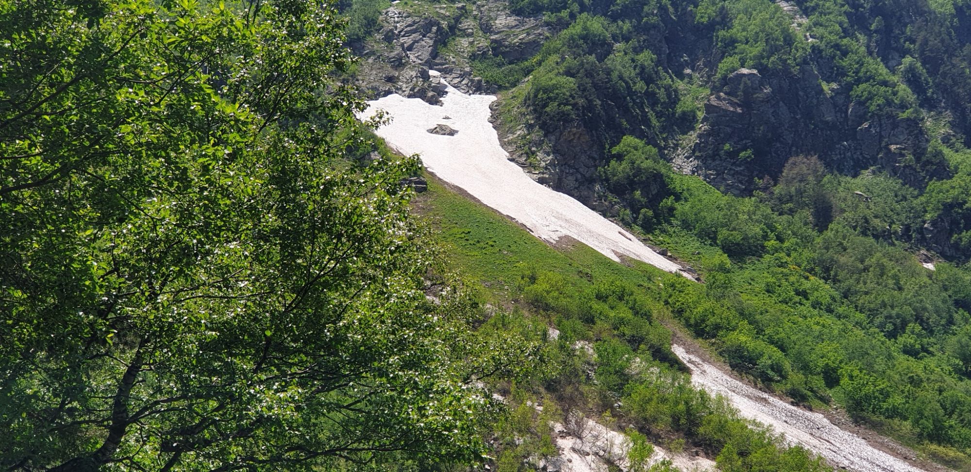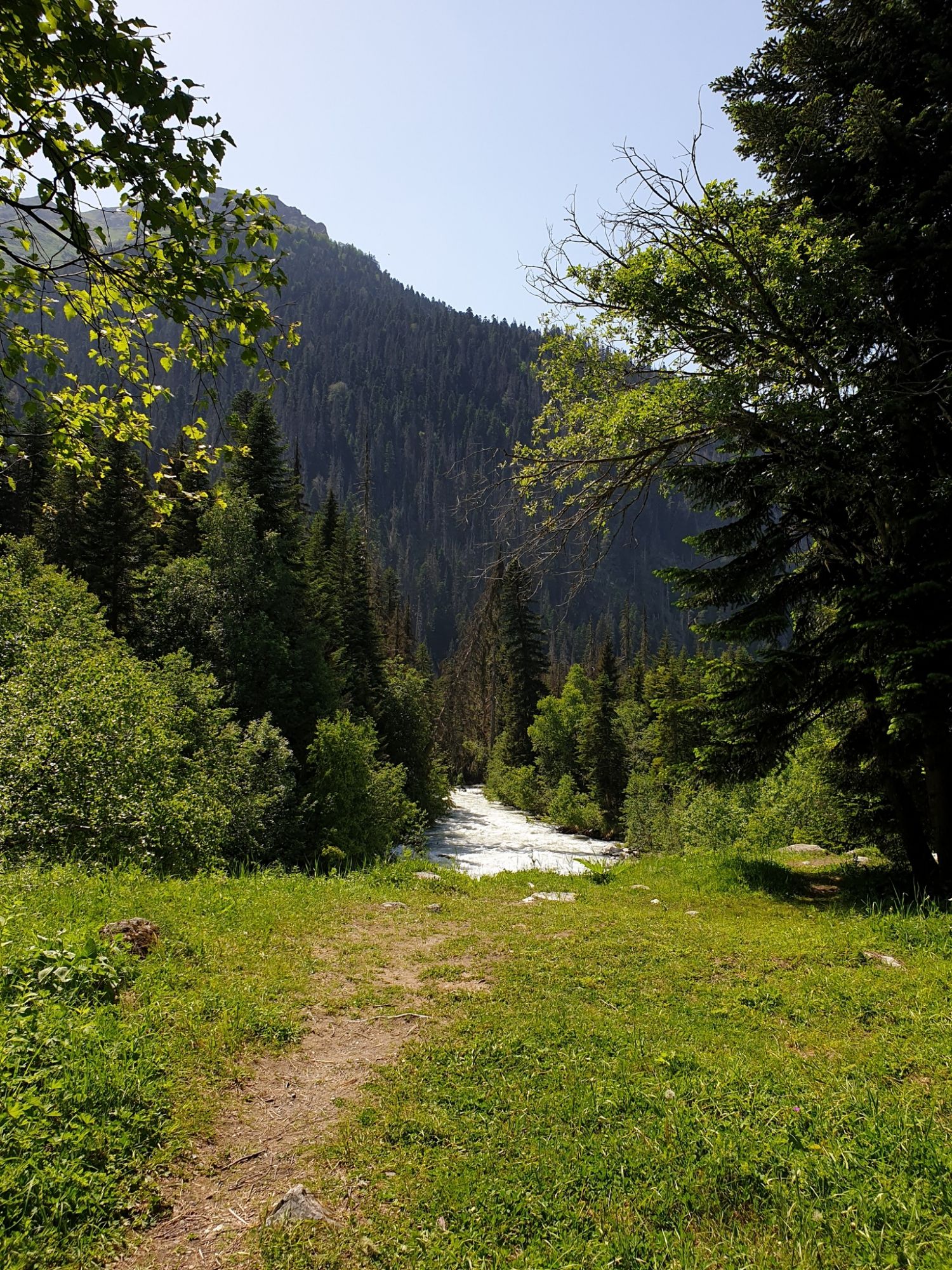 2 июля 2021 А я приступаю к завершающим рассказам о нашем отпуске. Во вторую неделю отпуска в Кисловодск тоже пришла жара и мы дружно решили сбежать в горы. А именно в Домбай. У меня было отмечено много точек и маршрутов, а уж чему из этого было суждено реализоваться, определять решили на месте. Оба раза в Домбай мы ездили через перевал Гум-баши (высшая точка 2075м нум), очень и очень живописная дорога со всеми прелестями больших перепадов высоты в виде серпантинов, спусков, подъемов и красивых видов, включая вид на Эльбрус при хорошей погоде, а также еще двумя особенностями. 1.Весьма и весьма дырявый асфальт на большей части пути от Учкекена до Карачаевска. и 2) Му-пробки и беее-пробки, как мы их про себя прозвали: тут постоянно гоняют скот. И если небольшой затор из коров обходится нормально, то вот в последний раз мы попали на перегон отары овец. Огромной такой отары, которая шла вдоль дороги плотным потоком в попутном направлении. О, мой водитель этой пробки долго не забудет Жаль только я, балда, это дело не сфотографировала Гум-баши, серия первая. С видами на невероятные зеленые склоны и шапки Эльбруса) Гум-баши, серия вторая. В тот же день вечером. Под кодовым названием "конец света". На высоте выше 1700 м примерно все было укутано плотным облаком. Видимость минимальная. Осторожно добрались до широкой смотровой, отъехали подальше, не выключая всех возможных огней, и вдоволь нарезвились в тумане. Кстати вот там, за нашими спинами, обрыва нет. Хотя это можно понять только подойдя вплотную и посмотрев вниз. Мои очень сильно надо мной смеялись, когда я задержавшись у машины, начала им кричать в испуге, чтоб отошли от обрыва Гум-баши, серия третья. Снова солнечное утро и немного видов на серпантин и горный аул Верхняя Мара Гум-баши, серия четвертая. Видимость нормальная, но облако очень живописное и изменчивое. И оочень холодное! Брр...))) А потом мы выехали на дорогу, ведущую в Теберду и Домбай и попали в другой мир. Заснеженные вершины гор вдалеке, р.Теберда то справа, то слева, а по бокам лес, реки, невероятные карачаевские лошади... Она особенная, эта дорога. Но до поселка Домбай мы так и не доехали. Ни в первый раз, ни во второй. История с Терсколом повторилась))) В Джилы-су мои мальчики сгорели, под открытое солнце им было нежелательно. А у меня в запасе был один атомобильный маршрут. Я такое не очень, больше люблю пешие треки, но идти по асфальтовой дороге не самое приятное, а побывать мне там хотелось. Поэтому именно он был выбран первым в сегодняшнем дне. Туристический маршрут по Гоначхирскому ущелью до озера Туманлы-кель. Это продолжение Военно-сухумской дороги. На повороте с шоссе КПП, по дороге за озером пограничники, за перевалом Абхазия. А вот 12 км между КПП и озером открыты для посещения с 9.00 до 17.00. И вот мы въезжаем под шлагбаум заповедника!... Это невероятный мир. Очень красивый и совершенно другой. Река шумит на дне ущелья, то тут, то там видны следы сходивших в разные годы лавин и камнепадов, невероятный воздух, которым хочется надышаться впрок. На какой склон ни посмотри, обязательно увидишь большой или маленький водопадик: в приходом тепла в последние дни снег в горах стал особенно активно таять.... В одном месте увидели остатки старого моста. А дальше по дороге нашли и место, где можно было немного прогуляться. Лес, горы, елки... нет, постой, говорит мне 