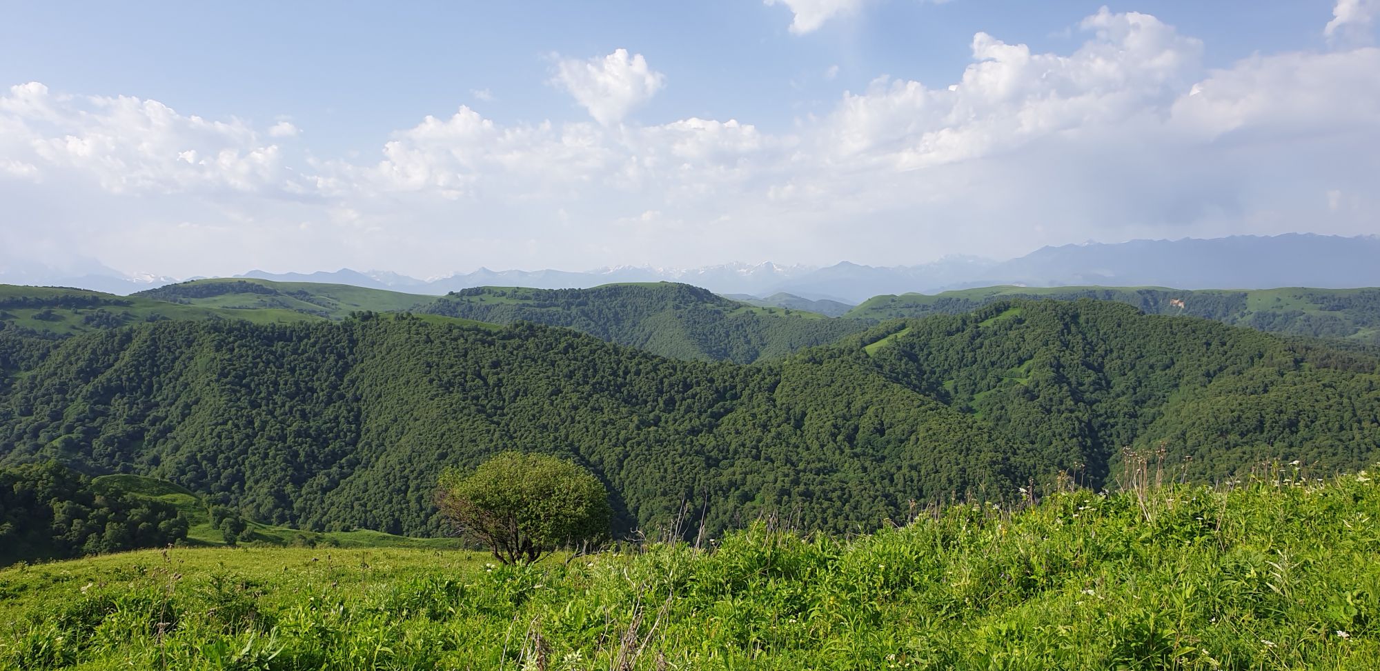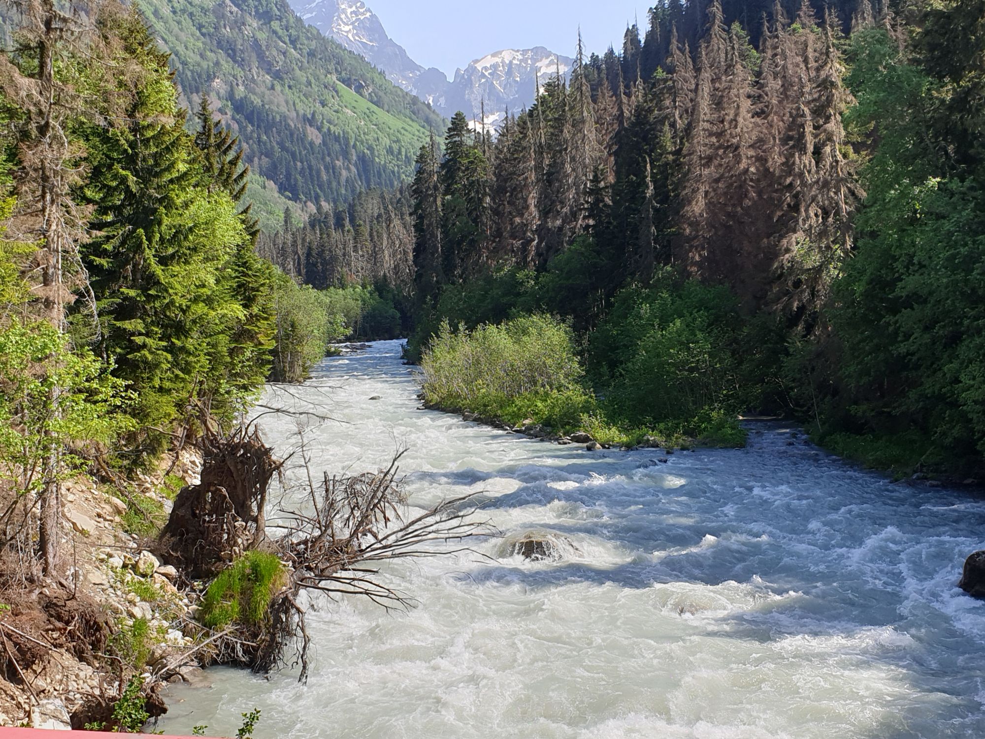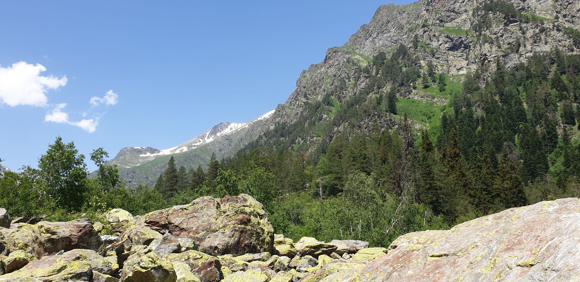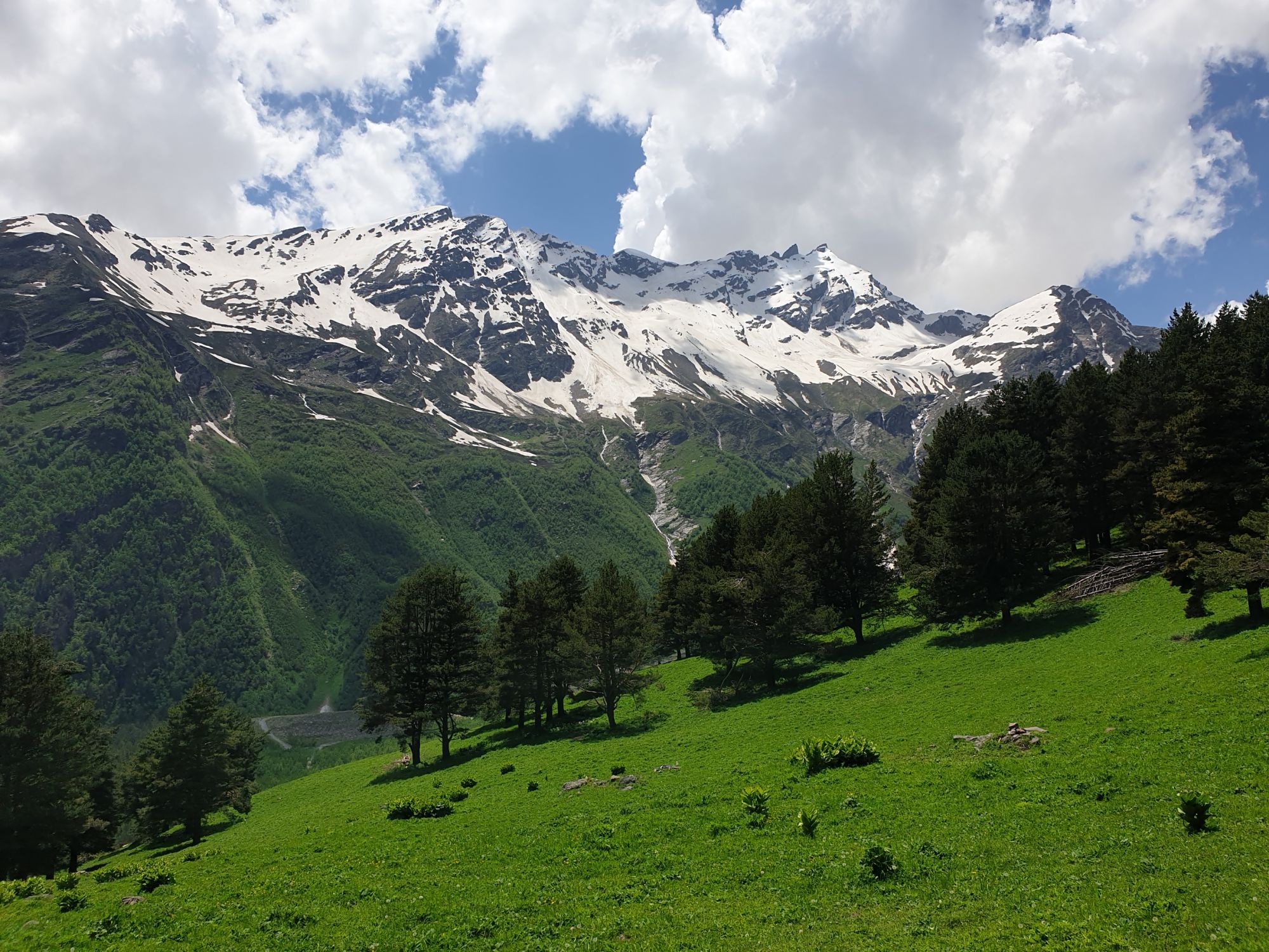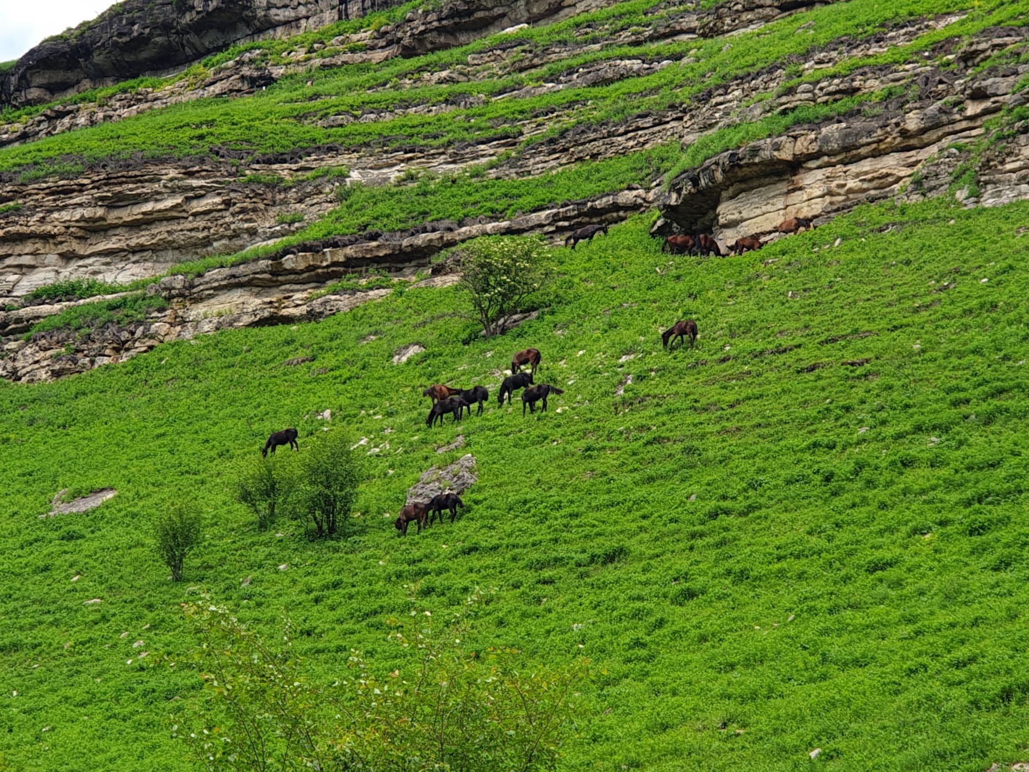2 июля 2021 А я приступаю к завершающим рассказам о нашем отпуске. Во вторую неделю отпуска в Кисловодск тоже пришла жара и мы дружно решили сбежать в горы. А именно в Домбай. У меня было отмечено много точек и маршрутов, а уж чему из этого было суждено реализоваться, определять решили на месте. Оба раза в Домбай мы ездили через перевал Гум-баши (высшая точка 2075м нум), очень и очень живописная дорога со всеми прелестями больших перепадов высоты в виде серпантинов, спусков, подъемов и красивых видов, включая вид на Эльбрус при хорошей погоде, а также еще двумя особенностями. 1.Весьма и весьма дырявый асфальт на большей части пути от Учкекена до Карачаевска. и 2) Му-пробки и беее-пробки, как мы их про себя прозвали: тут постоянно гоняют скот. И если небольшой затор из коров обходится нормально, то вот в последний раз мы попали на перегон отары овец. Огромной такой отары, которая шла вдоль дороги плотным потоком в попутном направлении. О, мой водитель этой пробки долго не забудет Жаль только я, балда, это дело не сфотографировала Гум-баши, серия первая. С видами на невероятные зеленые склоны и шапки Эльбруса) Гум-баши, серия вторая. В тот же день вечером. Под кодовым названием "конец света". На высоте выше 1700 м примерно все было укутано плотным облаком. Видимость минимальная. Осторожно добрались до широкой смотровой, отъехали подальше, не выключая всех возможных огней, и вдоволь нарезвились в тумане. Кстати вот там, за нашими спинами, обрыва нет. Хотя это можно понять только подойдя вплотную и посмотрев вниз. Мои очень сильно надо мной смеялись, когда я задержавшись у машины, начала им кричать в испуге, чтоб отошли от обрыва Гум-баши, серия третья. Снова солнечное утро и немного видов на серпантин и горный аул Верхняя Мара Гум-баши, серия четвертая. Видимость нормальная, но облако очень живописное и изменчивое. И оочень холодное! Брр...))) А потом мы выехали на дорогу, ведущую в Теберду и Домбай и попали в другой мир. Заснеженные вершины гор вдалеке, р.Теберда то справа, то слева, а по бокам лес, реки, невероятные карачаевские лошади... Она особенная, эта дорога. Но до поселка Домбай мы так и не доехали. Ни в первый раз, ни во второй. История с Терсколом повторилась))) В Джилы-су мои мальчики сгорели, под открытое солнце им было нежелательно. А у меня в запасе был один атомобильный маршрут. Я такое не очень, больше люблю пешие треки, но идти по асфальтовой дороге не самое приятное, а побывать мне там хотелось. Поэтому именно он был выбран первым в сегодняшнем дне. Туристический маршрут по Гоначхирскому ущелью до озера Туманлы-кель. Это продолжение Военно-сухумской дороги. На повороте с шоссе КПП, по дороге за озером пограничники, за перевалом Абхазия. А вот 12 км между КПП и озером открыты для посещения с 9.00 до 17.00. И вот мы въезжаем под шлагбаум заповедника!... Это невероятный мир. Очень красивый и совершенно другой. Река шумит на дне ущелья, то тут, то там видны следы сходивших в разные годы лавин и камнепадов, невероятный воздух, которым хочется надышаться впрок. На какой склон ни посмотри, обязательно увидишь большой или маленький водопадик: в приходом тепла в последние дни снег в горах стал особенно активно таять.... В одном месте увидели остатки старого моста. А дальше по дороге нашли и место, где можно было немного прогуляться. Лес, горы, елки... нет, постой, говорит мне 