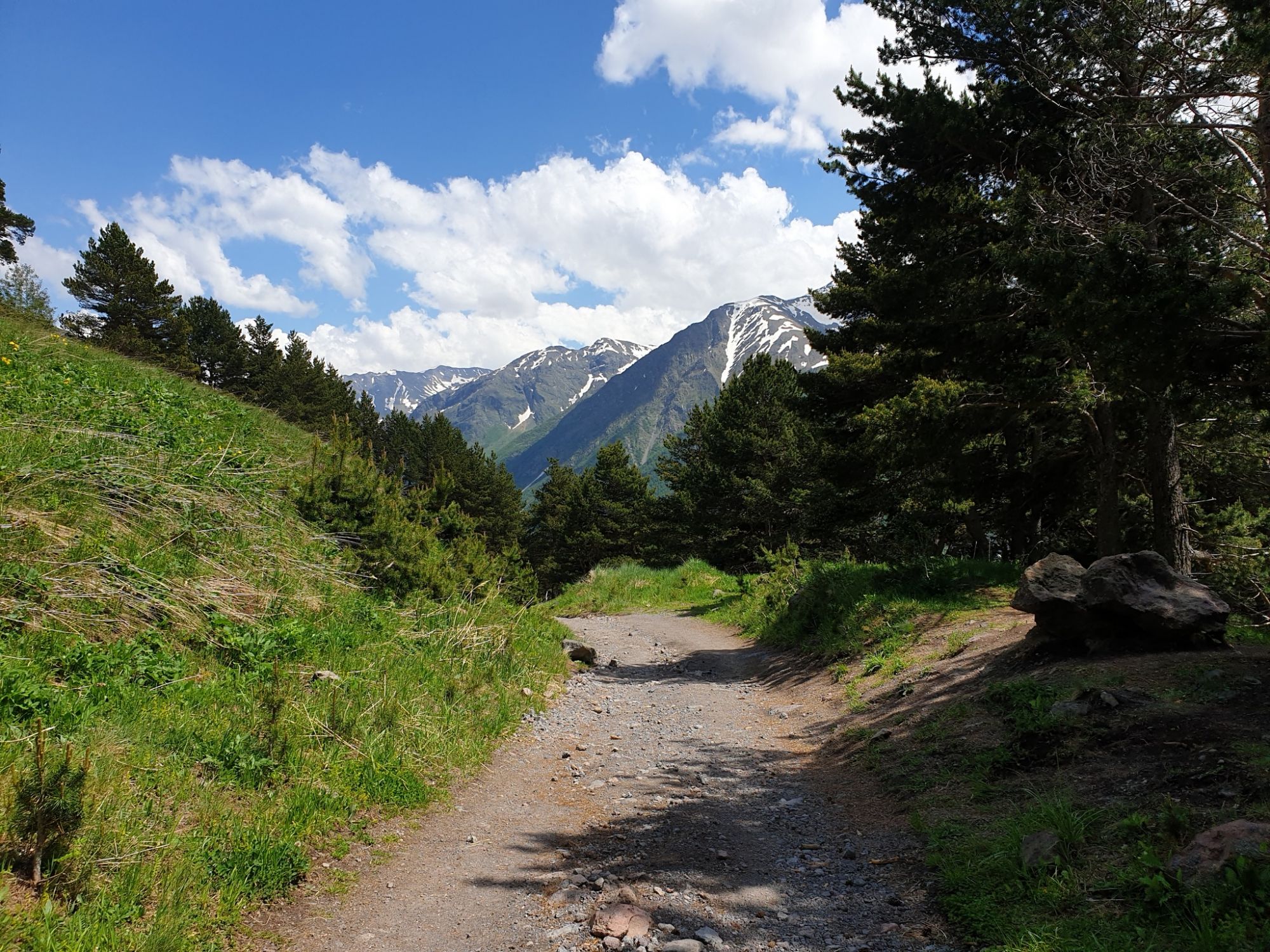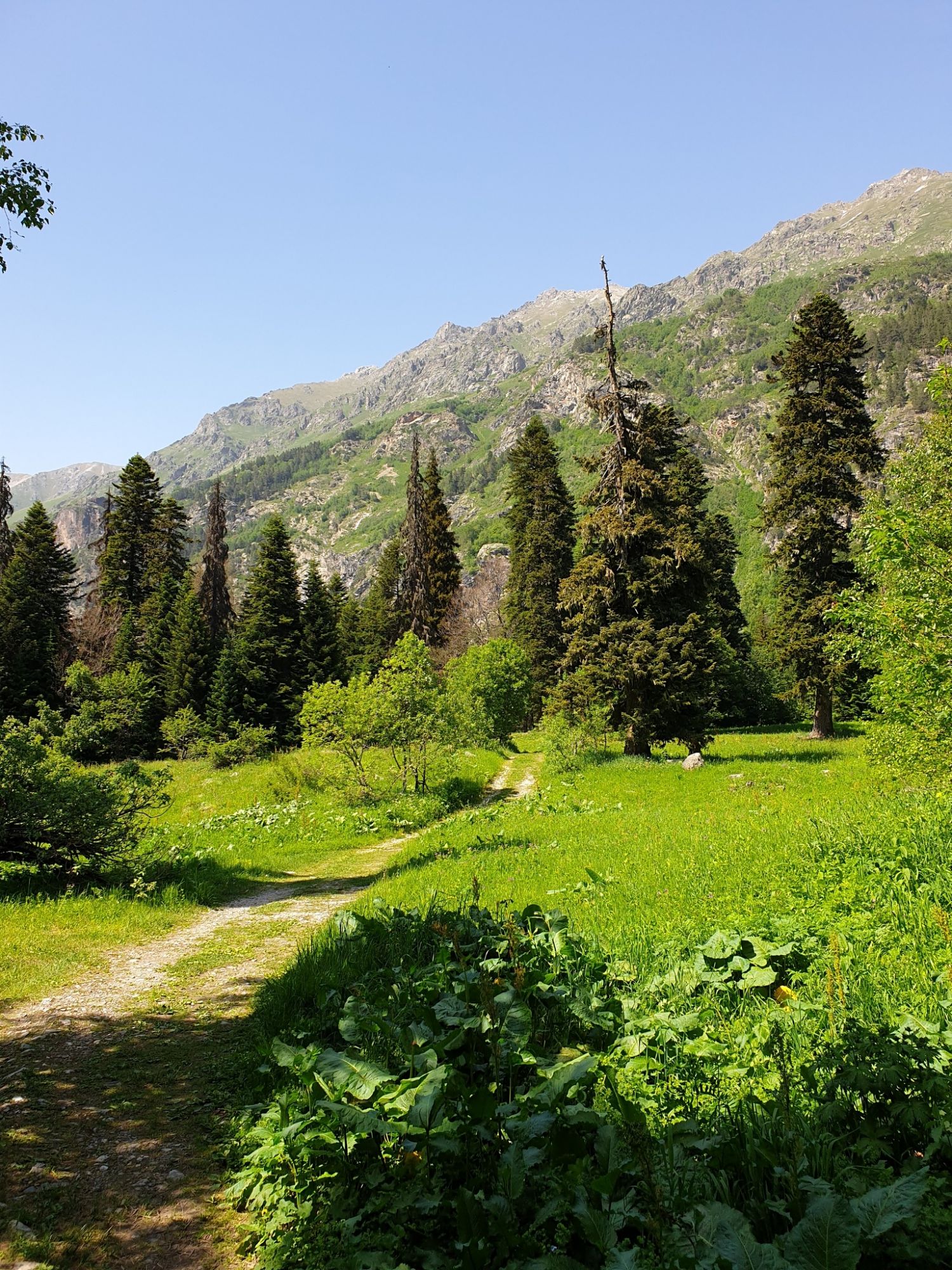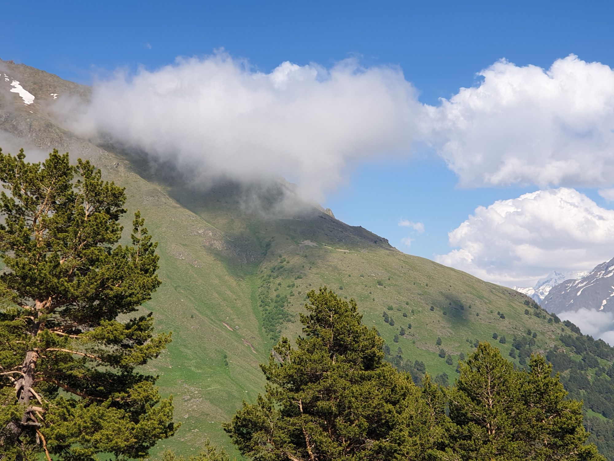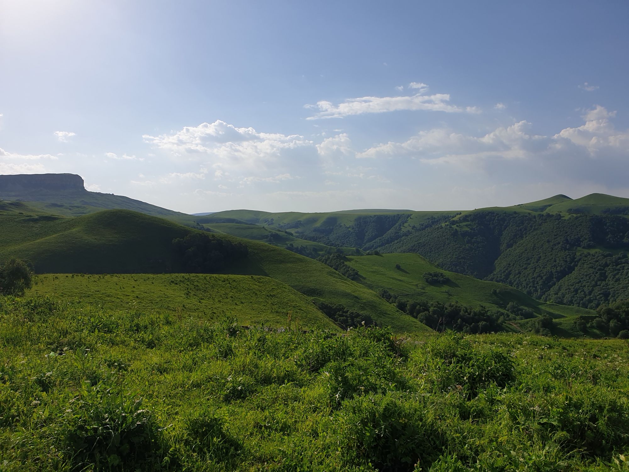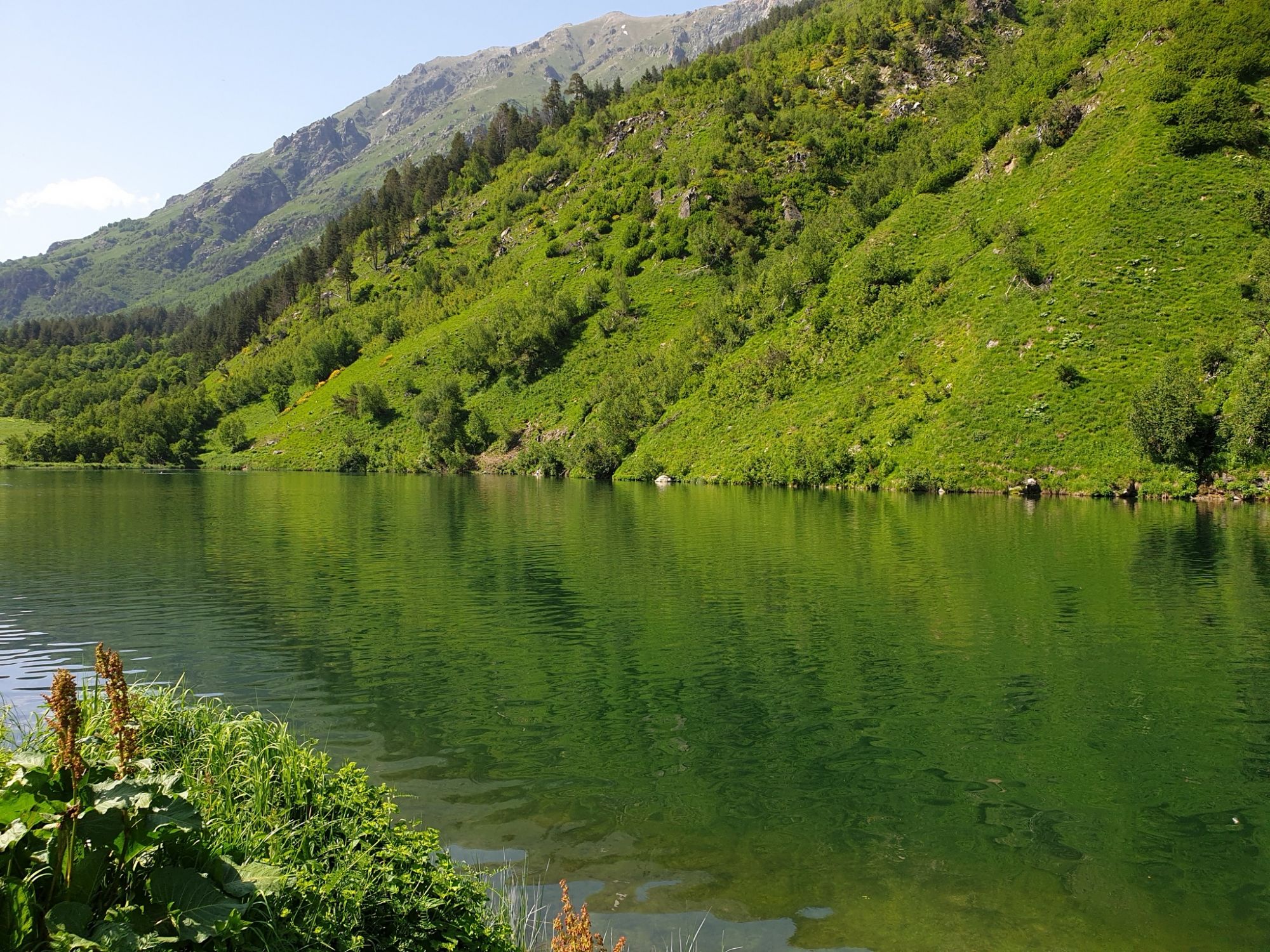 2 июля 2021 А я приступаю к завершающим рассказам о нашем отпуске. Во вторую неделю отпуска в Кисловодск тоже пришла жара и мы дружно решили сбежать в горы. А именно в Домбай. У меня было отмечено много точек и маршрутов, а уж чему из этого было суждено реализоваться, определять решили на месте. Оба раза в Домбай мы ездили через перевал Гум-баши (высшая точка 2075м нум), очень и очень живописная дорога со всеми прелестями больших перепадов высоты в виде серпантинов, спусков, подъемов и красивых видов, включая вид на Эльбрус при хорошей погоде, а также еще двумя особенностями. 1.Весьма и весьма дырявый асфальт на большей части пути от Учкекена до Карачаевска. и 2) Му-пробки и беее-пробки, как мы их про себя прозвали: тут постоянно гоняют скот. И если небольшой затор из коров обходится нормально, то вот в последний раз мы попали на перегон отары овец. Огромной такой отары, которая шла вдоль дороги плотным потоком в попутном направлении. О, мой водитель этой пробки долго не забудет Жаль только я, балда, это дело не сфотографировала Гум-баши, серия первая. С видами на невероятные зеленые склоны и шапки Эльбруса) Гум-баши, серия вторая. В тот же день вечером. Под кодовым названием "конец света". На высоте выше 1700 м примерно все было укутано плотным облаком. Видимость минимальная. Осторожно добрались до широкой смотровой, отъехали подальше, не выключая всех возможных огней, и вдоволь нарезвились в тумане. Кстати вот там, за нашими спинами, обрыва нет. Хотя это можно понять только подойдя вплотную и посмотрев вниз. Мои очень сильно надо мной смеялись, когда я задержавшись у машины, начала им кричать в испуге, чтоб отошли от обрыва Гум-баши, серия третья. Снова солнечное утро и немного видов на серпантин и горный аул Верхняя Мара Гум-баши, серия четвертая. Видимость нормальная, но облако очень живописное и изменчивое. И оочень холодное! Брр...))) А потом мы выехали на дорогу, ведущую в Теберду и Домбай и попали в другой мир. Заснеженные вершины гор вдалеке, р.Теберда то справа, то слева, а по бокам лес, реки, невероятные карачаевские лошади... Она особенная, эта дорога. Но до поселка Домбай мы так и не доехали. Ни в первый раз, ни во второй. История с Терсколом повторилась))) В Джилы-су мои мальчики сгорели, под открытое солнце им было нежелательно. А у меня в запасе был один атомобильный маршрут. Я такое не очень, больше люблю пешие треки, но идти по асфальтовой дороге не самое приятное, а побывать мне там хотелось. Поэтому именно он был выбран первым в сегодняшнем дне. Туристический маршрут по Гоначхирскому ущелью до озера Туманлы-кель. Это продолжение Военно-сухумской дороги. На повороте с шоссе КПП, по дороге за озером пограничники, за перевалом Абхазия. А вот 12 км между КПП и озером открыты для посещения с 9.00 до 17.00. И вот мы въезжаем под шлагбаум заповедника!... Это невероятный мир. Очень красивый и совершенно другой. Река шумит на дне ущелья, то тут, то там видны следы сходивших в разные годы лавин и камнепадов, невероятный воздух, которым хочется надышаться впрок. На какой склон ни посмотри, обязательно увидишь большой или маленький водопадик: в приходом тепла в последние дни снег в горах стал особенно активно таять.... В одном месте увидели остатки старого моста. А дальше по дороге нашли и место, где можно было немного прогуляться. Лес, горы, елки... нет, постой, говорит мне 