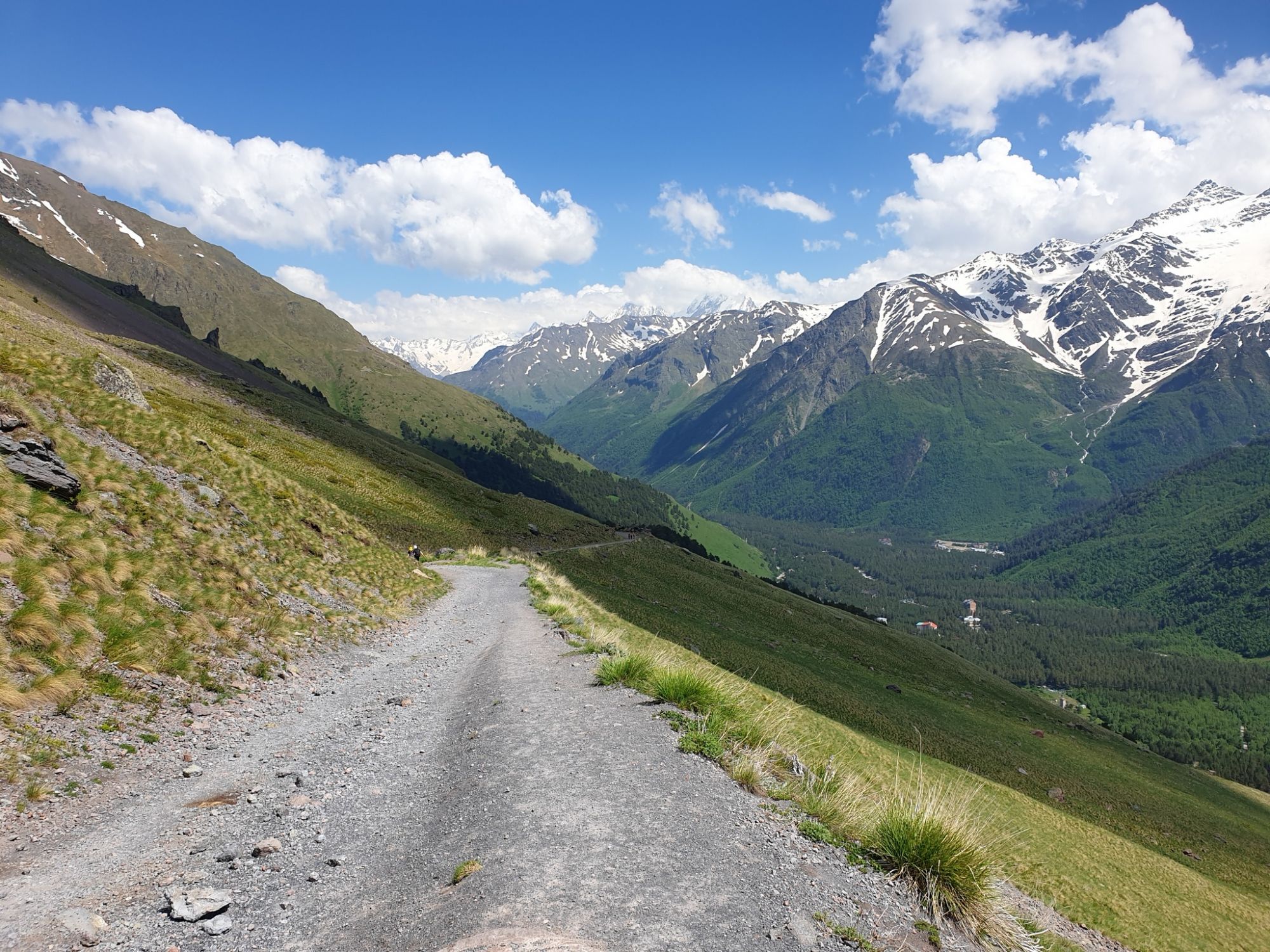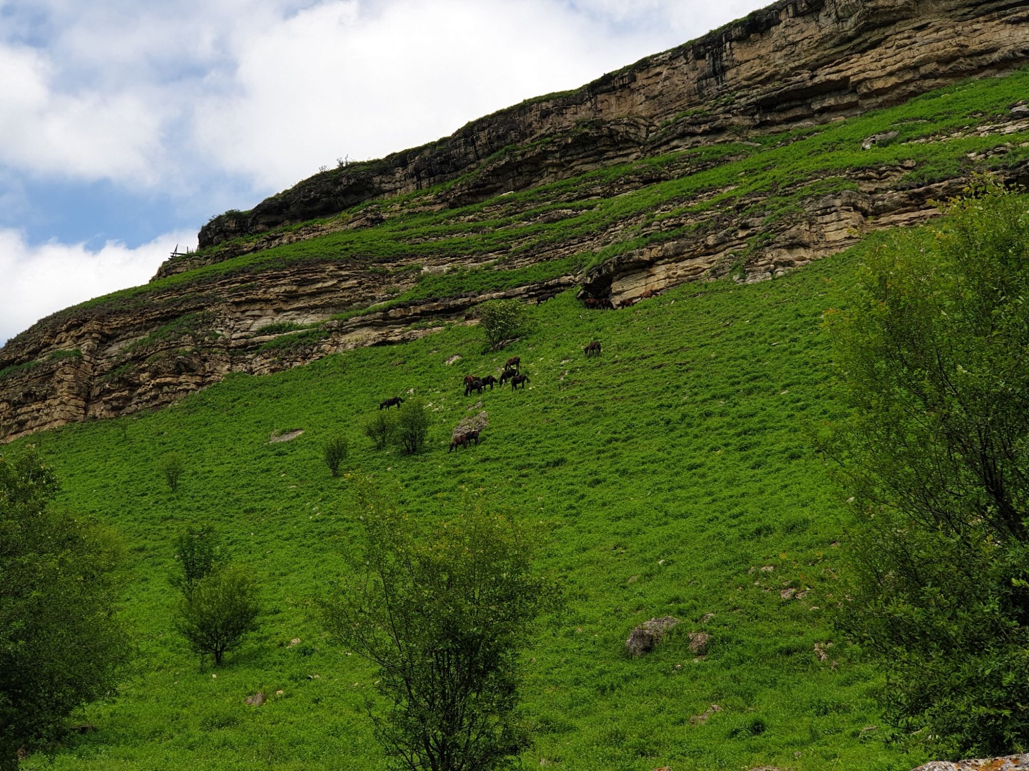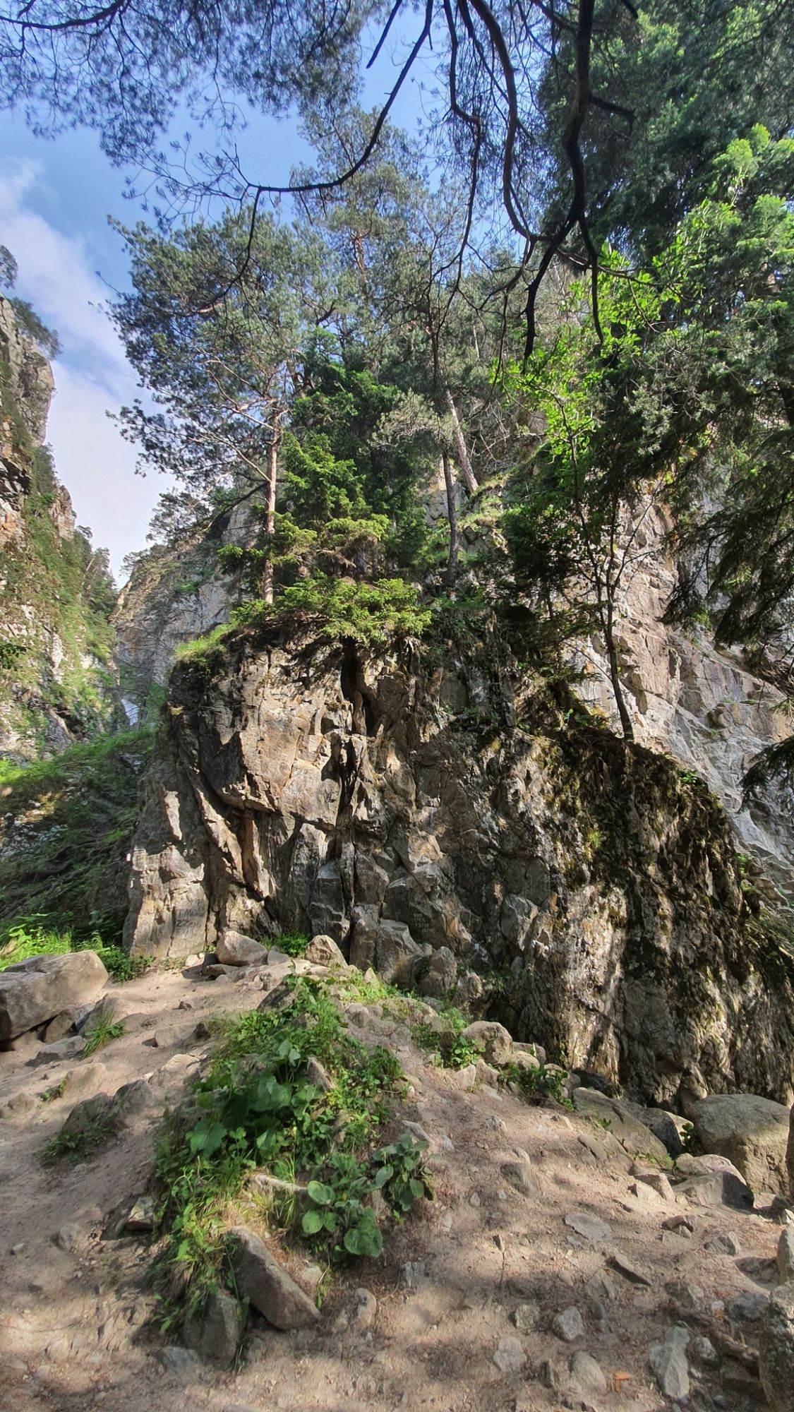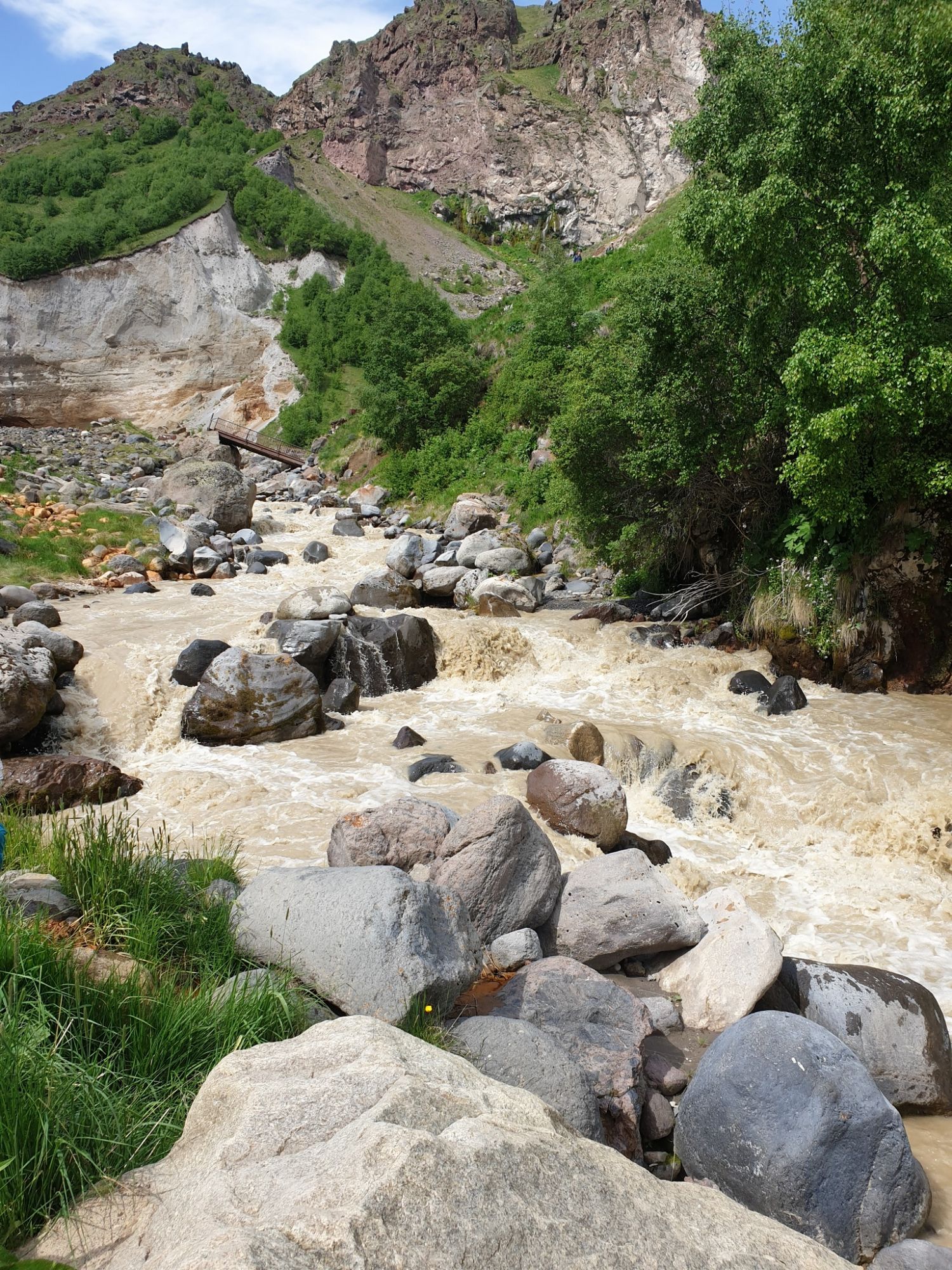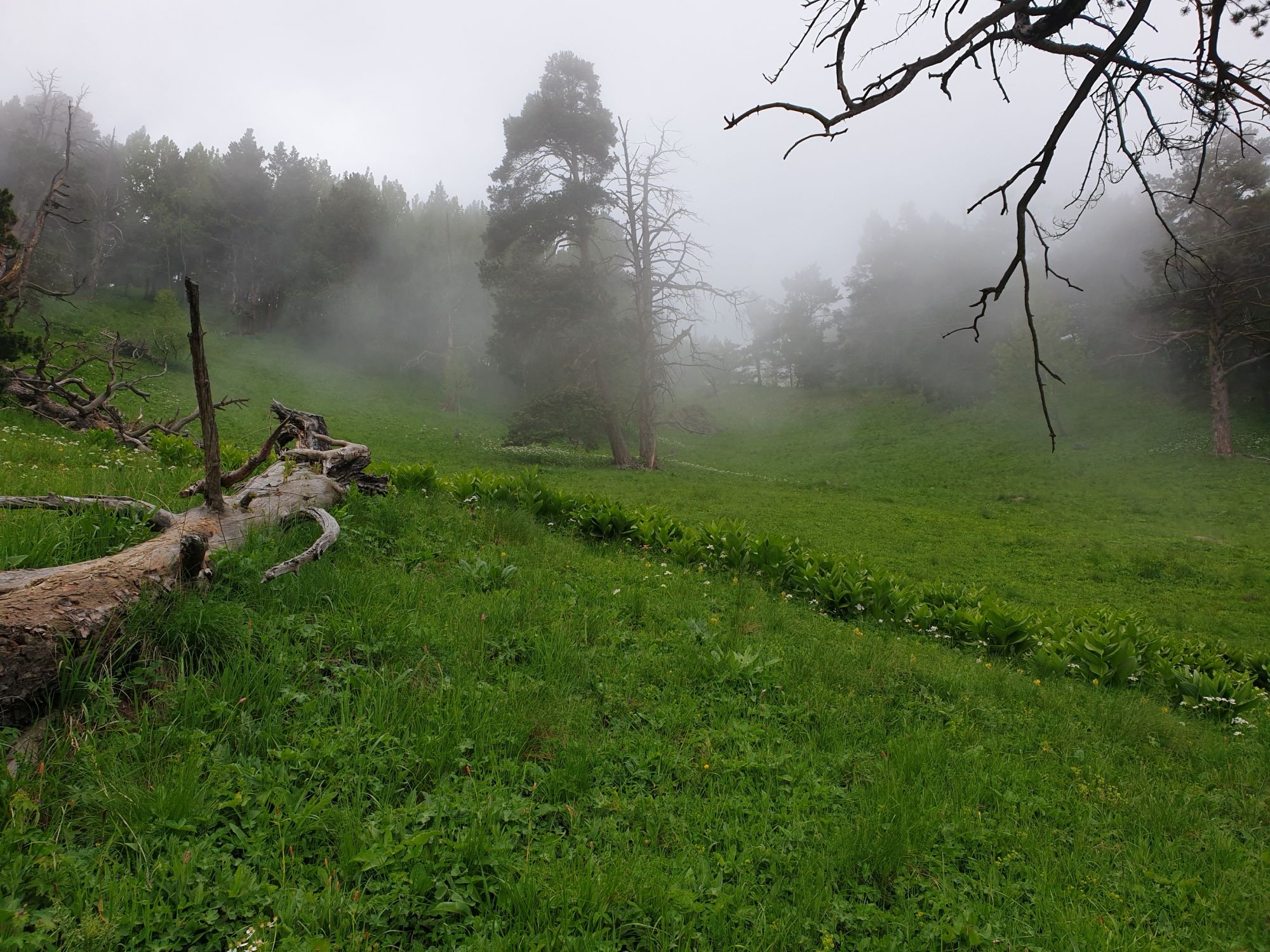 2 июля 2021 А я приступаю к завершающим рассказам о нашем отпуске. Во вторую неделю отпуска в Кисловодск тоже пришла жара и мы дружно решили сбежать в горы. А именно в Домбай. У меня было отмечено много точек и маршрутов, а уж чему из этого было суждено реализоваться, определять решили на месте. Оба раза в Домбай мы ездили через перевал Гум-баши (высшая точка 2075м нум), очень и очень живописная дорога со всеми прелестями больших перепадов высоты в виде серпантинов, спусков, подъемов и красивых видов, включая вид на Эльбрус при хорошей погоде, а также еще двумя особенностями. 1.Весьма и весьма дырявый асфальт на большей части пути от Учкекена до Карачаевска. и 2) Му-пробки и беее-пробки, как мы их про себя прозвали: тут постоянно гоняют скот. И если небольшой затор из коров обходится нормально, то вот в последний раз мы попали на перегон отары овец. Огромной такой отары, которая шла вдоль дороги плотным потоком в попутном направлении. О, мой водитель этой пробки долго не забудет Жаль только я, балда, это дело не сфотографировала Гум-баши, серия первая. С видами на невероятные зеленые склоны и шапки Эльбруса) Гум-баши, серия вторая. В тот же день вечером. Под кодовым названием "конец света". На высоте выше 1700 м примерно все было укутано плотным облаком. Видимость минимальная. Осторожно добрались до широкой смотровой, отъехали подальше, не выключая всех возможных огней, и вдоволь нарезвились в тумане. Кстати вот там, за нашими спинами, обрыва нет. Хотя это можно понять только подойдя вплотную и посмотрев вниз. Мои очень сильно надо мной смеялись, когда я задержавшись у машины, начала им кричать в испуге, чтоб отошли от обрыва Гум-баши, серия третья. Снова солнечное утро и немного видов на серпантин и горный аул Верхняя Мара Гум-баши, серия четвертая. Видимость нормальная, но облако очень живописное и изменчивое. И оочень холодное! Брр...))) А потом мы выехали на дорогу, ведущую в Теберду и Домбай и попали в другой мир. Заснеженные вершины гор вдалеке, р.Теберда то справа, то слева, а по бокам лес, реки, невероятные карачаевские лошади... Она особенная, эта дорога. Но до поселка Домбай мы так и не доехали. Ни в первый раз, ни во второй. История с Терсколом повторилась))) В Джилы-су мои мальчики сгорели, под открытое солнце им было нежелательно. А у меня в запасе был один атомобильный маршрут. Я такое не очень, больше люблю пешие треки, но идти по асфальтовой дороге не самое приятное, а побывать мне там хотелось. Поэтому именно он был выбран первым в сегодняшнем дне. Туристический маршрут по Гоначхирскому ущелью до озера Туманлы-кель. Это продолжение Военно-сухумской дороги. На повороте с шоссе КПП, по дороге за озером пограничники, за перевалом Абхазия. А вот 12 км между КПП и озером открыты для посещения с 9.00 до 17.00. И вот мы въезжаем под шлагбаум заповедника!... Это невероятный мир. Очень красивый и совершенно другой. Река шумит на дне ущелья, то тут, то там видны следы сходивших в разные годы лавин и камнепадов, невероятный воздух, которым хочется надышаться впрок. На какой склон ни посмотри, обязательно увидишь большой или маленький водопадик: в приходом тепла в последние дни снег в горах стал особенно активно таять.... В одном месте увидели остатки старого моста. А дальше по дороге нашли и место, где можно было немного прогуляться. Лес, горы, елки... нет, постой, говорит мне 