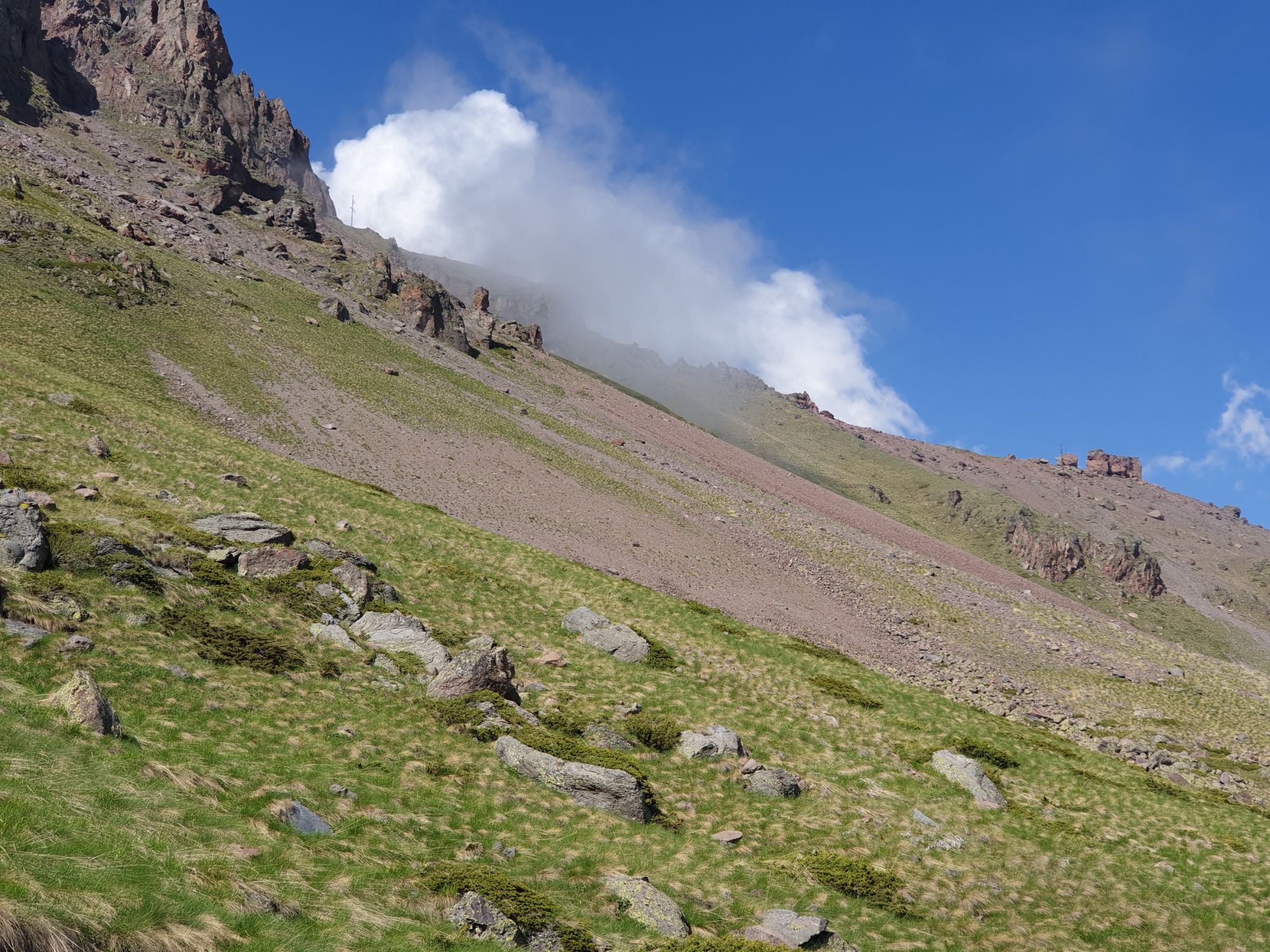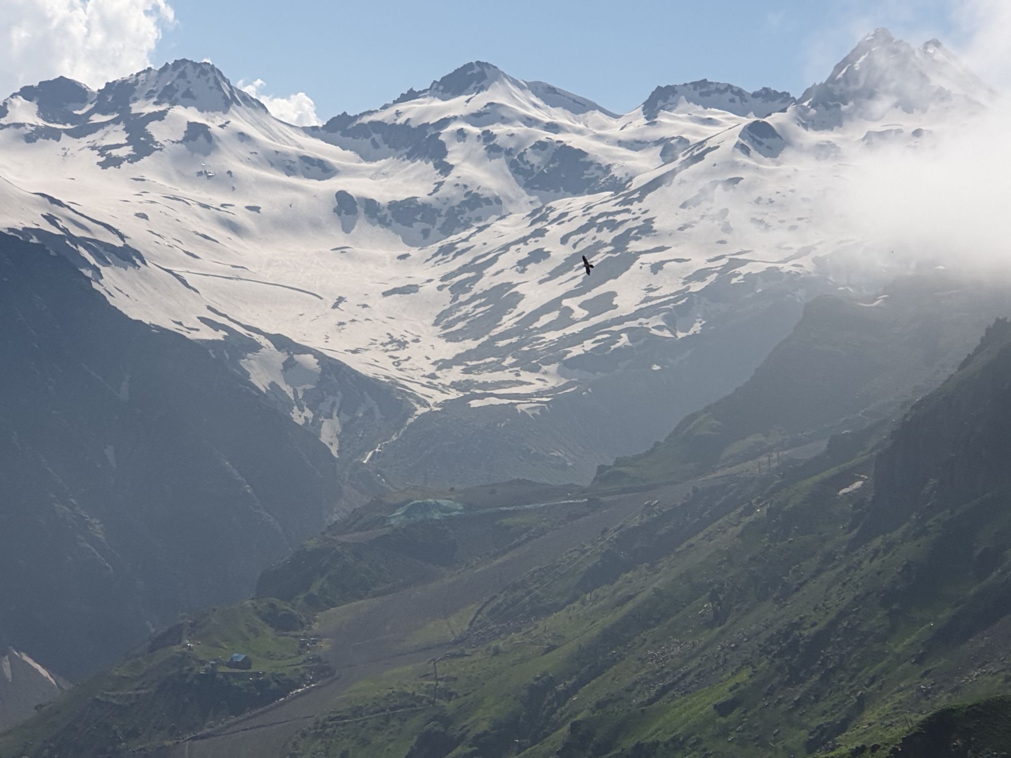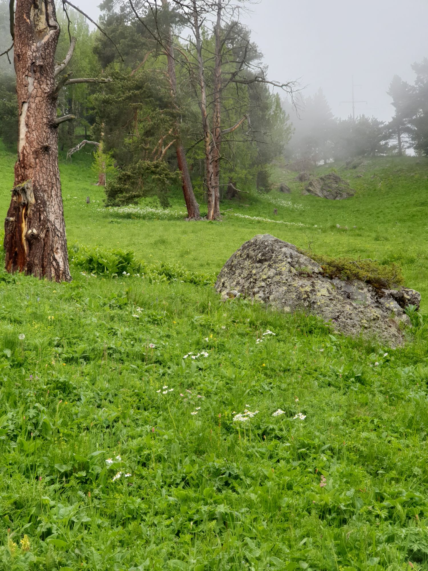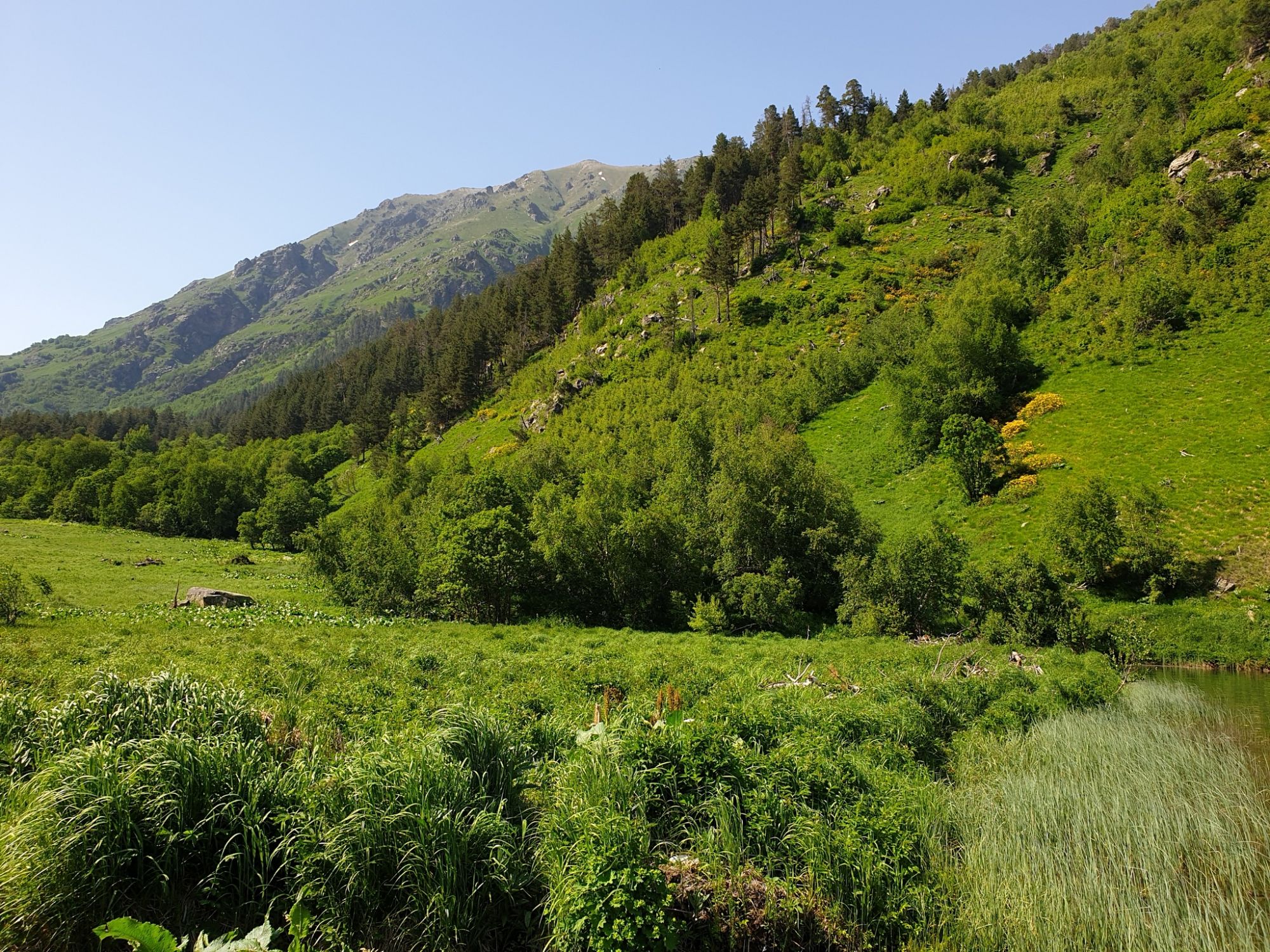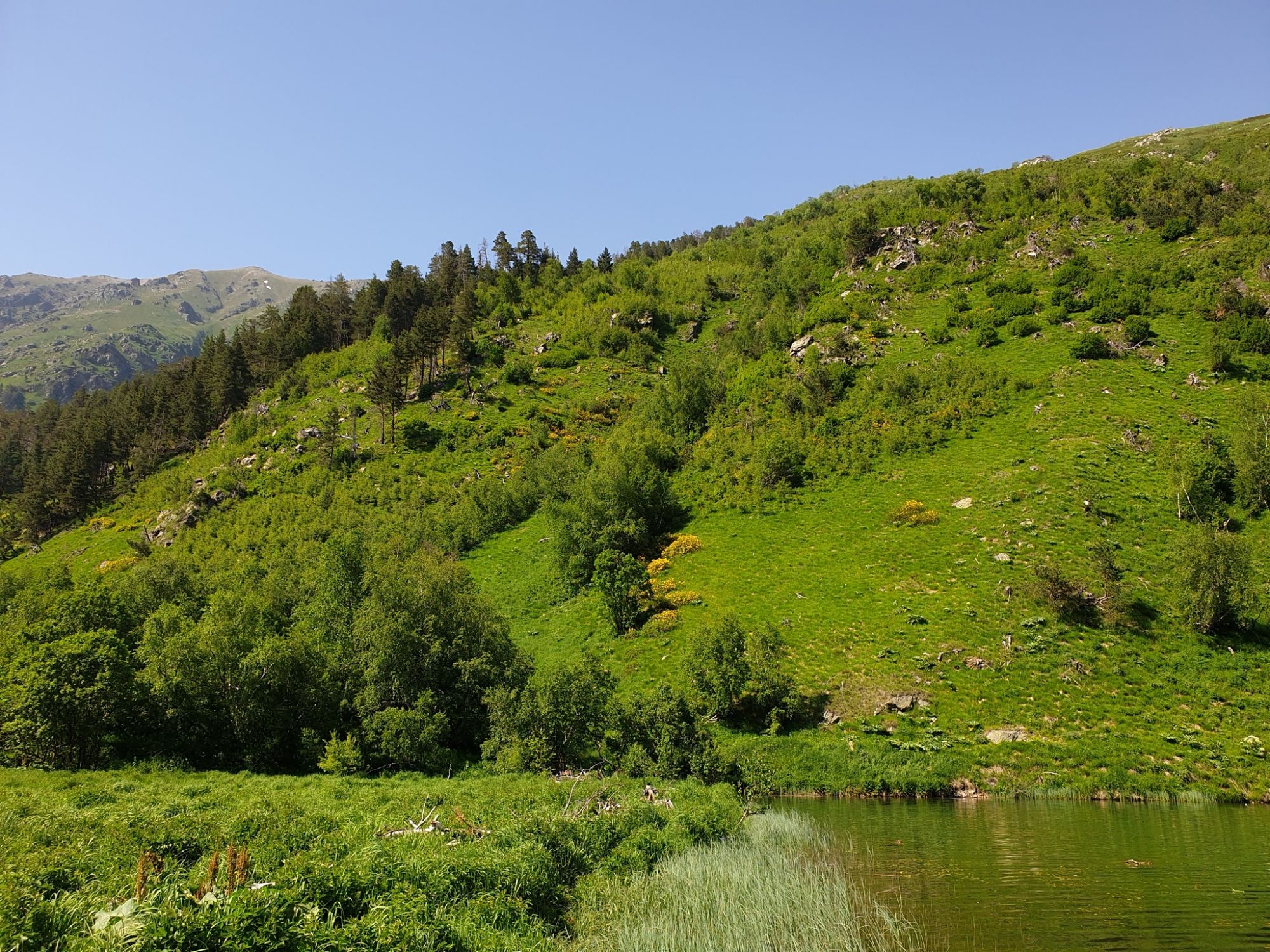 2 июля 2021 А я приступаю к завершающим рассказам о нашем отпуске. Во вторую неделю отпуска в Кисловодск тоже пришла жара и мы дружно решили сбежать в горы. А именно в Домбай. У меня было отмечено много точек и маршрутов, а уж чему из этого было суждено реализоваться, определять решили на месте. Оба раза в Домбай мы ездили через перевал Гум-баши (высшая точка 2075м нум), очень и очень живописная дорога со всеми прелестями больших перепадов высоты в виде серпантинов, спусков, подъемов и красивых видов, включая вид на Эльбрус при хорошей погоде, а также еще двумя особенностями. 1.Весьма и весьма дырявый асфальт на большей части пути от Учкекена до Карачаевска. и 2) Му-пробки и беее-пробки, как мы их про себя прозвали: тут постоянно гоняют скот. И если небольшой затор из коров обходится нормально, то вот в последний раз мы попали на перегон отары овец. Огромной такой отары, которая шла вдоль дороги плотным потоком в попутном направлении. О, мой водитель этой пробки долго не забудет Жаль только я, балда, это дело не сфотографировала Гум-баши, серия первая. С видами на невероятные зеленые склоны и шапки Эльбруса) Гум-баши, серия вторая. В тот же день вечером. Под кодовым названием "конец света". На высоте выше 1700 м примерно все было укутано плотным облаком. Видимость минимальная. Осторожно добрались до широкой смотровой, отъехали подальше, не выключая всех возможных огней, и вдоволь нарезвились в тумане. Кстати вот там, за нашими спинами, обрыва нет. Хотя это можно понять только подойдя вплотную и посмотрев вниз. Мои очень сильно надо мной смеялись, когда я задержавшись у машины, начала им кричать в испуге, чтоб отошли от обрыва Гум-баши, серия третья. Снова солнечное утро и немного видов на серпантин и горный аул Верхняя Мара Гум-баши, серия четвертая. Видимость нормальная, но облако очень живописное и изменчивое. И оочень холодное! Брр...))) А потом мы выехали на дорогу, ведущую в Теберду и Домбай и попали в другой мир. Заснеженные вершины гор вдалеке, р.Теберда то справа, то слева, а по бокам лес, реки, невероятные карачаевские лошади... Она особенная, эта дорога. Но до поселка Домбай мы так и не доехали. Ни в первый раз, ни во второй. История с Терсколом повторилась))) В Джилы-су мои мальчики сгорели, под открытое солнце им было нежелательно. А у меня в запасе был один атомобильный маршрут. Я такое не очень, больше люблю пешие треки, но идти по асфальтовой дороге не самое приятное, а побывать мне там хотелось. Поэтому именно он был выбран первым в сегодняшнем дне. Туристический маршрут по Гоначхирскому ущелью до озера Туманлы-кель. Это продолжение Военно-сухумской дороги. На повороте с шоссе КПП, по дороге за озером пограничники, за перевалом Абхазия. А вот 12 км между КПП и озером открыты для посещения с 9.00 до 17.00. И вот мы въезжаем под шлагбаум заповедника!... Это невероятный мир. Очень красивый и совершенно другой. Река шумит на дне ущелья, то тут, то там видны следы сходивших в разные годы лавин и камнепадов, невероятный воздух, которым хочется надышаться впрок. На какой склон ни посмотри, обязательно увидишь большой или маленький водопадик: в приходом тепла в последние дни снег в горах стал особенно активно таять.... В одном месте увидели остатки старого моста. А дальше по дороге нашли и место, где можно было немного прогуляться. Лес, горы, елки... нет, постой, говорит мне 