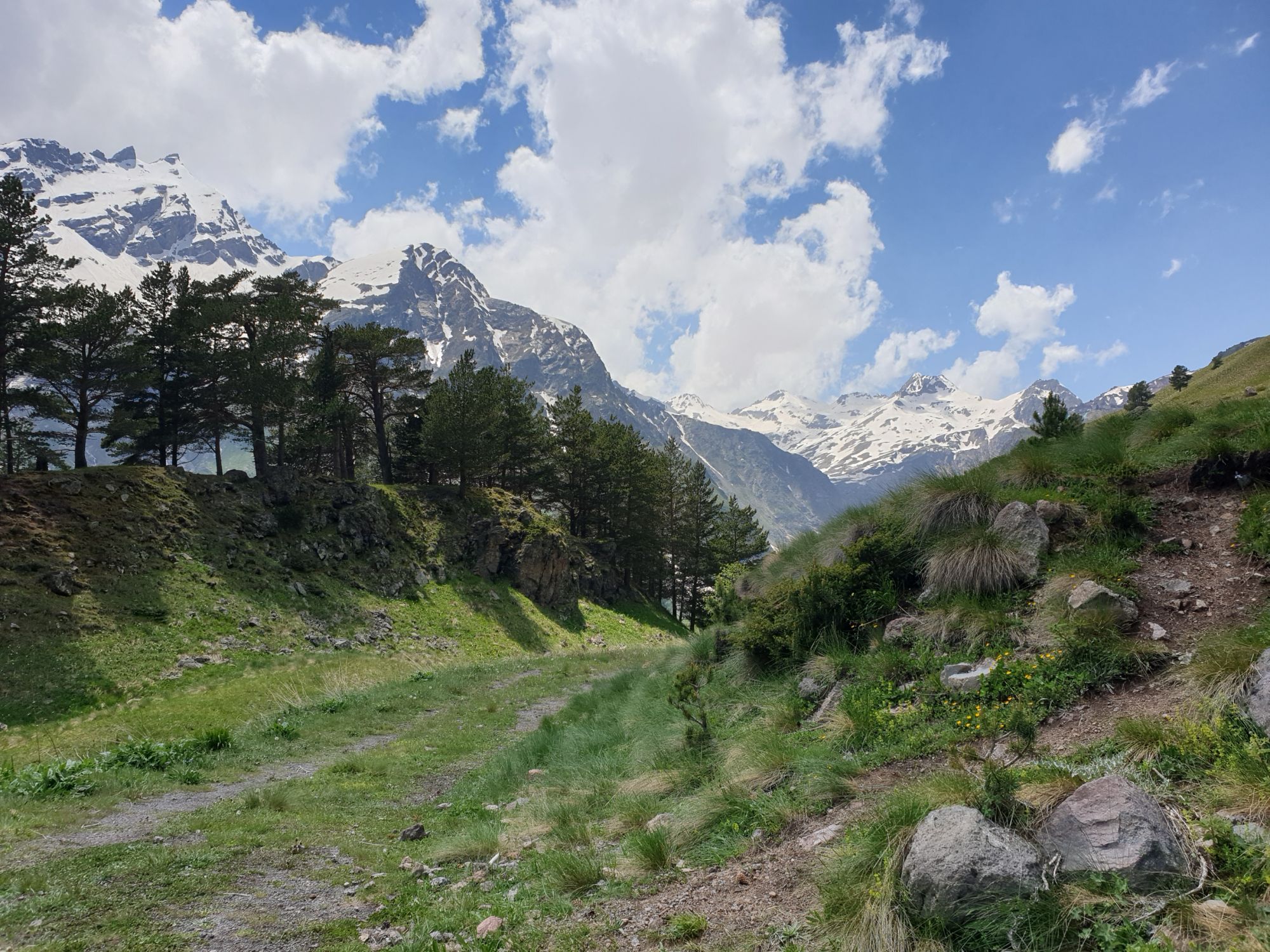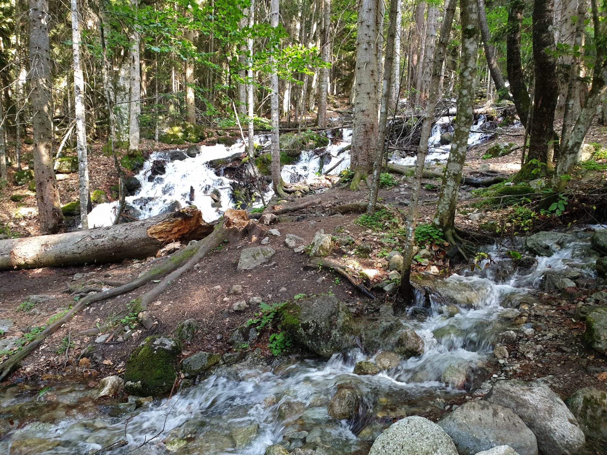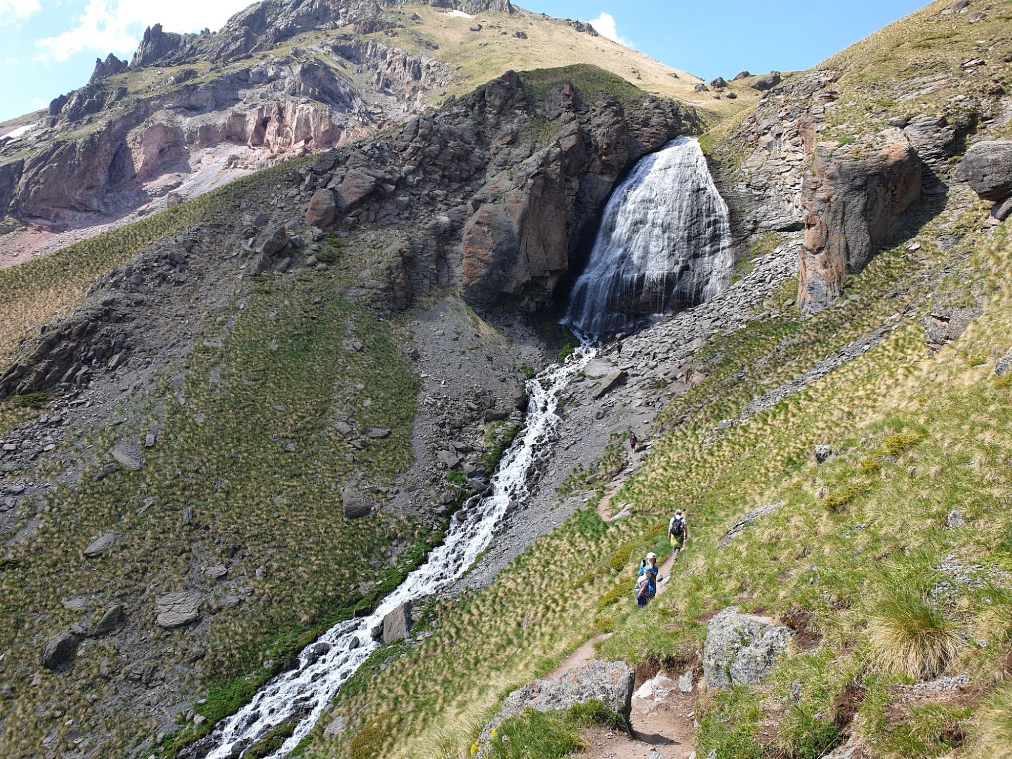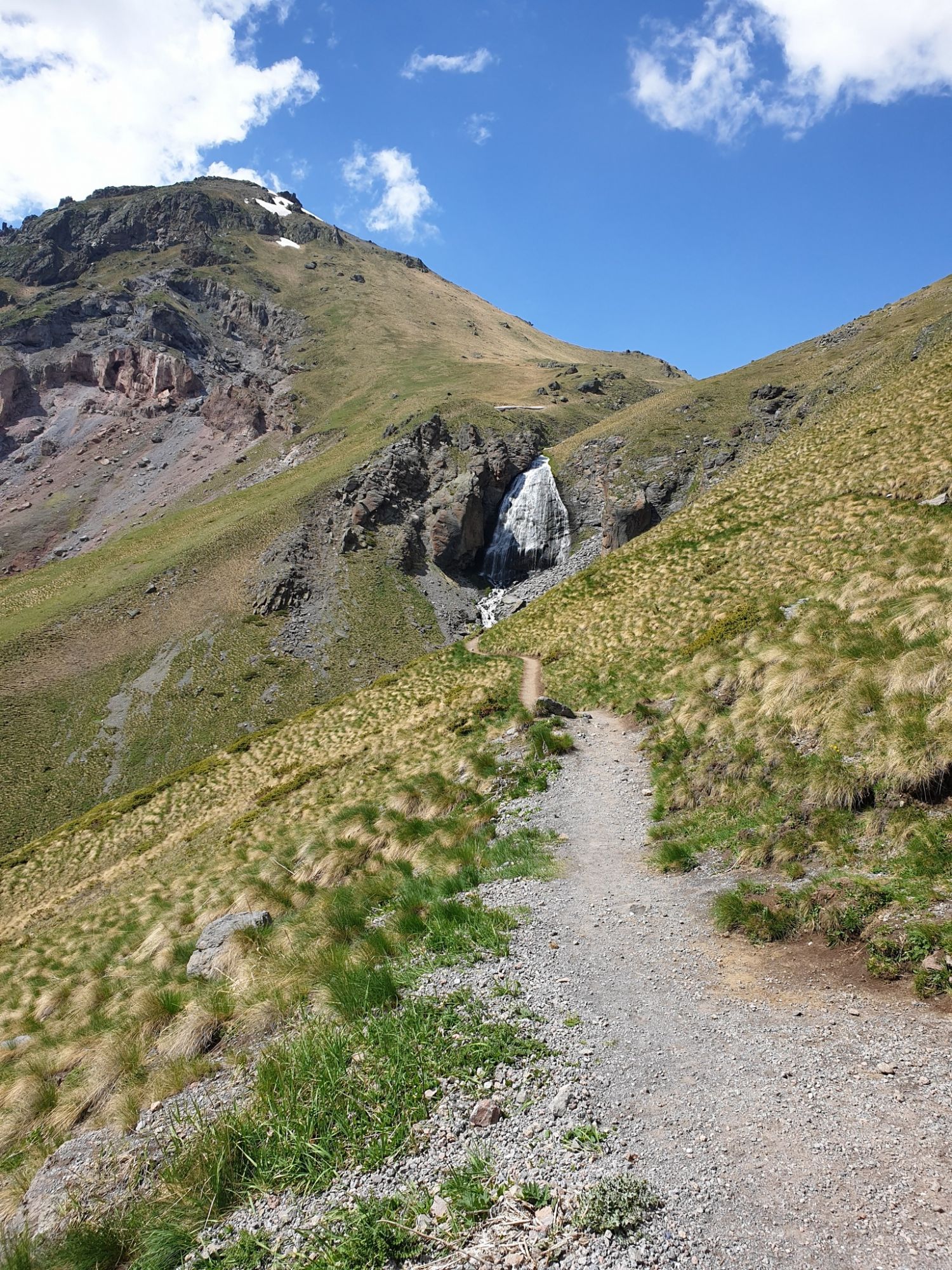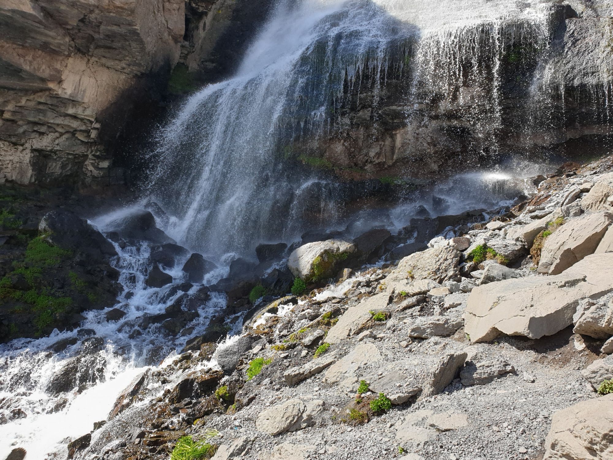 1 июля 2021 Доброе утро! А я продолжаю. Теперь пойдет немного медленнее, т.к. для каждого следующего сообщения приходится выбирать вменяемое количество фотографий из нескольких сотен. Но, надеюсь, оно того стоит. К концу первой недели отпуска прогноз погоды по соседним Кабардино-Балкарской и Карачаево-Черкесской Республикам перестал изобиловать ливневыми дождями и штормовыми предупреждениями и мы поспешили этим воспользоваться. Первым пунктом назначения стал Терскол. Тот самый, что на склоне Эльбруса и где известный горнолыжный курорт, а значит подъемники. Правда вот насчет того, что мы хотим подниматься на подъемниках мы сомневались: от местных гидов шли сообщения, что горнолыжный сезон продлен до конца июня, температура там не выше 5 градусов, а снега столько, что кроссовки промокают через 2 минуты. И мы ехали в сомнениях. Тем более, что подъемнику у нас была очень заманчивая альтернатива. Забегая вперед, скажу, что до поляны Азау, откуда начинается канатка, мы так и не доехали. Но сначала дорога до Терскола по Баксанскому ущелью. Тут мы впервые увидели так близко заснеженные горы, а высота перевалила за 2 тысячи над уровнем моря (Кисловодск находится на высоте в среднем где-то 600-900м нум, парковые тропки до 1400м нум на вершине г.Большое седло), а Пятигорск и того ниже, средняя 500м нум, если правильно помню). В центре Терскола оставили машину и пошли к КПП одного из туристических маршрутов по Приэльбрусскому нац.парку. Путь наш лежал к водопаду Девичьи косы, (как он называется на оф.карте маршрута) или Чыранбаши-су (как он подписан на Яндекс-картах). Про этот маршрут в сентябре прошлого года рассказывала Юля @Juliay и с тех пор я очень хотела тут побывать. Опять же согласно оф.карте маршрута длина его составляет что-то порядка 6 км в одну сторону с перепадом высот 500м, сам водопад находится на уровне 2800м над уровнем моря. Итого, впереди нас ждали несколько км непрерывного подъема на приличной высоте. Но в целом, если не пытаться бежать, то все проходится нормально. Тем более вокруг такие виды, что дух захватывает, а рука тянется к фотоаппарату на каждом шагу. Здесь аромат сосен и робкие нежные лесные цветы постепенно сменяются альпийскими лугами, где буйным цветом цветет все, что можно от лютиков, до кое-где еще встречающейся сон-травы (в Крыму она, например, отцветает в апреле). Внизу еле видной отсюда ниткой течет Баксан, а с возвышающихся по ту сторону реки вершин Чегета бегут многочисленные ручьи и водопадики и видны тающие сошедшие зимой лавины. Зелень изумительна, природа восхищает и удивляет, а погода к нам весьма благосклонна несмотря на прогноз. В какой-то момент Женя увидел вдалеке внизу среди деревьев оленя. Их там оказалось несколько. И пока мы доставали что-то увеличительное, они с невероятной скоростью проскакали по склону вверх, пересекли нашу дорогу и унеслись еще выше в горы. "А мы то тут ползем как черепахи", - только и подумали мы И вот, за очередным поворотом показался он, водопад! Я видела фотографии, но с водопадами так всегда - живьем они совершенно другие, их невозможно представить, если никогда не был, если не видел этих высот и не ощущал этой мощи. Особенно теперь, когда в регионе заметно потеплело и на вершинах стал очень активно таять снег, а горные реки стали весьма полноводными. Здесь поток разбивается на множество относитель