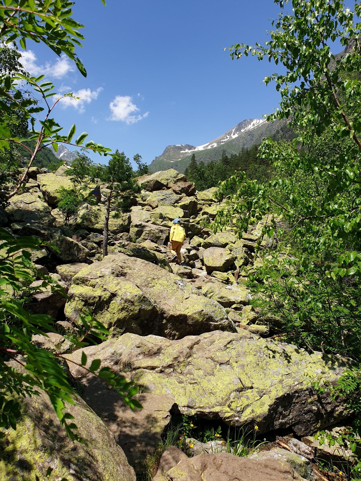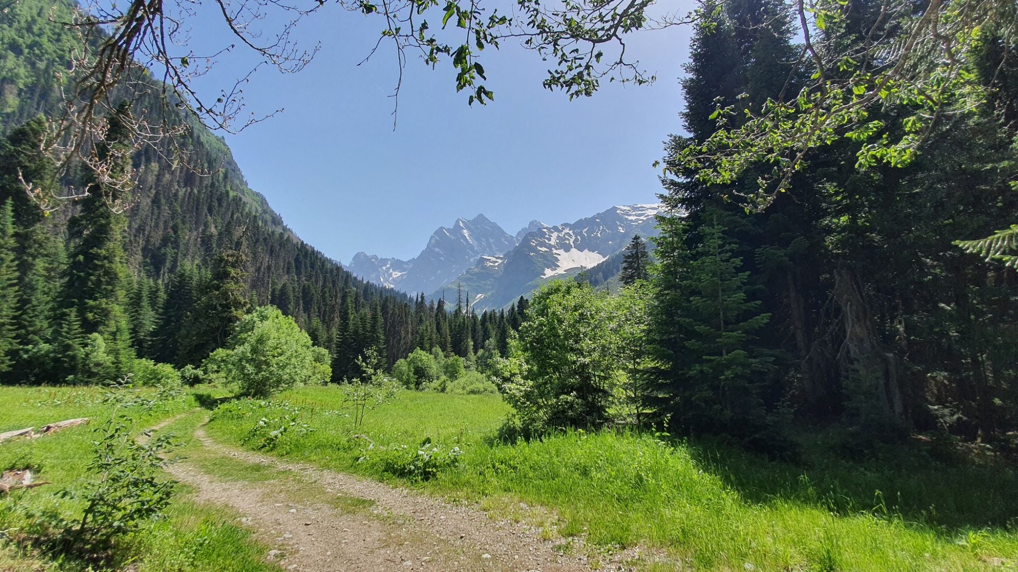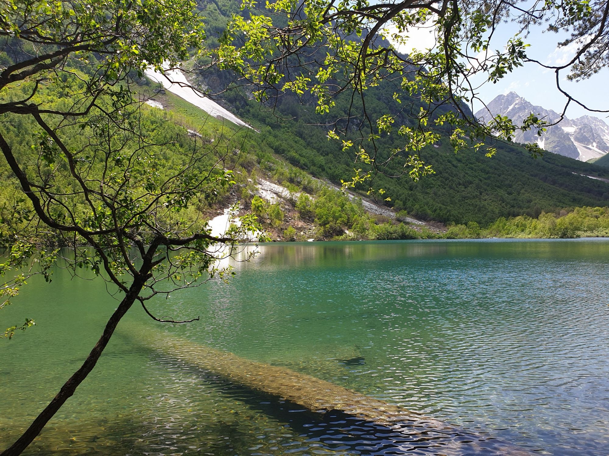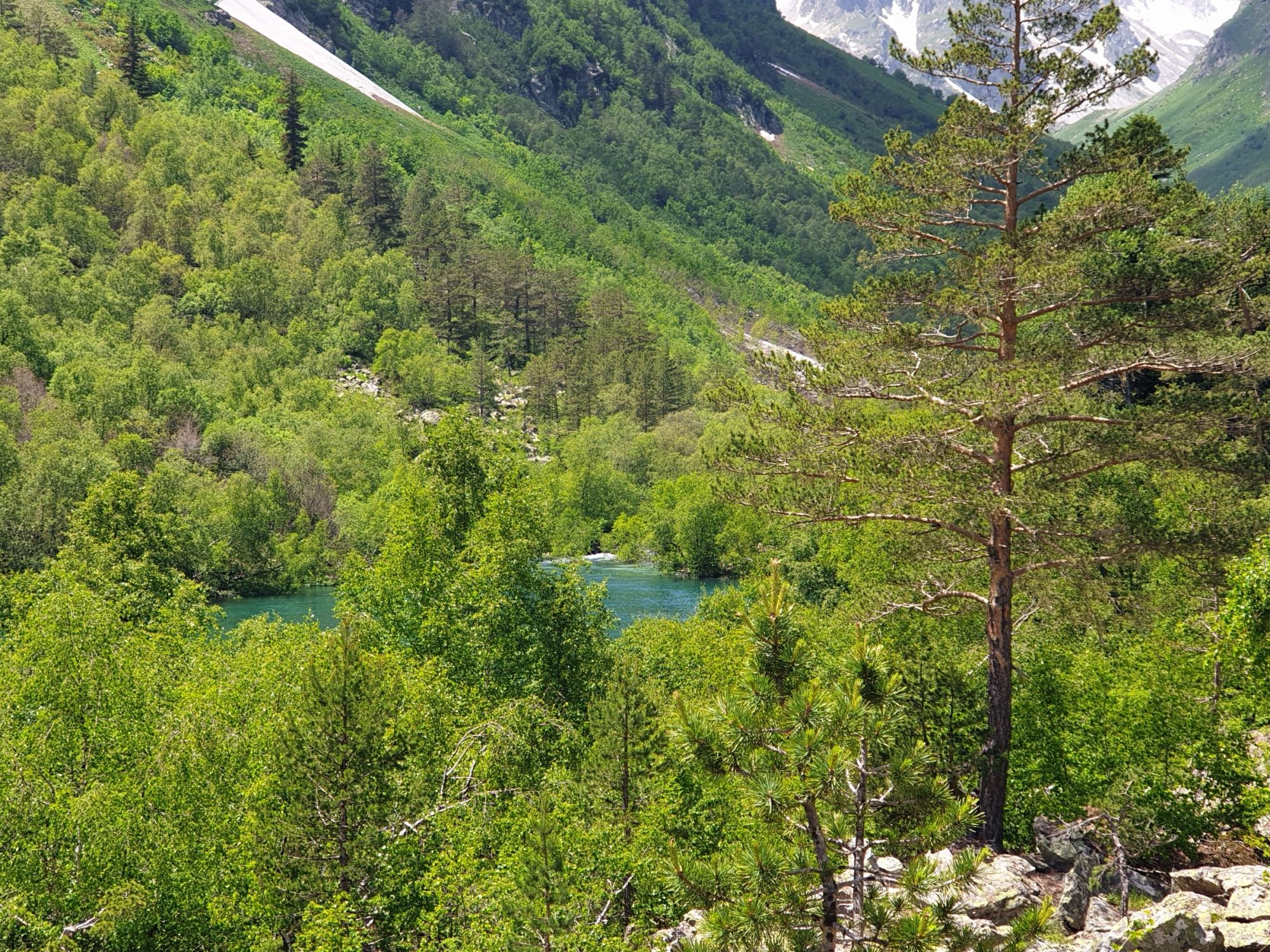 2 июля 2021 И наша вторая поездка на Домбай была весьма целенаправленной. До поселка в тот день снова доехать было не суждено и подъемники в планы тоже не входили. А держали мы путь к туристическому маршруту Бадукские озера. Время работы маршрута с 8.00 до 18.00 (не точно), вход на маршрут только до 12.00. Почему так, поймете по ходу рассказа. Итак, нас ждали что-то около 4км маршрута в одну сторону. С общим набором высоты 600м. Конечная точка маршрута - третье (самое большое) Бадукское озеро, расположенное на высоте 2000м нум. 1е и 2е находятся на высоте 1971метр и 1992метра нум. Тропа считается не самой простой, т.к. уклон здесь постоянный и весьма крутой (круче обычной лестницы в многоэтажке), а частично проходит по огромным валунам - последствиям обвала, произошедшего 200 лет назад, который и стал своеобразной запрудой, благодаря которой и образовалось первое (нижнее) озеро. Но и не самой сложной. Достаточно хороших спортивных кроссовок (палки тоже приветствуются, но не обязательно) и бараньего упорства Кто получше физическую форму имеет, заходят без проблем. Мы что-то среднее ( а точнее средне-равнинное), поэтому ползли вверх с постоянством и упорством. Фотографии были отличным поводом передохнуть, но лишний раз останавливаться, если еще способен идти, тоже не стоило. Итого, мы обогнали не одну группу поднимающихся и потратили на подъем до конечной точки 3.5 часа, включая те минут 20, что мы зависли у нижнего озера, не в силах уйти от этой фантастической локации. Но обо всем по порядку. Маршрут начинается с подвесного моста через реку Теберда. Эдакий панда-парк для трусов)))) И очень красиво) Отметились на КПП и пошли по волшебному, сказочному лесу. еще полные сил и в невероятном восторге от каждого взгляда вокруг. На фото здесь и далее мелькаем уже привычные мы для понимания масштаба происходящего)) Через некоторое время добрались до моста у места слияния рек Хаджибей и Бадук, той самой, что озера образует. Вдоль Хаджибея тоже есть тропа, но сейчас она закрыта, режим покоя территории. Место слияния просто эпическое! Вот умножьте всю ту силу, энергию и мощь уже виденных Домбайских рек на два и столкните эти потоки между собой! Над мостом стоит облако из освежающей водной пыли, в которой порой проскакивает радуга. Уходить не хочется, но нам через мост и снова вверх по корням и камням.. Вот те камни на последних фото - это тоже тропа. По тому самому обвалу. Еще несколько шагов и.... Первое Бадукское озеро. Восхитительно и незабываемо. Оно стоило и десяти подобных подъемов! И ни одно фото не сможет передать тех ощущений, что охватываю тебя при виде этой прозрачной воды такого удивительного оттенка в окружении леса и снежных вершин... Мы пробыли здесь достаточно долго. Купаться не стали, ибо без "снаряжения", но ноги помочили. 7 градусов, говорят. Я простояла примерно... да меньше 5ти секунд, чего уж Ну а потом направились дальше. Снова вверх. Еще несколько шагов по осыпи и... вон оно, Второе Бадукское озеро! Немного спуститься и мы на берегу. Цвет воды - это нечто потрясающе! Тут особенно не подберешься по периметру, кругом крутые склоны. Но зато в лесу устроена поляна для отдыха. Мы правда не стали надолго останавливаться, нас тянуло дальше. И вот оно, третье Бадукское озеро. Самое большое из трех и самое высокогороное. Здесь к самой воде еще спускаются снежные остатки лавин, что прид