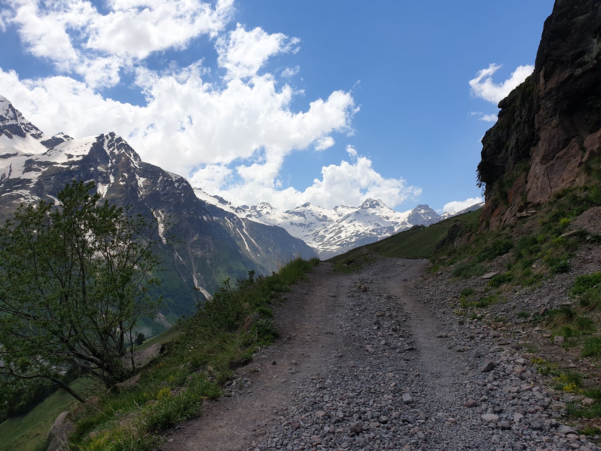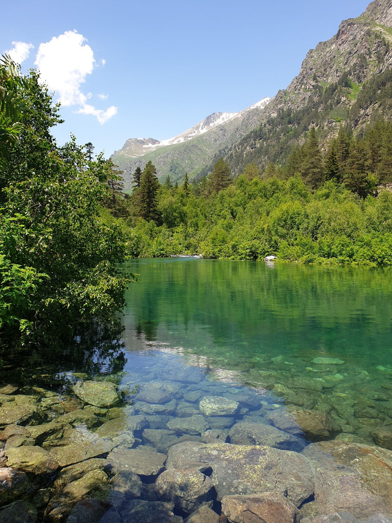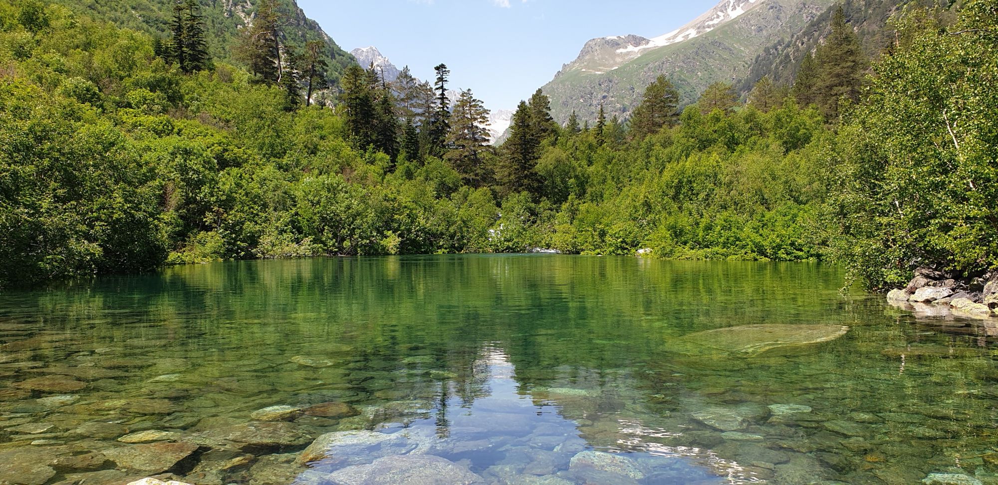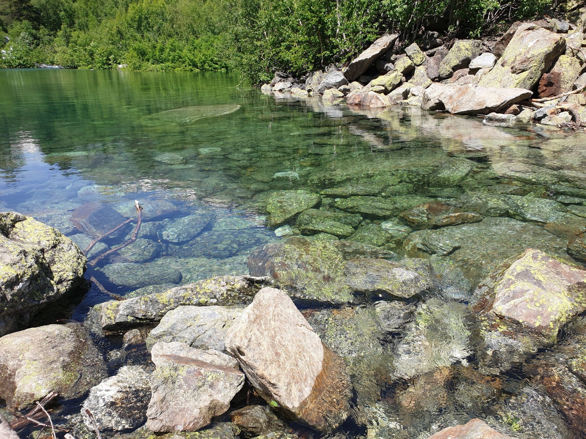 2 июля 2021 И наша вторая поездка на Домбай была весьма целенаправленной. До поселка в тот день снова доехать было не суждено и подъемники в планы тоже не входили. А держали мы путь к туристическому маршруту Бадукские озера. Время работы маршрута с 8.00 до 18.00 (не точно), вход на маршрут только до 12.00. Почему так, поймете по ходу рассказа. Итак, нас ждали что-то около 4км маршрута в одну сторону. С общим набором высоты 600м. Конечная точка маршрута - третье (самое большое) Бадукское озеро, расположенное на высоте 2000м нум. 1е и 2е находятся на высоте 1971метр и 1992метра нум. Тропа считается не самой простой, т.к. уклон здесь постоянный и весьма крутой (круче обычной лестницы в многоэтажке), а частично проходит по огромным валунам - последствиям обвала, произошедшего 200 лет назад, который и стал своеобразной запрудой, благодаря которой и образовалось первое (нижнее) озеро. Но и не самой сложной. Достаточно хороших спортивных кроссовок (палки тоже приветствуются, но не обязательно) и бараньего упорства Кто получше физическую форму имеет, заходят без проблем. Мы что-то среднее ( а точнее средне-равнинное), поэтому ползли вверх с постоянством и упорством. Фотографии были отличным поводом передохнуть, но лишний раз останавливаться, если еще способен идти, тоже не стоило. Итого, мы обогнали не одну группу поднимающихся и потратили на подъем до конечной точки 3.5 часа, включая те минут 20, что мы зависли у нижнего озера, не в силах уйти от этой фантастической локации. Но обо всем по порядку. Маршрут начинается с подвесного моста через реку Теберда. Эдакий панда-парк для трусов)))) И очень красиво) Отметились на КПП и пошли по волшебному, сказочному лесу. еще полные сил и в невероятном восторге от каждого взгляда вокруг. На фото здесь и далее мелькаем уже привычные мы для понимания масштаба происходящего)) Через некоторое время добрались до моста у места слияния рек Хаджибей и Бадук, той самой, что озера образует. Вдоль Хаджибея тоже есть тропа, но сейчас она закрыта, режим покоя территории. Место слияния просто эпическое! Вот умножьте всю ту силу, энергию и мощь уже виденных Домбайских рек на два и столкните эти потоки между собой! Над мостом стоит облако из освежающей водной пыли, в которой порой проскакивает радуга. Уходить не хочется, но нам через мост и снова вверх по корням и камням.. Вот те камни на последних фото - это тоже тропа. По тому самому обвалу. Еще несколько шагов и.... Первое Бадукское озеро. Восхитительно и незабываемо. Оно стоило и десяти подобных подъемов! И ни одно фото не сможет передать тех ощущений, что охватываю тебя при виде этой прозрачной воды такого удивительного оттенка в окружении леса и снежных вершин... Мы пробыли здесь достаточно долго. Купаться не стали, ибо без "снаряжения", но ноги помочили. 7 градусов, говорят. Я простояла примерно... да меньше 5ти секунд, чего уж Ну а потом направились дальше. Снова вверх. Еще несколько шагов по осыпи и... вон оно, Второе Бадукское озеро! Немного спуститься и мы на берегу. Цвет воды - это нечто потрясающе! Тут особенно не подберешься по периметру, кругом крутые склоны. Но зато в лесу устроена поляна для отдыха. Мы правда не стали надолго останавливаться, нас тянуло дальше. И вот оно, третье Бадукское озеро. Самое большое из трех и самое высокогороное. Здесь к самой воде еще спускаются снежные остатки лавин, что прид