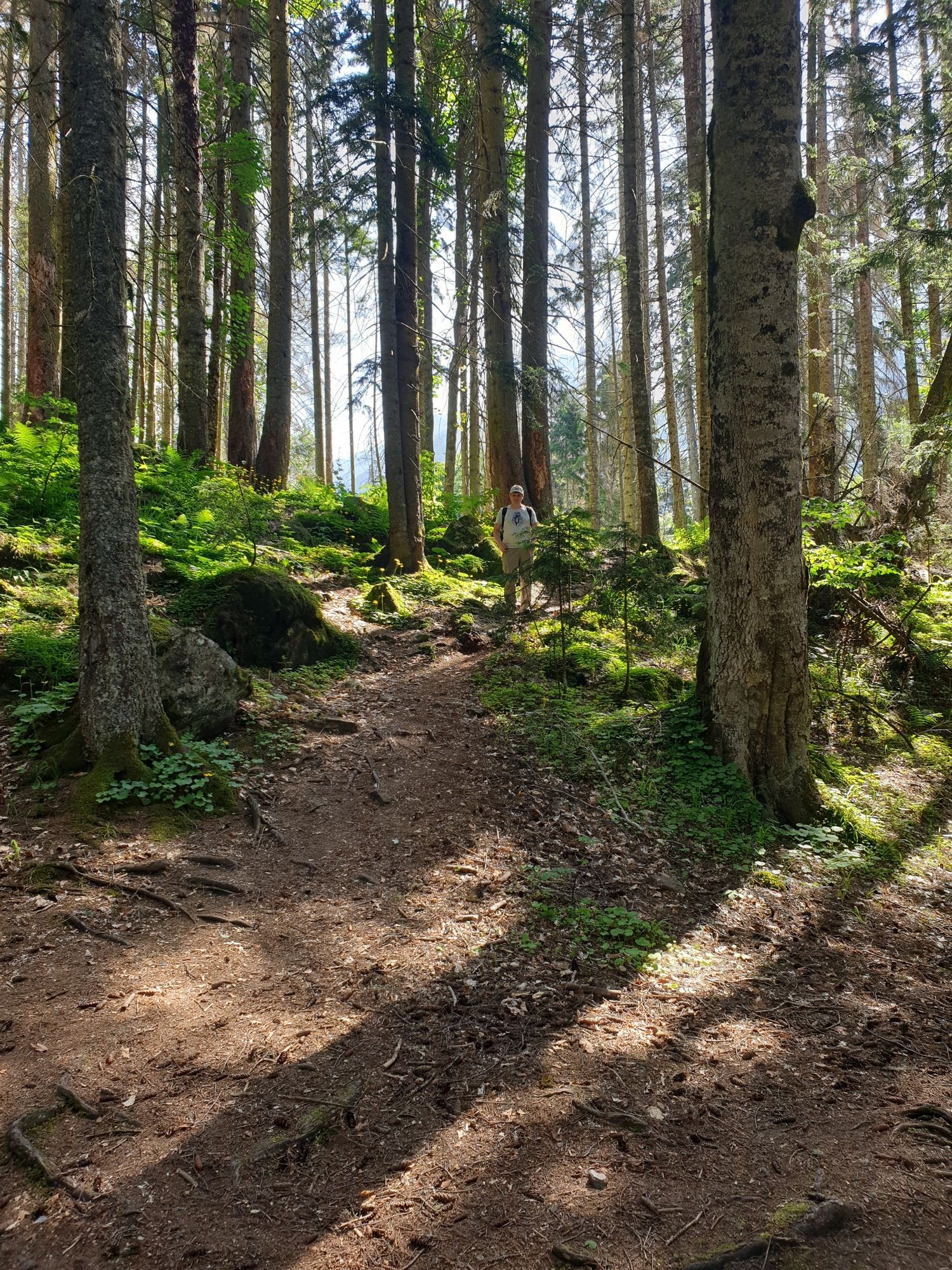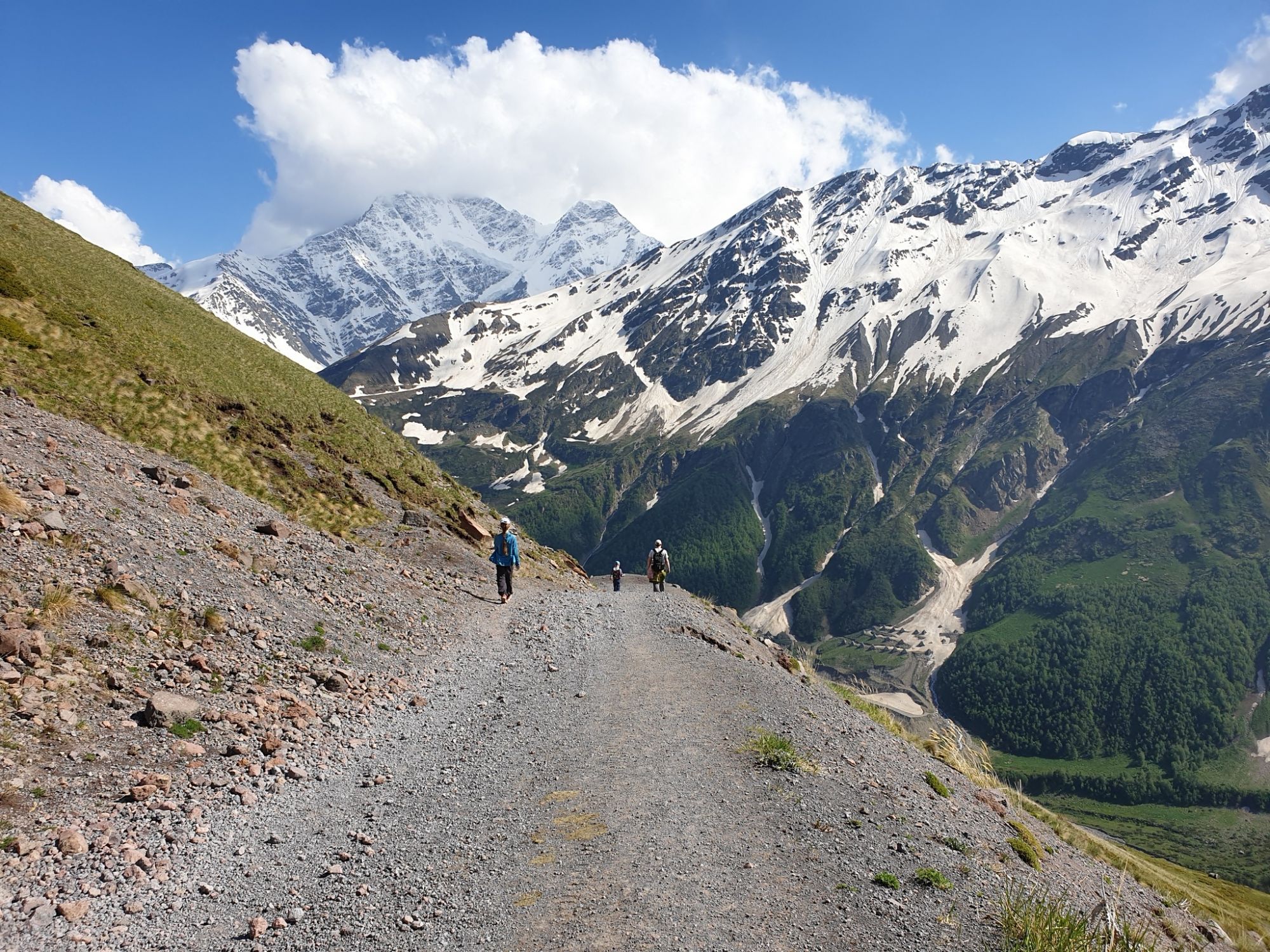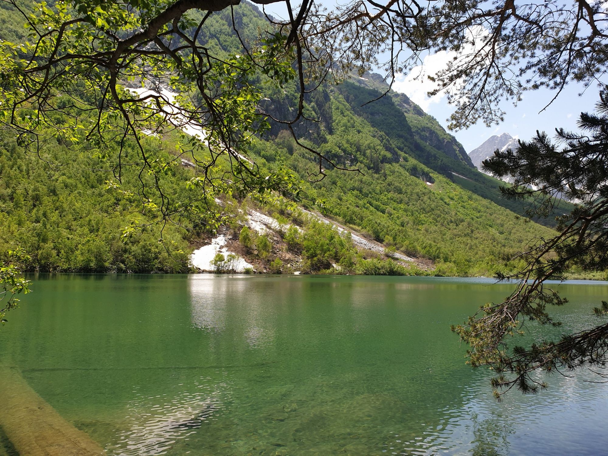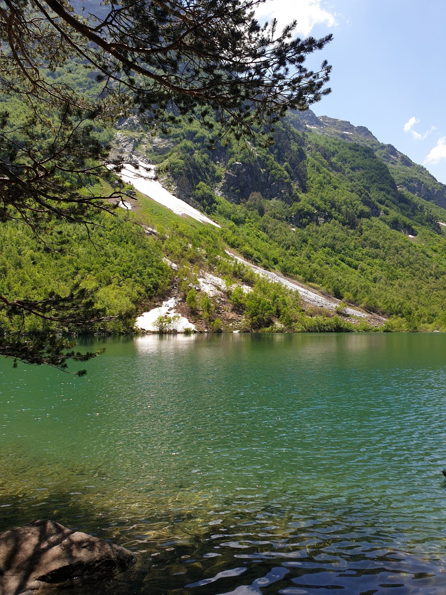 2 июля 2021 И наша вторая поездка на Домбай была весьма целенаправленной. До поселка в тот день снова доехать было не суждено и подъемники в планы тоже не входили. А держали мы путь к туристическому маршруту Бадукские озера. Время работы маршрута с 8.00 до 18.00 (не точно), вход на маршрут только до 12.00. Почему так, поймете по ходу рассказа. Итак, нас ждали что-то около 4км маршрута в одну сторону. С общим набором высоты 600м. Конечная точка маршрута - третье (самое большое) Бадукское озеро, расположенное на высоте 2000м нум. 1е и 2е находятся на высоте 1971метр и 1992метра нум. Тропа считается не самой простой, т.к. уклон здесь постоянный и весьма крутой (круче обычной лестницы в многоэтажке), а частично проходит по огромным валунам - последствиям обвала, произошедшего 200 лет назад, который и стал своеобразной запрудой, благодаря которой и образовалось первое (нижнее) озеро. Но и не самой сложной. Достаточно хороших спортивных кроссовок (палки тоже приветствуются, но не обязательно) и бараньего упорства Кто получше физическую форму имеет, заходят без проблем. Мы что-то среднее ( а точнее средне-равнинное), поэтому ползли вверх с постоянством и упорством. Фотографии были отличным поводом передохнуть, но лишний раз останавливаться, если еще способен идти, тоже не стоило. Итого, мы обогнали не одну группу поднимающихся и потратили на подъем до конечной точки 3.5 часа, включая те минут 20, что мы зависли у нижнего озера, не в силах уйти от этой фантастической локации. Но обо всем по порядку. Маршрут начинается с подвесного моста через реку Теберда. Эдакий панда-парк для трусов)))) И очень красиво) Отметились на КПП и пошли по волшебному, сказочному лесу. еще полные сил и в невероятном восторге от каждого взгляда вокруг. На фото здесь и далее мелькаем уже привычные мы для понимания масштаба происходящего)) Через некоторое время добрались до моста у места слияния рек Хаджибей и Бадук, той самой, что озера образует. Вдоль Хаджибея тоже есть тропа, но сейчас она закрыта, режим покоя территории. Место слияния просто эпическое! Вот умножьте всю ту силу, энергию и мощь уже виденных Домбайских рек на два и столкните эти потоки между собой! Над мостом стоит облако из освежающей водной пыли, в которой порой проскакивает радуга. Уходить не хочется, но нам через мост и снова вверх по корням и камням.. Вот те камни на последних фото - это тоже тропа. По тому самому обвалу. Еще несколько шагов и.... Первое Бадукское озеро. Восхитительно и незабываемо. Оно стоило и десяти подобных подъемов! И ни одно фото не сможет передать тех ощущений, что охватываю тебя при виде этой прозрачной воды такого удивительного оттенка в окружении леса и снежных вершин... Мы пробыли здесь достаточно долго. Купаться не стали, ибо без "снаряжения", но ноги помочили. 7 градусов, говорят. Я простояла примерно... да меньше 5ти секунд, чего уж Ну а потом направились дальше. Снова вверх. Еще несколько шагов по осыпи и... вон оно, Второе Бадукское озеро! Немного спуститься и мы на берегу. Цвет воды - это нечто потрясающе! Тут особенно не подберешься по периметру, кругом крутые склоны. Но зато в лесу устроена поляна для отдыха. Мы правда не стали надолго останавливаться, нас тянуло дальше. И вот оно, третье Бадукское озеро. Самое большое из трех и самое высокогороное. Здесь к самой воде еще спускаются снежные остатки лавин, что прид