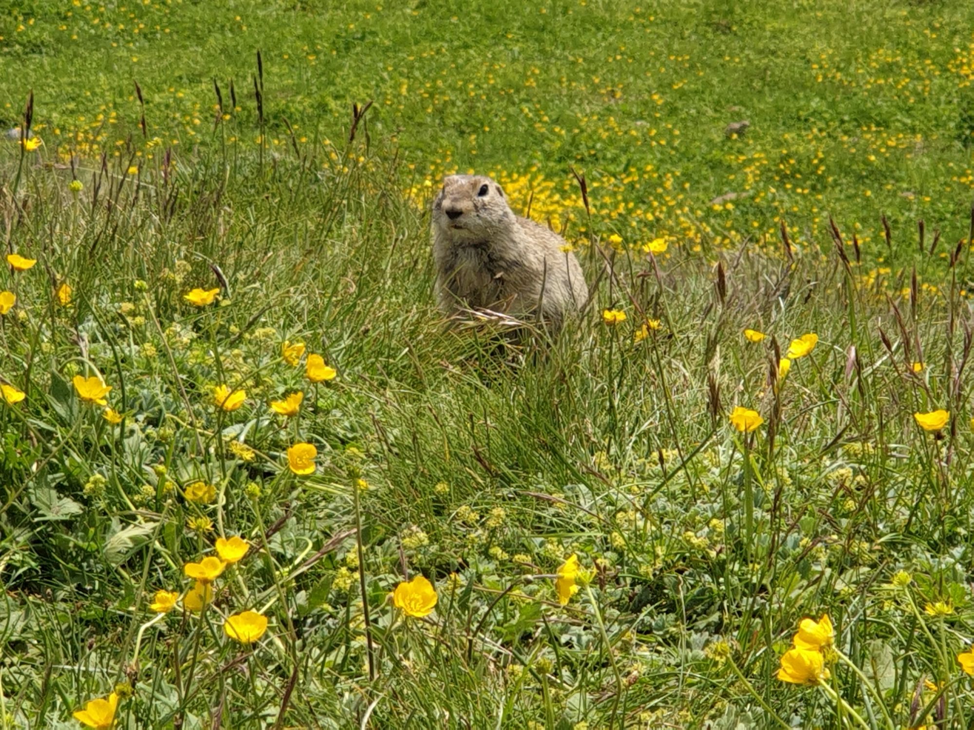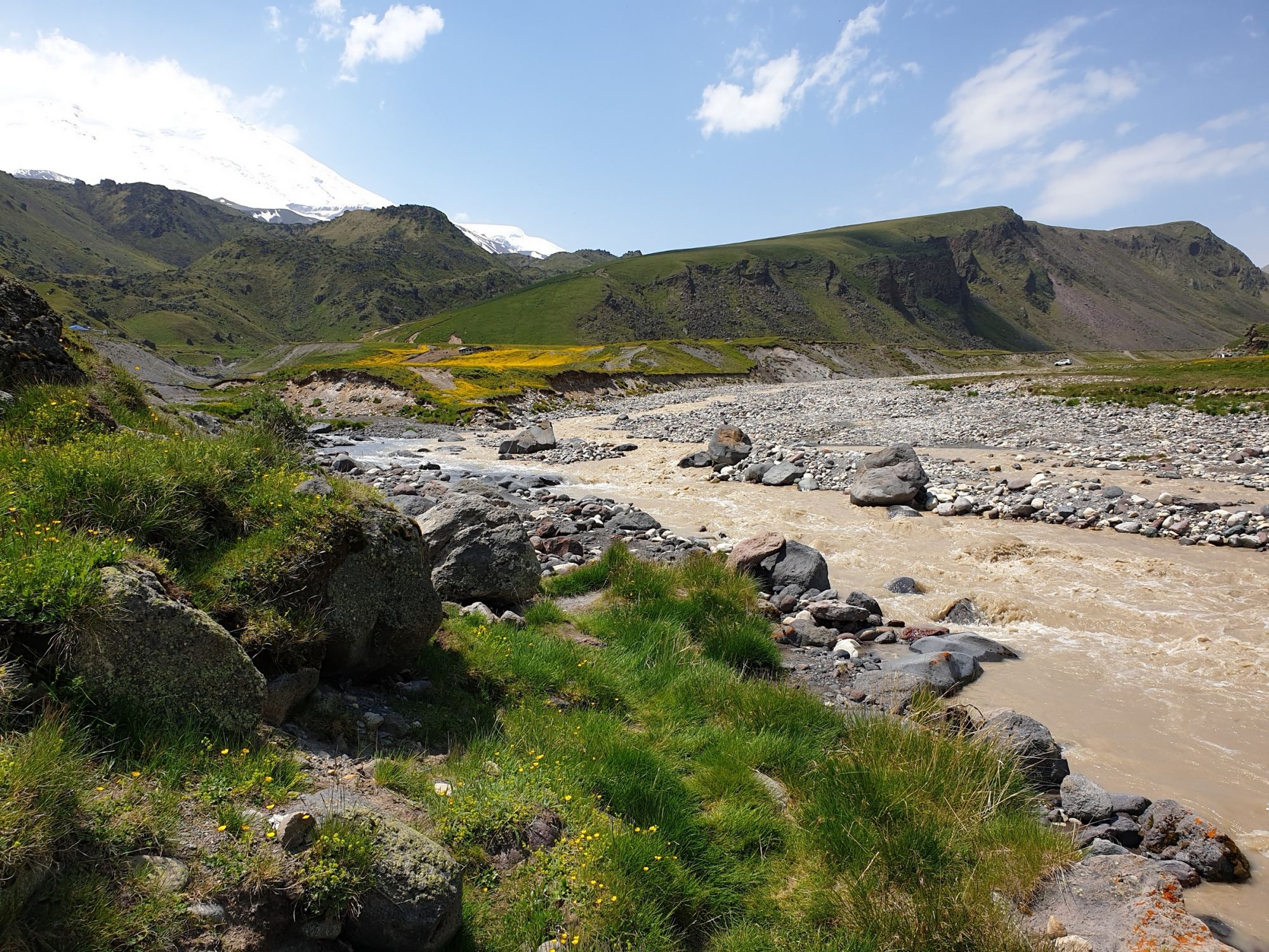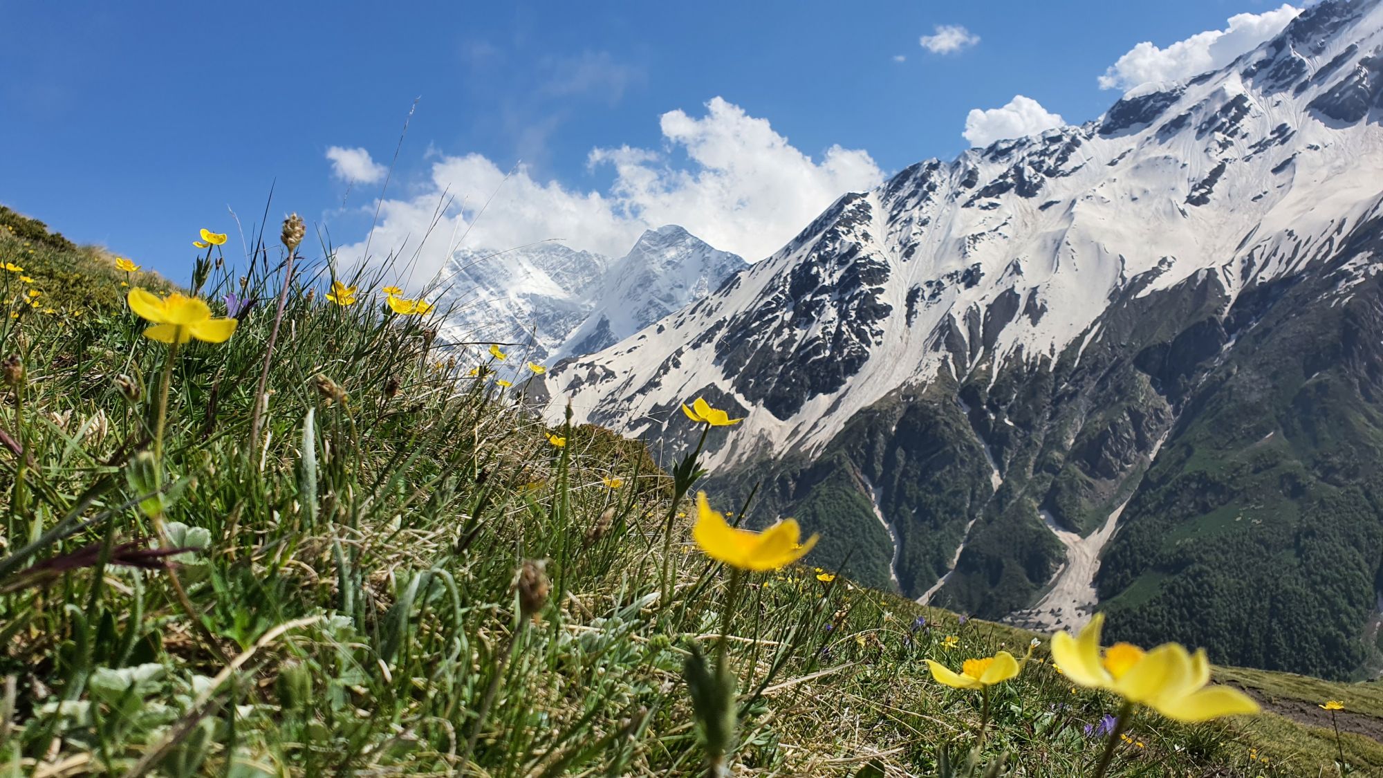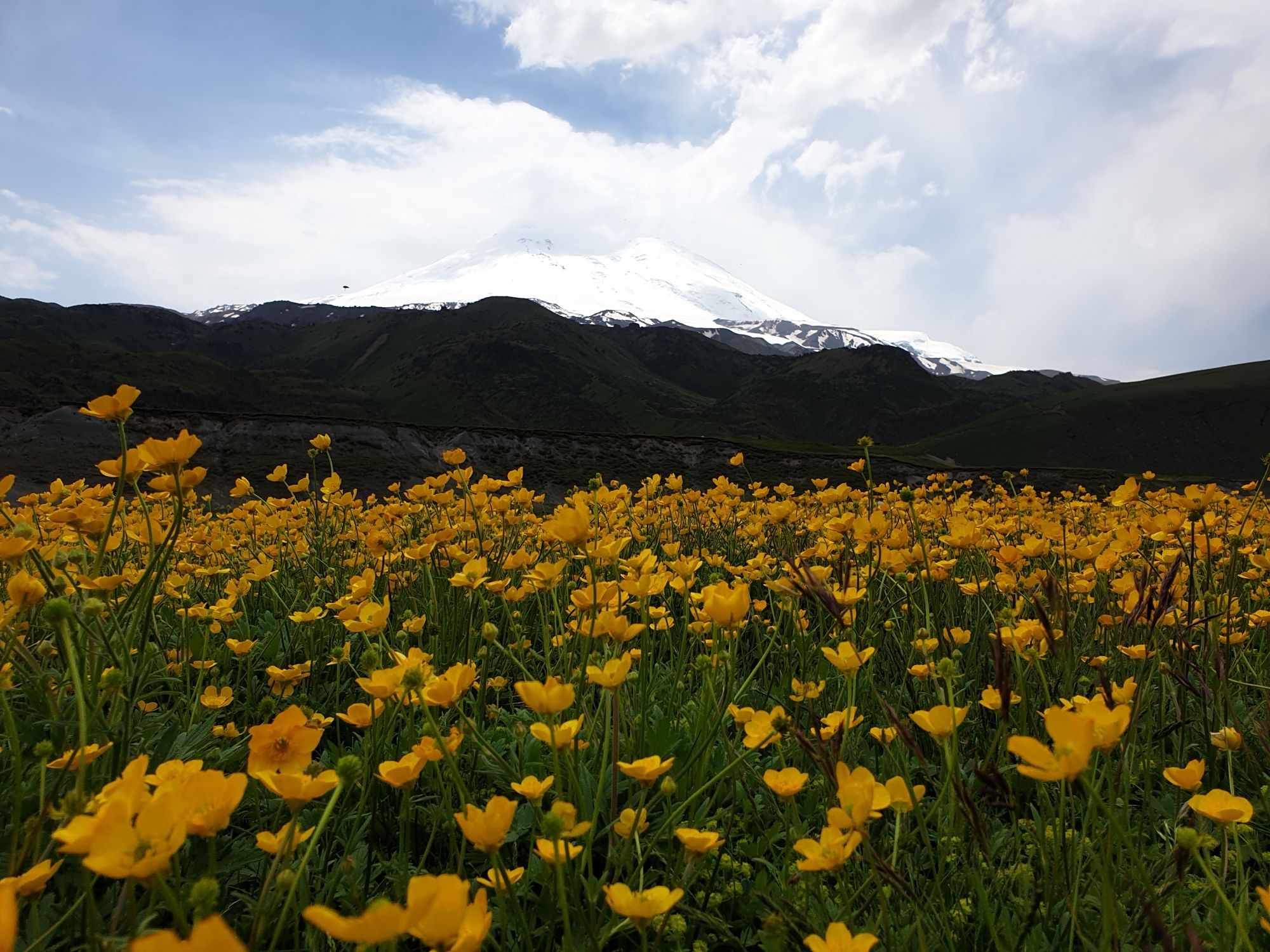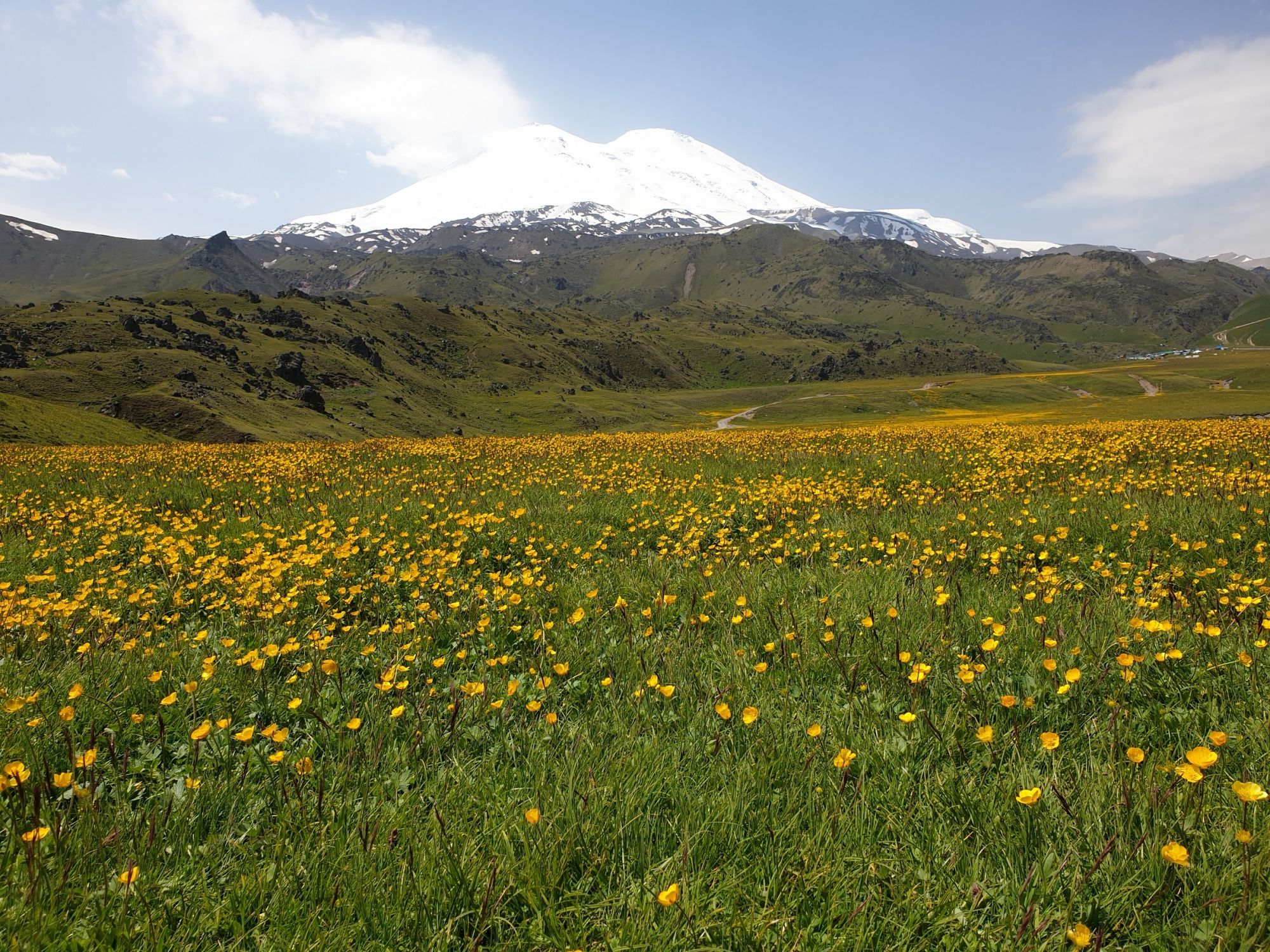 1 июля 2021 А я продолжаю. В этот раз мы никак не могли уехать, не побывав в уже едва ли не легендарном урочище Джилы-су на северных склонах Эльбруса. Кабардино-Балкарском Джилы-су, том самом, куда вот уже лет семь ведет асфальтовая дорога. Про дорогу эту тоже ходит много разговоров: ее называют едва ли не самой красивой на Северном Кавказе. Про самую не скажу, но 72 км петляющей крутыми и не очень серпантинами, то поднимающейся на вершины хребтов, то спускающейся почти на самое дно ущелий дороги - это действительно очень захватывающе. Хотя и не просто для водителя и автомобиля. Особенно учитывая, что по дороге еще и полно больших и мелких каменных обвалов, что случаются здесь постоянно, а дорожное полотно в некоторых местах уже прилично "поплыло". По дороге проезжаешь мимо Долины Нарзанов (сюда не успели погулять, хотя хотелось), поднимаешься на плато Шаджатмаз, где находится обсерватория и т.д. В какой-то момент открывается вид на заснеженные склоны двуглавого исполина Эльбруса и вот уже высота Шаджатмаза в 2100м нум и самого урочища Джилы-су в 2300м нум уже не кажутся чем-то большИм... По дороге немало смотровых, а на склонах цветет куча цветов. Я вот, например, едва сделав десяток шагов в сторону в поисках интересного ракурса, наткнулась на дикую орхидею. Да и вообще, если попытаться сфотографировать все, что хочется по дороге, то до самого урочища можно и не доехать И вот мы на месте. Нас тут же встречают "зубы дракона" - причудливые каменные выступы, которые представляют собой не что иное, как застывшую лаву. Все же Эльбрус - вулкан, хоть и давно спящий (причем последние наблюдения говорят, что скорее всего именно спящий, а не потухший). Буквально в двух шагах и минеральные источники. Один весьма причудливо булькает, выходя из под земли по своему "туннелю". А вон чуть вдалеке и мощный сорокаметровый водопад Султан - это вырывается из каменного плена река Кызыл-кол и обрушивается вниз всей своей мощью... Ну а мы идем вверх, наша цель поляна Эммануэля. Именно здесь расположен альплагерь, из которого начинают восхождения те, кто решается идти на Эльбрус с севера. Ну а главное, это здесь, согласно рассказам и фотографиям, обитает бесчисленное количество перекрикивающихся на все лады сусликов и... цветут лютики. Оказывается, цветение лютиков на Джилы-су - это событие, на которое многие стараются попасть специально. Мы же про это ничего не знали, но нам повезло увидеть это чудо своими глазами и во всей красе. Да собственно вы сейчас и сами все увидите! И да, Эльбрус. Его могучий уходящий в облака силуэт магнетически ведет за собой всю дорогу и раз за разом притягивает камеру фотоаппарата... А вот и первые суслики)) И желтое море... лютиковое море из сотен и тысяч цветов! По середине поляны Эммануэля течет тот самый Кызыл-кол, что пока еще не стеснен каменными стенами. Утром он не особенно бурный, а вот во второй половине для становится весьма полноводным, т.к. берет свое начало в ледниках, чье таяние усиливается под дневными лучами. На реке есть источник нарзана и это самый вкусный нарзан, который я когда либо пробовала. В нем идеальная степень природной газации и ни на йоту привкуса сероводорода. Восхитительный освежающий вкус! И здесь же перекинут "мостик". Мы переходили в районе 12ти дня и вода потихоньку начинала перехлестывать через него. Если смотреть на бурлящ