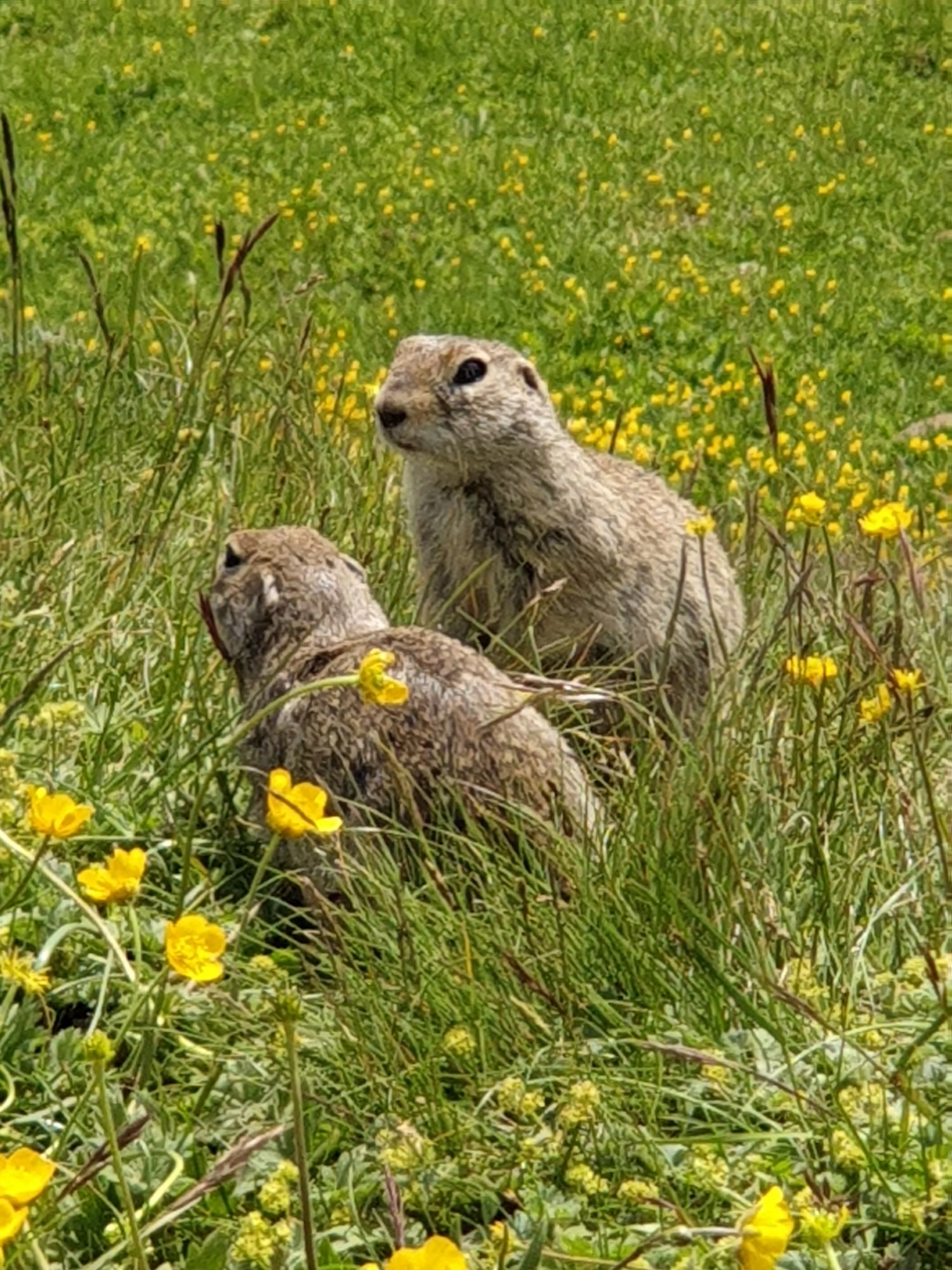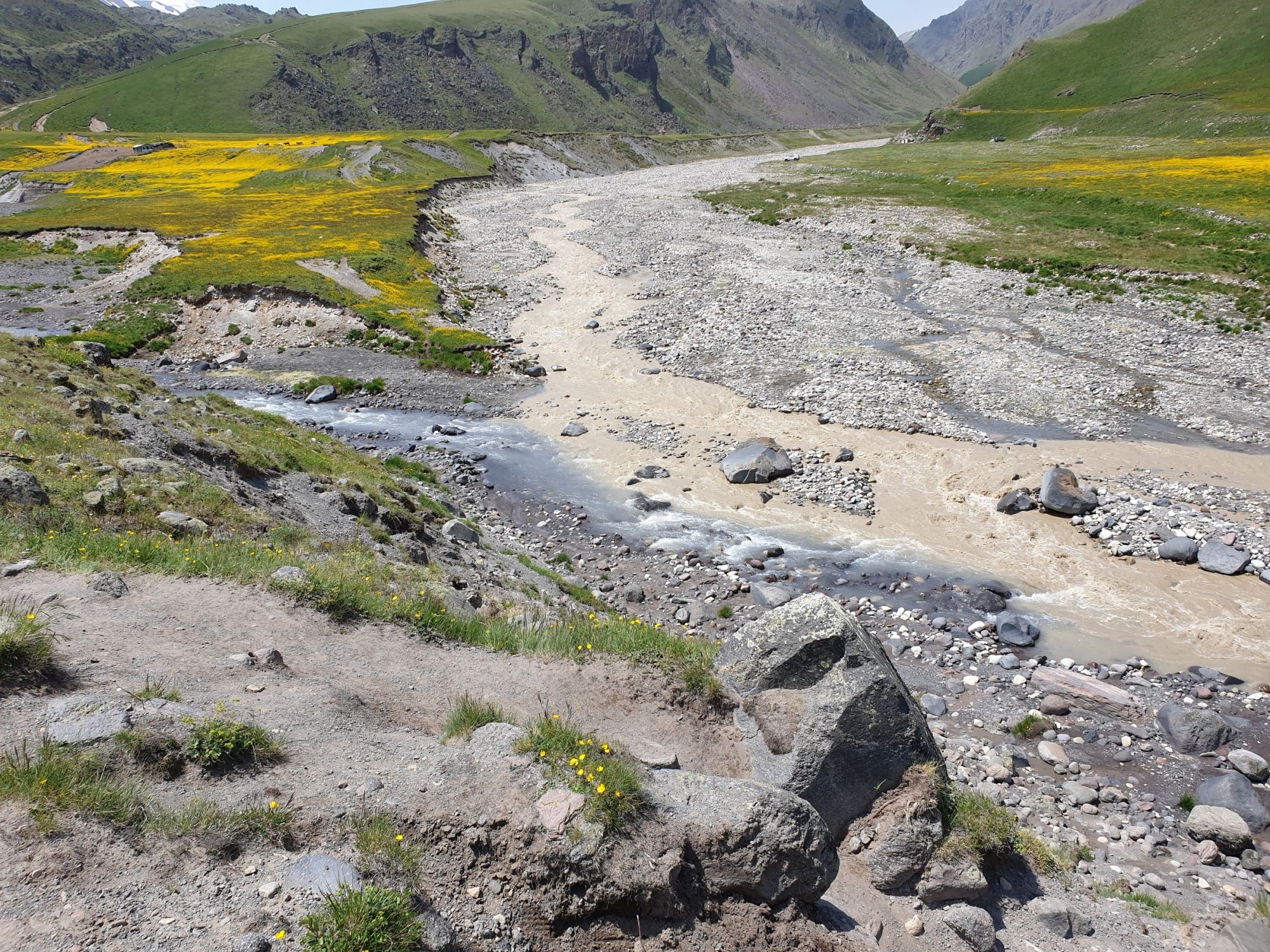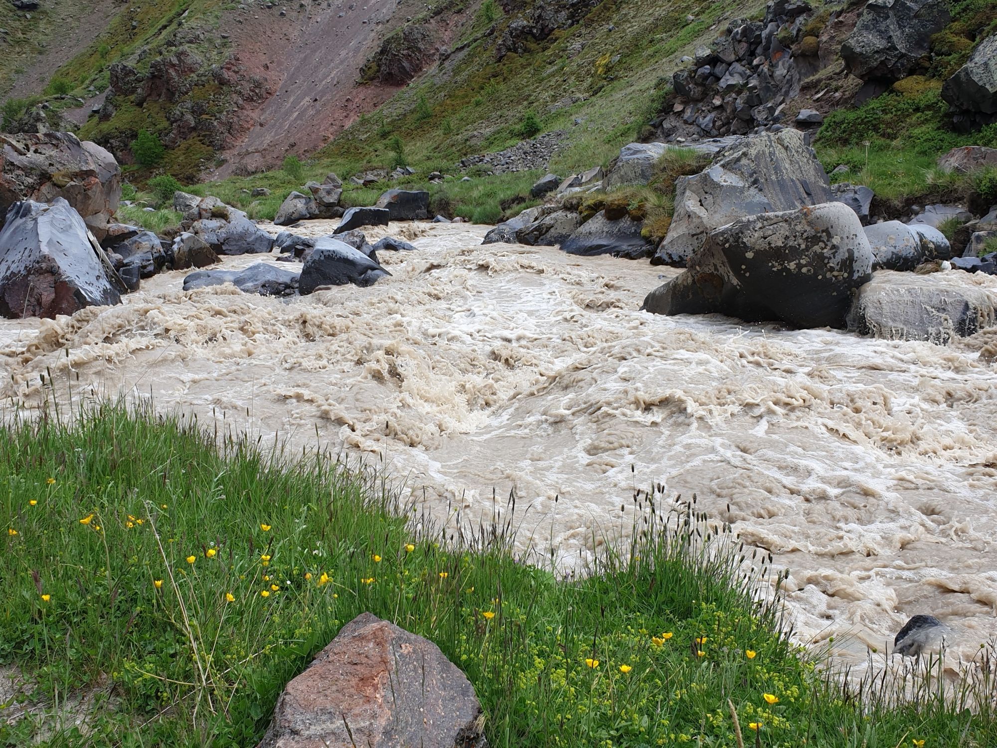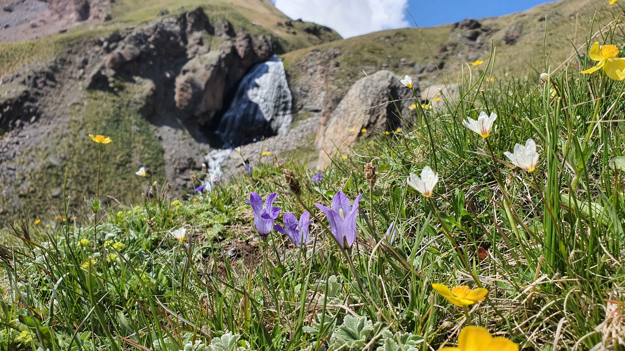 1 июля 2021 А я продолжаю. В этот раз мы никак не могли уехать, не побывав в уже едва ли не легендарном урочище Джилы-су на северных склонах Эльбруса. Кабардино-Балкарском Джилы-су, том самом, куда вот уже лет семь ведет асфальтовая дорога. Про дорогу эту тоже ходит много разговоров: ее называют едва ли не самой красивой на Северном Кавказе. Про самую не скажу, но 72 км петляющей крутыми и не очень серпантинами, то поднимающейся на вершины хребтов, то спускающейся почти на самое дно ущелий дороги - это действительно очень захватывающе. Хотя и не просто для водителя и автомобиля. Особенно учитывая, что по дороге еще и полно больших и мелких каменных обвалов, что случаются здесь постоянно, а дорожное полотно в некоторых местах уже прилично "поплыло". По дороге проезжаешь мимо Долины Нарзанов (сюда не успели погулять, хотя хотелось), поднимаешься на плато Шаджатмаз, где находится обсерватория и т.д. В какой-то момент открывается вид на заснеженные склоны двуглавого исполина Эльбруса и вот уже высота Шаджатмаза в 2100м нум и самого урочища Джилы-су в 2300м нум уже не кажутся чем-то большИм... По дороге немало смотровых, а на склонах цветет куча цветов. Я вот, например, едва сделав десяток шагов в сторону в поисках интересного ракурса, наткнулась на дикую орхидею. Да и вообще, если попытаться сфотографировать все, что хочется по дороге, то до самого урочища можно и не доехать И вот мы на месте. Нас тут же встречают "зубы дракона" - причудливые каменные выступы, которые представляют собой не что иное, как застывшую лаву. Все же Эльбрус - вулкан, хоть и давно спящий (причем последние наблюдения говорят, что скорее всего именно спящий, а не потухший). Буквально в двух шагах и минеральные источники. Один весьма причудливо булькает, выходя из под земли по своему "туннелю". А вон чуть вдалеке и мощный сорокаметровый водопад Султан - это вырывается из каменного плена река Кызыл-кол и обрушивается вниз всей своей мощью... Ну а мы идем вверх, наша цель поляна Эммануэля. Именно здесь расположен альплагерь, из которого начинают восхождения те, кто решается идти на Эльбрус с севера. Ну а главное, это здесь, согласно рассказам и фотографиям, обитает бесчисленное количество перекрикивающихся на все лады сусликов и... цветут лютики. Оказывается, цветение лютиков на Джилы-су - это событие, на которое многие стараются попасть специально. Мы же про это ничего не знали, но нам повезло увидеть это чудо своими глазами и во всей красе. Да собственно вы сейчас и сами все увидите! И да, Эльбрус. Его могучий уходящий в облака силуэт магнетически ведет за собой всю дорогу и раз за разом притягивает камеру фотоаппарата... А вот и первые суслики)) И желтое море... лютиковое море из сотен и тысяч цветов! По середине поляны Эммануэля течет тот самый Кызыл-кол, что пока еще не стеснен каменными стенами. Утром он не особенно бурный, а вот во второй половине для становится весьма полноводным, т.к. берет свое начало в ледниках, чье таяние усиливается под дневными лучами. На реке есть источник нарзана и это самый вкусный нарзан, который я когда либо пробовала. В нем идеальная степень природной газации и ни на йоту привкуса сероводорода. Восхитительный освежающий вкус! И здесь же перекинут "мостик". Мы переходили в районе 12ти дня и вода потихоньку начинала перехлестывать через него. Если смотреть на бурлящ