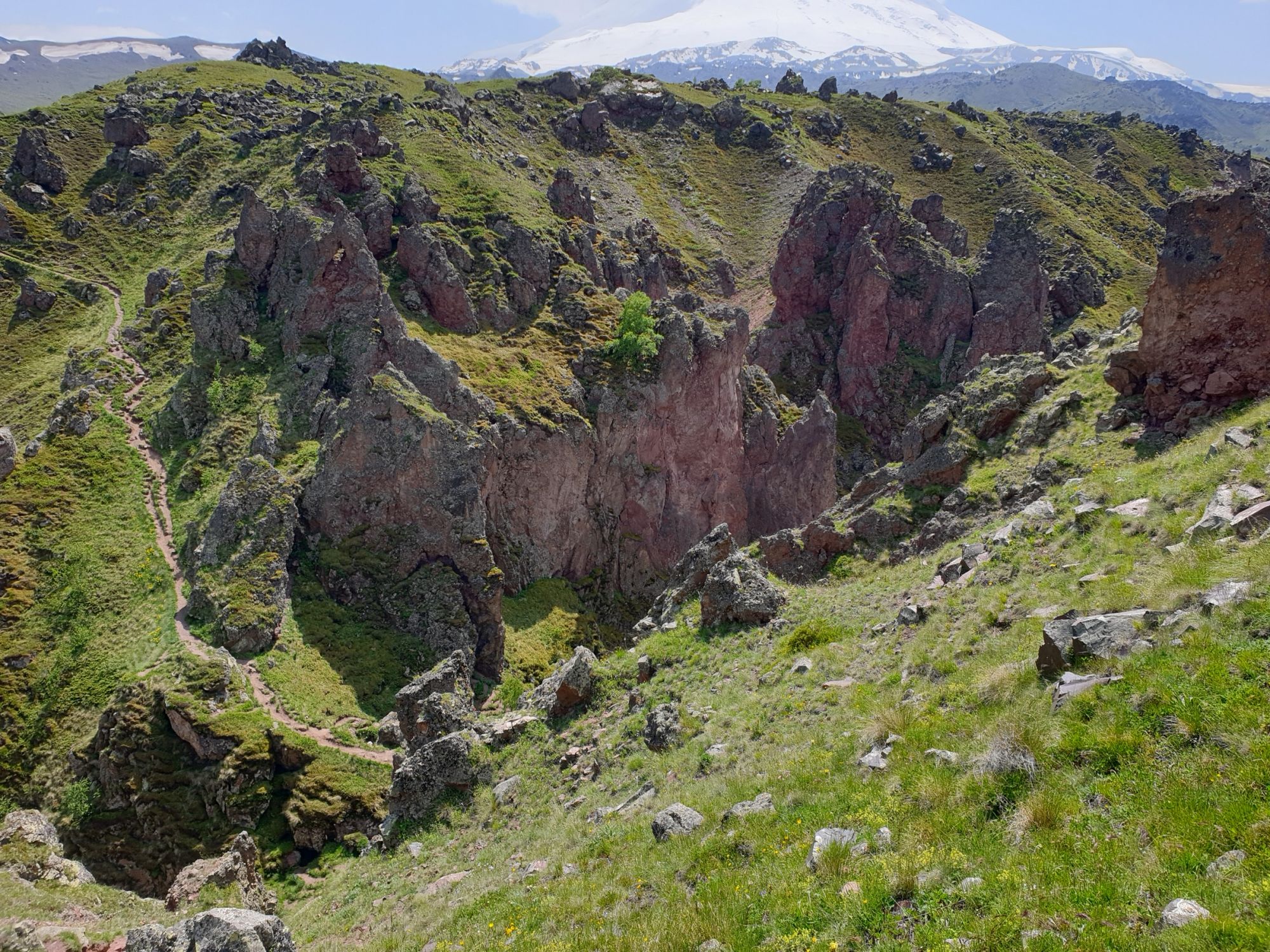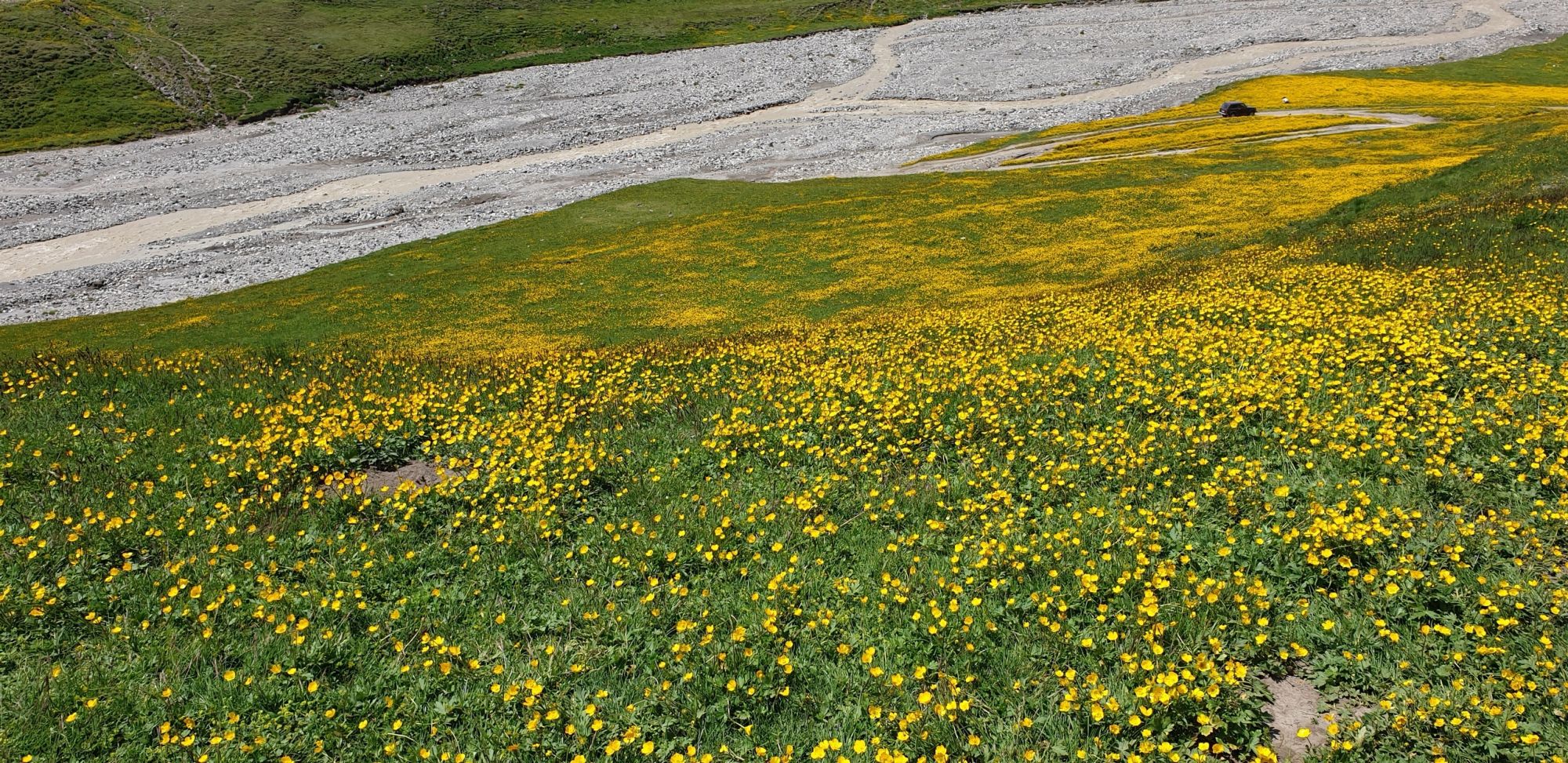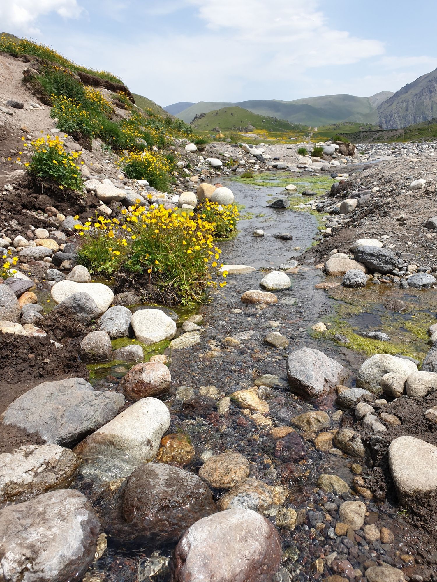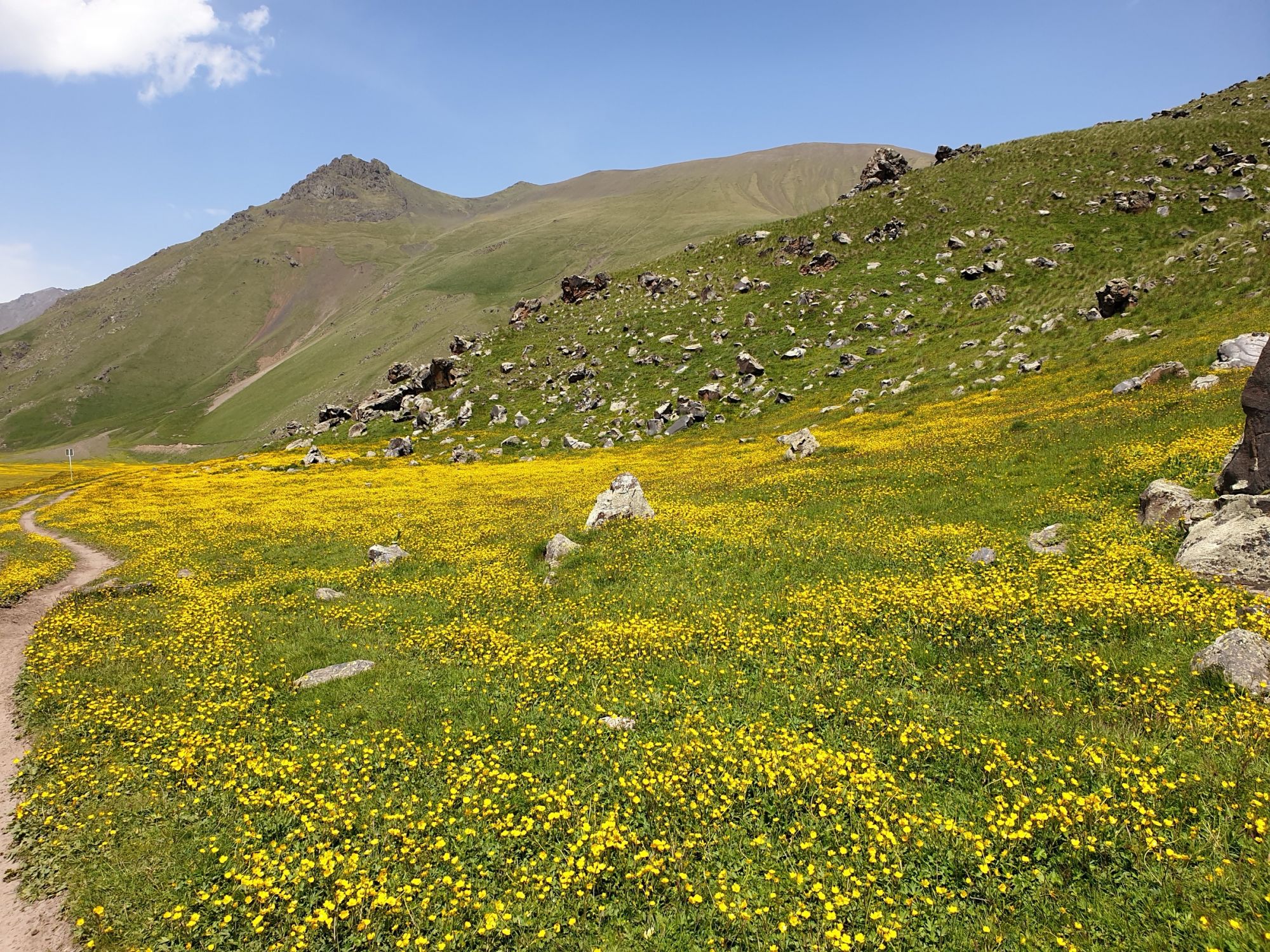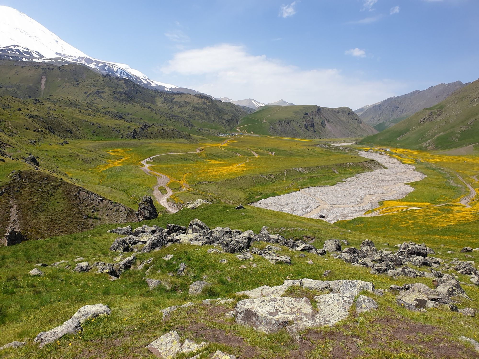 1 июля 2021 А я продолжаю. В этот раз мы никак не могли уехать, не побывав в уже едва ли не легендарном урочище Джилы-су на северных склонах Эльбруса. Кабардино-Балкарском Джилы-су, том самом, куда вот уже лет семь ведет асфальтовая дорога. Про дорогу эту тоже ходит много разговоров: ее называют едва ли не самой красивой на Северном Кавказе. Про самую не скажу, но 72 км петляющей крутыми и не очень серпантинами, то поднимающейся на вершины хребтов, то спускающейся почти на самое дно ущелий дороги - это действительно очень захватывающе. Хотя и не просто для водителя и автомобиля. Особенно учитывая, что по дороге еще и полно больших и мелких каменных обвалов, что случаются здесь постоянно, а дорожное полотно в некоторых местах уже прилично "поплыло". По дороге проезжаешь мимо Долины Нарзанов (сюда не успели погулять, хотя хотелось), поднимаешься на плато Шаджатмаз, где находится обсерватория и т.д. В какой-то момент открывается вид на заснеженные склоны двуглавого исполина Эльбруса и вот уже высота Шаджатмаза в 2100м нум и самого урочища Джилы-су в 2300м нум уже не кажутся чем-то большИм... По дороге немало смотровых, а на склонах цветет куча цветов. Я вот, например, едва сделав десяток шагов в сторону в поисках интересного ракурса, наткнулась на дикую орхидею. Да и вообще, если попытаться сфотографировать все, что хочется по дороге, то до самого урочища можно и не доехать И вот мы на месте. Нас тут же встречают "зубы дракона" - причудливые каменные выступы, которые представляют собой не что иное, как застывшую лаву. Все же Эльбрус - вулкан, хоть и давно спящий (причем последние наблюдения говорят, что скорее всего именно спящий, а не потухший). Буквально в двух шагах и минеральные источники. Один весьма причудливо булькает, выходя из под земли по своему "туннелю". А вон чуть вдалеке и мощный сорокаметровый водопад Султан - это вырывается из каменного плена река Кызыл-кол и обрушивается вниз всей своей мощью... Ну а мы идем вверх, наша цель поляна Эммануэля. Именно здесь расположен альплагерь, из которого начинают восхождения те, кто решается идти на Эльбрус с севера. Ну а главное, это здесь, согласно рассказам и фотографиям, обитает бесчисленное количество перекрикивающихся на все лады сусликов и... цветут лютики. Оказывается, цветение лютиков на Джилы-су - это событие, на которое многие стараются попасть специально. Мы же про это ничего не знали, но нам повезло увидеть это чудо своими глазами и во всей красе. Да собственно вы сейчас и сами все увидите! И да, Эльбрус. Его могучий уходящий в облака силуэт магнетически ведет за собой всю дорогу и раз за разом притягивает камеру фотоаппарата... А вот и первые суслики)) И желтое море... лютиковое море из сотен и тысяч цветов! По середине поляны Эммануэля течет тот самый Кызыл-кол, что пока еще не стеснен каменными стенами. Утром он не особенно бурный, а вот во второй половине для становится весьма полноводным, т.к. берет свое начало в ледниках, чье таяние усиливается под дневными лучами. На реке есть источник нарзана и это самый вкусный нарзан, который я когда либо пробовала. В нем идеальная степень природной газации и ни на йоту привкуса сероводорода. Восхитительный освежающий вкус! И здесь же перекинут "мостик". Мы переходили в районе 12ти дня и вода потихоньку начинала перехлестывать через него. Если смотреть на бурлящ