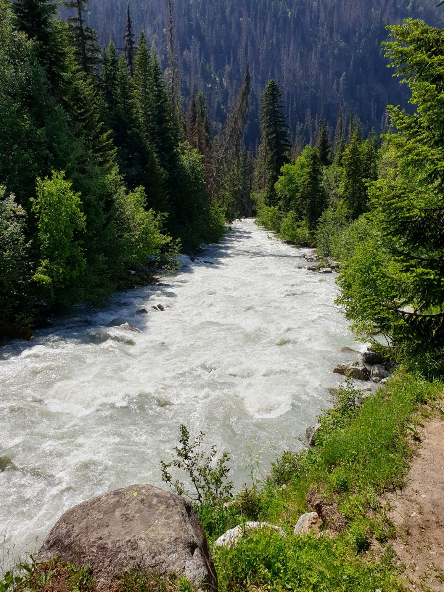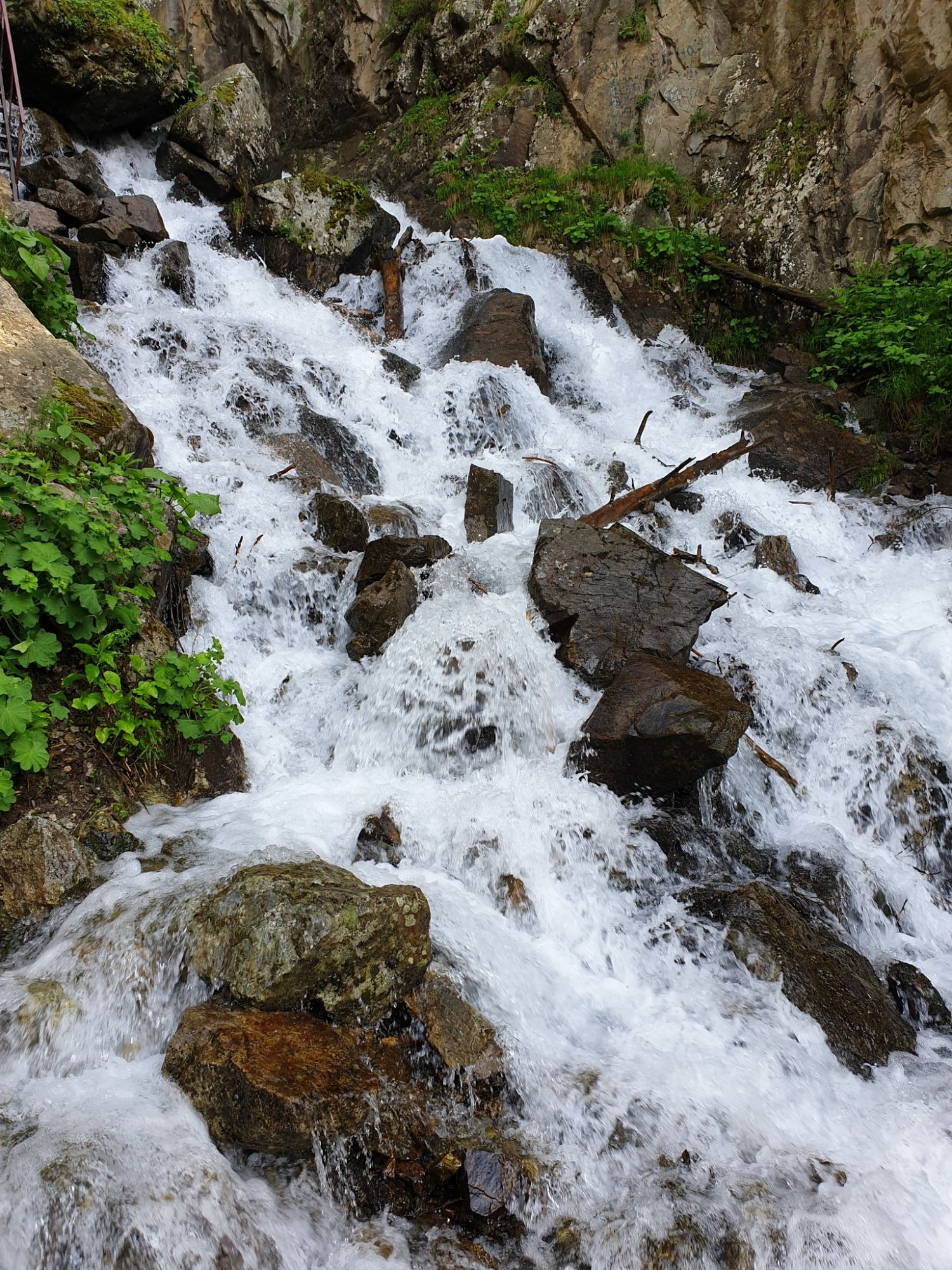 2 июля 2021 Время такое, что на подъемники Домбая уже поздно. И к людям выходить после увиденного не тянет. А поедем-ка... там вот совсем коротенький трек есть, меньше километра и по лесу... (по пихтарнику!!)... Но мы были бы не мы, если бы сразу направились к обозначенной точке. Сначала мы остановились на дороге у огромного камня с надписью H2О (вода, в смысле). Немалое количество желающих пополнить здесь свои запасы воды с местными номерами говорили о том, что все должно быть ок. И действительно, родниковая вода изумительного качества, сохраняется долго и очень хорошо освежает. Дальше по дороге "туда" я приметила небольшой водопад практически на дороге, надо бы и тут остановиться. Река Улу-Муруджу несется с приличного склона к Теберде бурлящим потоком сквозь пихтовый лес, мшистые камни поваленные стволы и одаряет прохладой каждого, кто подойдет к ней на расстояние метра. Знаете, это чем-то напомнило то, как в жаркий день ты открываешь холодильник и на тебя вырывается холодный воздух. Только здесь это мощнее и эффектнее, а в жаркий вечер просто восхитительно освежает. Меня отсюда еле утащили... Ну а дальше уже подъехали к реке Шумка, выше по течению которой есть одноименный водопад, к которому ведет маркированная тропа заповедника длиной чуть меньше километра. Название река оправдывает в полной мере, шумит громко))) И точно так же дышит холодом, если суметь к ней подобраться поближе А еще здесь просто умопомрачительный лес. Все те же пихты вперемешку с другими деревьями, цветы, мшистые валуны... даже не самый пологий подъем здесь проходит практически незаметно, пока ты с открытым ртом крутишь головой во все стороны))) И вот он, водопад. Воды очень много. До самой лучшей обзорной точки мы с детьми не полезли, мокрые большие камни, по "тропе" несется поток. Только муж, вспомнив о своем скалолазном детстве, пролез и снял для нас видео и фото. Но ничего, мы потом таки нашли точку, откуда водопад все таки было видно, хоть и не так близко. Красивый он. И совсем не такой, как Девичьи косы в Терсколе или мутно-коричневый великан Султан в Джилы-су. Мощный, с бело-прозрачной водой, он вырывается из узкого заточения среди скал и обрушивался вниз с 12ти метровой высоты, с лихвой оправдывая название. Спуск прошел весело и незаметно. Солнце уже клонилось к закату и мы еще успевали проехать перевал засветло. Ну а чем этот план закончился, смотрите сообщением выше. Гум-баши, та самая серия 2. В общем, отличный день вышел. С веселым и благополучным завершением (большую часть тучи мы на той смотровой и переждали, так что спускаться вслепую почти не пришлось Завершение далее... irchick2308, Selenia, Гало4ка и 20 других сказали спасибо Поделиться сообщением Ссылка на сообщение