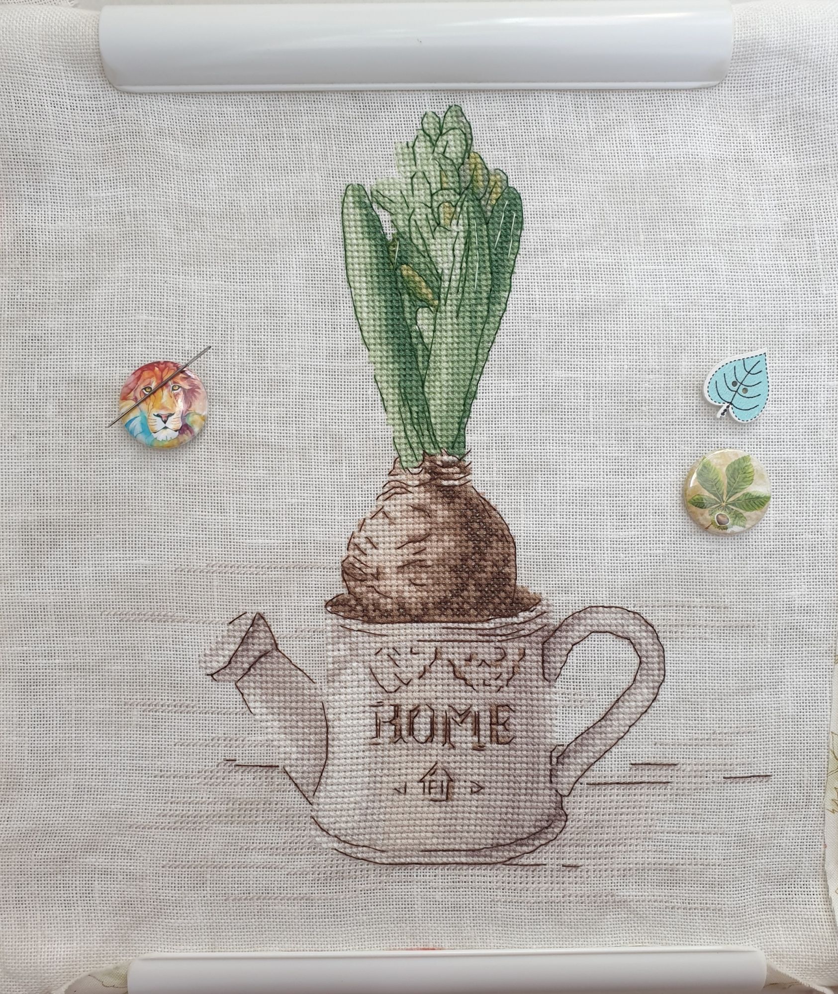 15 июля 2021 Всем привет! Я с отчетом, который следовало написать еще недели две назад))) Спасибо дождю, который сегодня таки сжалился над жителями московского региона - сразу и жить захотелось, и творить, и писать)) Ну так вот. Еще до начала второго витка "истинно летней погоды" мы успели скататься в любимое Абрамцево. То ли погода в тот день выглядела страшно, то ли новый виток ограничений всех распугал, но было очень необычно видеть это многолюдное место почти без людей. Отлично погуляли, надо сказать. И было так необычно ходить по почти ровной поверхности после отпуска А на обратном пути заглянули ненадолго в Радонеж глянуть одним глазком на местное "благоустройство". Про вышивку. С собой в отпуск брала двух девушек: индианку от Ланарте и "Зеленую шляпу" от Миносян. Как это часто бывает в отпуске, было не до вышивки. Однако на показ таки набралось)) Ланарт, Индианка - продолжение было: стало: с появлением косы и, что важнее, намеков на одежду и силуэт с их отличающимися от пока вышитого цветами, картинка стала приобретать гармонию, стала уходить резкость на лице. Это очень вдохновляет и подстегивает. Мне определенно нравится и процесс, и то что выходит. Теперь перья слева дошить и можно переходить к нижней части с волком и одеждой. Перед грозой Я.Миносян (зеленая шляпа) - продолжение В машине дошила волосы, а потом взялась за пиджак. На большее пока не хватило, едва-едва начала разбрасывать зелень вокруг барышни, что уже в следующем показе будет. А силуэт мне нравится. Очень. Рада, что взялась за нее. было: стало: Mill Hill, Краб - продолжение обнаружила, что давно его не показывала, хотя время от времени таки беру в руки. Пора бы заканчивать с ним что-ли Было: Стало: Инна Пешкова, Гиацинт - финиш! Лежал этот товарищ долго-долго в почти законченном виде и чего-то ждал. Видимо вдохновения. Или еще чего. Но таки дождался. Встречайте несезонный финиш))) Как мне в свое время этот дизайн понравился за свою относительную простоту и при этом невероятный стиль в сдержанной гамме, так он и не разочаровал до самого конца. Очень нравится. Хотя подозреваю, что именно эта сдержанная гамма в чайнике и могла стать причиной столь долгой паузы. Теперь же цветочек уже в багетке, где для него нашелся такой же простой, естественный и стильный багет. Жду с нетерпением его домой))) Из того, что просится в отчет, покажу еще маячок для ножниц, что купила взамен потерянных. Сегодня между делом соорудила из подручного материала))) Я настолько привыкла, что все ножницы у меня с маячками, что очень непривычно было пользоваться и пару раз уже пыталась потерять их, уронив между сиденьем и ручкой дивана)) На этом все на сегодня. Всем комфортной погоды без стихийных бедствий и хорошего лета, чем бы вы ни были заняты Пока Lusha73, Juliay, Аринесса и 29 других сказали спасибо Поделиться сообщением Ссылка на сообщение