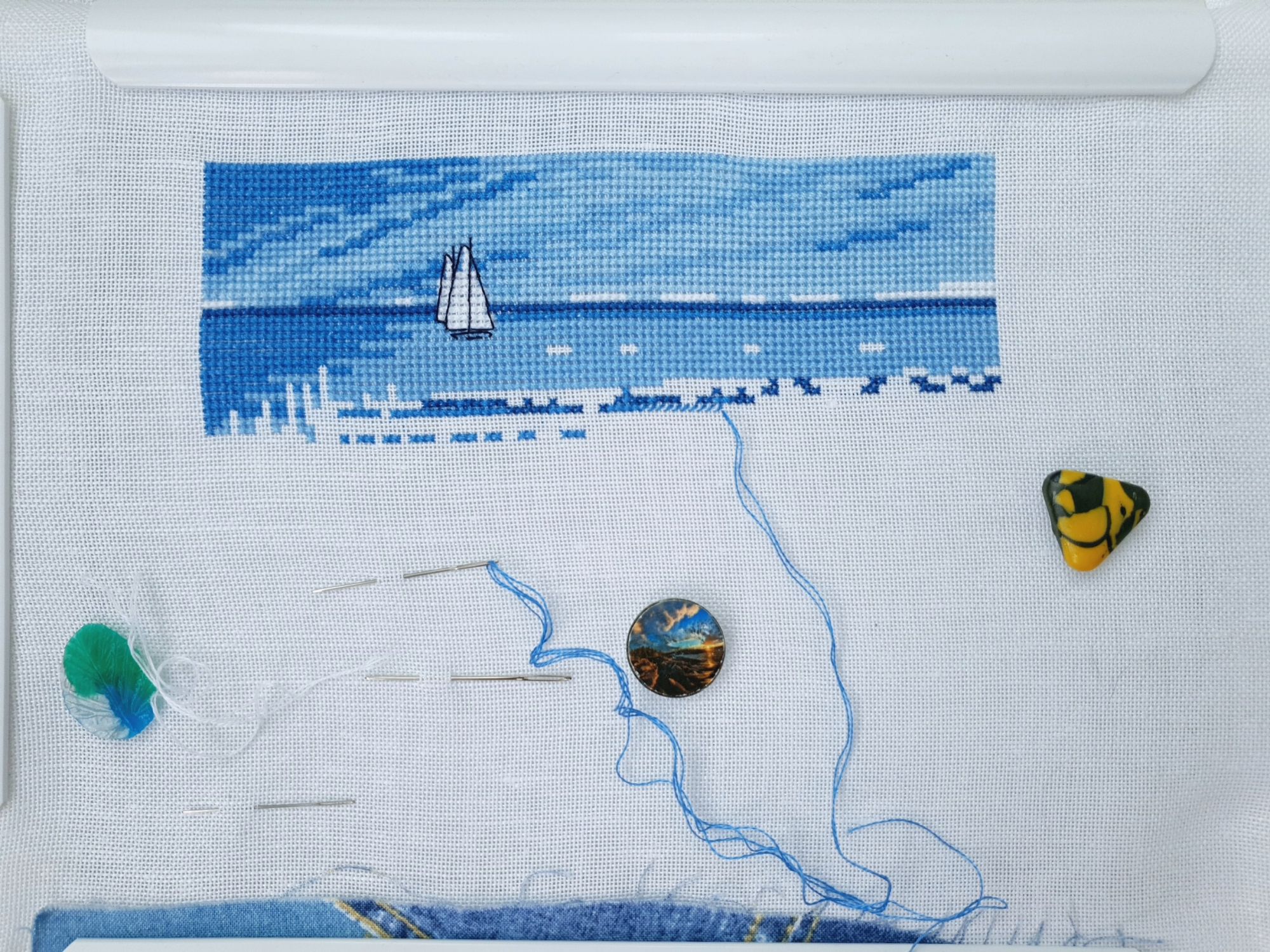 12 августа 2021 Всем привет! Вот уже скоро неделя, как я вернулась из отпуска... города, городки и деревни, реки и озера, море и чайки, сосны, солнце и ветер, - все было в этом путешествии. Отсняты сотни и тысячи кадров, удивительные места позволили увидеть себя в своей спокойной и бесконечной красоте, целый мир поселился в моем сердце... Рассказывать ли о нем?... Не знаю. Это было путешествие отчасти "внутрь себя" и готова ли я вынести все это на всеобщее обозрение, я пока не поняла. Ведь порой даже слово, сказанное кем-то без какого либо злого умысла, сильно ранит. А я из тех, кто не умеет не обращать внимания.... Сейчас, готовясь к отчету, пересматривала фотографии из поездки - эмоции до сих пор такие сильные, что захлестывают с головой, а на глаза наворачиваются слезы. Пока навыбирала немного. Самые мои любимые фотографии, наверное... А отчет-то на самом деле я собиралась писать вышвальный. Ибо у меня ничто так не способствует приведению мыслей в порядок, как крестики. И хотя за время всего отпуска я сделала от силы 100-200 крестиков, за месяц все равно накопилось кое-что к показу. Во-первых, это два финиша! Ольга Ланкевич, Гортензия - финиш! закончила перед отъездом и толком не успела полюбоваться. А оно, на самом деле, есть чем. Выглядит здорово: нежно, акварельно, но при этом в меру ярко. Цвета замечательные, особенно в листве. Но еще большее восхищение вызвал процесс: все на своем месте, все логично и удобно. Берешь и шьешь. И хотя здесь крест в 1 и 2 нити, полукрест, несколько цветов бэка - все это настолько естественно укладывается в процесс, что не возникает ни малейшей мысли про "потерпеть ради результата", а скорее удивление: "ведь можно же сделать вот так кайфово!" В общем, пою оду цветам Ольги Ланкевич и согреваюсь мыслью, что в загашнике есть еще. Не говоря уже про список желаний))) ПС: цвет канвы так и не поддался корректной цветопередаче. Она голубая, не бледная и не яркая и без ухода в филетовую сторону. Совиный лес, Баба Яга - финиш! Эту красотку закончила только вчера. Почему-то всю дорогу домой думала о том, что хочу шить ее вотпрямщас Таким желаниям порой очень полезно потакать и вот еще один процесс закончен. Собственно мне оставалось вышить орнаменты по периметру. И тут-то меня и подстерегала засада: оказалось, что мне трудно морально и немного скучно шить повторяющиеся элементы. И на эти вот деревья по периметру у меня ушло едва ли не больше времени, чем на весь рисунок внутри рамки. Что ж, теперь буду знать за собой такую особенность и стараться выбирать дизайны с ее учетом. А пока просто фотографии офигенного дизайна! Люблю здесь и кайфую от каждого элемента! Теперь немного о продолжениях и начинаниях. Овен, Ладога - продолжение Очень красивый дизайн. Прямо очень! Зелень, сосны, прозрачный воздух - я прямо чувствую его на коже вместе с ароматом смолы... Цвета восхитительные и очень естественные. При таких эмоциях от дизайна я даже готова бодаться с пестроватой местами (для меня) овеновской схемой и мириться с пнкашными нитками. То, что я вижу на канве, очень вдохновляет, хотя и не ассоциируется у меня с Ладогой (все мне кажется, что для Ладоги бедновато) Permin, Лодки - продолжение Единственное, что я смогла немного шить в отпуске. Наверное, море не отпускало))) А поэтому к небу из предыдущего показа добавились лодки и существенная часть моря. Да и ассоциации нем
