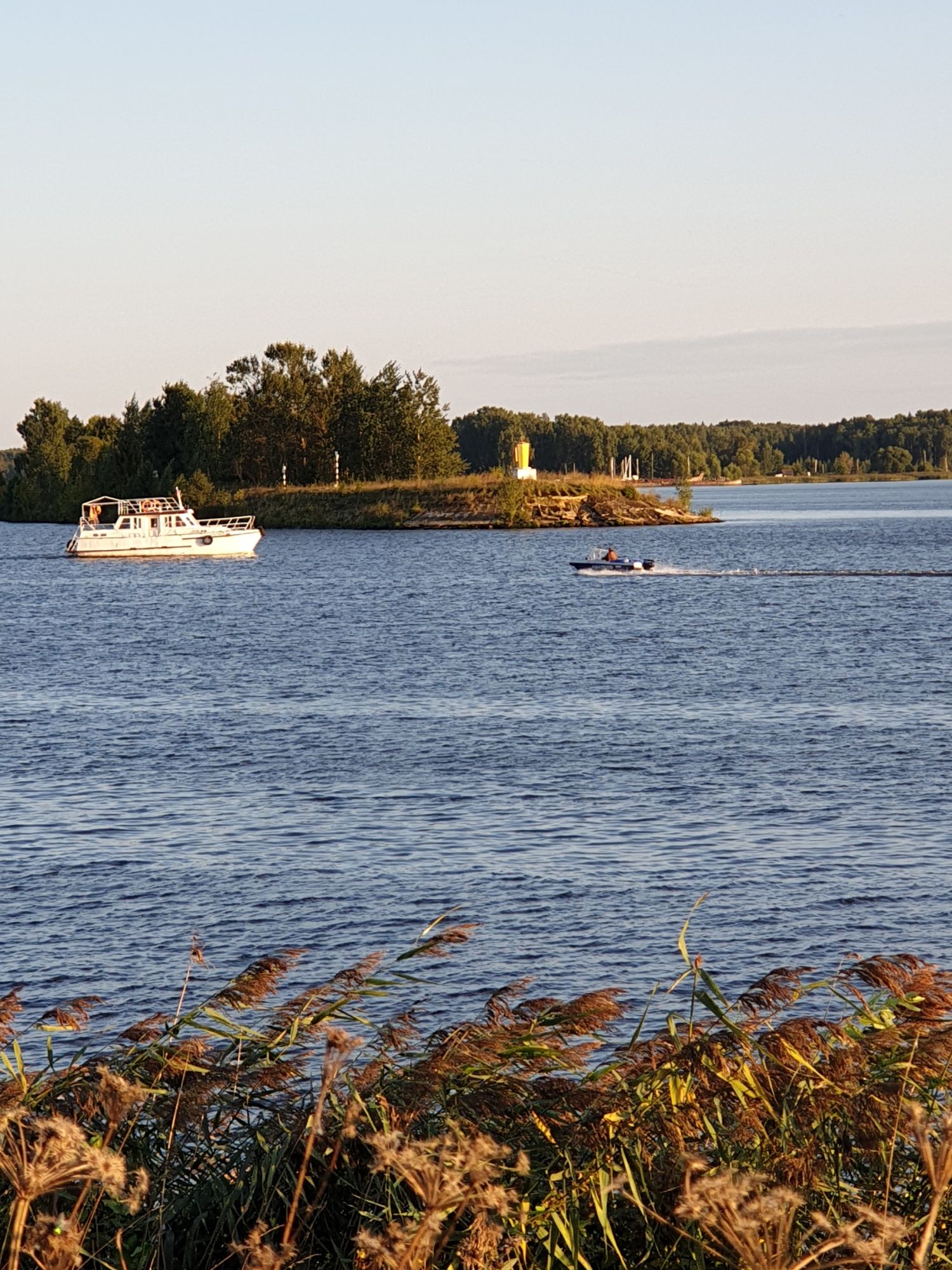 28 сентября 2021 Что-то я зачастила) Пока на эмоциях от выставки и встреч хочется писать, попробую рассказать про самые интересные поездки, которые случились летом и про которые я еще не рассказывала. Начну с последней августовской субботы, которая подарила нам пусть и небольшую, но очень душевную поездку к... маяку. А точнее на север области, где находится единственный действующий маяк Московской области. Вообще в Дубне сходятся Волга и канал им.Москвы, здесь же расположено Иваньковское водохранилище, которое до сих пор в народе часто именуют Московским морем. ГЭС, шлюз канала, разный уровень воды, молы и естественные выступы берега, острова - все это создает непростые условия для навигации. А помимо бесчисленных лодок рыбаков и небольших яхт и корабликов, здесь еще и огромные баржи ходят, и туристические теплоходы. Поэтому берега и акватория просто усыпаны разными навигационными знаками и огнями, стоит только захотеть их увидеть)) А самой известной парой является Большой волжский маяк (на территории Московской обл) и Малый волжский маяк, что уже в Тверской области (здесь как раз граница). Они работают в паре, образуя створ, по которому ориентируются при входе из водохранилища в аванпорт канала им. Москвы. А еще здесь установлен второй в мире по высоте фигуры памятник Ленину. Раньше напротив стояла такая же масштабная фигура Сталина, но сейчас ее убрали. Вот примерно с этого места и началась наша прогулка. Сначала по дамбе, разделяющей озеро Лебяжье от канала по живописным местам, усыпанным яблоками и прочими дарами природы... Яблоки многие ооочень вкусные))) С берегов озера порой открывается вид на маяк. А вот мы и дошли до него. Высота 25 метров, кирпичное сооружение на бетонном основании, оштукатуренное, в стиле советского конструктивизма. Раньше была линза Френеля. сейчас современное оборудование в фонарном помещении + светящаяся неоновая линия на боку (на фотографиях ее частично видно). Работает в период навигации в темное время суток. А рядом паромная переправа через канал. Выглядит не очень современно, но активно используется, т.к. является самым быстрым способом попасть на тот берег. Обратно к машине возвращались уже вдоль берега канала, наблюдая за корабликами, баржами и рыбаками) Так как время еще позволяло, решили съездить на противоположный берег "к Ленину". Путь пролегал в том числе по плотине ГЭС: Рядом оставили машину и пошли пешком вдоль берега. Начиналось "золотое время", которое я так люблю - это когда солнце клонится к горизонту и раскрашивает все в золотые оттенки А вот и товарищ Ленин. Чем он занят, пусть каждый решает в меру своей фантазии))) Но фигура действительно впечатляет. А потом мы гуляли по косе (или молу?), разделяющей аванпорт и ГЭС. Виды восхитительные! Здесь помимо прочего нашли испытательный полигон "Альтернативная энергетика". Т.к. я немного читала про это (особенно про разные виды ветряков), то было интересно. Все рассмотрели, изучили, обсудили)) С оконечности косы виден и Малый волжский маяк. Здесь высота 6.5 метров, тоже фонарь и тоже неоновая линия, но с этого берега не рассмотреть, по крайней мере в контровом свете. Ну и прочие навигационные огни и знаки вместе в с пейзажными зарисовками)) - последние два фото тоже навигационная пара, видите фонарь в середине треугольника?)) А задний знак вообще замаскировался 