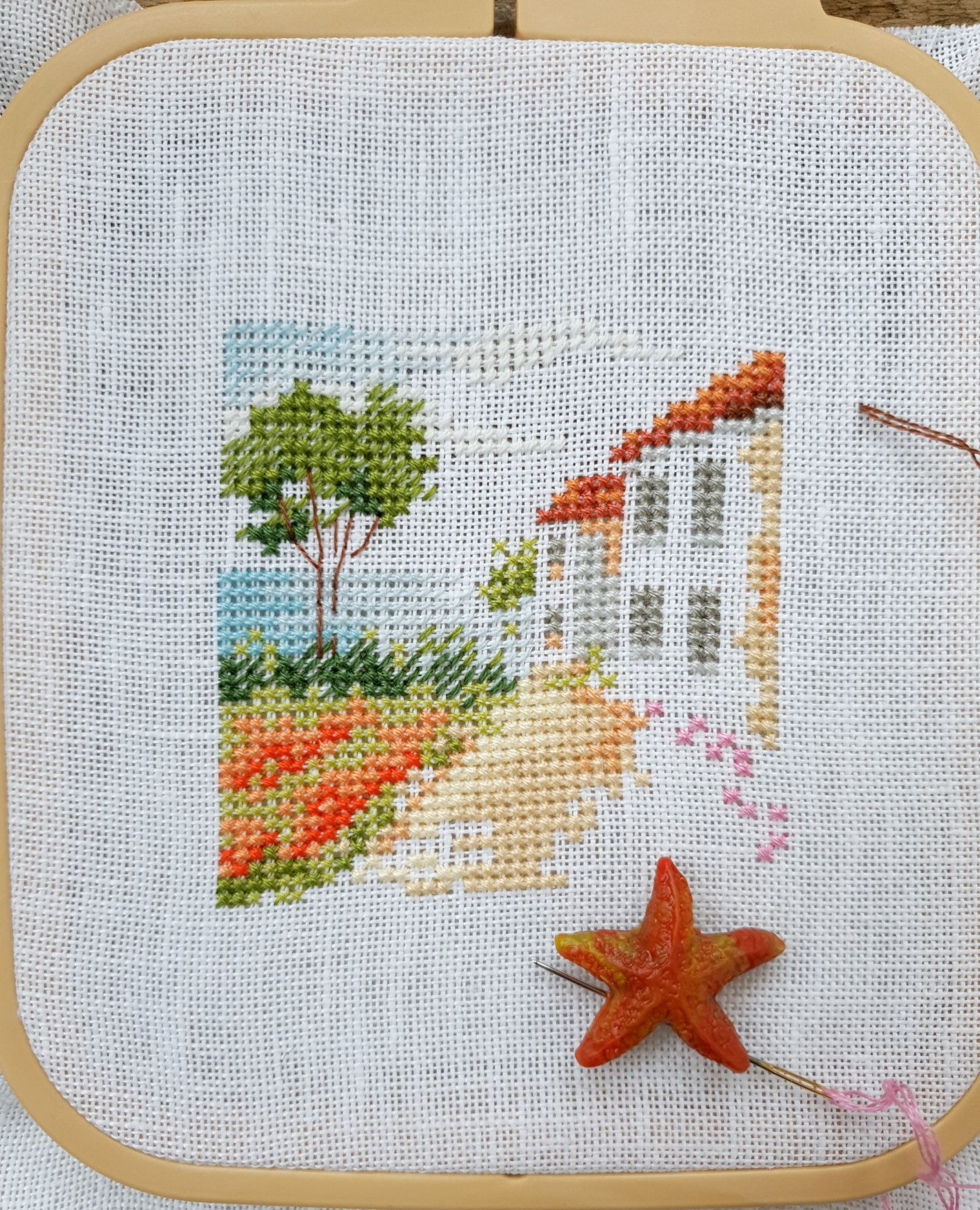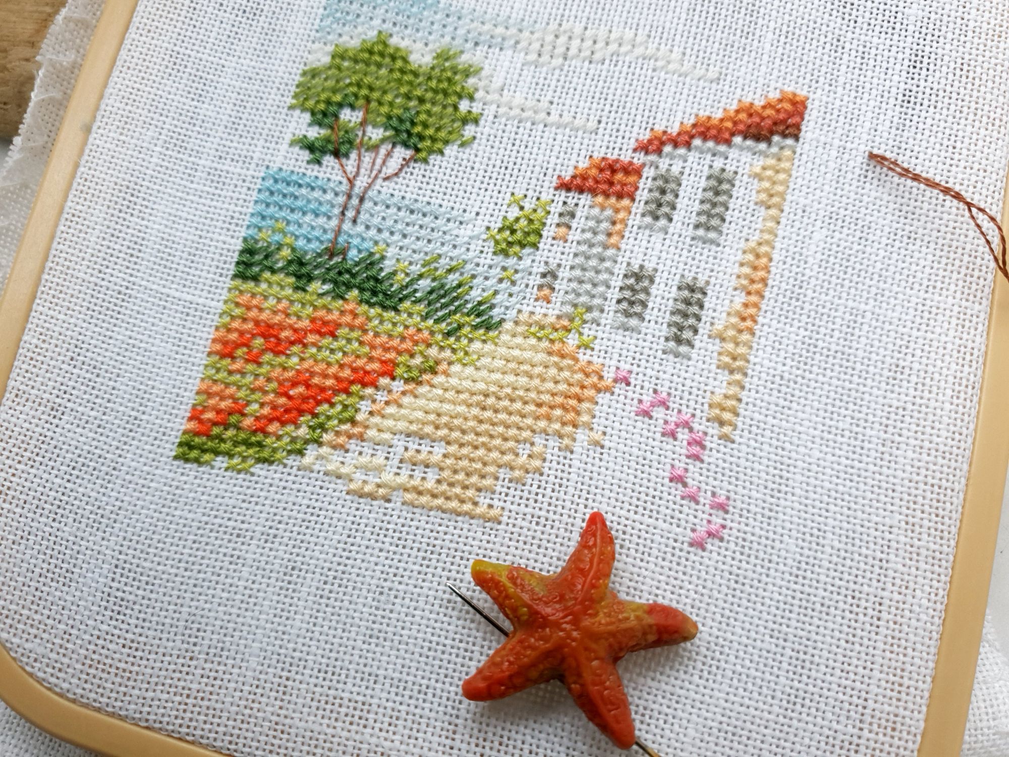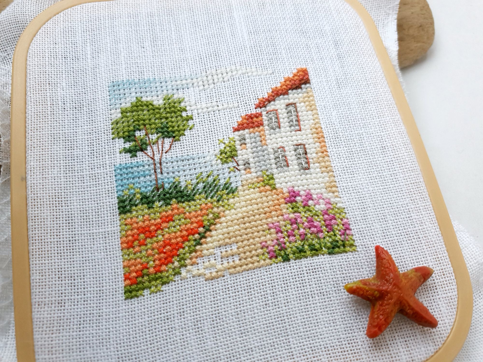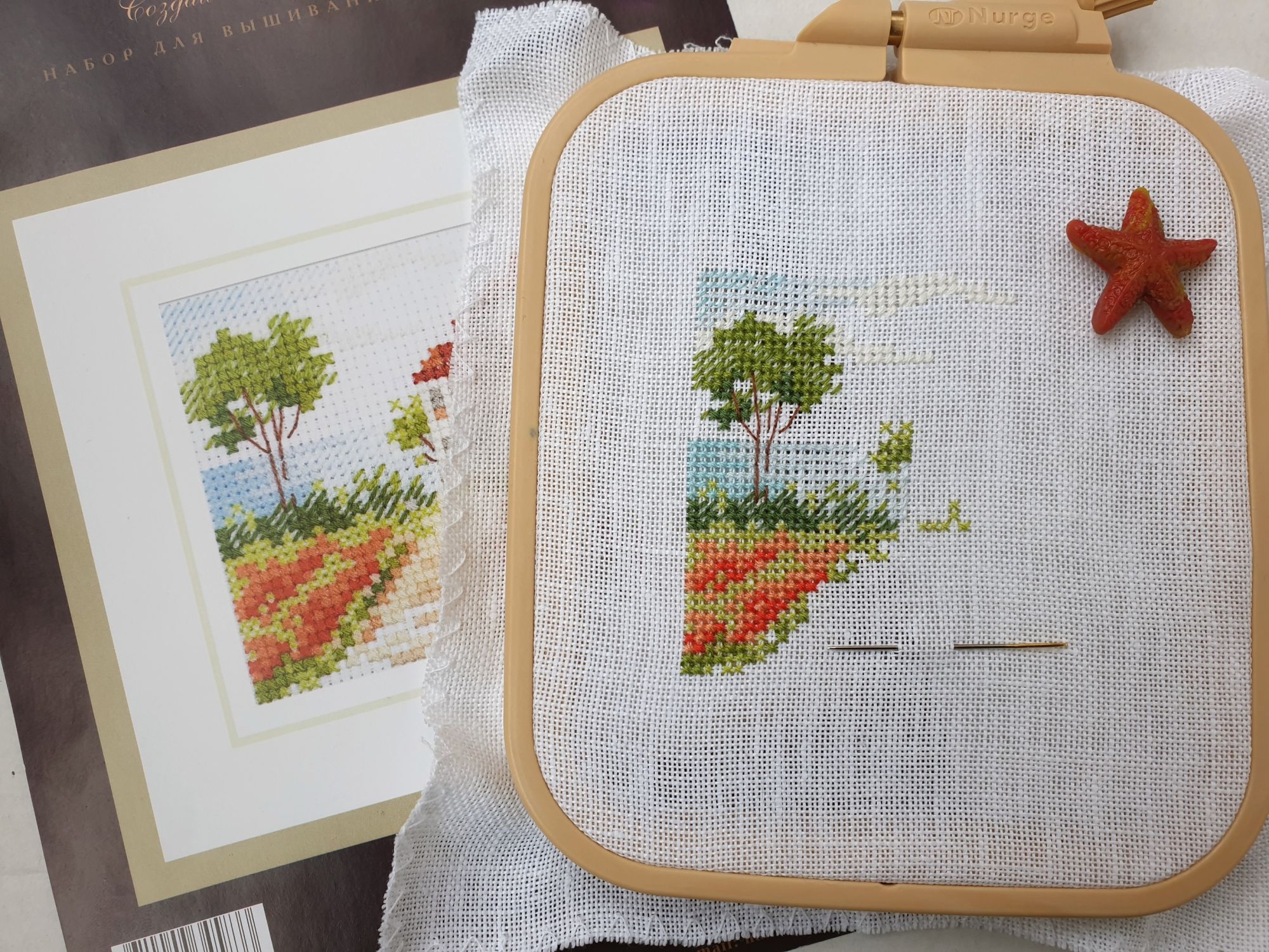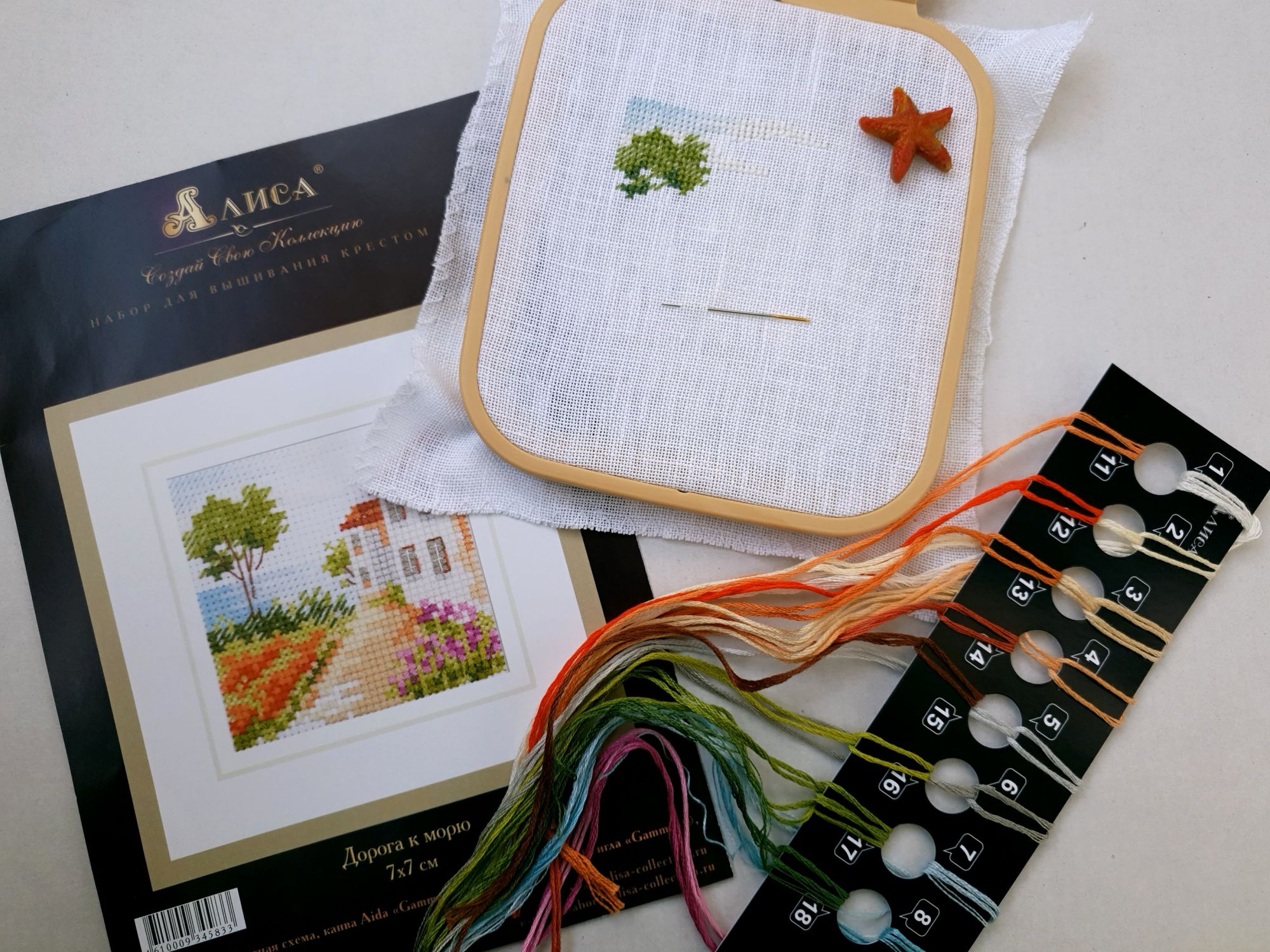2 ноября 2021 Всем привет! Я с вышивальным отчетом. Сегодня будет два старта и два финиша, что вместе составит... 3 процесса! Вот такая вот математика Ну и еще немного чего-нибудь интересного))) Алиса, Дорога к морю арт. 0-198 - старт и финиш! Вот и пришло время очередной летней миниатюры от Алисы. Возможно одной из самых желанных в серии, которую я сознательно оставляла на потом. Стремительно начавшись, так же быстро она и вышилась, сделав перерыв только на те дни болезни, когда вышивать я не могла вовсе. Очень нравится здесь дерево. И фиолетовые цветы в нижнем правом углу, и красные оттенки, которые использованы для других цветов. В общем, смотрите (основу, как и раньше заменила на белый белфаст): А еще это не просто мини финиш, это финиш всей серии! Я, как выяснилось, совсем не любитель серий в том смысле, что мне скучно шить похожие дизайны подряд. Поэтому и тут шилось исключительно по велению сердца целых два года. Собрала в кучку, полюбовалась...красиво, однако! Неужели, все мое?!))) Пора думать над тем, что бы со всем этим миниатюрным сокровищем сотворить Совиный лес, Кикимора - финиш! Оставалась у меня в этом процессе рамочка. А рамочка, она почти как серии - из одинаковых элементов состоит. Только тут не прервешься на месяц-другой, чтоб отдохнуть. Точнее прервешься, но так бы я ее еще год дошивала))) В общем, абсолютно повторяющиеся элементы в большом количестве - не мое совершенно. Зато Совиный лес как процесс я люблю беззаветно. Поэтому, слегка абстрагировавшись от того, что я шью, и сосредоточившись на кайфе от каждого крестика, готова представить вам мою дамочку во всей красе. Ох и позитивная особа! Просто образец счастливого пофигизма А уж насколько хороша в этом дизайне всевозможная живность! Сегодня город утонул в молочном тумане, который так и не рассеялся за весь день, поэтому совместное фото двух очаровательных представительниц прекрасного пола в вариации Совиного леса и моем исполнении я сделаю немного позже и обязательно покажу. Очень рада, что они обе таки оказались в копилке моих вышитых работ))) Dimensions, черный печальный пес - продолжение Не совсем продолжение, скорее начало. Но гайка уже есть: спасибо от души Татусе за подарок к празднику в виде замены гайки. Этот старенький дизайн мы выловили с дочкой в этом году в магазинчике в Ессентуках, он еще в старой комплектации (хоть и китайской), с нормальной не глянцевой схемой, что прямо праздник для глаз и маркеров )) А еще он такой трогательный, этот пес... И да, я похоже извращенка, но мне нравится шить темным и черным по черной канве, я прямо кайфую (а вот белое по белому тяжело). Пока имеем так: Н.Нагорная, Маяк (этот) - старт! На фоне угрозы категории маяков на конкурсе, подруги практически вменили мне в вину, что я давно не шила маяков. "Надо ж репутацию вышивающего маякоманьяка поддерживать! И не только коллекционируя модели!" - сказали они мне. Надо так надо, за стартом у меня дело не станет))) Этот маяк от Надежды Нагорной проходит у меня под кодовым названием "Кильдинский". Немного похож он на этот северный маяк, на который я мечтаю когда-нибудь попасть, хоть и не тривиально это. А еще у меня ночник есть в виде модели Кильдинского маяка. Но я вам это все потом сфотографирую и покажу, как готово будет. А пока начало. Соскучилась я таки по маякам в вышивке... С процессами на этом все. Но не все с вышивками. Т