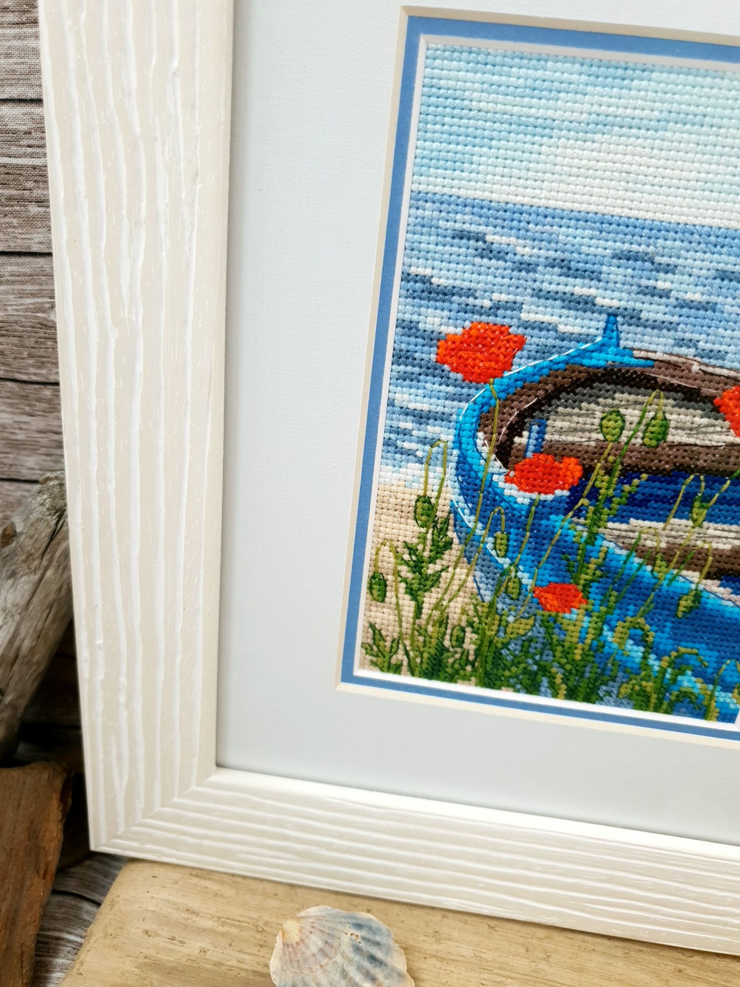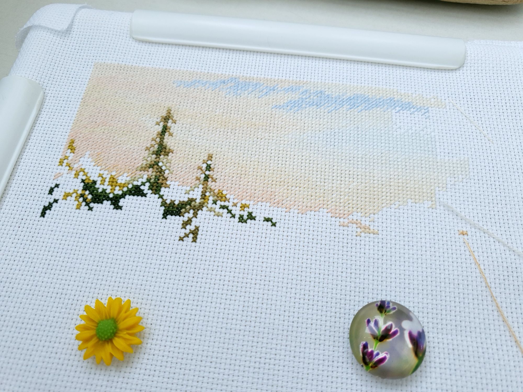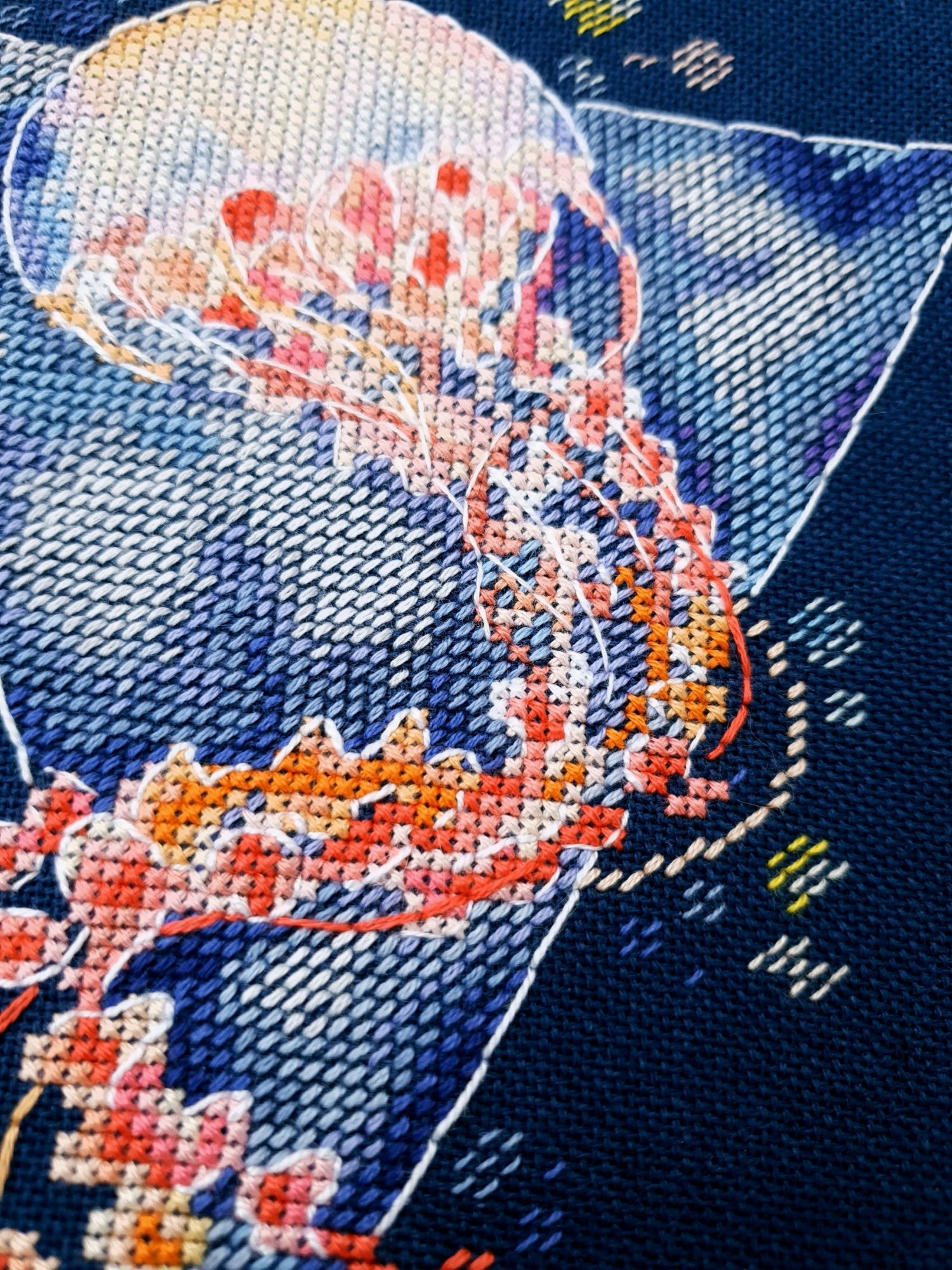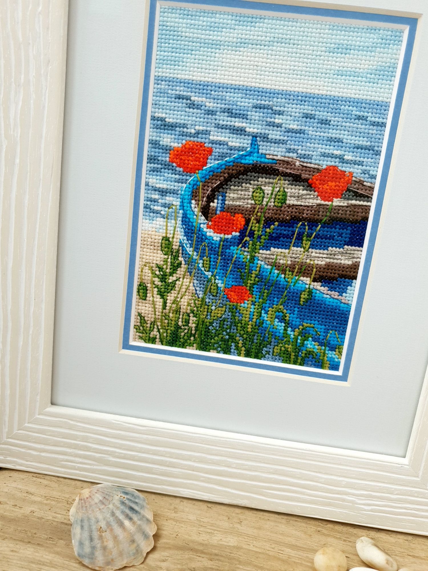 29 марта 2022 Привет! Вот уже пару дней хожу с думой, что показать в этом отчете. То ли вывести в люди и задокументировать много начатых в разное время процессов, то ли еще их взаперти подержать и немного подтянуть статистику в гаечке. В общем, я пока так и не нашла для себя ответ на этот вопрос, буду решать по ходу написания отчета А начну с того, ради чего этот отчет и затевался. Во-первых, я сфотографировала часть оформленных работ. Точнее две. Те, что привычно оформились в "Багет Идея" у Ирины Михно. Посыл был один - легкость и весенне-летнее настроение. Светлое оформление и стиль "деревяшка" - это для меня уже практически само собой Изабель Вотье, Песчанка. Из книги "Загадочный океан Изабель Вотье" Она прелестна. И сразу вспоминается отлив на Белом море в прошлом году... Деревяшка-реквизит на фото, кстати, оттуда И РТО, Лодка с маками из серии "Со вкусом соли...". Вышита в прошлом году. В оформленном виде чистый восторг - из рук выпускать не хочется. И если вам вдруг показалось, что багет одинаковый, то вам не показалось. Почти)) Ширина все же разная. И да, это не специально задумано, так получилось Дальше к процессам. В продолжение отчета предыдущего финиш! Анастасия Еремеева (Кравцова, Овечкины забавы). Изящный дуэт. Медуза - финиш! По процессу - все же ранние работы Анастасии (а медуза из довольно ранних) требуют изрядного терпения из-за частой смены цветов и небольших групп крестиков одним цветом. Но я очень рада, что наконец дошла до финиша - медуза прекрасна, она завораживает. Хотя и не очень поддается фотографированию из-за контраста ниток и основы. И мой изящный дуэт вместе. Когда фотографировала, все пыталась выбрать, кто из них мне нравится больше. Не смогла. В паре они дополняют и подчеркивают друг друга. А теперь поехали по новеньким. Посмотрим, на сколько меня хватит RTO M881 Где цветёт Иван-чай (этот) - новый процесс! Он не шел у меня из головы с самого анонса и осенней выставки. И муж на НГ мне его подарил. К тому моменту я его мысленно, мне кажется, уже вышивала не первый день, а потому и начало фактическое откладывать было как-то неправильно))) Собственно первая фотография сделана в первых числах января)) А вообще этот набор напоминает мне детство. Деревня, ночной выезд на рыбалку, и на рассвете ты уже в тишине и одиночестве сидишь на берегу озера, наблюдая за поплавком. Над озером стелется летний предрассветный туман, тишину изредка нарушает крик птицы или плеск рыбки в камышах, а небо постепенно светлеет и меняет свои оттенки, меняя заодно цвета и оттенки окружающего пейзажа. Это ощущение одновременно мимолетности и гармонии рассветного часа, это уверенное движение жизни, за которым ты можешь лишь наблюдать, завершающееся появлением солнечного диска над горизонтом, - я пронесла его через всю жизнь и оно во много определило меня. И пусть кто-то (да, Ася @Каори?), говорит, что таких красок не бывает, для меня бывают. Как минимум в моей памяти, что в данном случае самое важное. Про процесс пока многого сказать не могу: любимое РТО, любимые dmc и опять же любимый полукрест в небе. Обозначение полукреста теми же символами, что и креста, но на розовом фоне - для меня мега удобно. Уже пару раз воспользовалась - не пришлось доп.обрыв нити делать. В общем, прошу любить и жаловать, очень "мой" процесс. Овен 1453 Норвежское море (этот) - новый процесс! Еще один пейзаж. Тот слу