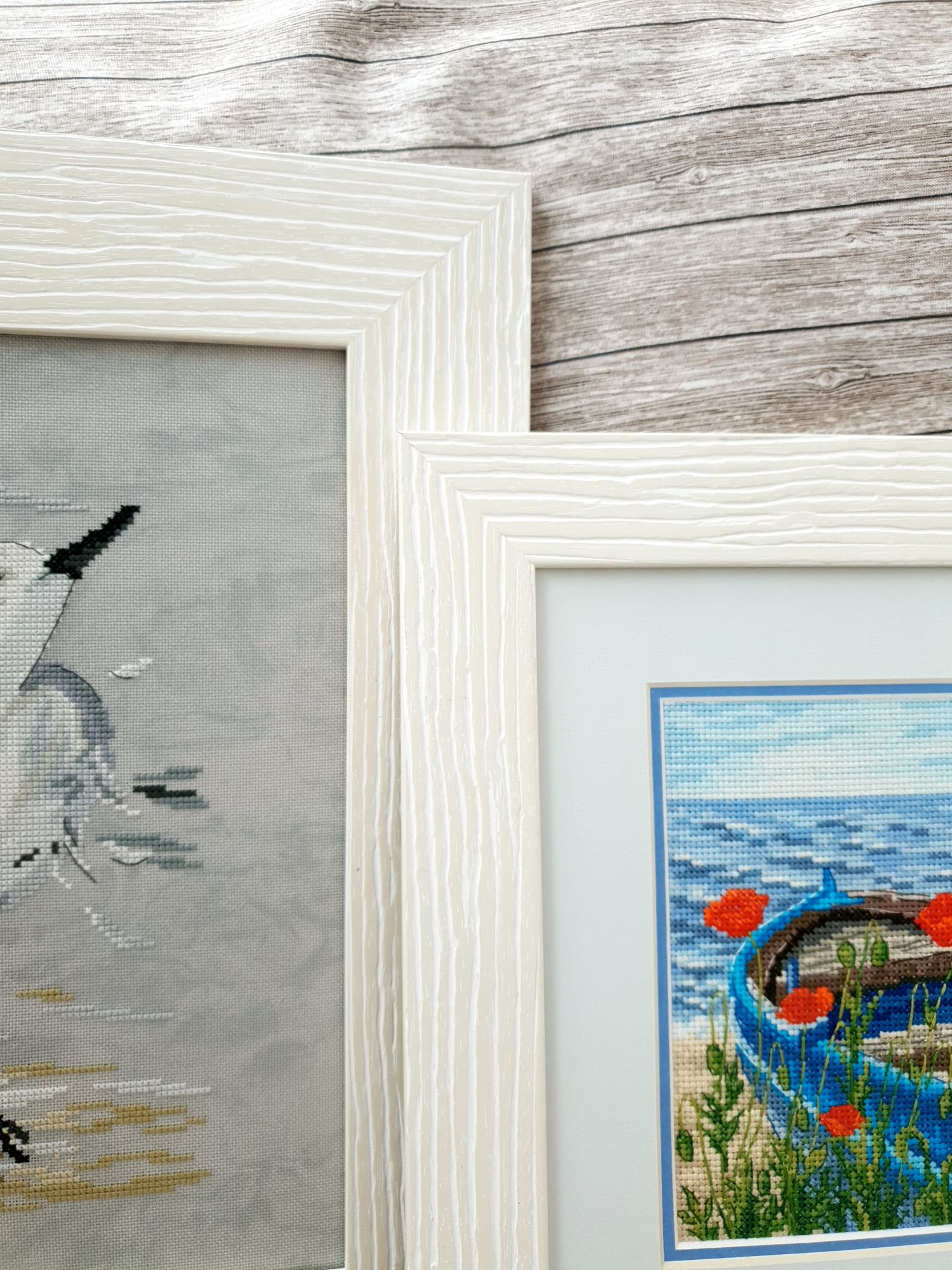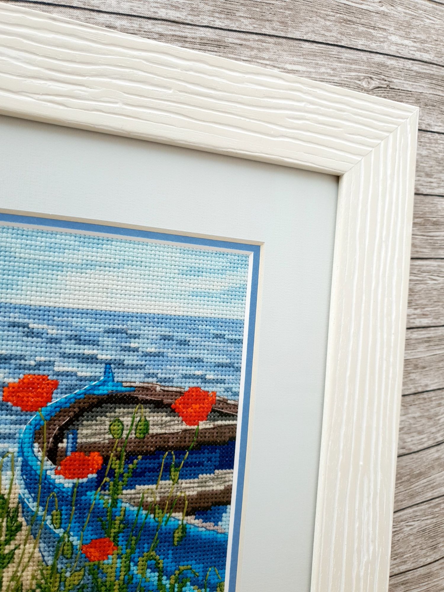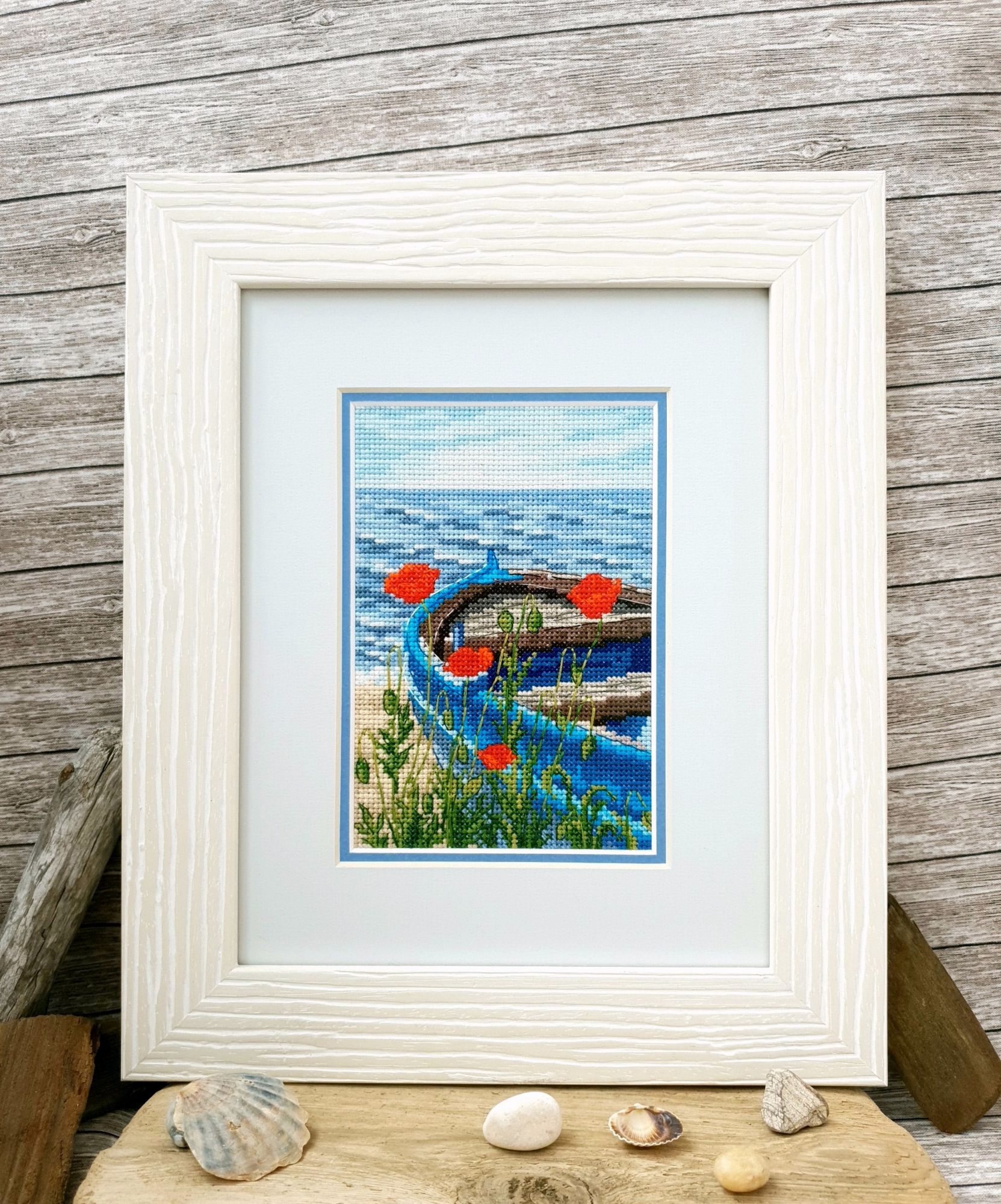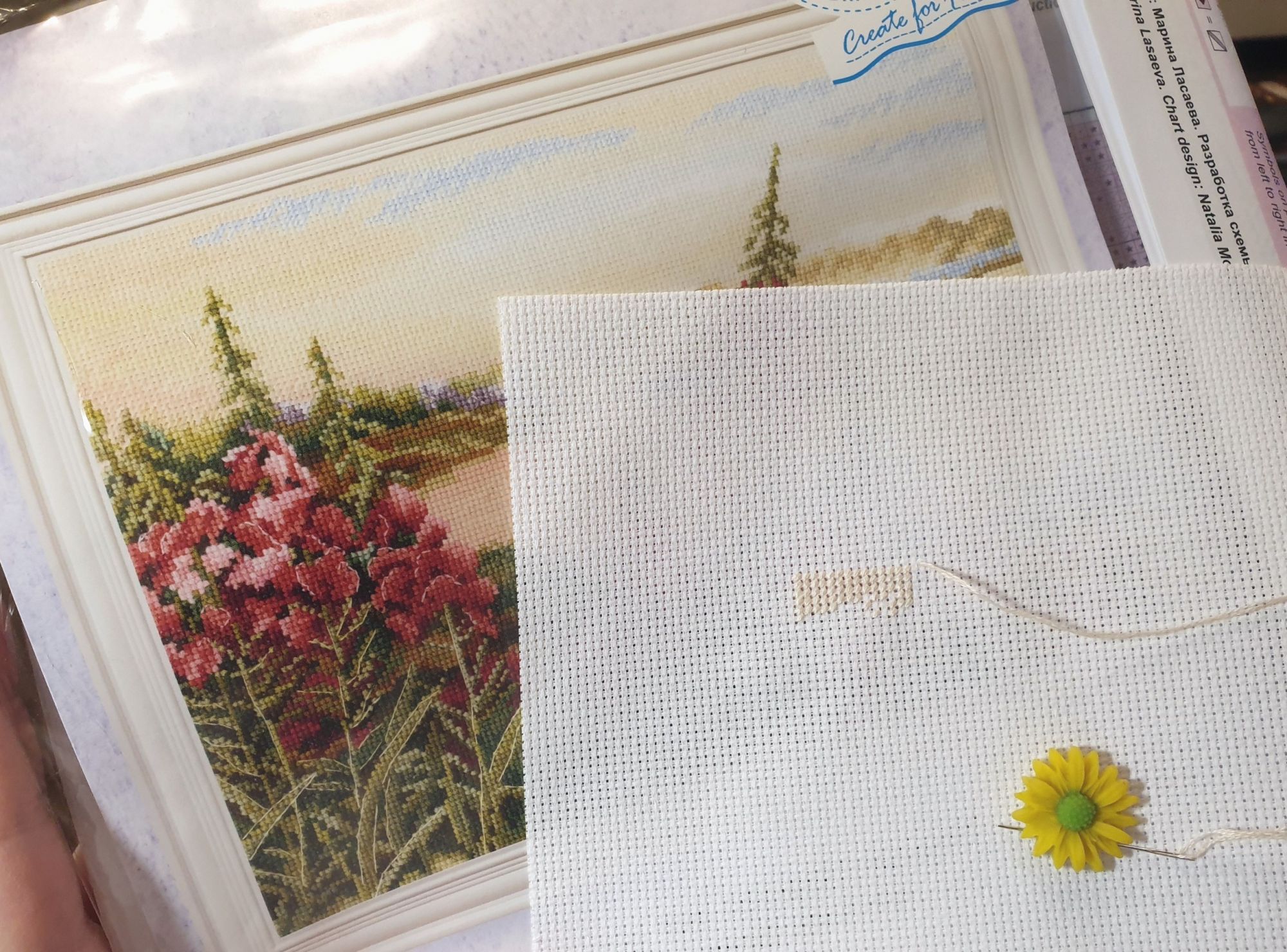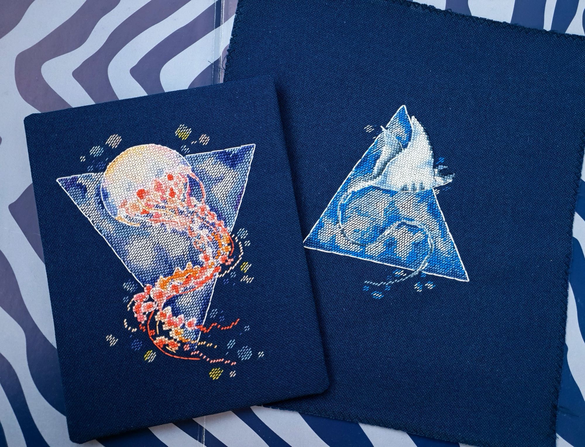 29 марта 2022 Привет! Вот уже пару дней хожу с думой, что показать в этом отчете. То ли вывести в люди и задокументировать много начатых в разное время процессов, то ли еще их взаперти подержать и немного подтянуть статистику в гаечке. В общем, я пока так и не нашла для себя ответ на этот вопрос, буду решать по ходу написания отчета А начну с того, ради чего этот отчет и затевался. Во-первых, я сфотографировала часть оформленных работ. Точнее две. Те, что привычно оформились в "Багет Идея" у Ирины Михно. Посыл был один - легкость и весенне-летнее настроение. Светлое оформление и стиль "деревяшка" - это для меня уже практически само собой Изабель Вотье, Песчанка. Из книги "Загадочный океан Изабель Вотье" Она прелестна. И сразу вспоминается отлив на Белом море в прошлом году... Деревяшка-реквизит на фото, кстати, оттуда И РТО, Лодка с маками из серии "Со вкусом соли...". Вышита в прошлом году. В оформленном виде чистый восторг - из рук выпускать не хочется. И если вам вдруг показалось, что багет одинаковый, то вам не показалось. Почти)) Ширина все же разная. И да, это не специально задумано, так получилось Дальше к процессам. В продолжение отчета предыдущего финиш! Анастасия Еремеева (Кравцова, Овечкины забавы). Изящный дуэт. Медуза - финиш! По процессу - все же ранние работы Анастасии (а медуза из довольно ранних) требуют изрядного терпения из-за частой смены цветов и небольших групп крестиков одним цветом. Но я очень рада, что наконец дошла до финиша - медуза прекрасна, она завораживает. Хотя и не очень поддается фотографированию из-за контраста ниток и основы. И мой изящный дуэт вместе. Когда фотографировала, все пыталась выбрать, кто из них мне нравится больше. Не смогла. В паре они дополняют и подчеркивают друг друга. А теперь поехали по новеньким. Посмотрим, на сколько меня хватит RTO M881 Где цветёт Иван-чай (этот) - новый процесс! Он не шел у меня из головы с самого анонса и осенней выставки. И муж на НГ мне его подарил. К тому моменту я его мысленно, мне кажется, уже вышивала не первый день, а потому и начало фактическое откладывать было как-то неправильно))) Собственно первая фотография сделана в первых числах января)) А вообще этот набор напоминает мне детство. Деревня, ночной выезд на рыбалку, и на рассвете ты уже в тишине и одиночестве сидишь на берегу озера, наблюдая за поплавком. Над озером стелется летний предрассветный туман, тишину изредка нарушает крик птицы или плеск рыбки в камышах, а небо постепенно светлеет и меняет свои оттенки, меняя заодно цвета и оттенки окружающего пейзажа. Это ощущение одновременно мимолетности и гармонии рассветного часа, это уверенное движение жизни, за которым ты можешь лишь наблюдать, завершающееся появлением солнечного диска над горизонтом, - я пронесла его через всю жизнь и оно во много определило меня. И пусть кто-то (да, Ася @Каори?), говорит, что таких красок не бывает, для меня бывают. Как минимум в моей памяти, что в данном случае самое важное. Про процесс пока многого сказать не могу: любимое РТО, любимые dmc и опять же любимый полукрест в небе. Обозначение полукреста теми же символами, что и креста, но на розовом фоне - для меня мега удобно. Уже пару раз воспользовалась - не пришлось доп.обрыв нити делать. В общем, прошу любить и жаловать, очень "мой" процесс. Овен 1453 Норвежское море (этот) - новый процесс! Еще один пейзаж. Тот слу