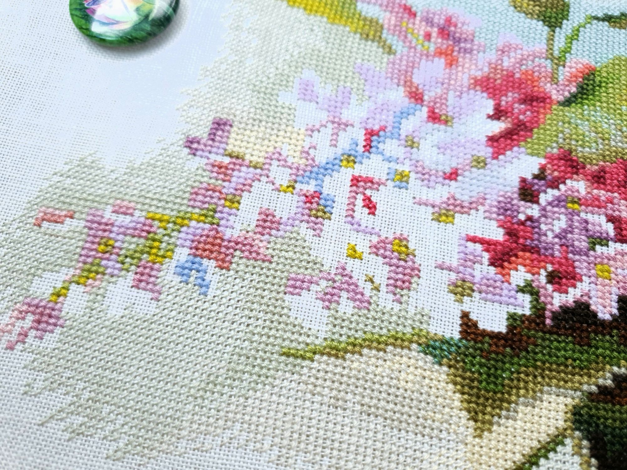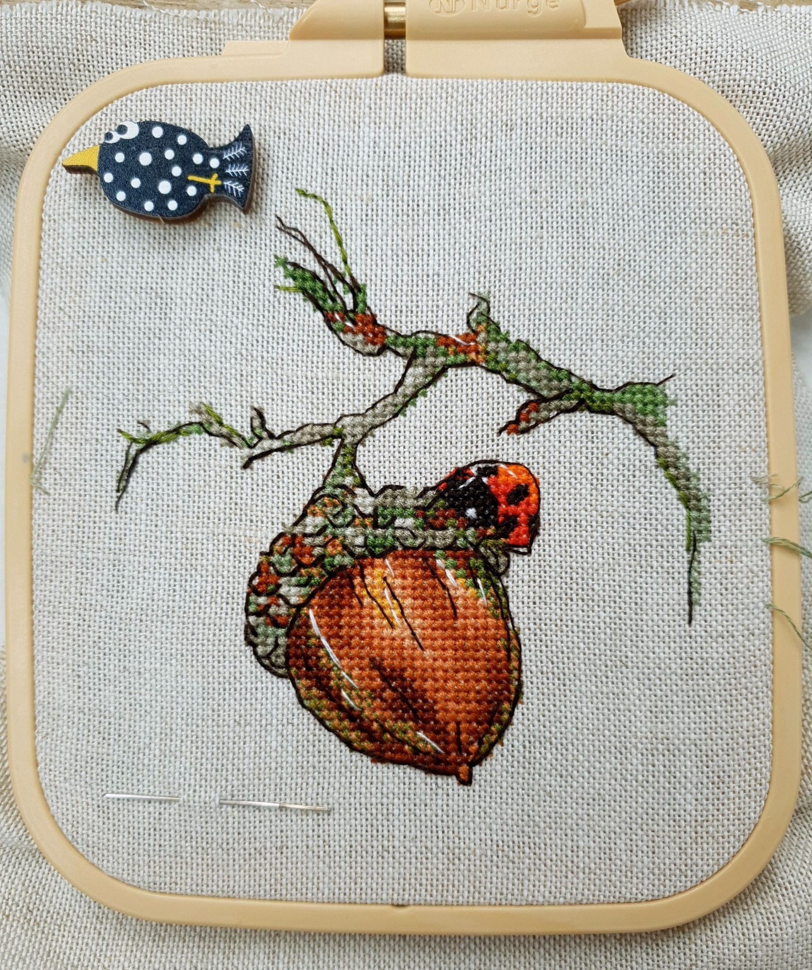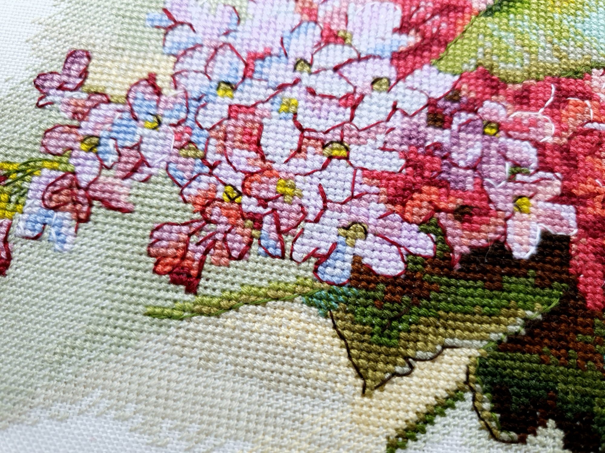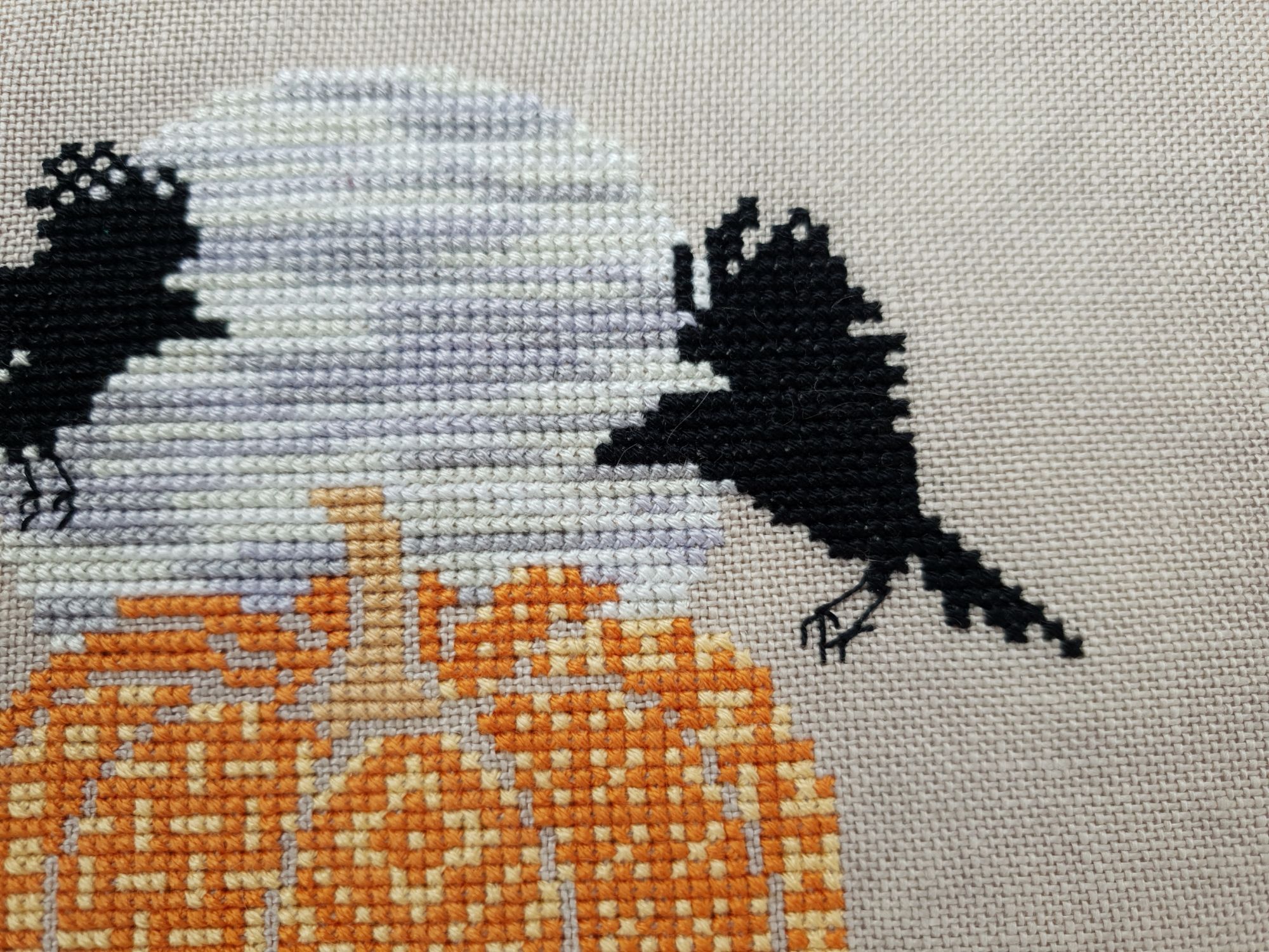 31 мая 2022 Всем привет! Две недели с последнего отчета: ой-ей Но у меня есть оправдание: я упорно шила сирень. И *внимание, спойлер* я ее дошила!!! Но сначала о лирике. А как иначе, если последний день весны уже практически докатился до своего финала? Вот уж поистине в этом году особенная весна. В самых разных смыслах. Если про погоду, то я тут попыталась вспомнить, сколько дней эта весна позволила выйти на улицу без куртки. Пальцев одной руки хватит пересчитать. Но вот она завершается, плохая ли, хорошая ли, и ничего в ней уже не поменять. Ни поступков, ни эмоций, ни погоды. А потому хочется сказать ей спасибо за то, что она была. И мы были с ней. И разбросать по страничкам памяти трогательные зеленые открытки. Местами мокрые, но очень и очень желанные. В этом году как никогда хотелось ловить каждый вздох весенней природы. А теперь про вышивку. Универсальное средство от всех душевных переживаний, особенно, когда у тебя столько процессов и совершенно не проблема начать новый в любой момент Екатерина Тарасова (Rin-Stitch), Герань (эта) - новый процесс и финиш! Видимо иногда звезды сходятся особенным образом. У меня было весьма дурное настроение в тот день, когда я увидела его! И улыбнулась. Ухмыльнулась скорее, конечно. Может даже немного недобро Но главное, что путь выхода к свету вдруг стал ясен))) Схема куплена в тот же час и начата, не откладывая в долгий ящик. Сейчас я зову этого товарища "мой тотем" и горячо его люблю. Даже иногда с собой в кармане таскаю. Это помимо того, что получила массу восторга от процесса. Вот наблюдала подобные эмоции у других при отшиве этой серии, но понять не могла. И даже выбрать себе что-то пыталась, чтоб попробовать на собственной шкуре. Теперь вот попробовала. Понимаю и разделяю, хоть словами вряд ли смогу объяснить)))) Алиса Окнеас, Воронье - финиш! *Татуся, добавь, пожалуйста, фото в гайку, а то ты мне ее в прошлый раз сразу зеленой прикрутила: спасибо за веру в меня и стимул Дошила. Удовольствие невероятное. Хочу еще что-нибудь подобное при случае)) Третий ворон мне особенно нравится, хотя они все прекрасны. О замене орнамента на меланж в луне ни капельки не жалею, выбором основы более чем довольна. Полное удовлетворение от процесса. Пока только с финальной фотосессией идей никаких, но это я рано или поздно исправлю)) Ну и собственно она.... О.Ланкевич, Сирень - финиш! Это был для меня непростой спурт. Не в плане, что процесс сложный, процесс прекрасный и для мелких цветов даже совсем простой. Мне просто сложно так долго шить практически один процесс, причем шить много и каждый день. Зато когда я таки закончила... Оно определенно того стоило! Эта удивительная смесь изящества, легкости, умеренной яркости и совершенной "настоящести", что свойственна цветочным дизайнам Ланкевич, здесь представлена в полном объеме. Я рада, что выбрала лен 36го каунта - оно получилось именно так, как я ее видела в своих мыслях. Правда красивая фотосессия с прототипом впереди - у нас сирень только начала распускаться. А пока просто много фото процесса и деталей. Кстати тут приезжала Ася @Каори, у которой эта сирень тоже вышита и мы их вместе рядом положили и рассматривали. И еще воробьев тоже от Нечаевой. Удивительное дело, как один и тот же дизайн в исполнении разных людей преображается. Вроде бы одинаковые, а вроде бы и совсем разные. В общем, нам наши "воробьи в си