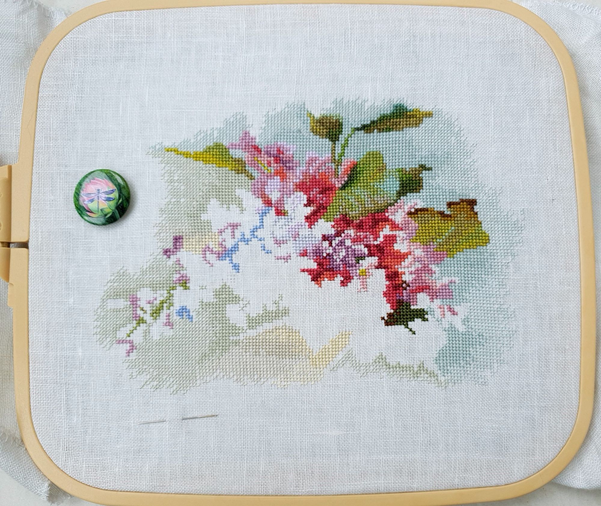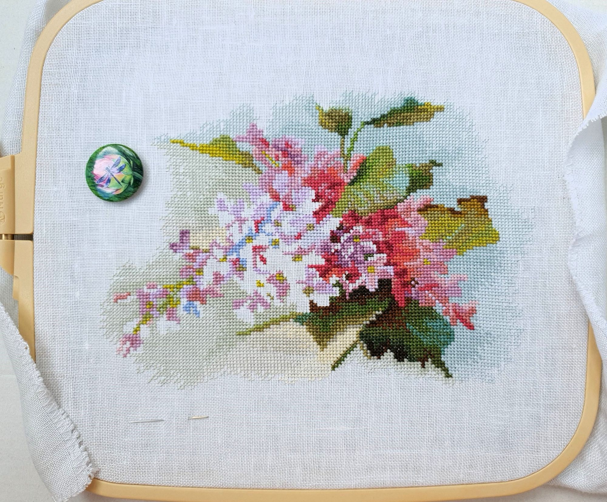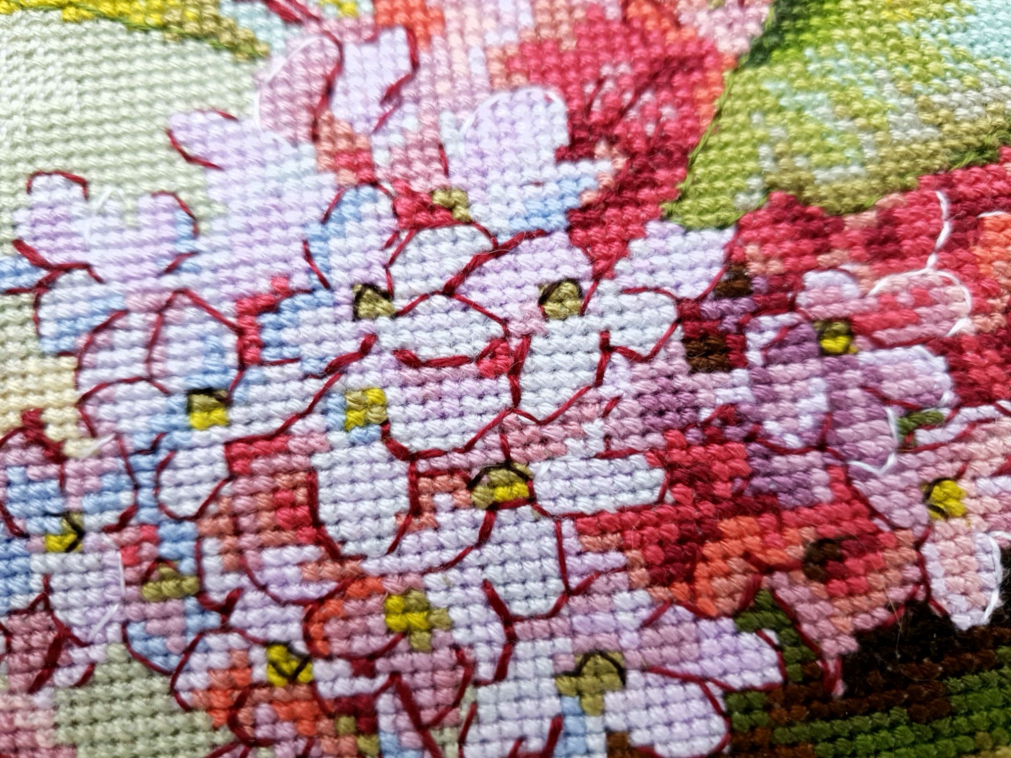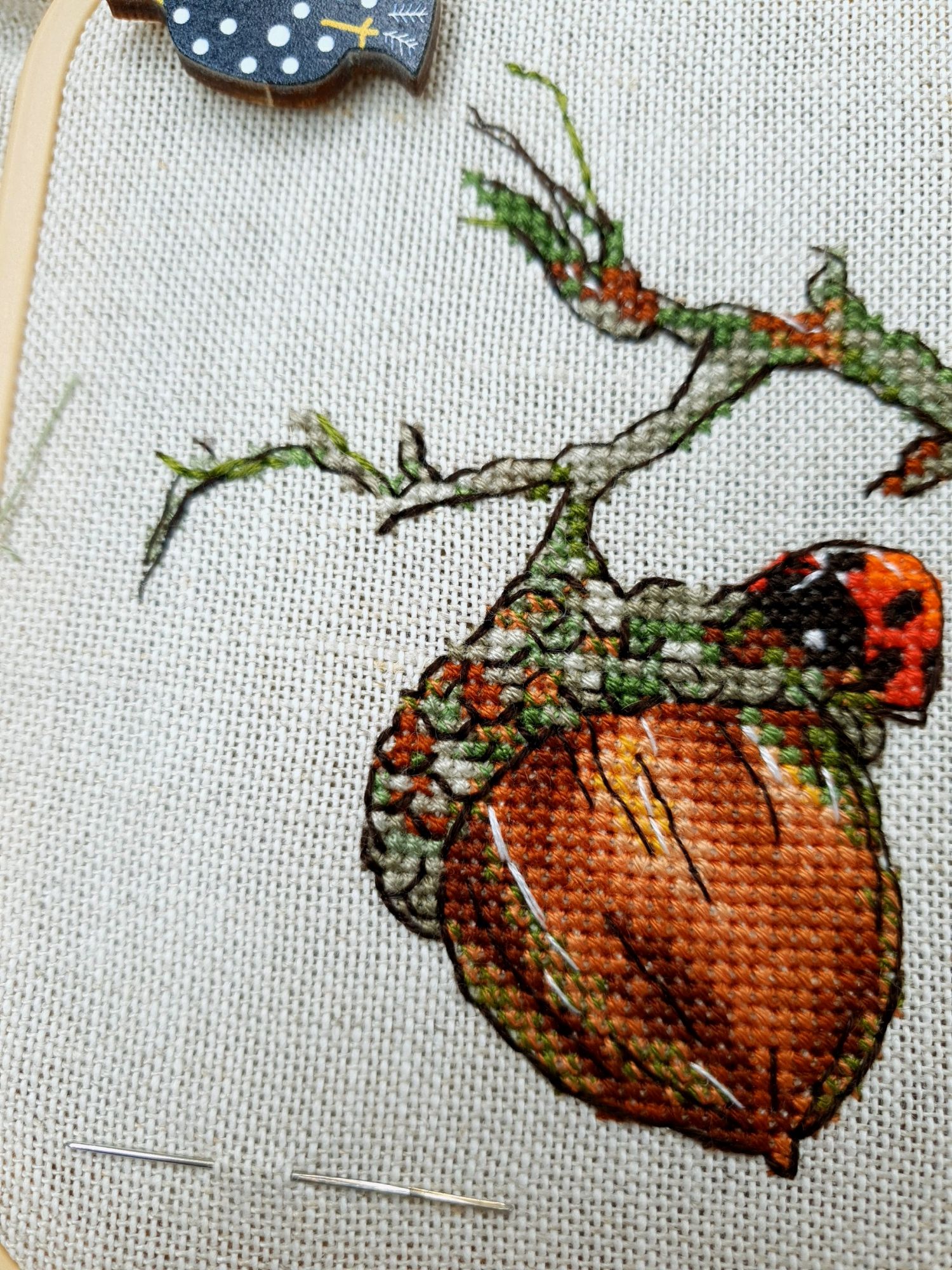 31 мая 2022 Всем привет! Две недели с последнего отчета: ой-ей Но у меня есть оправдание: я упорно шила сирень. И *внимание, спойлер* я ее дошила!!! Но сначала о лирике. А как иначе, если последний день весны уже практически докатился до своего финала? Вот уж поистине в этом году особенная весна. В самых разных смыслах. Если про погоду, то я тут попыталась вспомнить, сколько дней эта весна позволила выйти на улицу без куртки. Пальцев одной руки хватит пересчитать. Но вот она завершается, плохая ли, хорошая ли, и ничего в ней уже не поменять. Ни поступков, ни эмоций, ни погоды. А потому хочется сказать ей спасибо за то, что она была. И мы были с ней. И разбросать по страничкам памяти трогательные зеленые открытки. Местами мокрые, но очень и очень желанные. В этом году как никогда хотелось ловить каждый вздох весенней природы. А теперь про вышивку. Универсальное средство от всех душевных переживаний, особенно, когда у тебя столько процессов и совершенно не проблема начать новый в любой момент Екатерина Тарасова (Rin-Stitch), Герань (эта) - новый процесс и финиш! Видимо иногда звезды сходятся особенным образом. У меня было весьма дурное настроение в тот день, когда я увидела его! И улыбнулась. Ухмыльнулась скорее, конечно. Может даже немного недобро Но главное, что путь выхода к свету вдруг стал ясен))) Схема куплена в тот же час и начата, не откладывая в долгий ящик. Сейчас я зову этого товарища "мой тотем" и горячо его люблю. Даже иногда с собой в кармане таскаю. Это помимо того, что получила массу восторга от процесса. Вот наблюдала подобные эмоции у других при отшиве этой серии, но понять не могла. И даже выбрать себе что-то пыталась, чтоб попробовать на собственной шкуре. Теперь вот попробовала. Понимаю и разделяю, хоть словами вряд ли смогу объяснить)))) Алиса Окнеас, Воронье - финиш! *Татуся, добавь, пожалуйста, фото в гайку, а то ты мне ее в прошлый раз сразу зеленой прикрутила: спасибо за веру в меня и стимул Дошила. Удовольствие невероятное. Хочу еще что-нибудь подобное при случае)) Третий ворон мне особенно нравится, хотя они все прекрасны. О замене орнамента на меланж в луне ни капельки не жалею, выбором основы более чем довольна. Полное удовлетворение от процесса. Пока только с финальной фотосессией идей никаких, но это я рано или поздно исправлю)) Ну и собственно она.... О.Ланкевич, Сирень - финиш! Это был для меня непростой спурт. Не в плане, что процесс сложный, процесс прекрасный и для мелких цветов даже совсем простой. Мне просто сложно так долго шить практически один процесс, причем шить много и каждый день. Зато когда я таки закончила... Оно определенно того стоило! Эта удивительная смесь изящества, легкости, умеренной яркости и совершенной "настоящести", что свойственна цветочным дизайнам Ланкевич, здесь представлена в полном объеме. Я рада, что выбрала лен 36го каунта - оно получилось именно так, как я ее видела в своих мыслях. Правда красивая фотосессия с прототипом впереди - у нас сирень только начала распускаться. А пока просто много фото процесса и деталей. Кстати тут приезжала Ася @Каори, у которой эта сирень тоже вышита и мы их вместе рядом положили и рассматривали. И еще воробьев тоже от Нечаевой. Удивительное дело, как один и тот же дизайн в исполнении разных людей преображается. Вроде бы одинаковые, а вроде бы и совсем разные. В общем, нам наши "воробьи в си