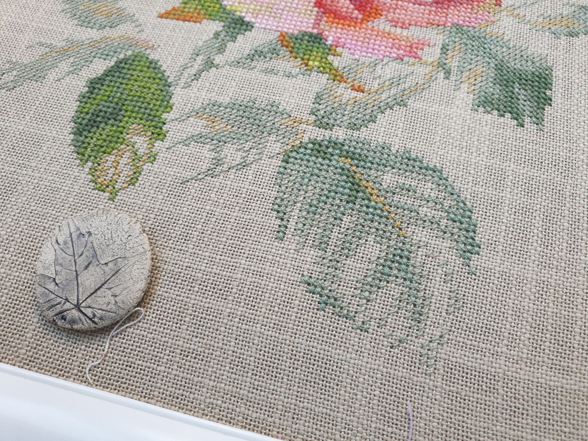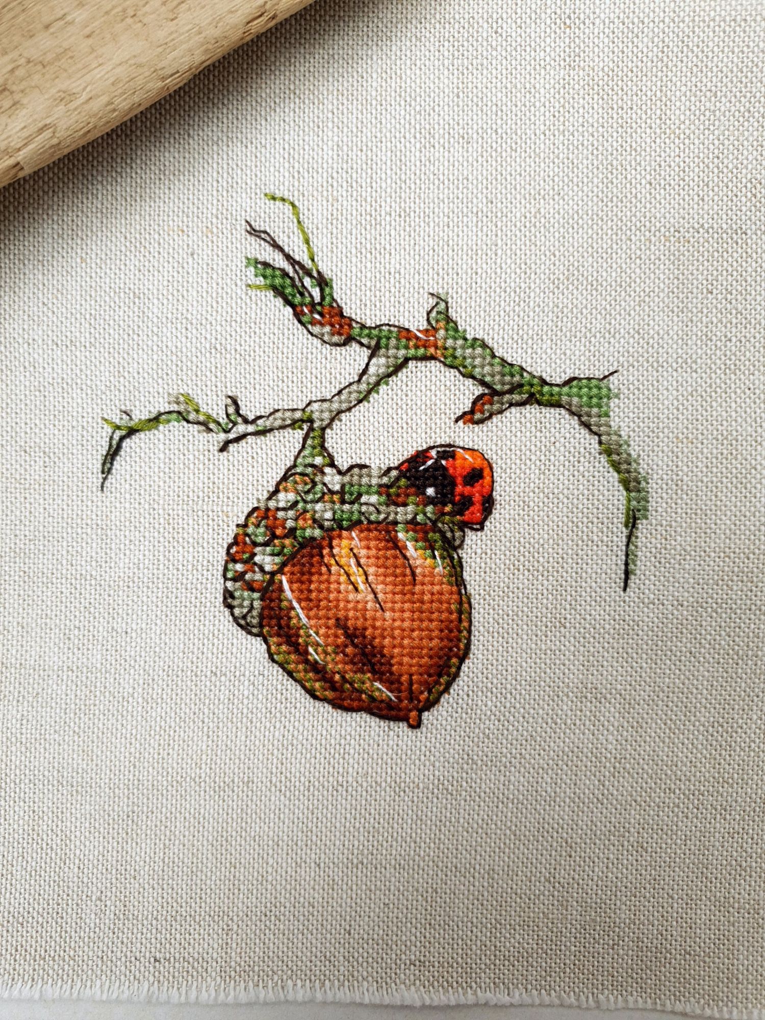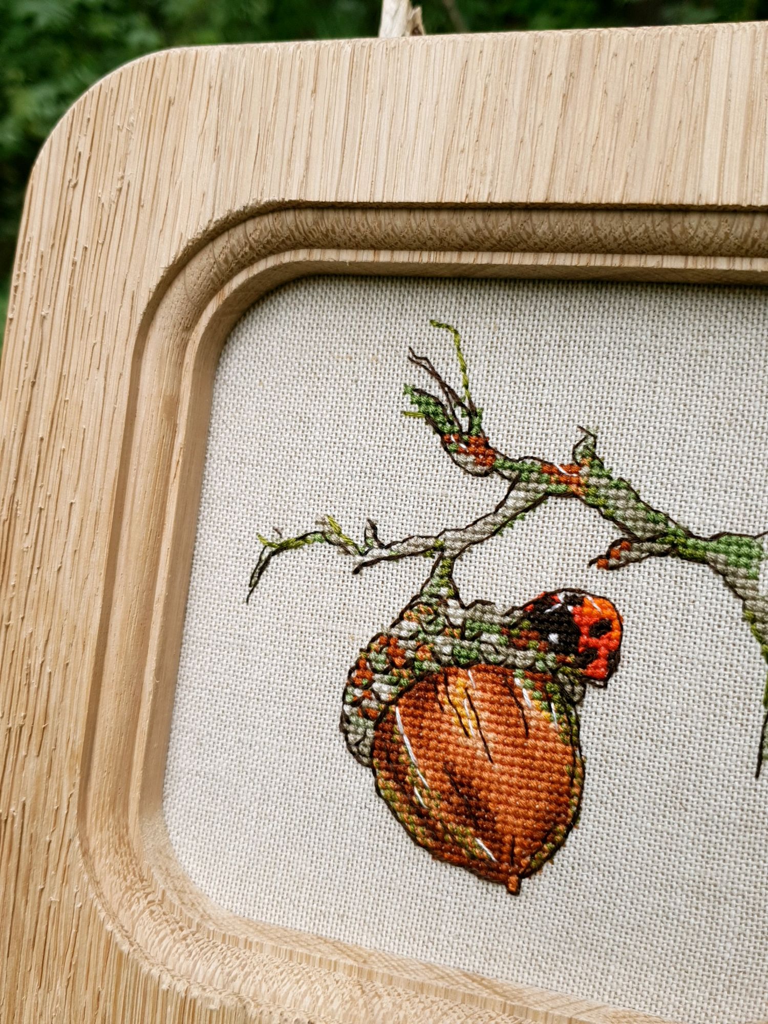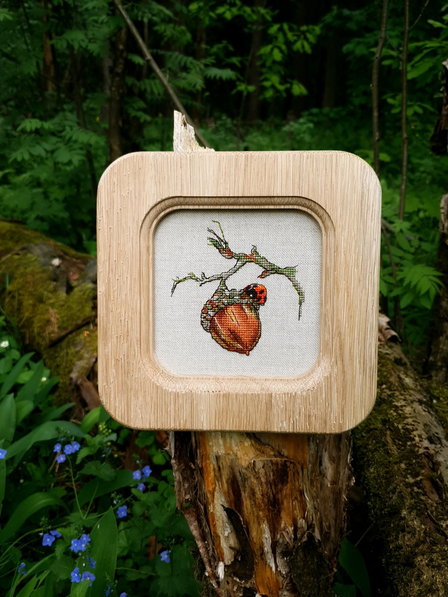 16 июня 2022 Всем ночной привет! Собиралась я написать отчет еще на прошлой неделе, но что-то пошло не так. Поэтому решила хотя бы частями, пусть и с задержкой показывать мое лето: вышивальное и не только. А то фотографии, которые непременно хочется показать, множатся с космической скоростью))) Итак, в прошлый раз я остановилась на том, что сирень по Ланкевич завершена, а сирень в городе едва расцветала. День за днем я ходила по улочкам и дворам, ожидая цветения. И вот воздух наполнился ароматом цветущей сирени. Правда подобраться к цветам с вышивкой оказалось не так просто: она в большинстве своем как-то высоко цветет)))) В общем, было много неудач. Мы даже съездили в Бот.сад МГУ, где словили "сиреневый передоз" как в самом саду, так и вокруг него))) (об этом расскажу в след.раз, там ооочень много фото). Но самыми удачными оказались самые первые фото. И еще пара из прочих. Вот как-то так вышло (не для гайки) В этих скитаниях по городу было, конечно, снято немало разного красивого. А в лесу тем временем коврами расцвели ландыши (фото сделаны на первой неделе июня), разнося по лесу чудесный, легкий, но хорошо заметный аромат (даже не представляю, как люди дома их ставят, я через пару часов и из леса-то вынуждена была ретироваться) Возвращаясь к вышивке. После усиленного вышивания сирени, я позволила себе "сладкую конфету" в виде очень давно желанного маленького процесса. И тут как по волшебству я наконец определилась с основой для него, хотя муками выбора маялась уже не один месяц (даже на ФР его рассматривала именно на предмет основы). И, забегая вперед, даже рамка для него нашлась тут же, как стали понятны размеры)! Ольга Князева, Желудь (эта) - старт и финиш! Мне так нравятся многие сюжеты этого дизайнера, что удивительно, что я еще ни одного до этого момента не вышила. Если честно, я немного побаивалась - было очевидно, что для подобной реалистичности при столь маленьких размерах (здесь 57*58 крестиков) потребуется часто менять нитку, а я не большой любитель данной процедуры)) Но вот что я вам скажу: я в полном восторге!!! Прямо вот так, с тремя восклицательными знаками)) Поставила бы и больше, если бы это явно не противоречило моим представлениям о синтаксисе пусть и не официальной речи В общем, вышился желудь на одном дыхании. Смена нити, конечно, есть, но не раздражает и исключительно оправданно. Логика схемы, цветов и блендов на 5+, результат реалистичный, объемный, живой и тд. и т.п. Бэк более чем вменяемый. В общем я с нетерпением выбираю следующий дизайн от Ольги, коих в закромах благодаря новогодним подаркам подруг еще имеется)) Теперь фото: Про основу забыла сказать. Я взяла Лукан от Цвейгарта, 32 каунт, цвет натурального льна (что-то среднее между 52м и 53м цветами Белфаста или Кашеля), но со специфической интересной фактурой. А рамка подоспела из мастерской Sunflowers House как раз к завершению процесса. Рамка деревянная. И более того, оцените совпадение, дубовая! Это судьба, не иначе))) Я влюблена в эту миниатюру от первого крестика до оформленной работы. А еще это самый быстрый мой процесс, если считать от начала вышивки до рамы, повешенной на стену)) И еще один процесс на сегодня. Весьма давний и тоже цветочный) Е.Волкова, Роза-восхищение - финиш! Когда-то давно я остановилась на том, что сам цветок был почти готов. По большей части. И напоминал очень сильно погрызенную гусеница